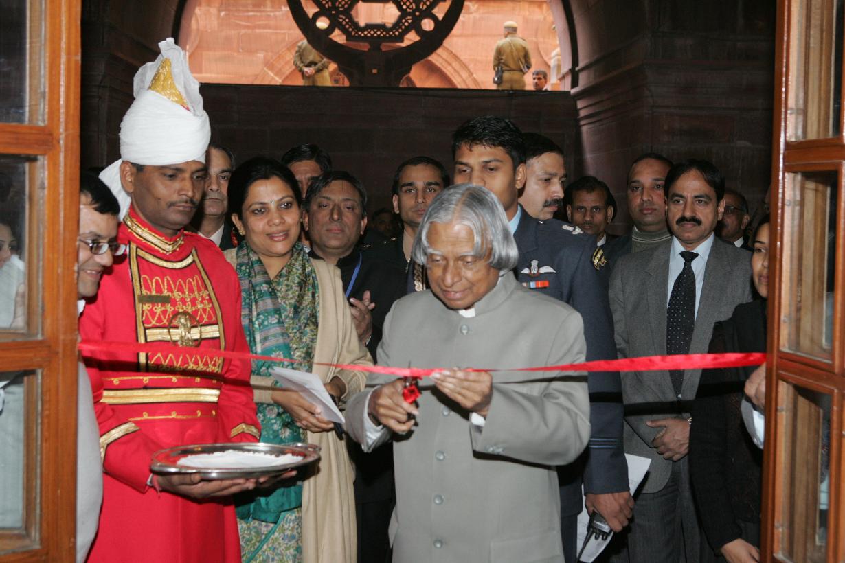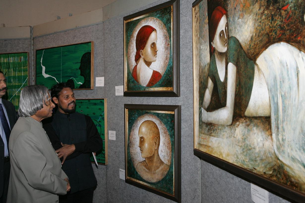 | Caption: | The President of India, Dr A P J Abdul Kalam inaugurating an Exhibition of the Modern Paintings and Sculptures by Indian Artist on occasion of Republic Day at the Marble Hall of Rashtrapati Bhavan in New Delhi on Jan 25, 2007 |