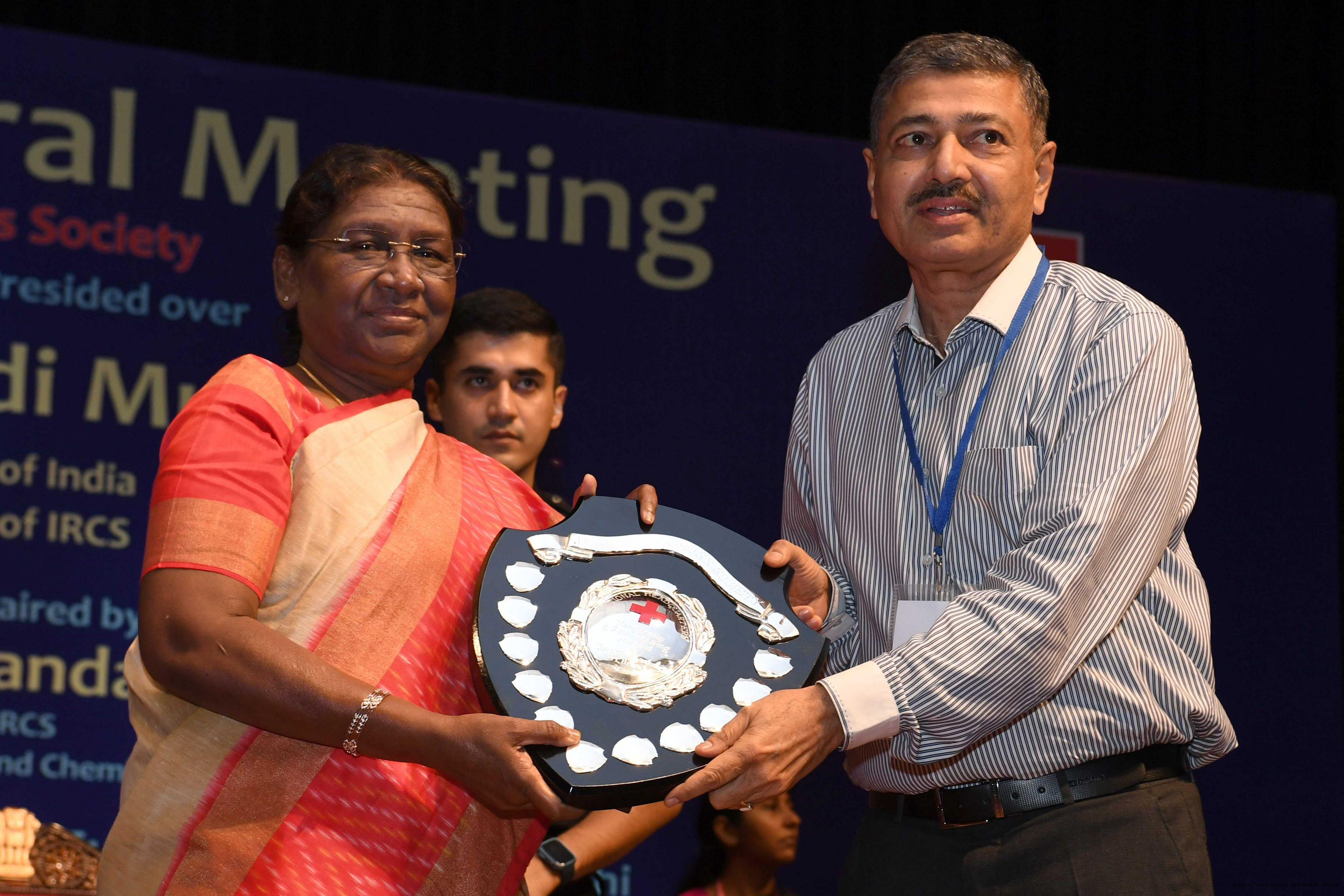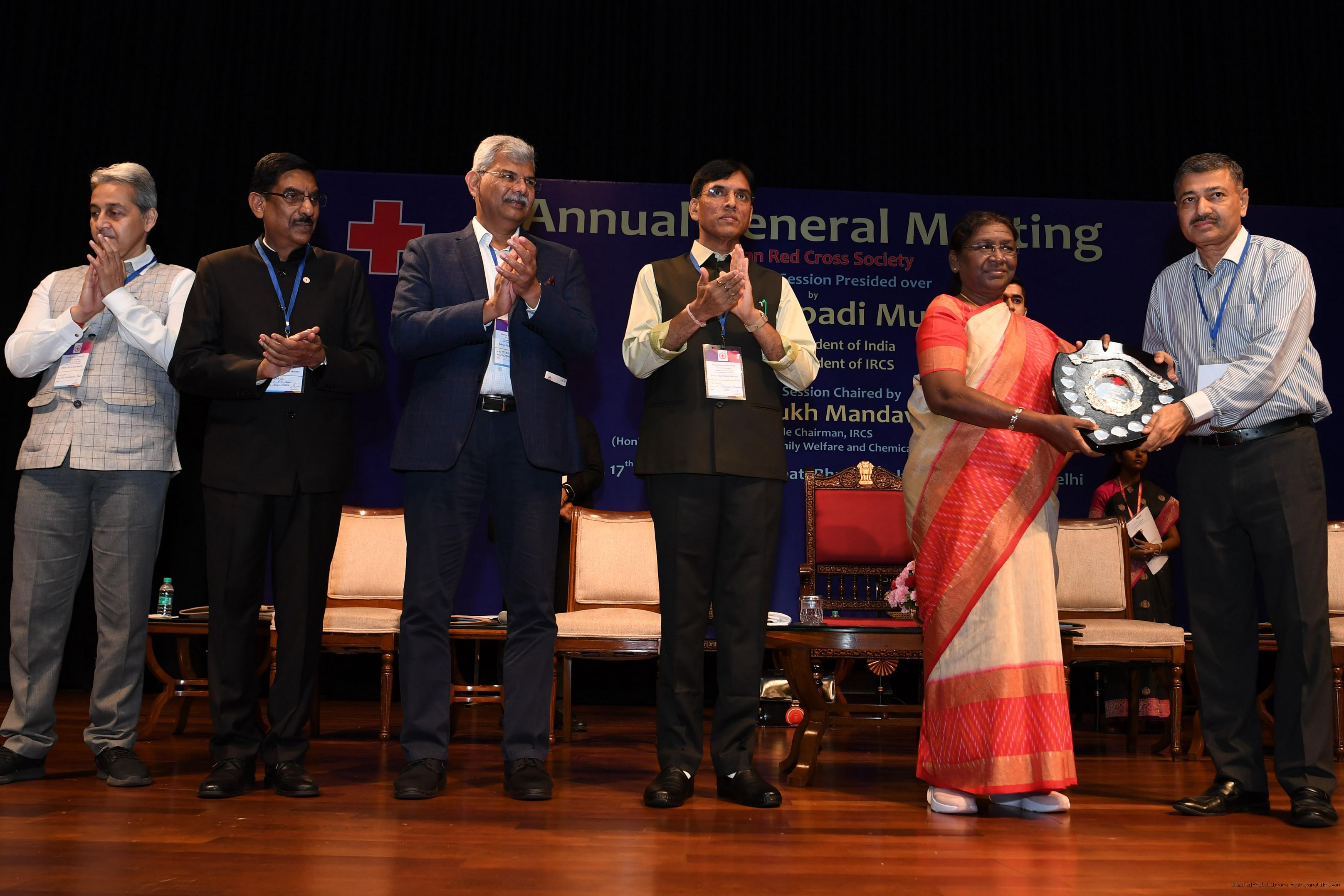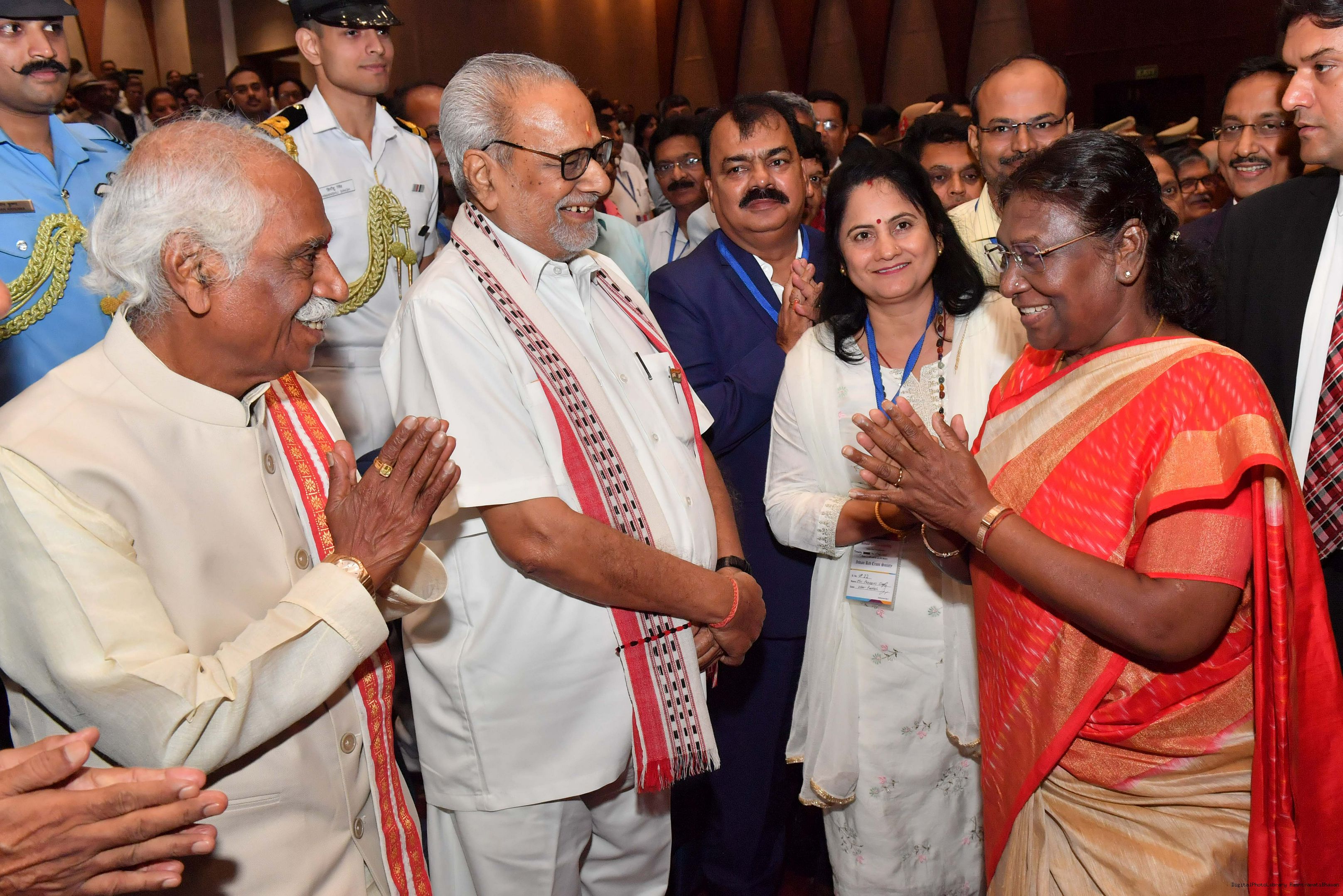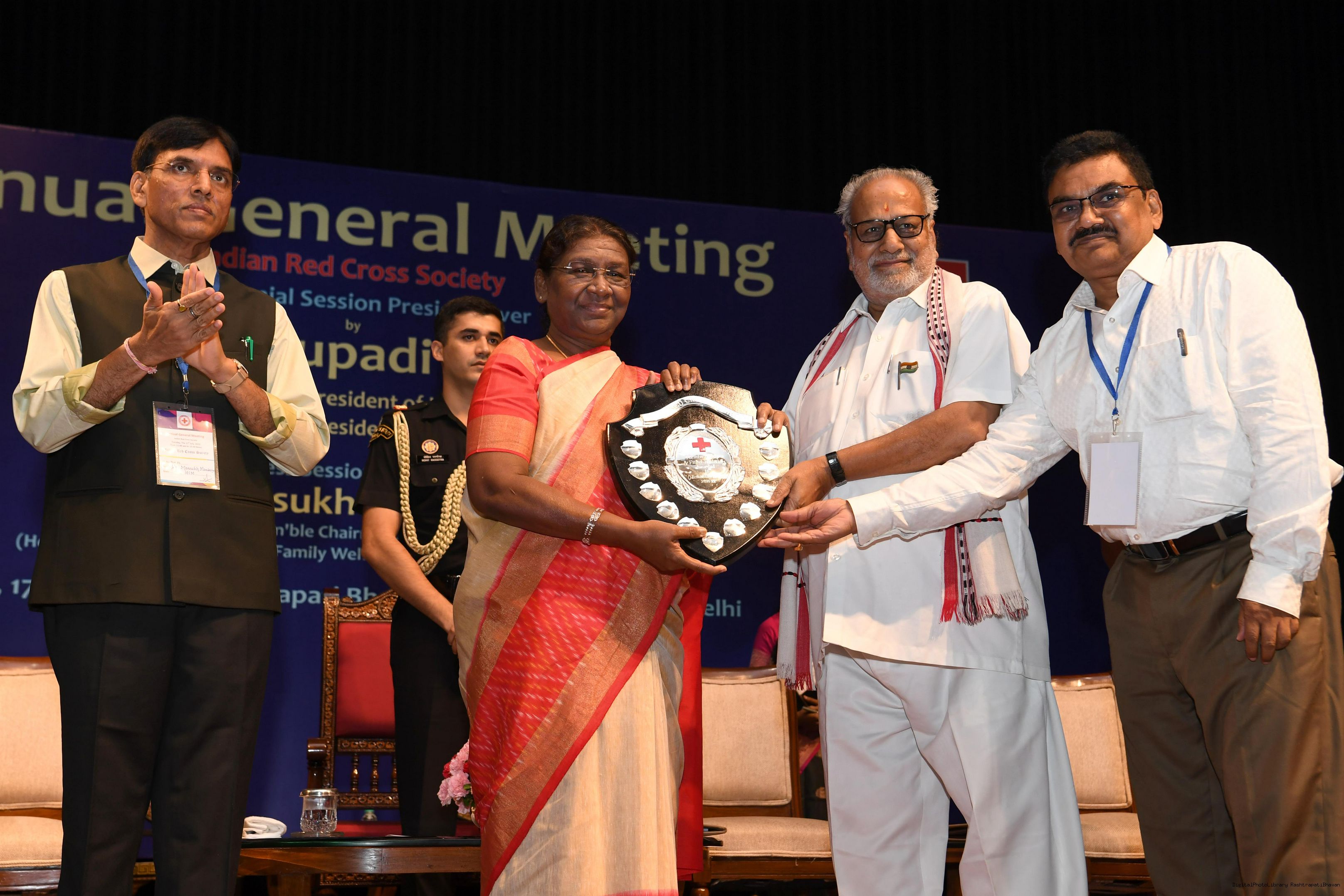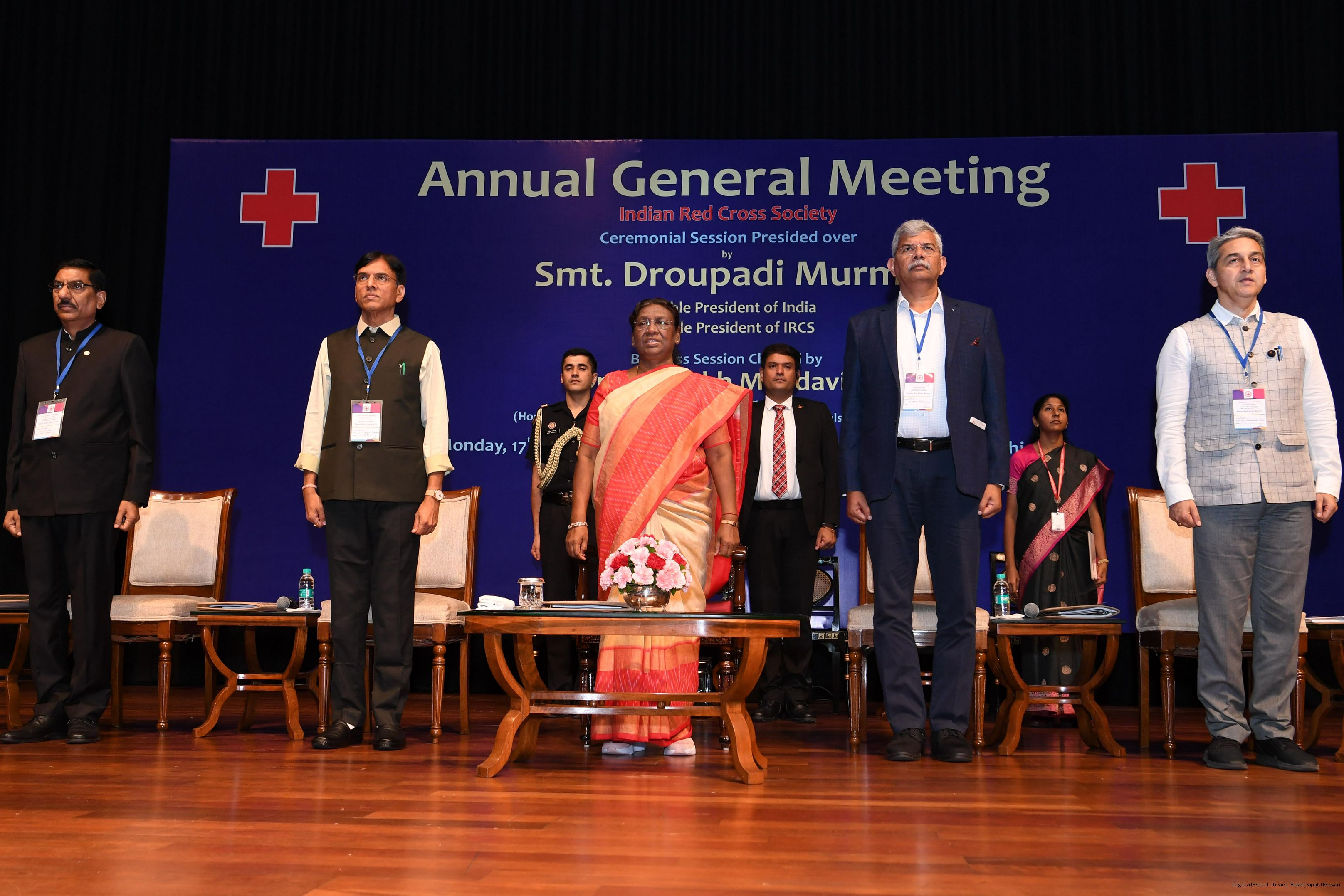 | Caption: | The President of India, Smt Droupadi Murmu presided over the ceremonial session of AGM of Indian Red Cross Society at Rashtrapati Bhavan Cultural Centre on July 17, 2023. |