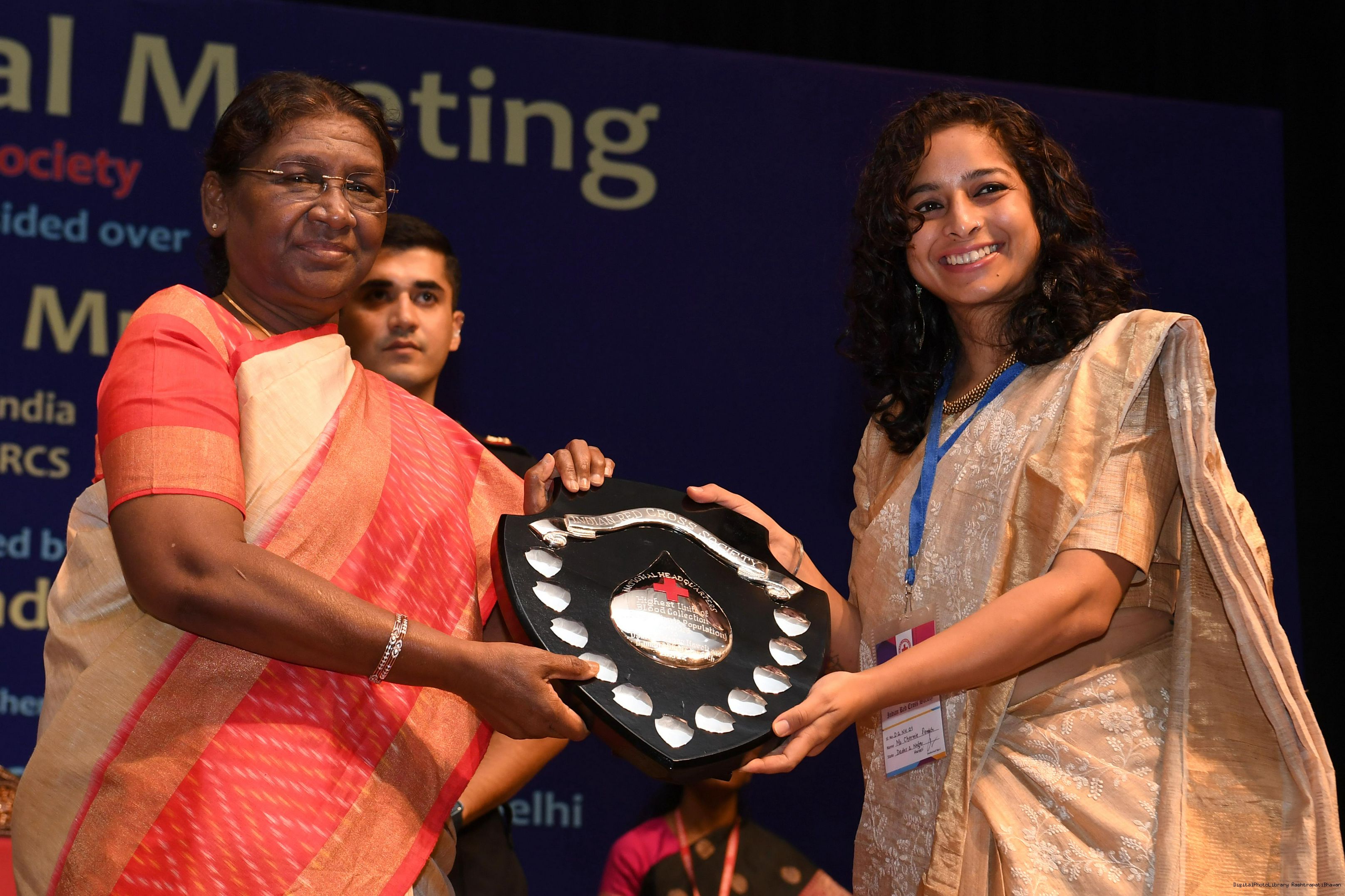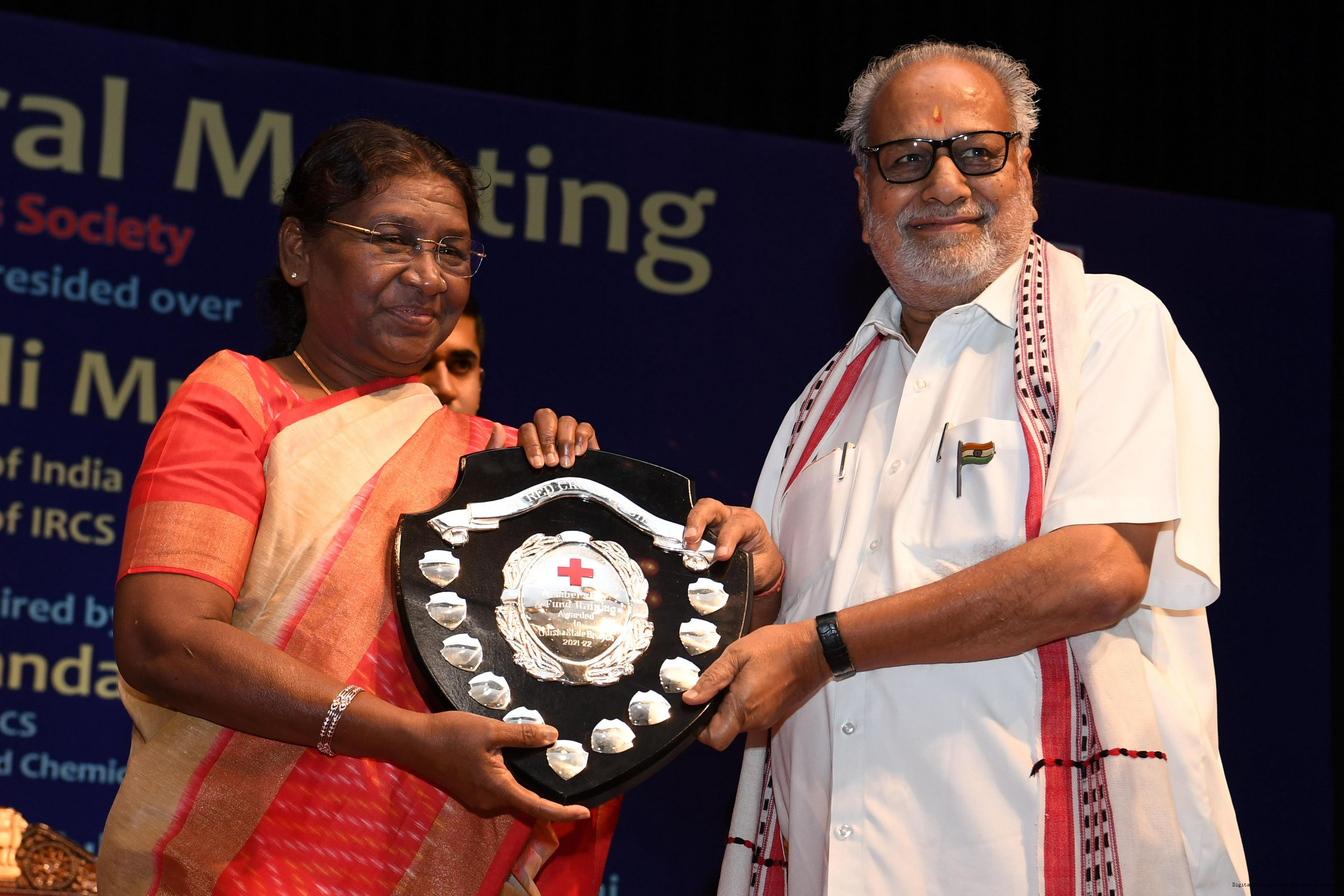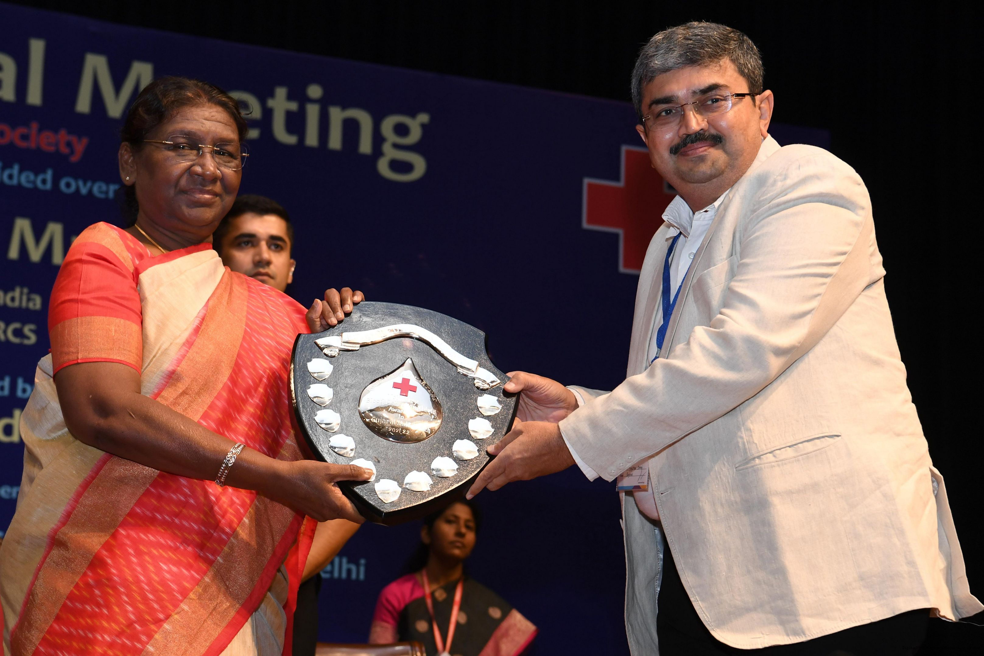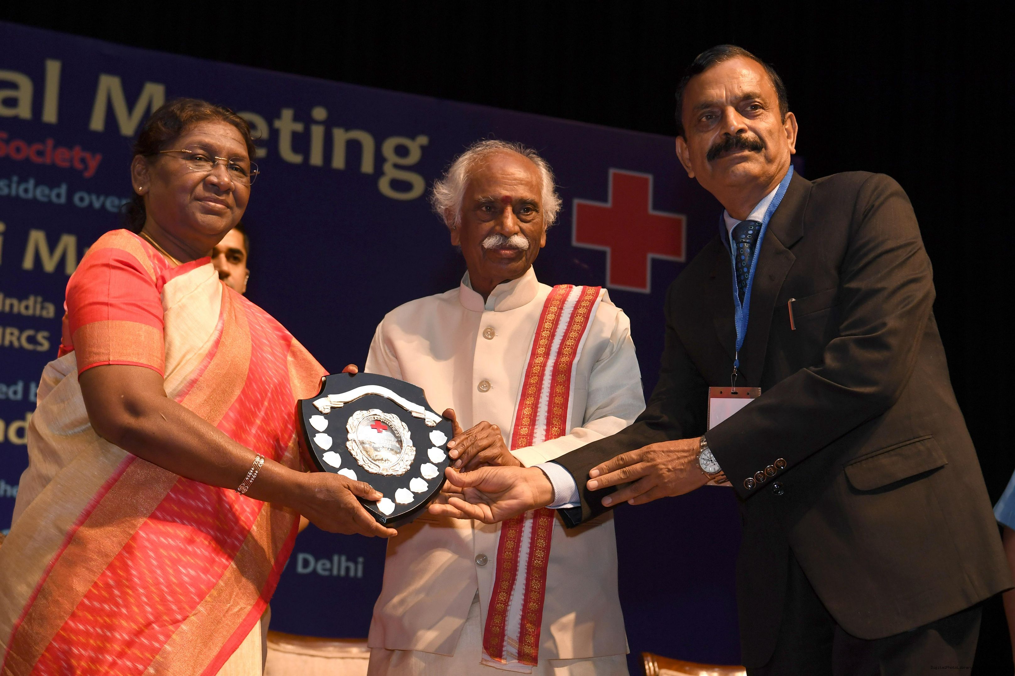 | Caption: | The President of India, Smt Droupadi Murmu presided over the ceremonial session of AGM of Indian Red Cross Society at Rashtrapati Bhavan Cultural Centre on July 17, 2023. |