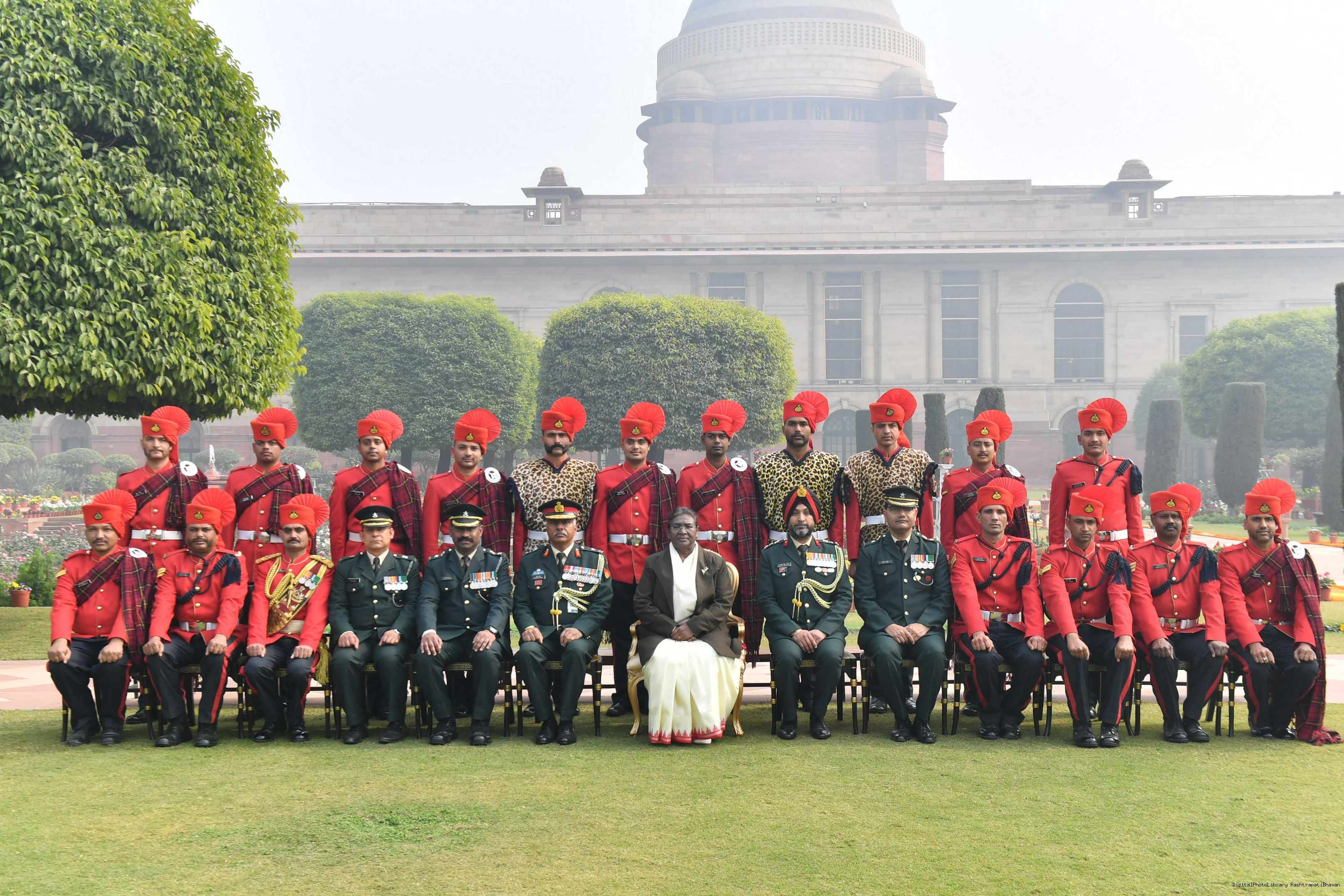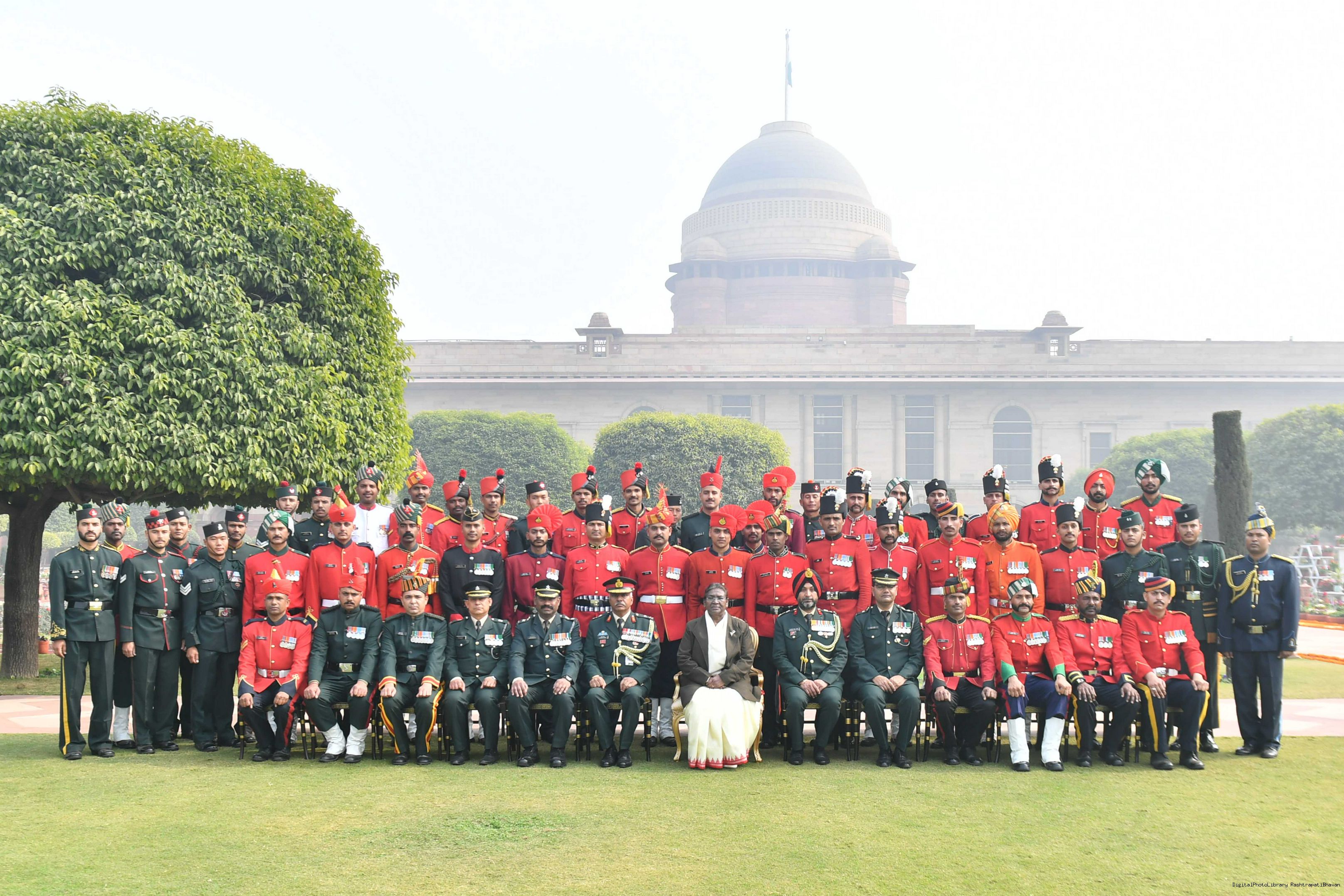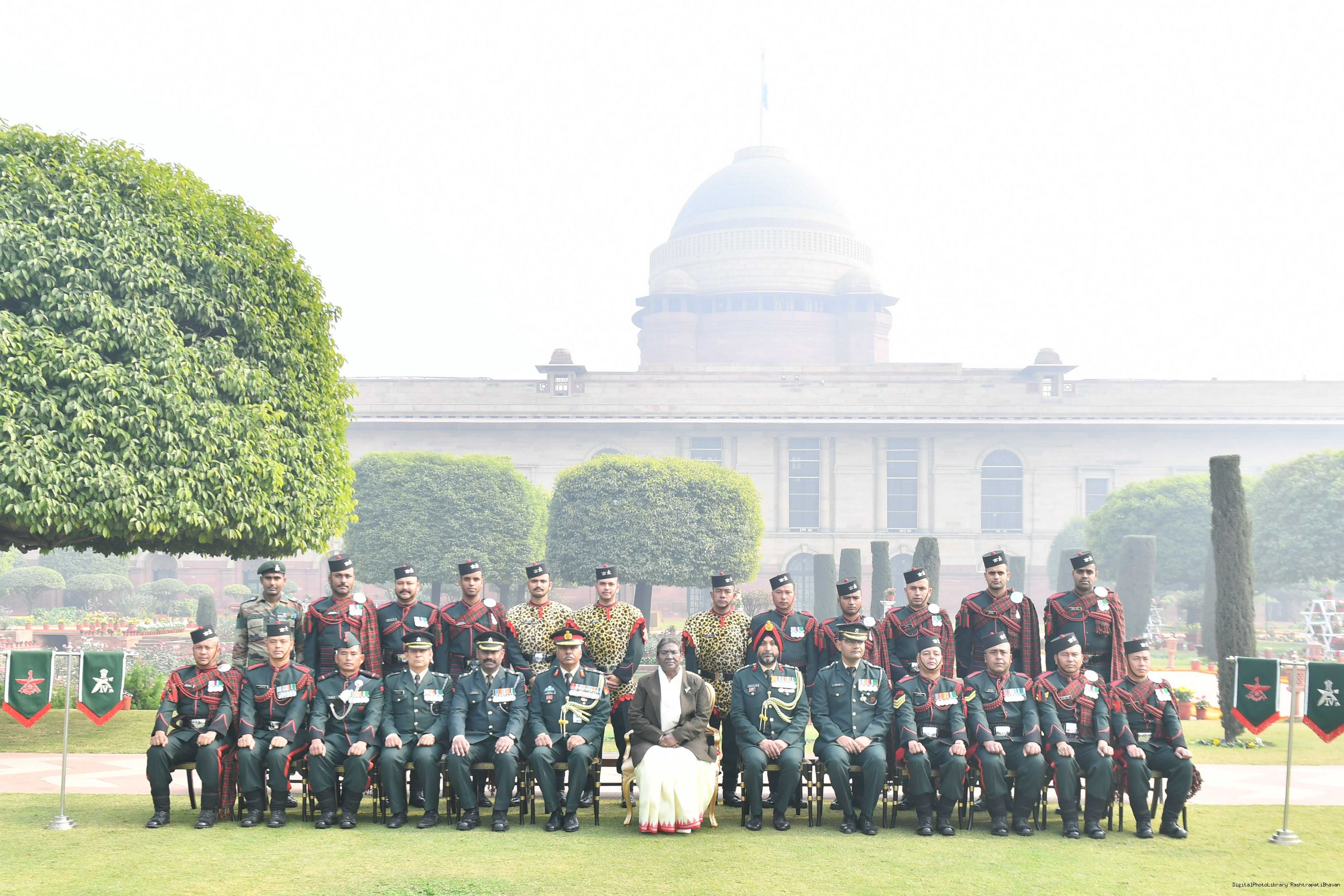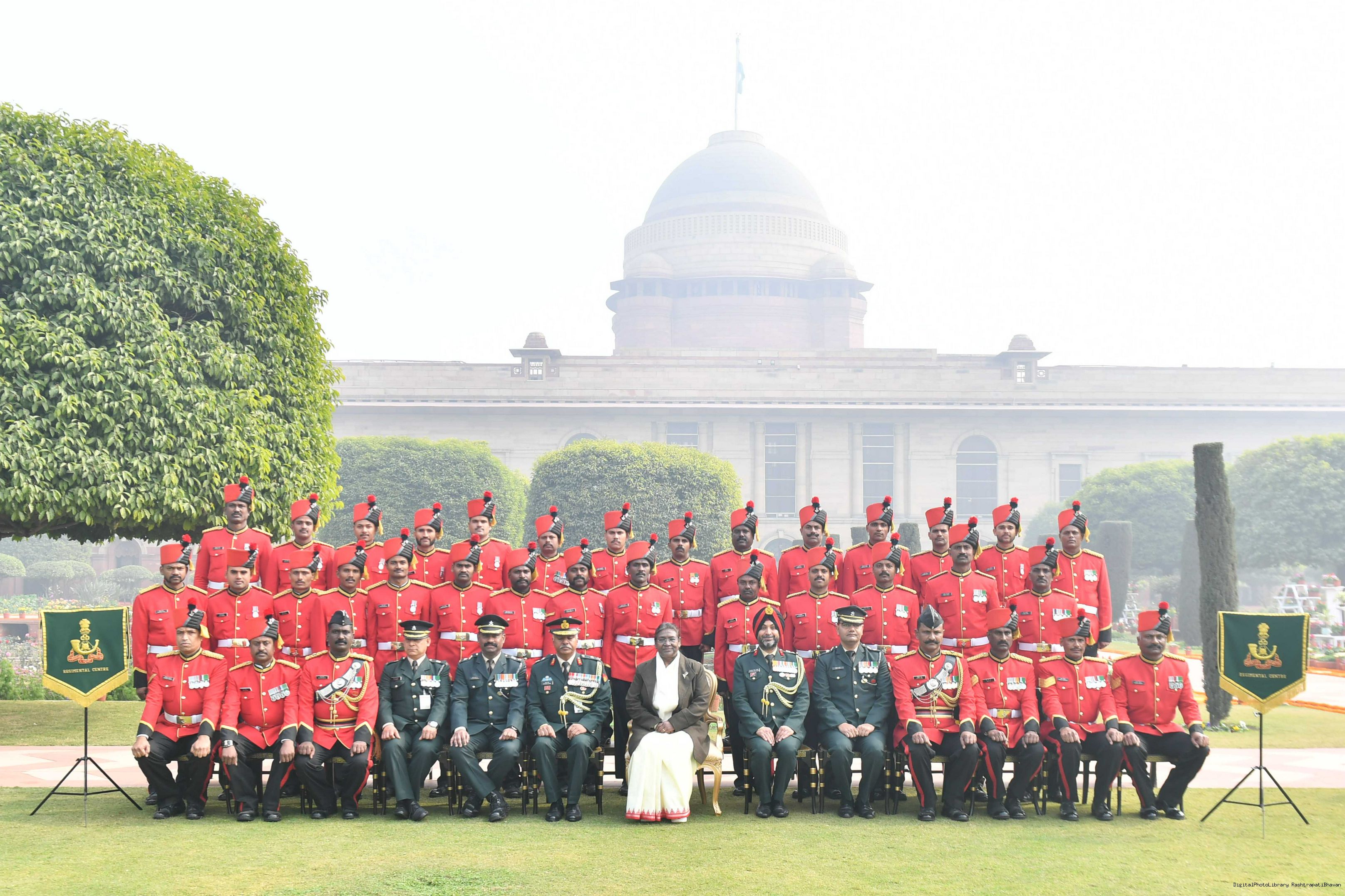 | Caption: | The President of India Smt. Droupadi Murmu meeting with 1300 personnel of the Tri Service Band contingents (participants of the Republic Day Parade and Beating the Retreat Ceremony at Rashtrapati Bhavan on Jan 30, 2024. |