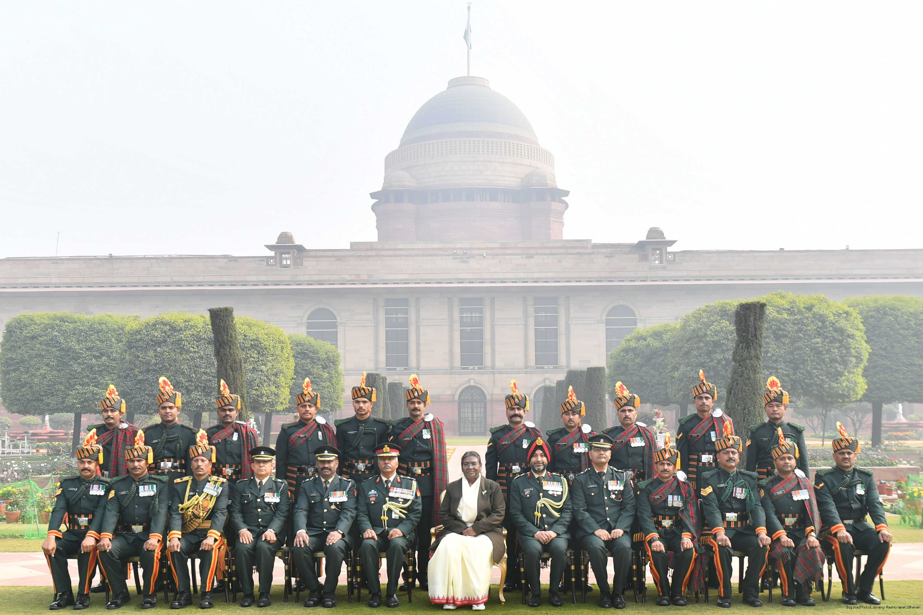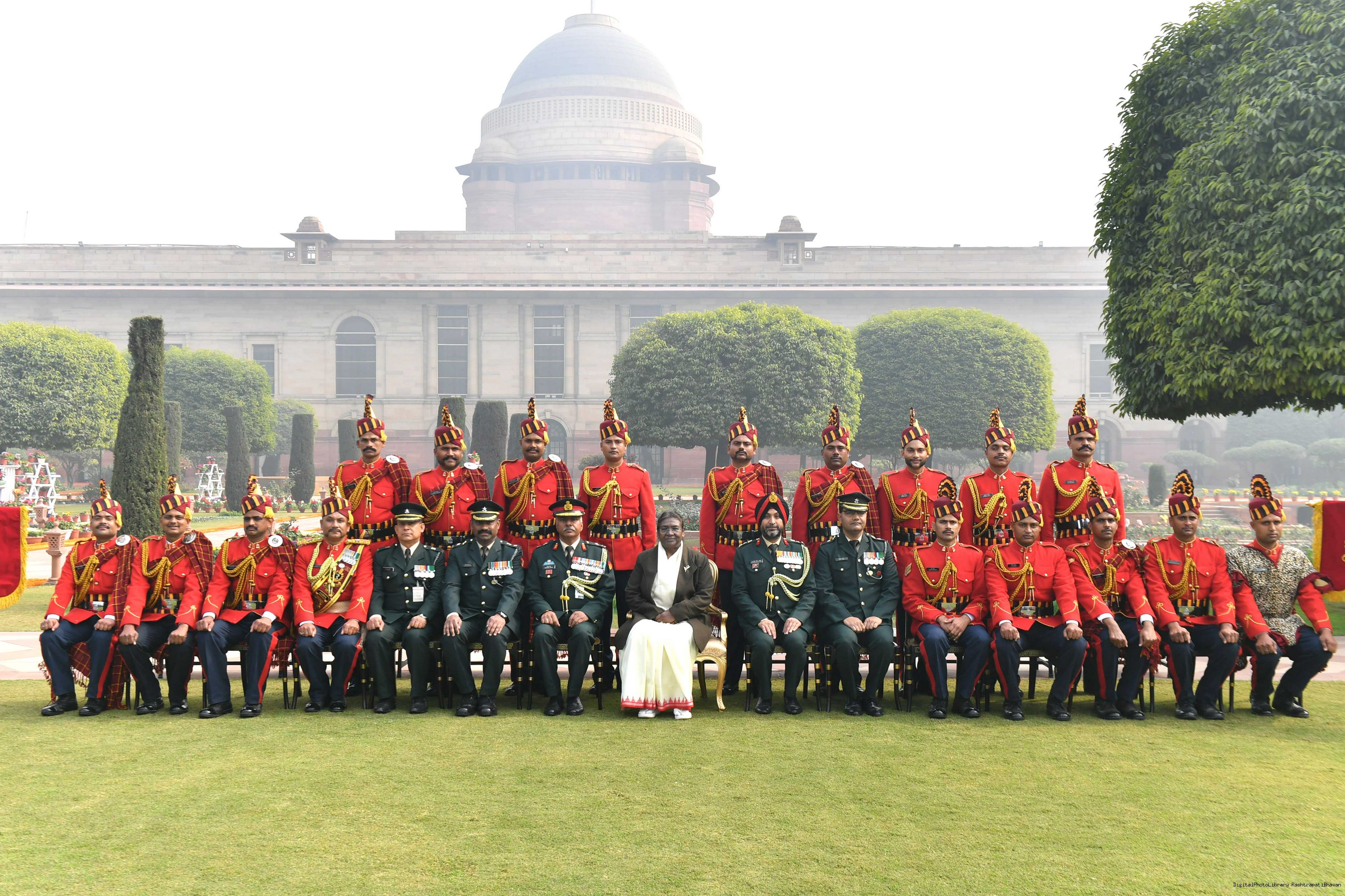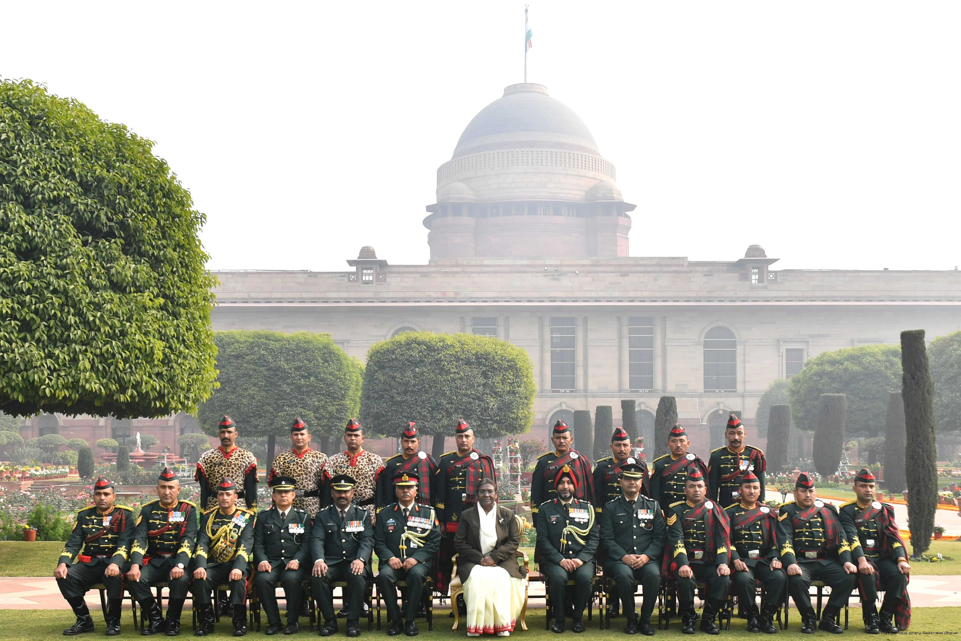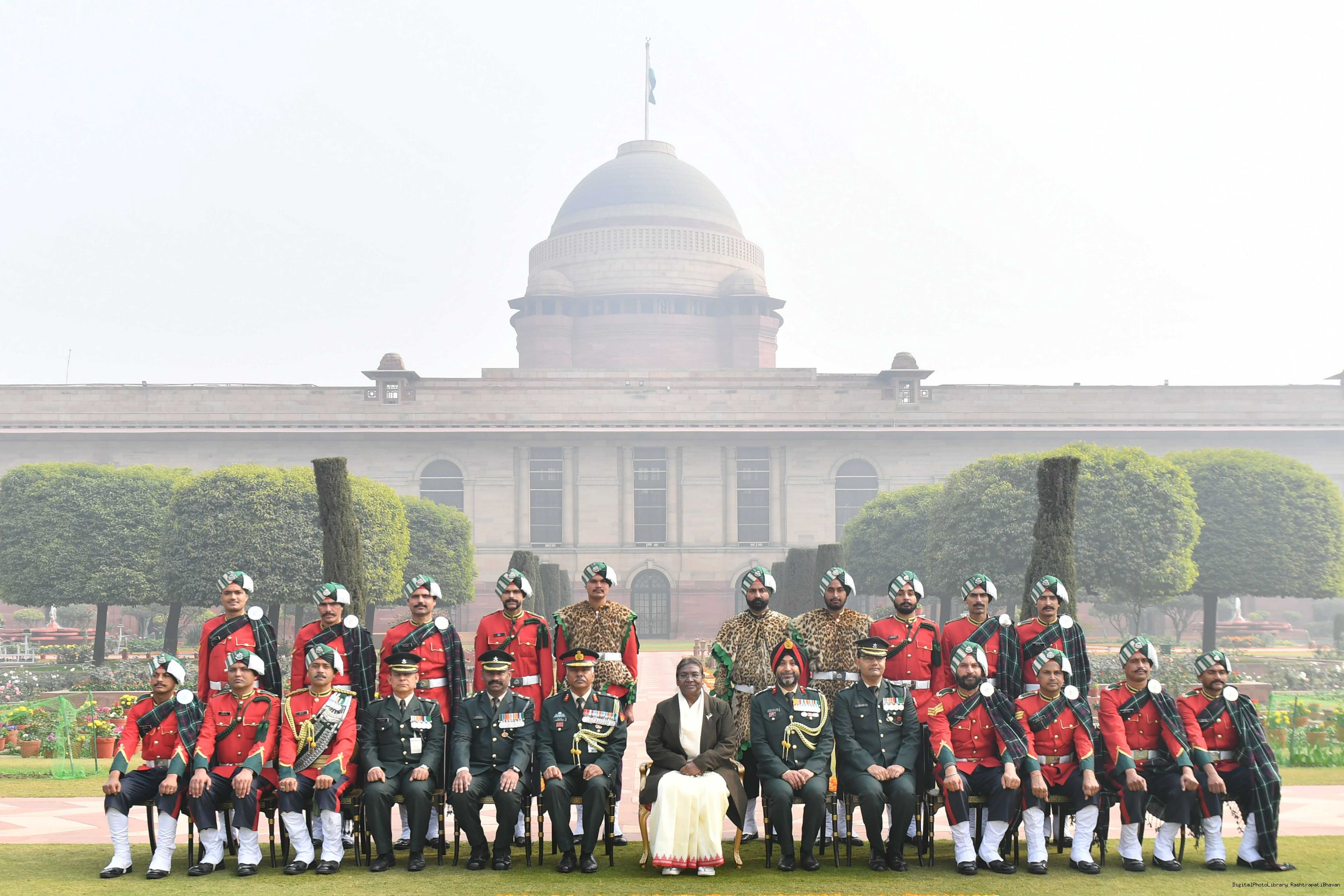 | Caption: | The President of India Smt. Droupadi Murmu meeting with 1300 personnel of the Tri Service Band contingents (participants of the Republic Day Parade and Beating the Retreat Ceremony at Rashtrapati Bhavan on Jan 30, 2024. |