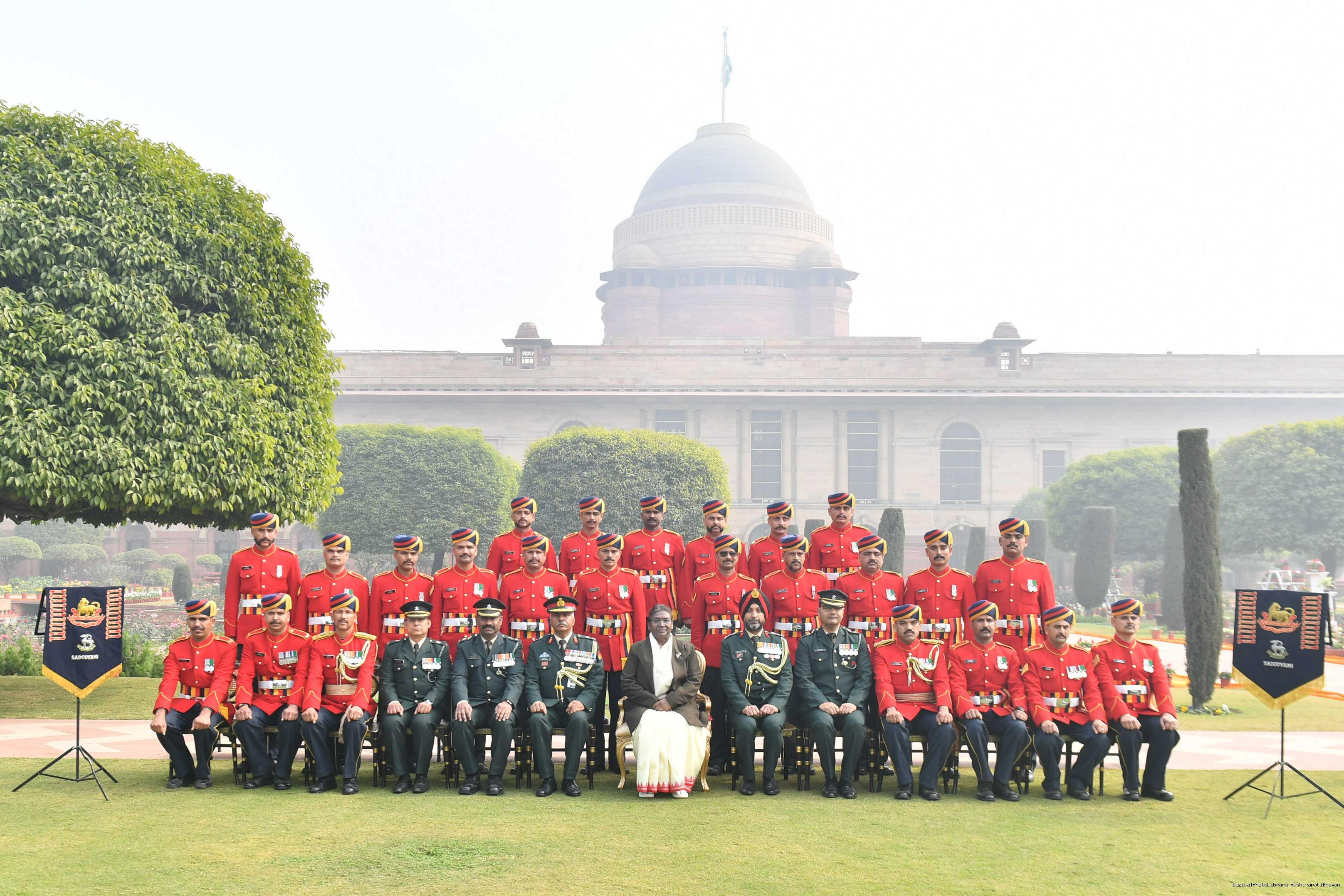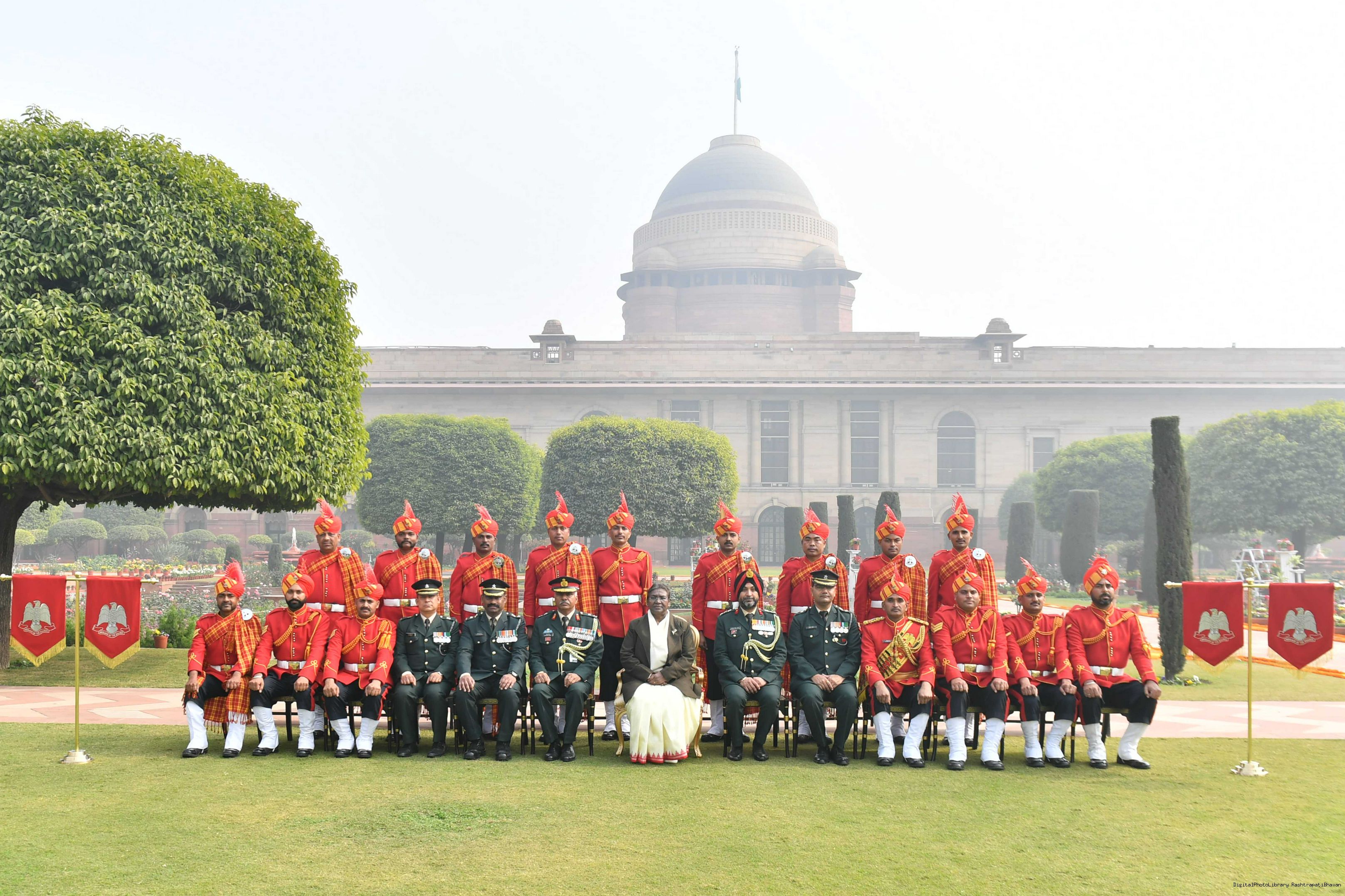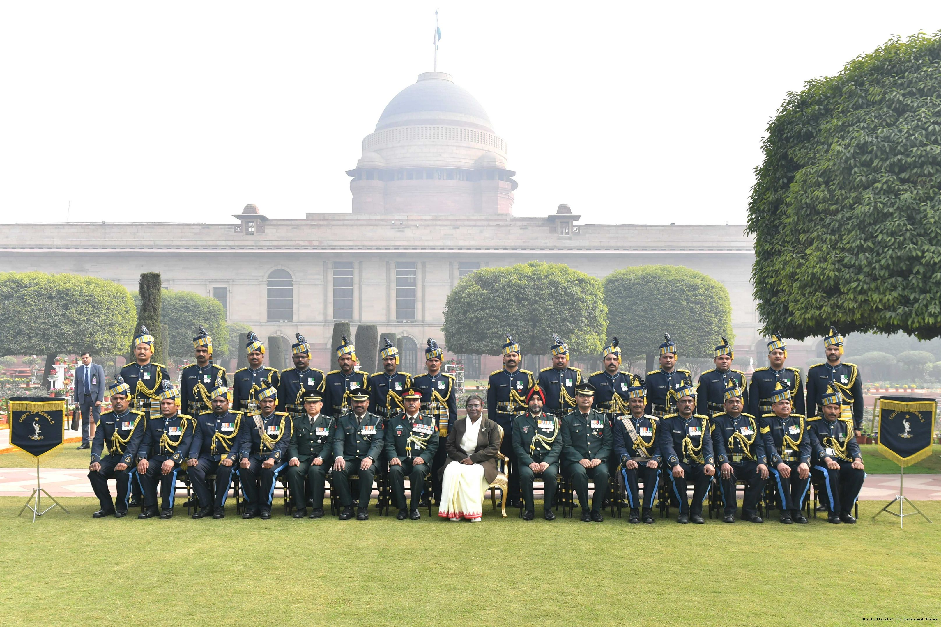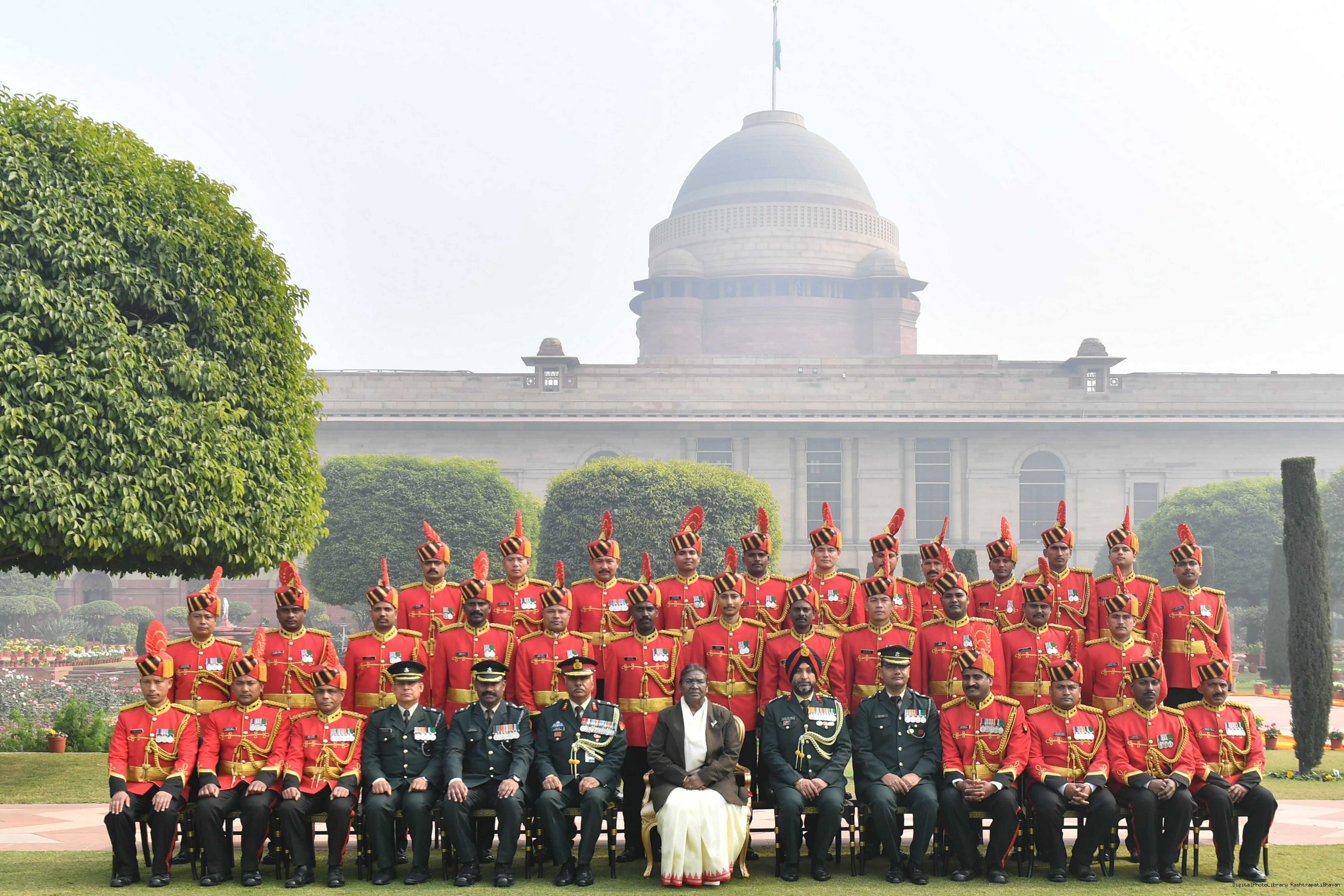 | Caption: | The President of India Smt. Droupadi Murmu meeting with 1300 personnel of the Tri Service Band contingents (participants of the Republic Day Parade and Beating the Retreat Ceremony at Rashtrapati Bhavan on Jan 30, 2024. |