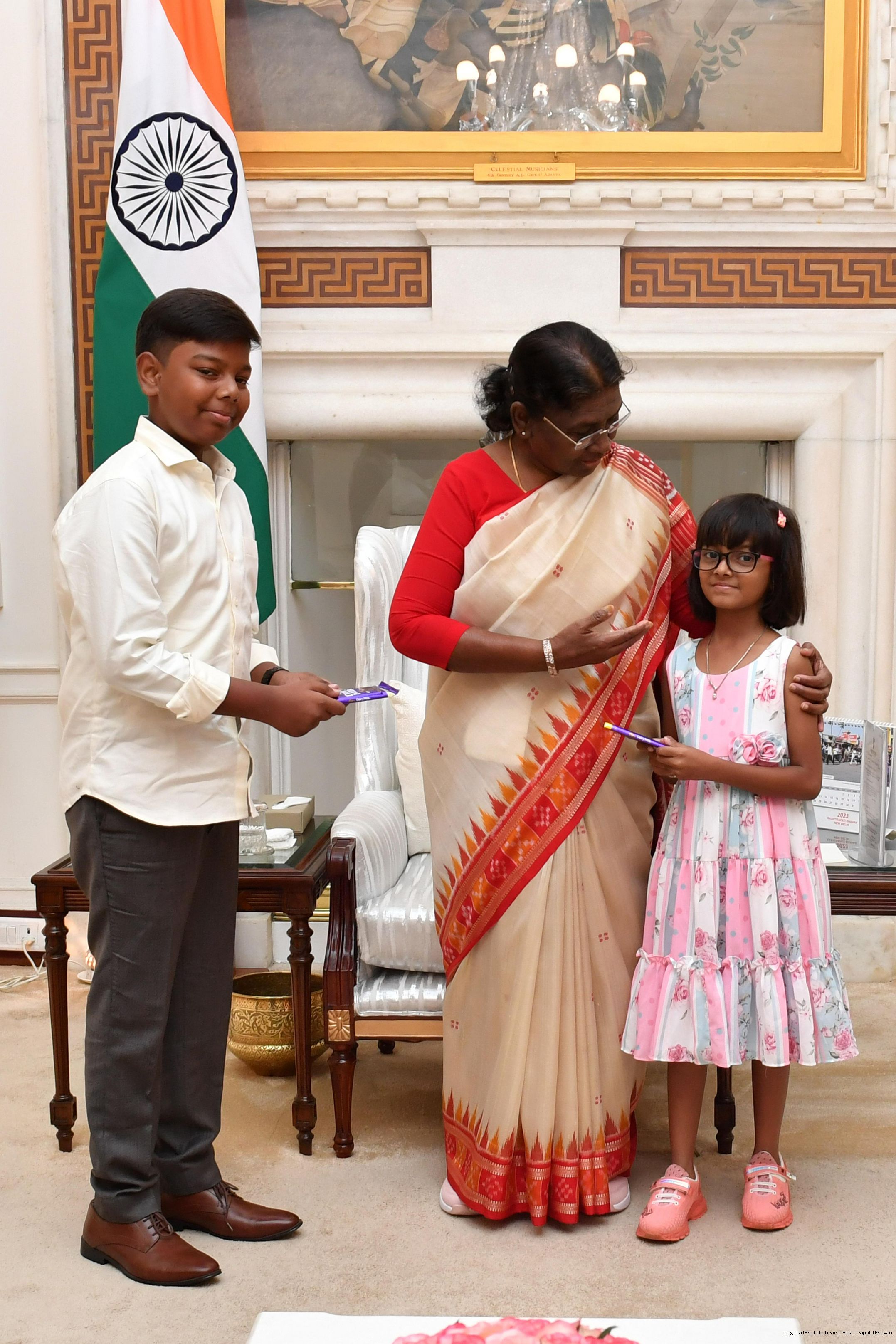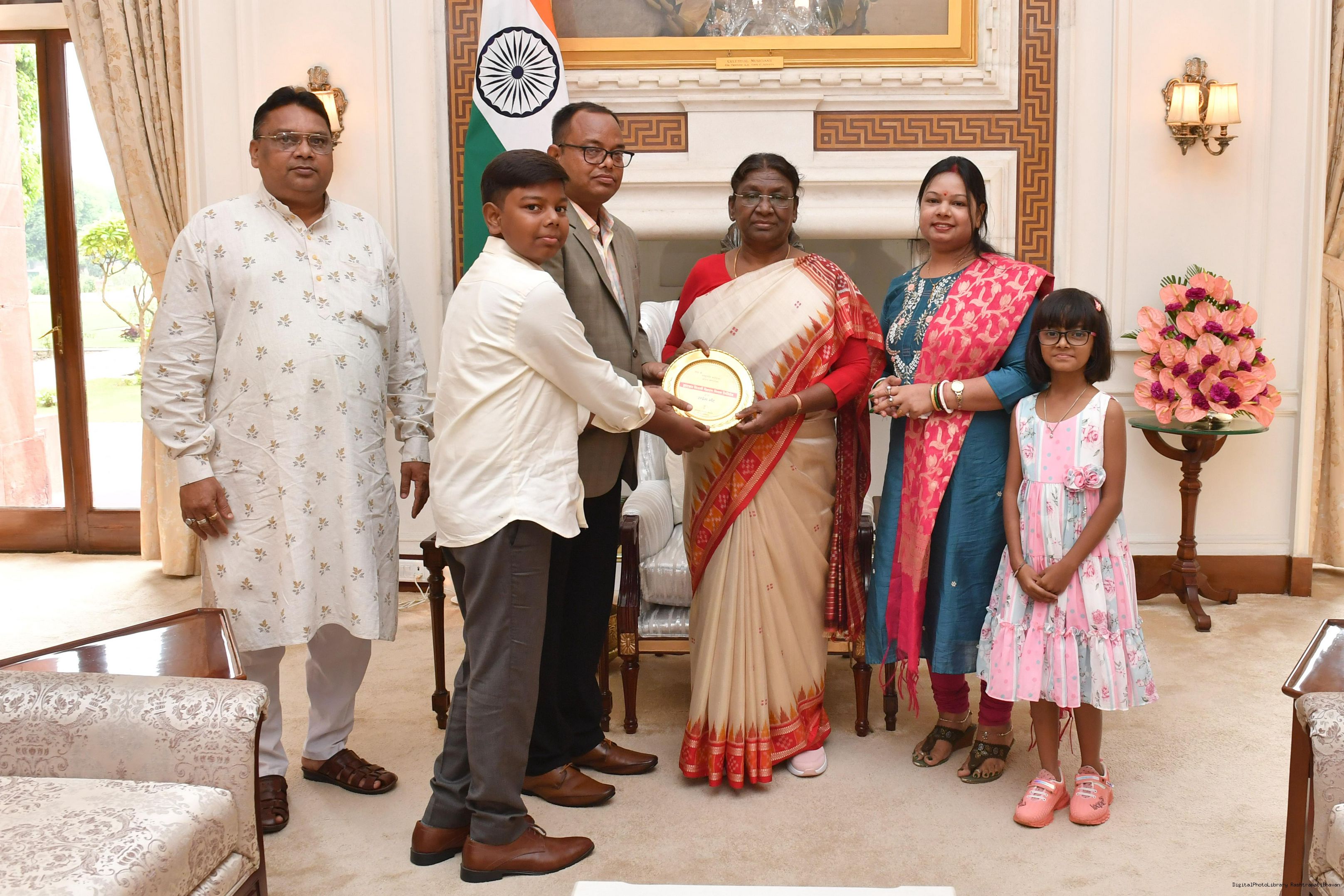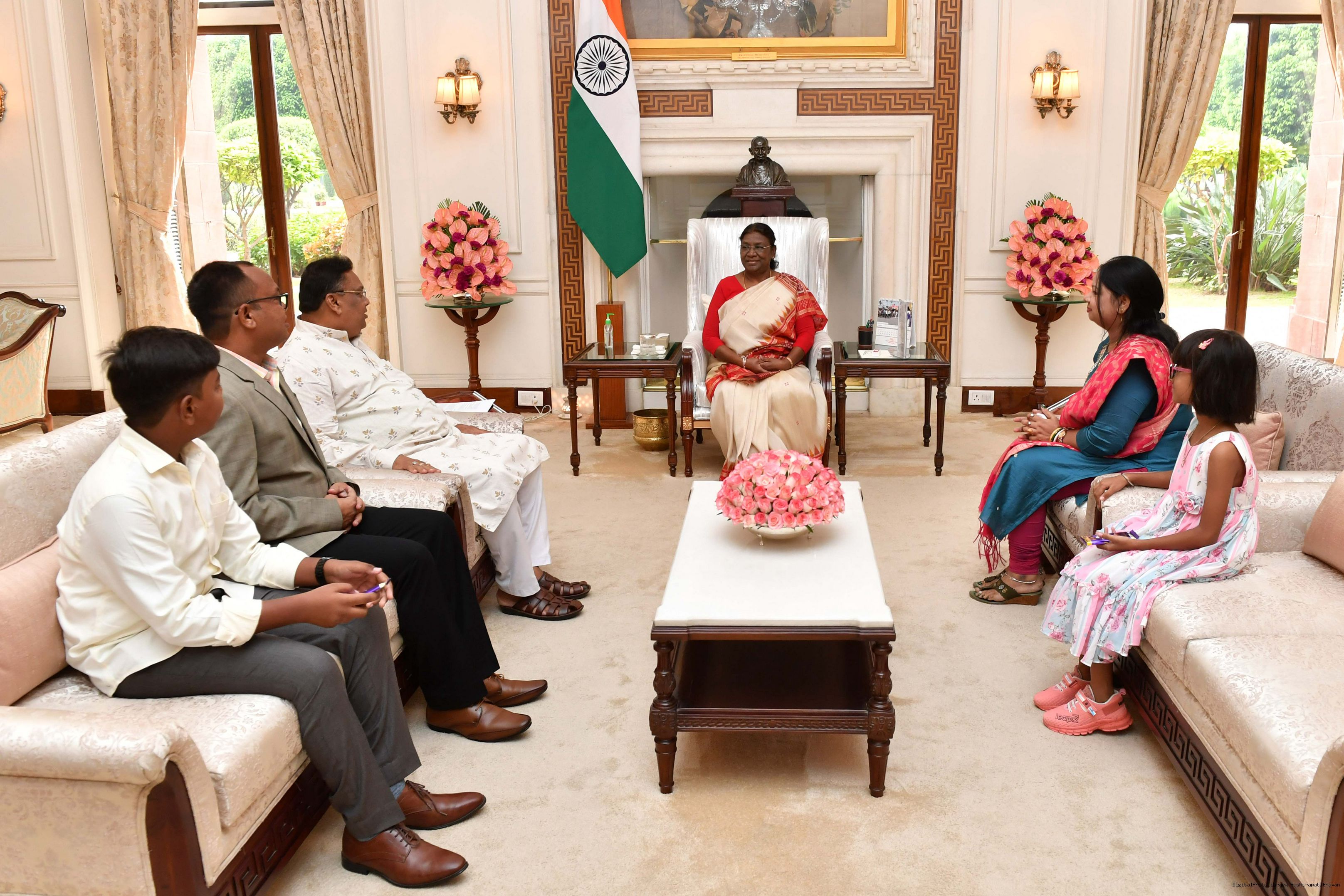 | Caption: | Shri Navin Ram along with others others meeting with the President of India, Smt. Droupadi Murmu at Rashtrapati Bhavan on July 17, 2023. |