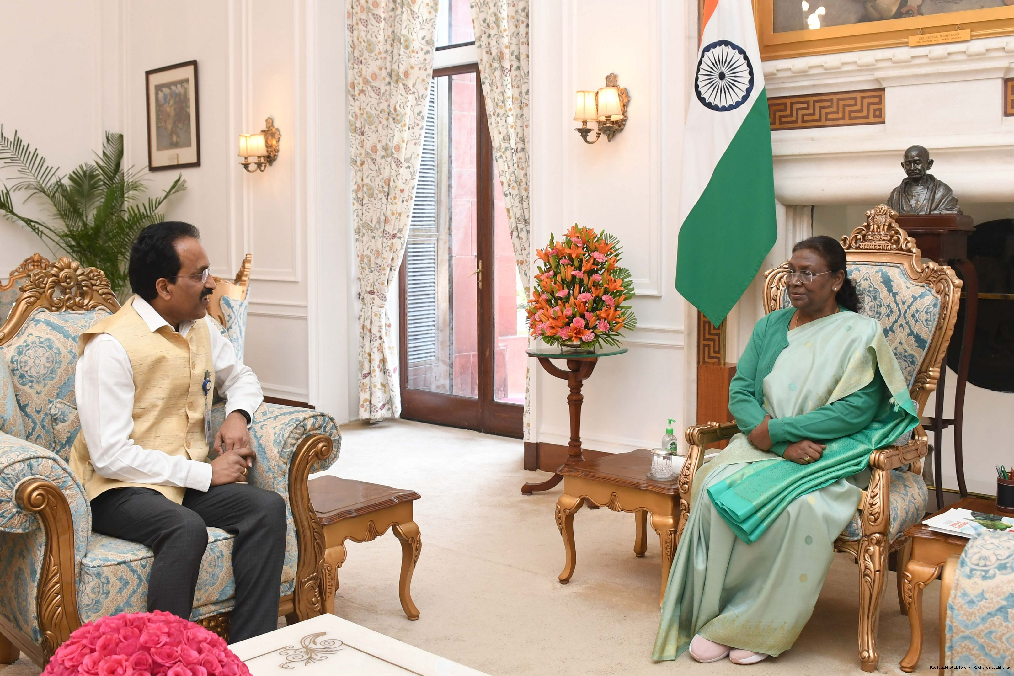 | Caption: | Shri S. Somnath, Chairman, Secretary, Department of Space and Chairman, ISRO called on the President of India Smt. Droupadi Murmu at Rashtrapati Bhavan on December 14, 2023. |