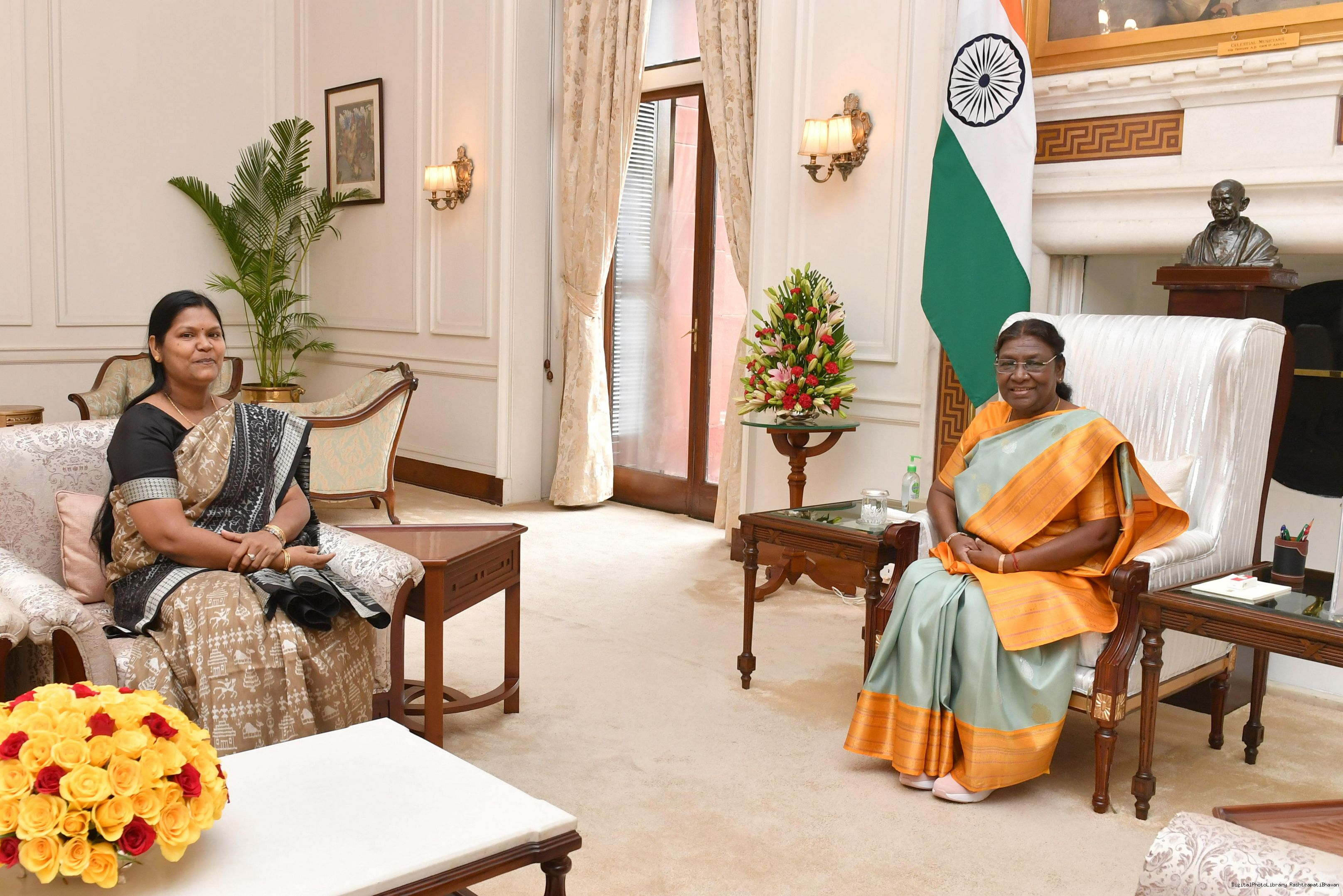 | Caption: | The Minister of Water Resources Commerce and Transport, Odisha, Smt. Tukuni sahoo meeting with the President of India, Smt. Droupadi Murmu at Rashtrapati Bhavan on July 18, 2023. |