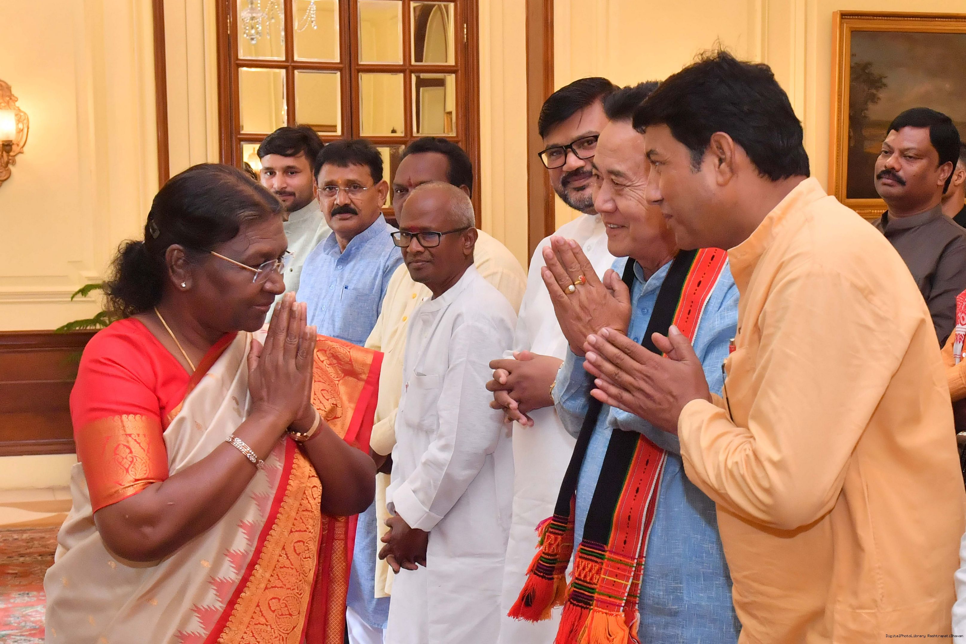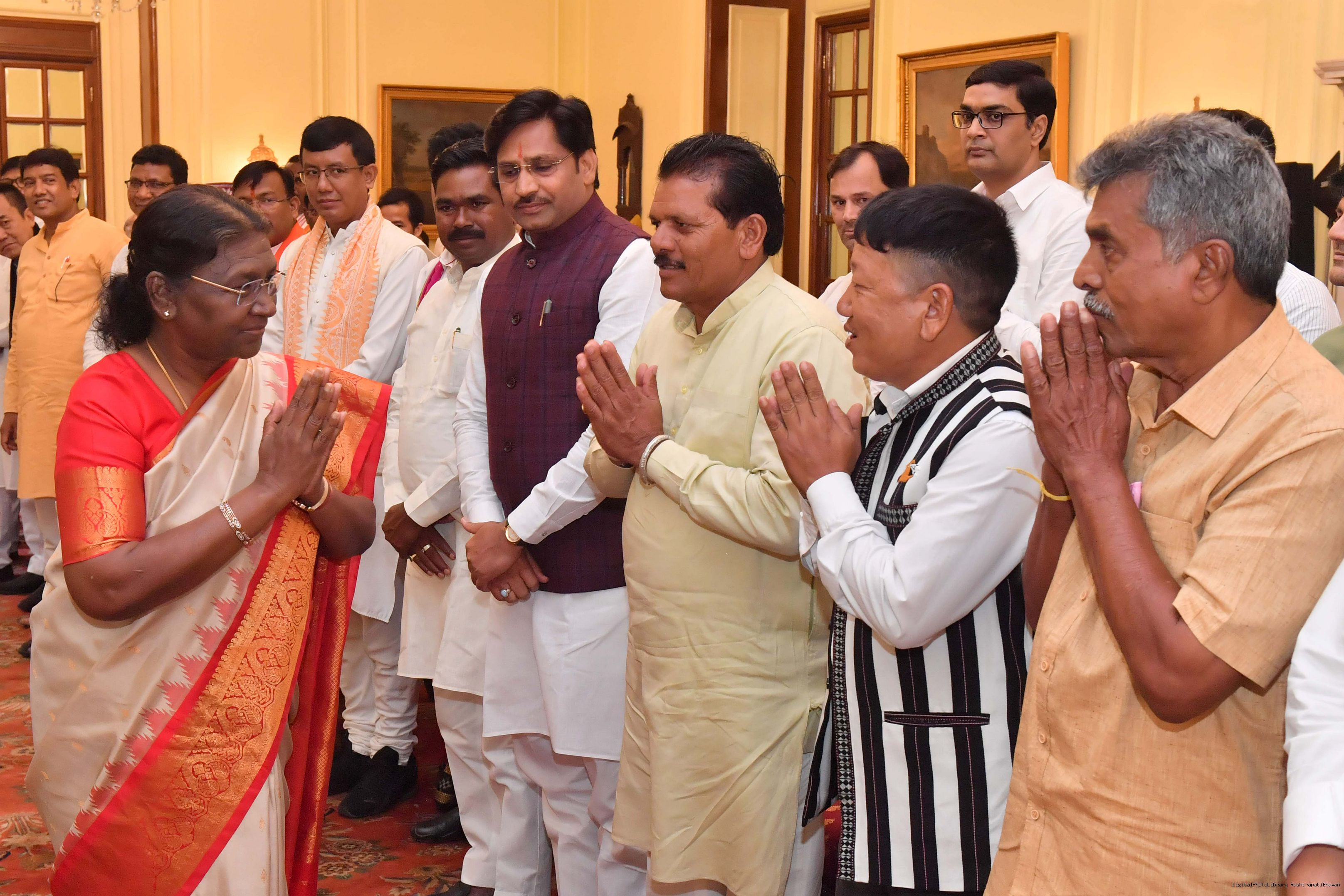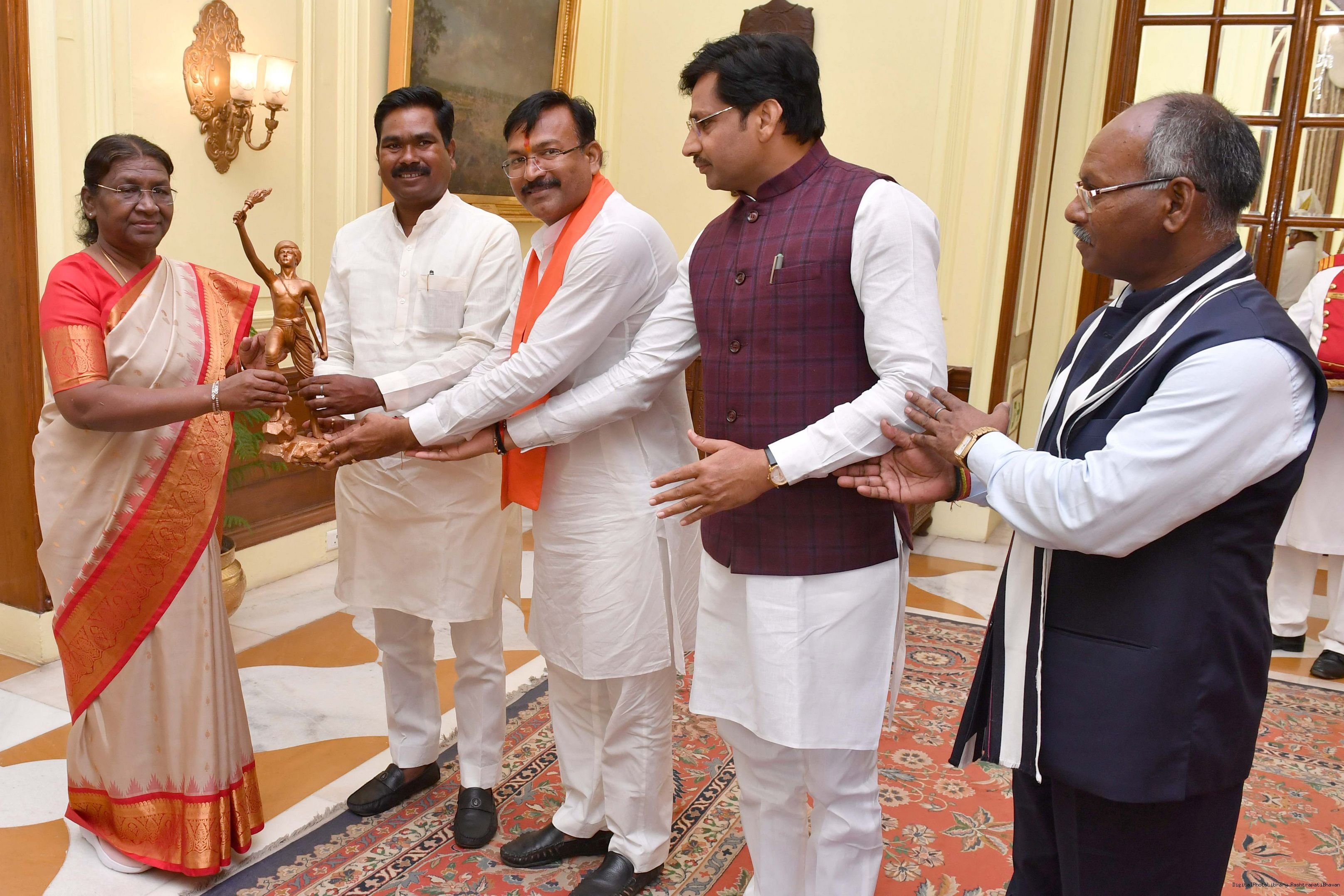 | Caption: | Shri Samir Oraon, MP (Rajya Sabha) along with 52 others meeting with the President of India, Smt. Droupadi Murmu at Rashtrapati Bhavan on July 19, 2023. |