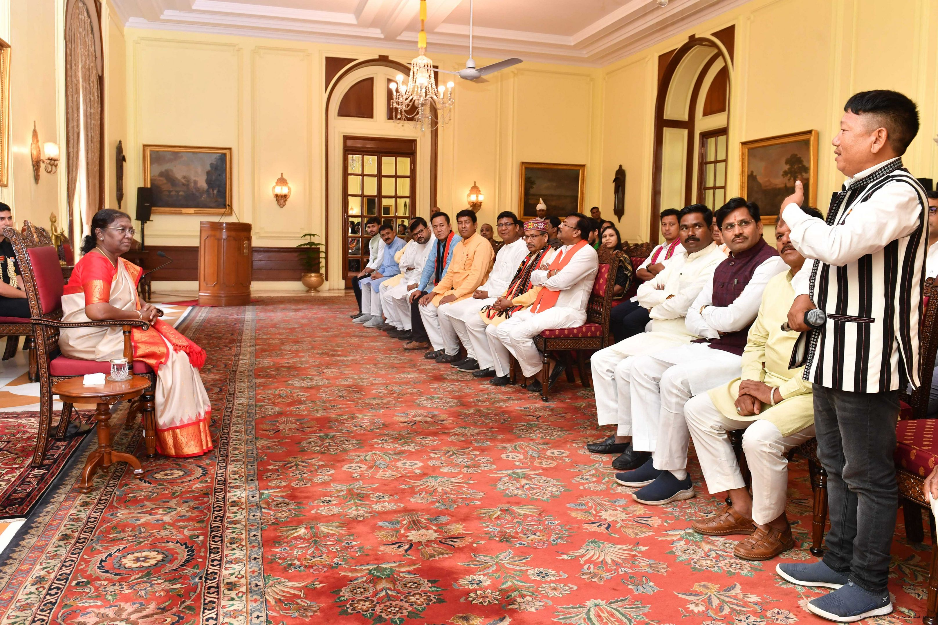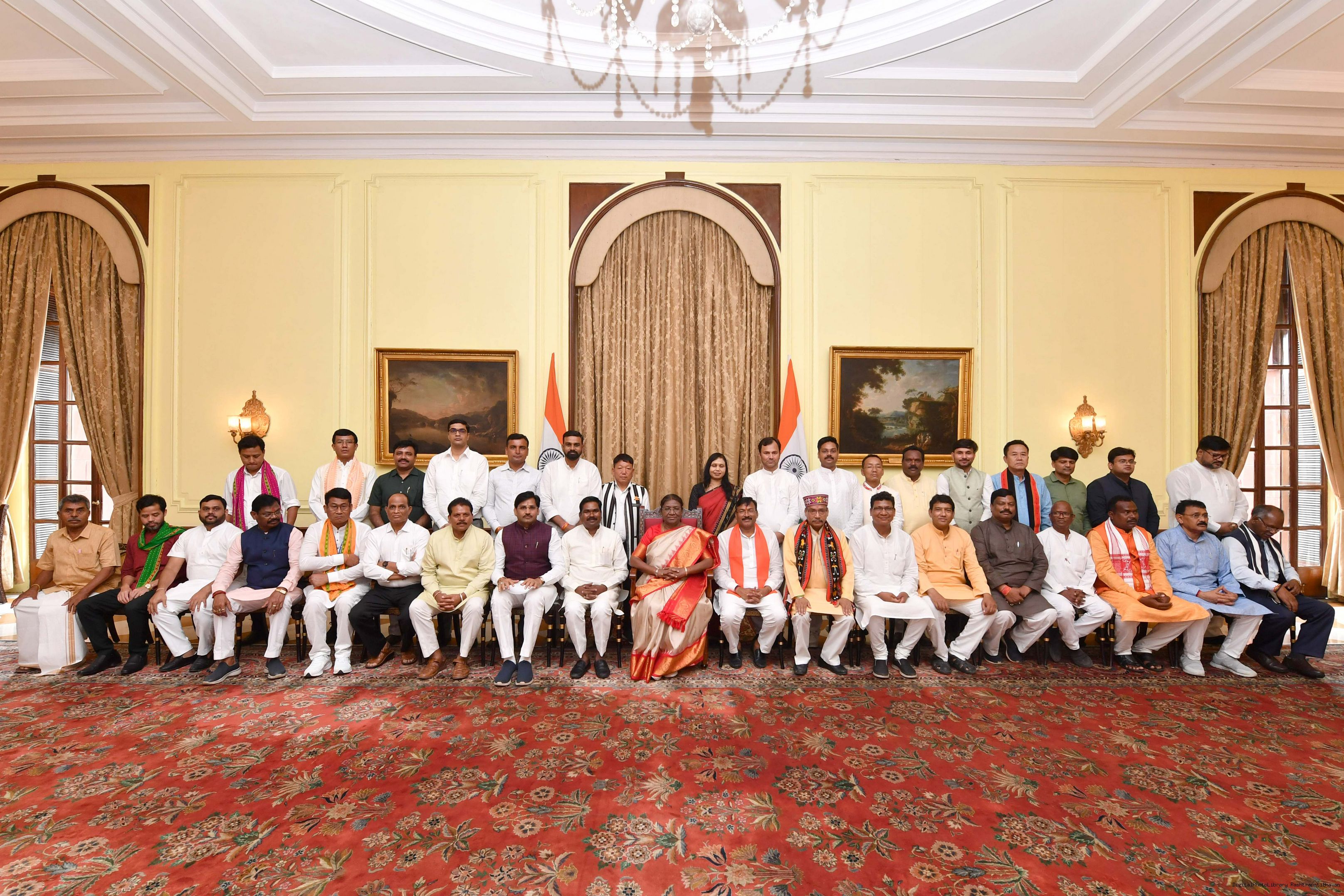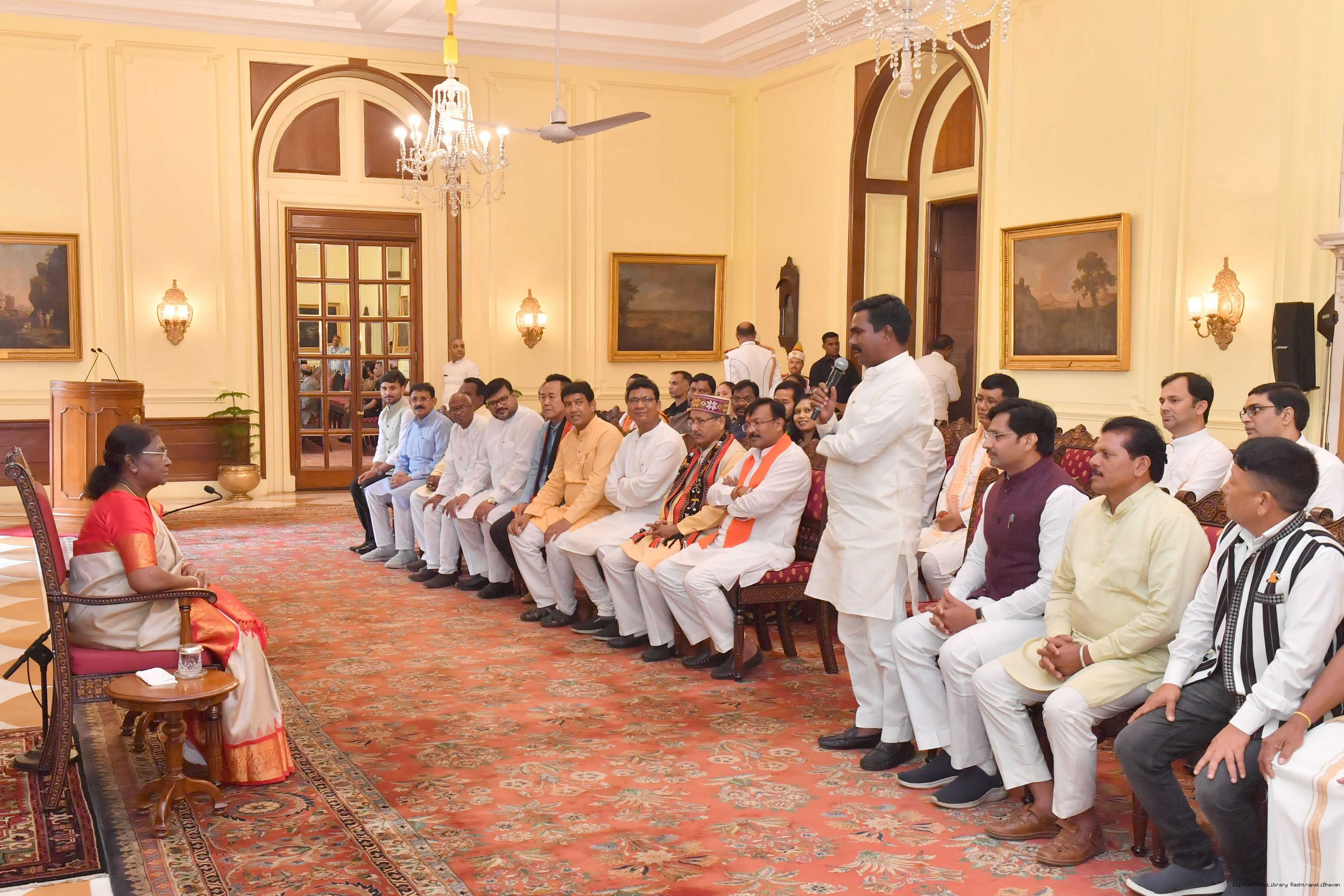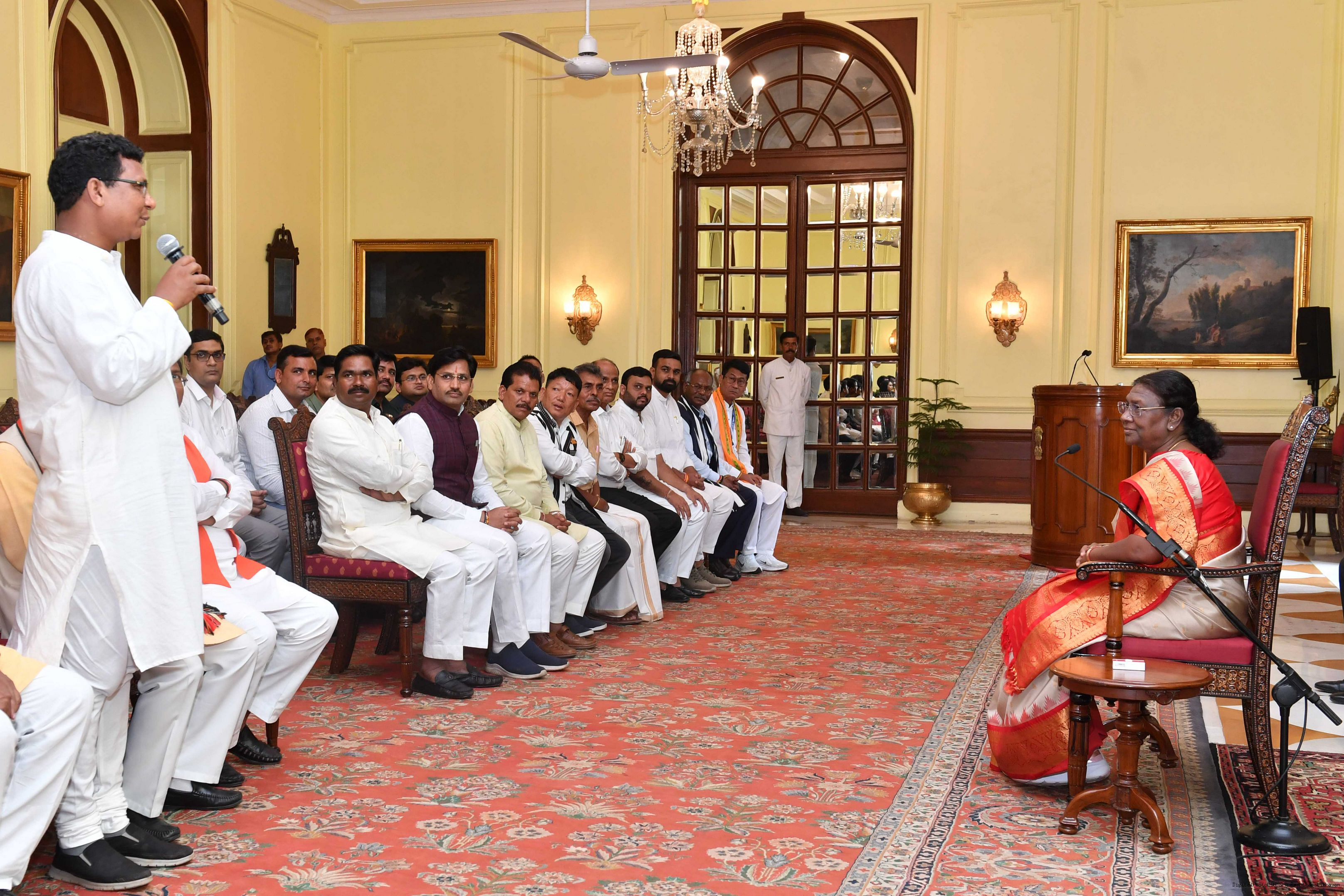 | Caption: | Shri Samir Oraon, MP (Rajya Sabha) along with 52 others meeting with the President of India, Smt. Droupadi Murmu at Rashtrapati Bhavan on July 19, 2023. |