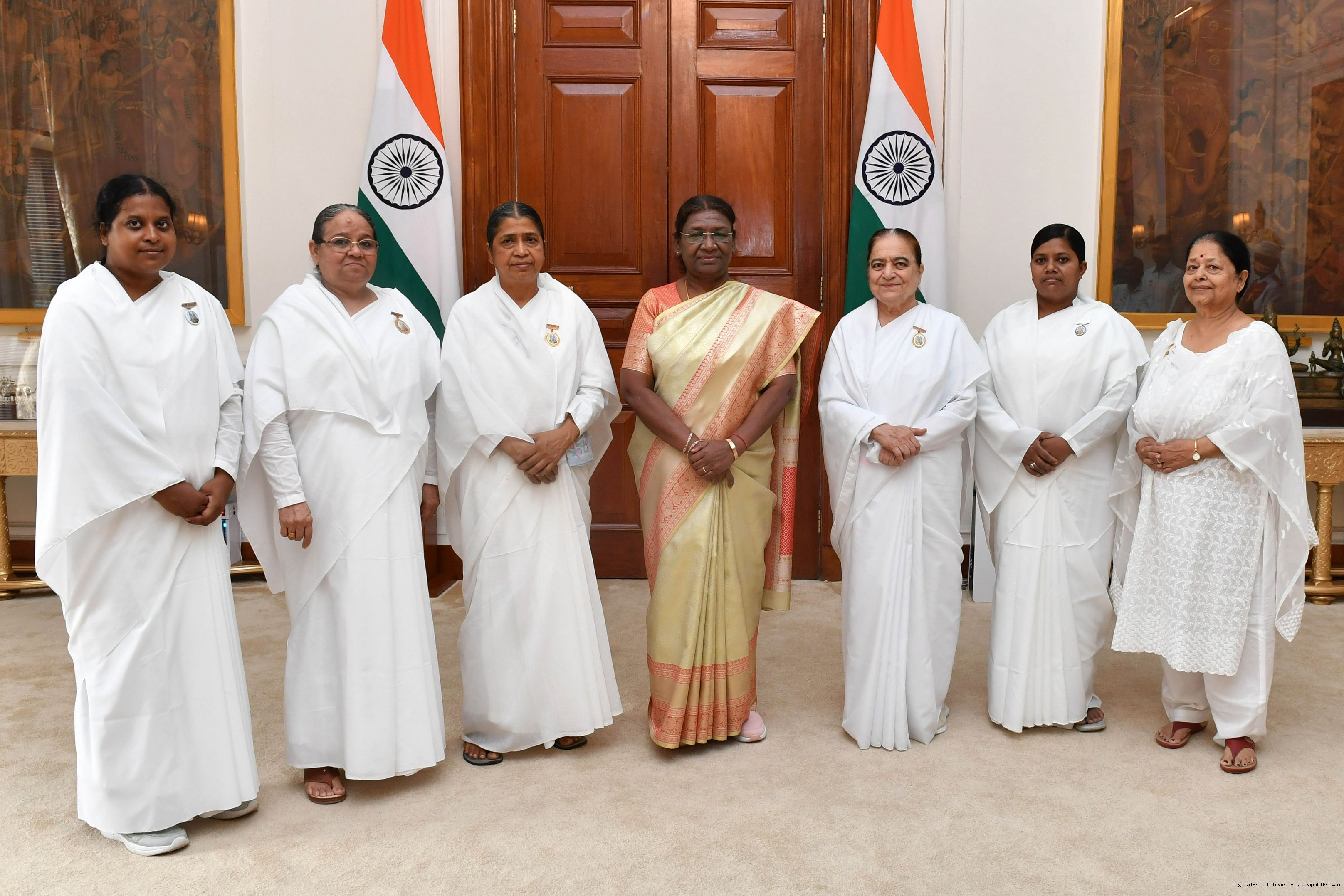 | Caption: | BK Ansuya Behen, Rajyoga Teacher, Delhi along with Others meeting with the President of India, Smt. Droupadi Murmu at Rashtrapati Bhavan on July 19, 2023. |