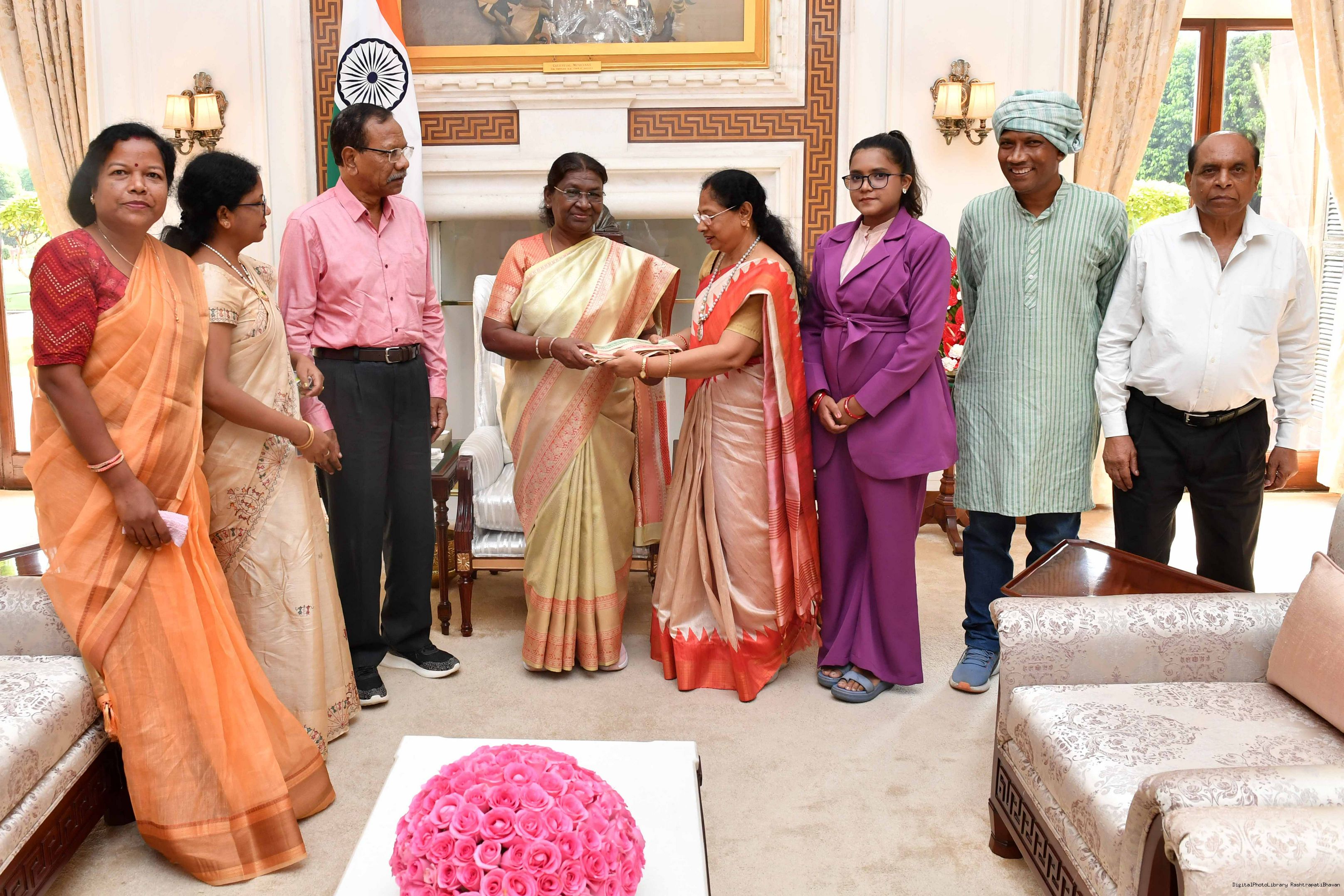 | Caption: | Shri Bikram Charan Munda, along with Others meeting with the President of India, Smt. Droupadi Murmu at Rashtrapati Bhavan on July 19, 2023. |