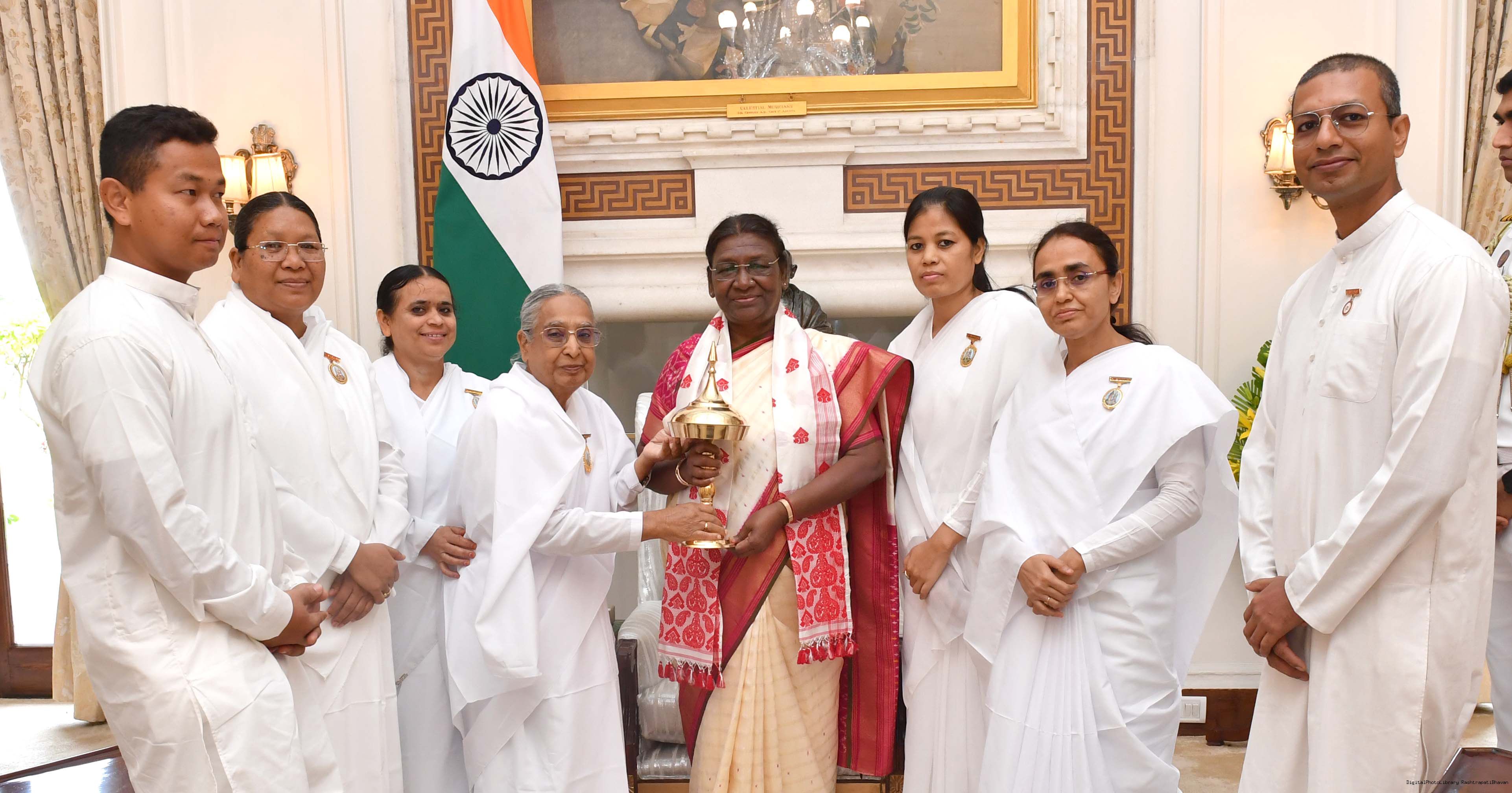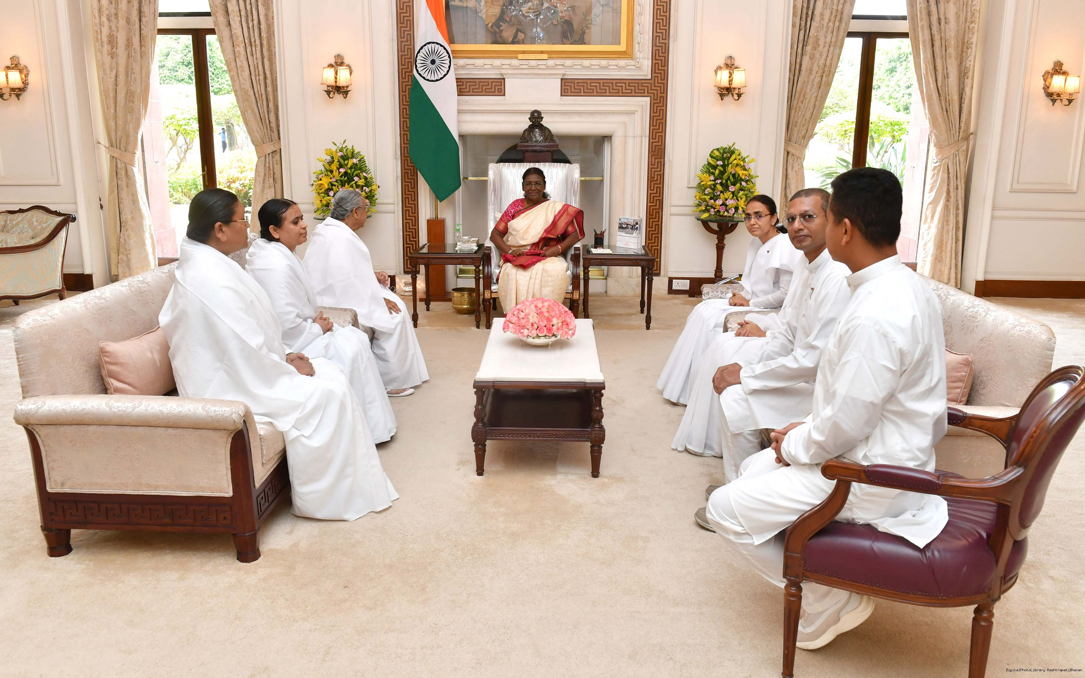 | Caption: | BK Sheela along with others meeting with the President of India, Smt. Droupadi Murmu at Rashtrapati Bhavan on July 20, 2023. |