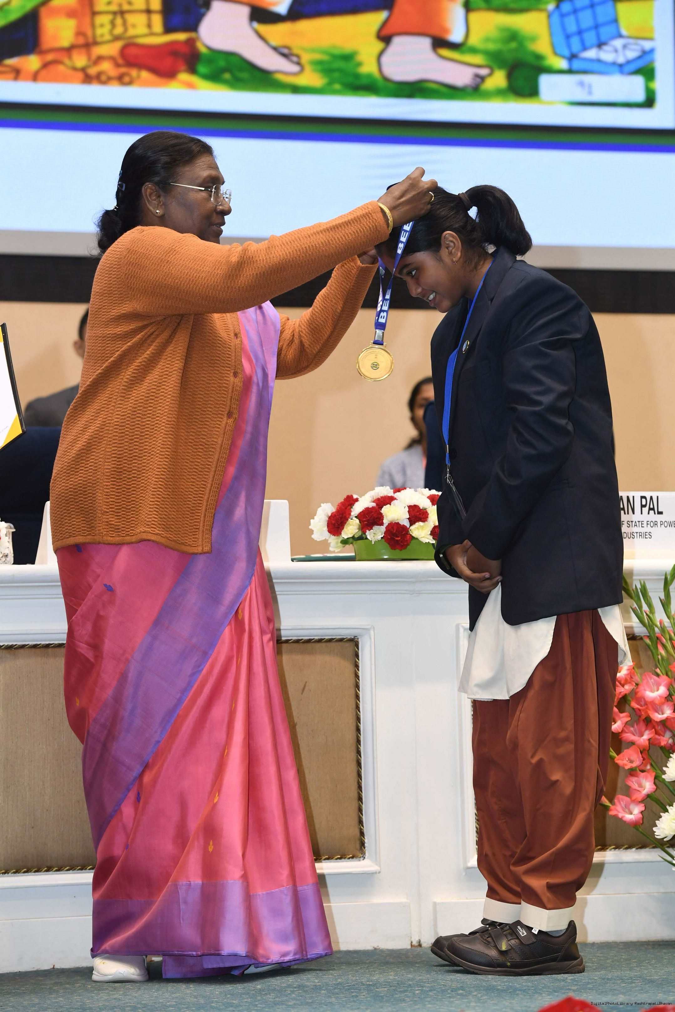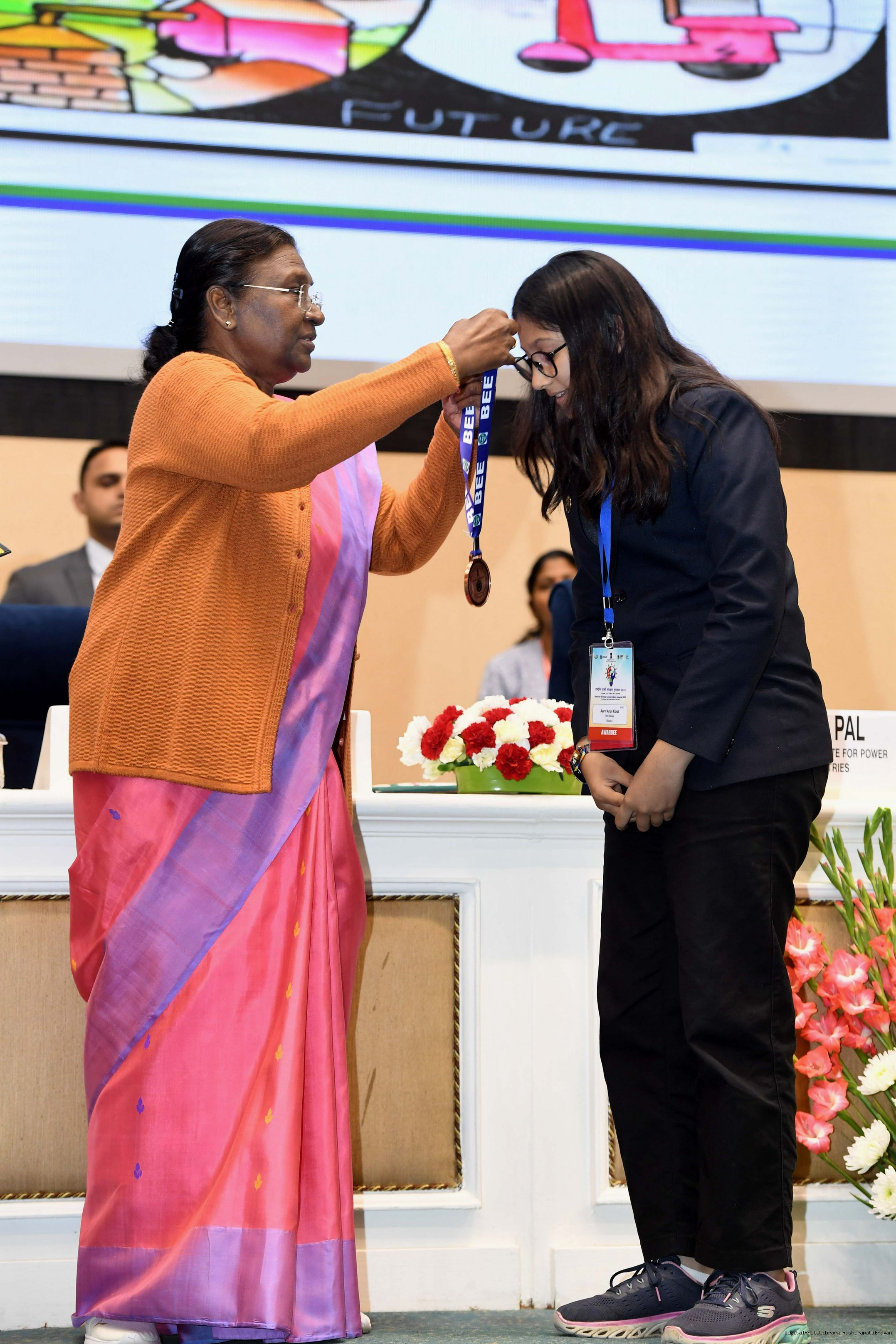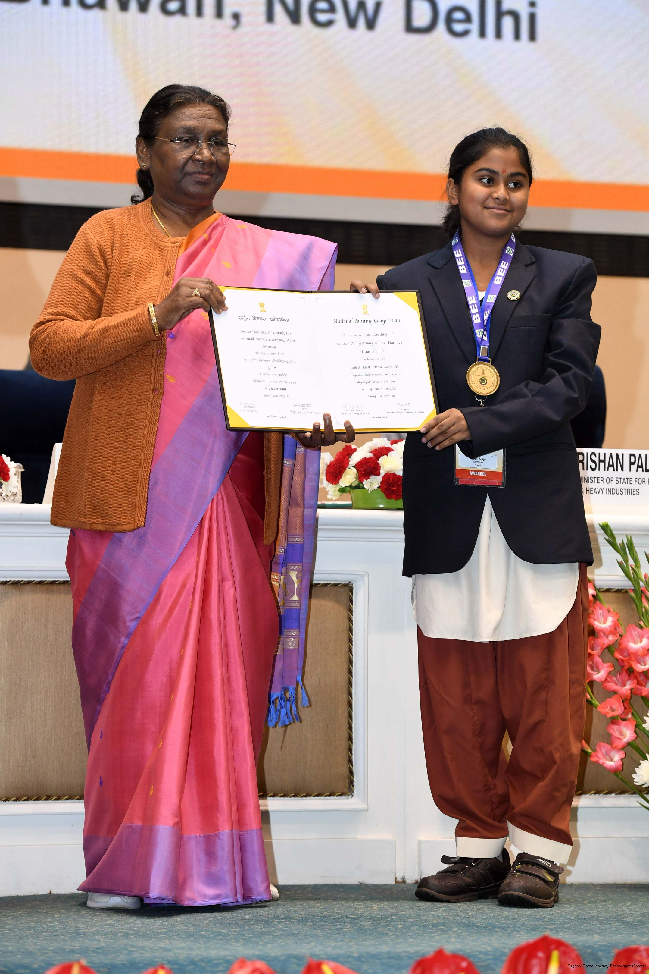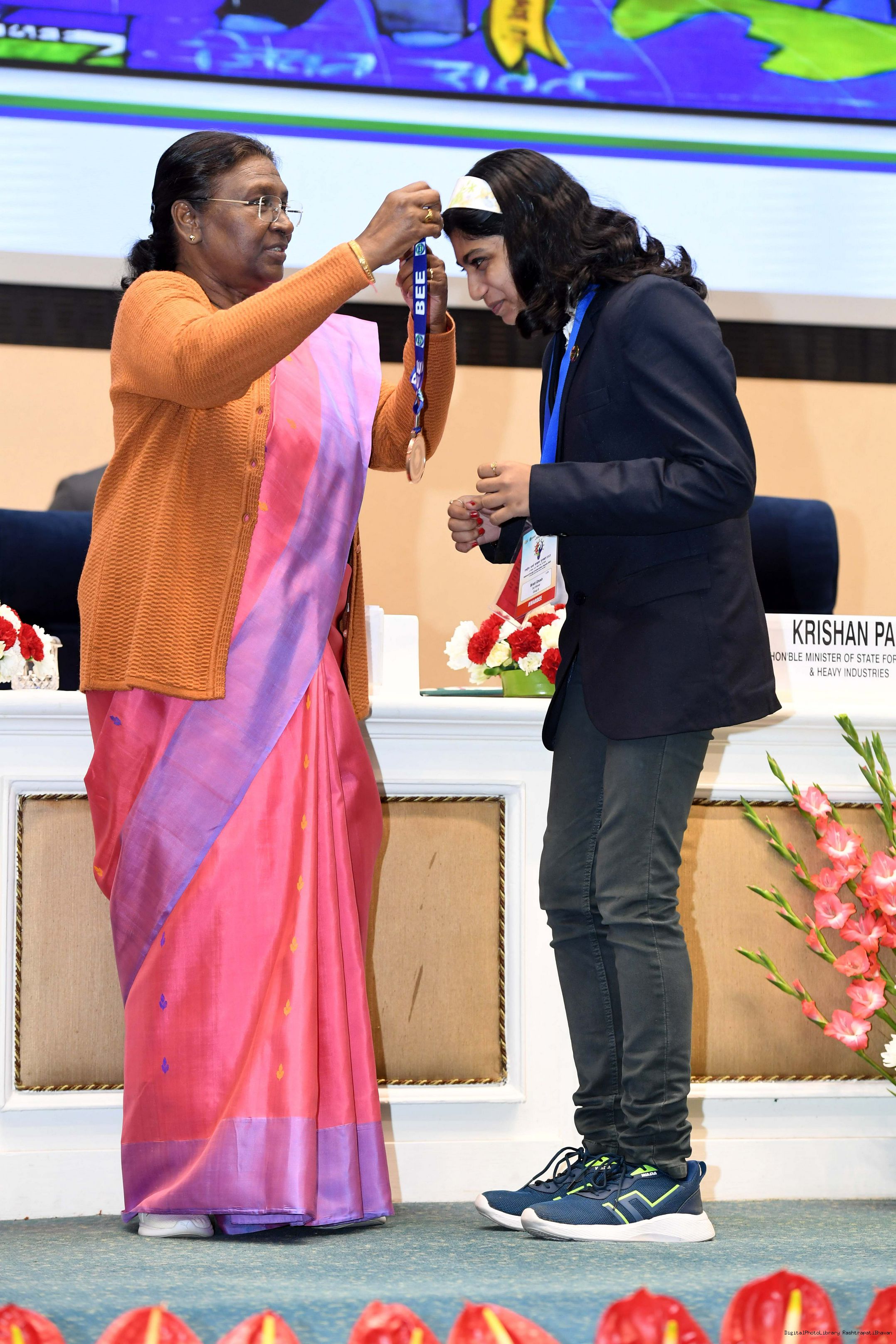 | Caption: | The President of India, Smt Droupadi Murmu presented the National Energy Conservation Awards 2023 and National Painting Competition on Energy Conservation prizes at Vigyan Bhawan in New Delhi on December 14, 2023. |
