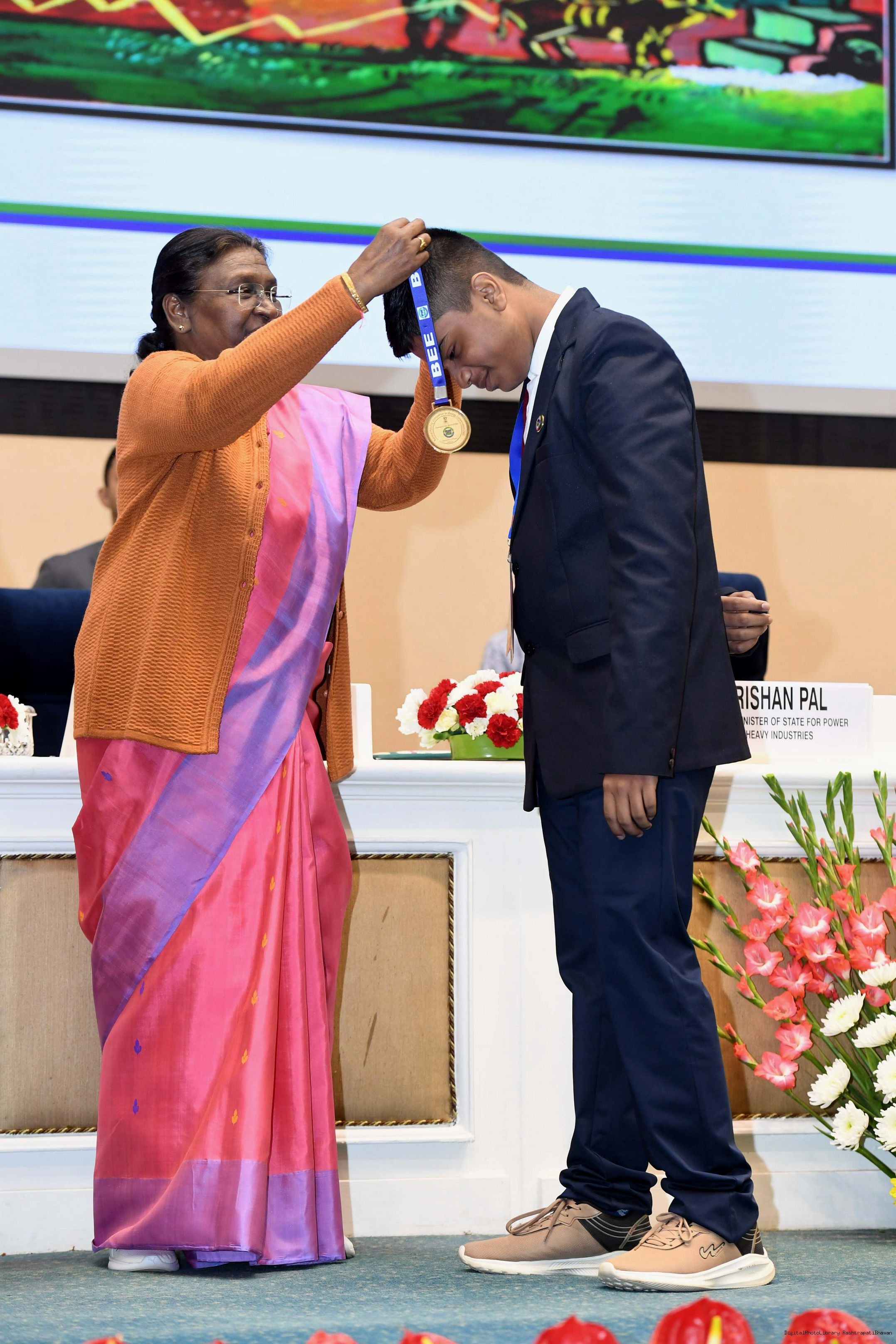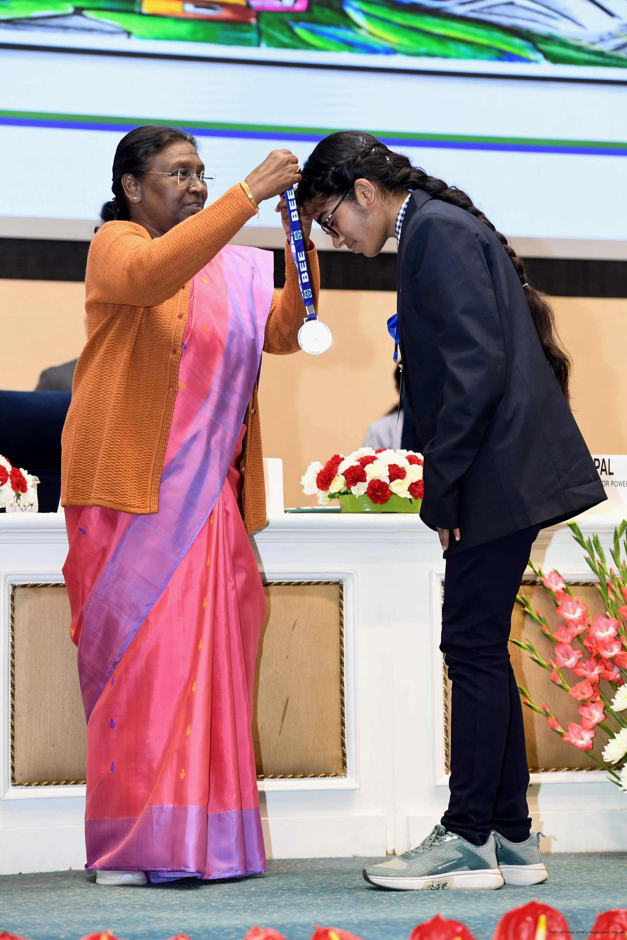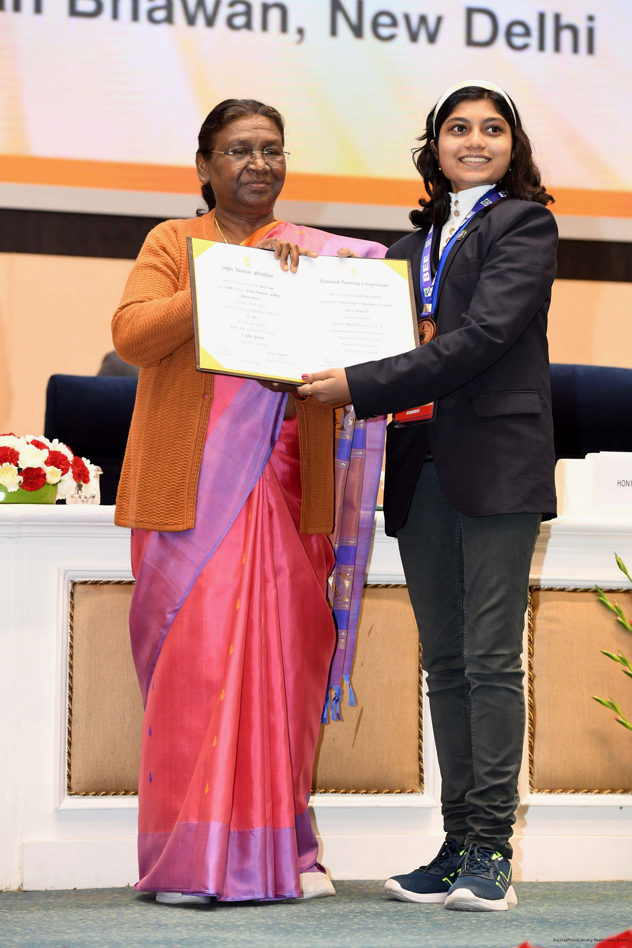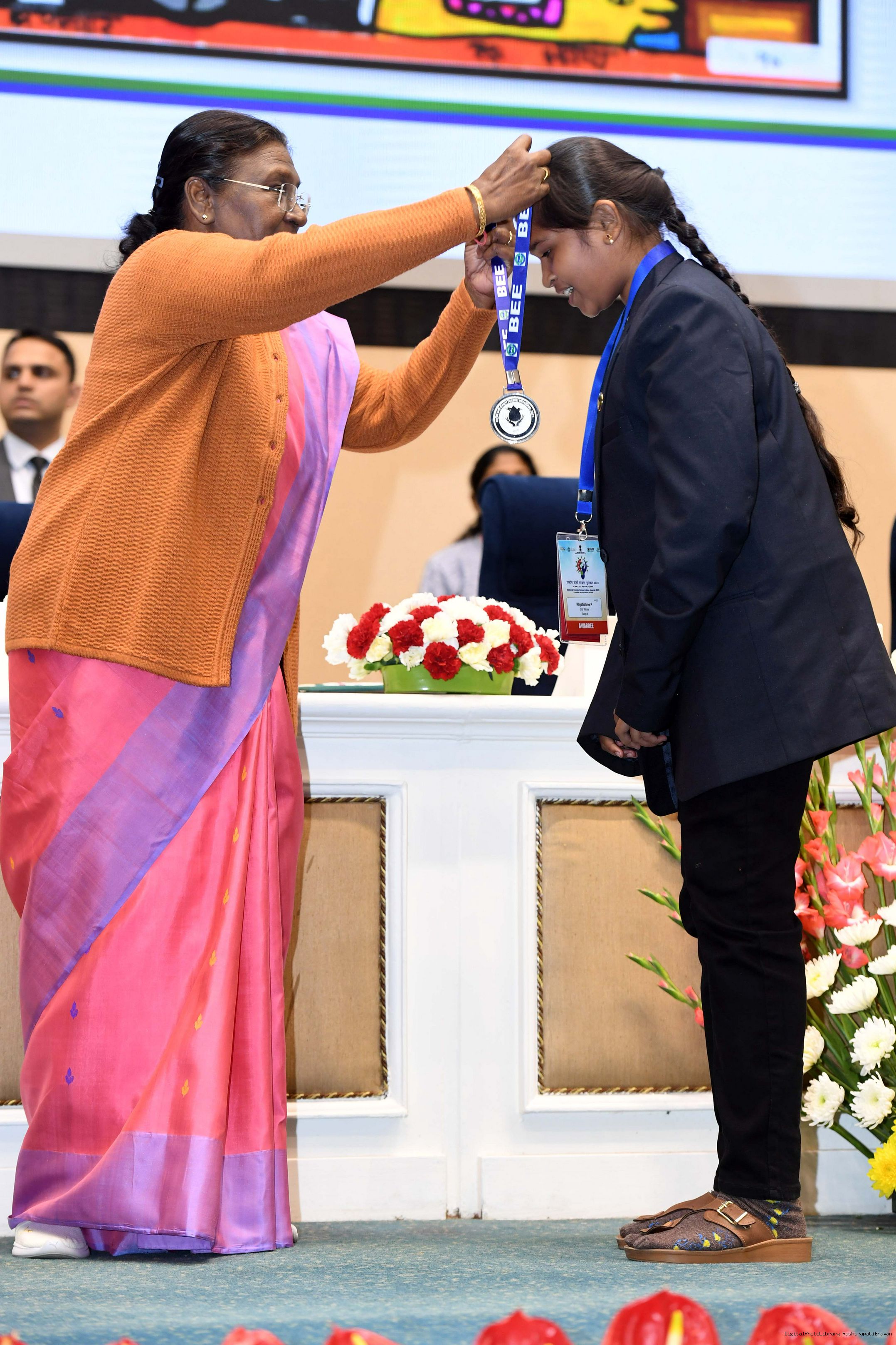 | Caption: | The President of India, Smt Droupadi Murmu presented the National Energy Conservation Awards 2023 and National Painting Competition on Energy Conservation prizes at Vigyan Bhawan in New Delhi on December 14, 2023. |