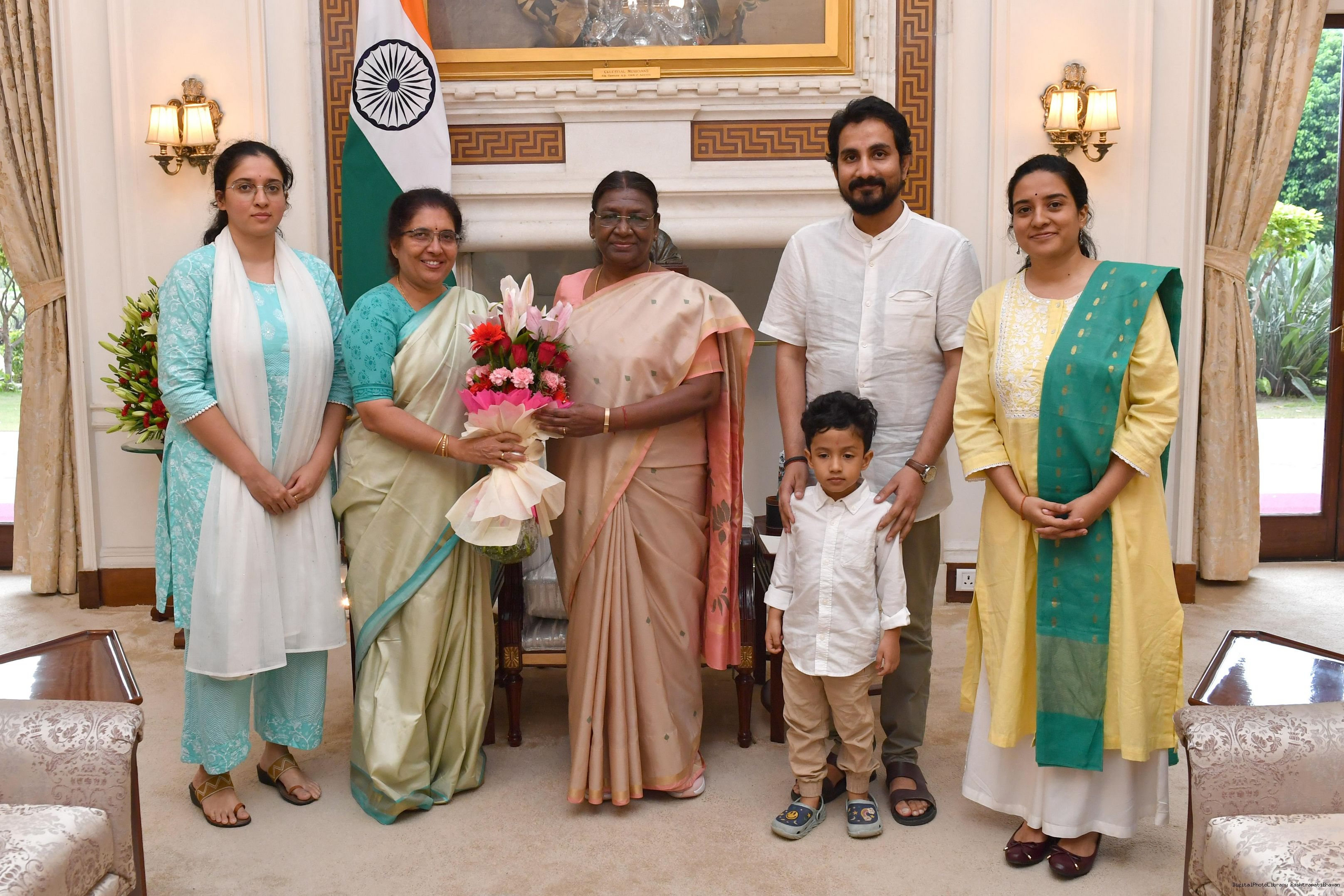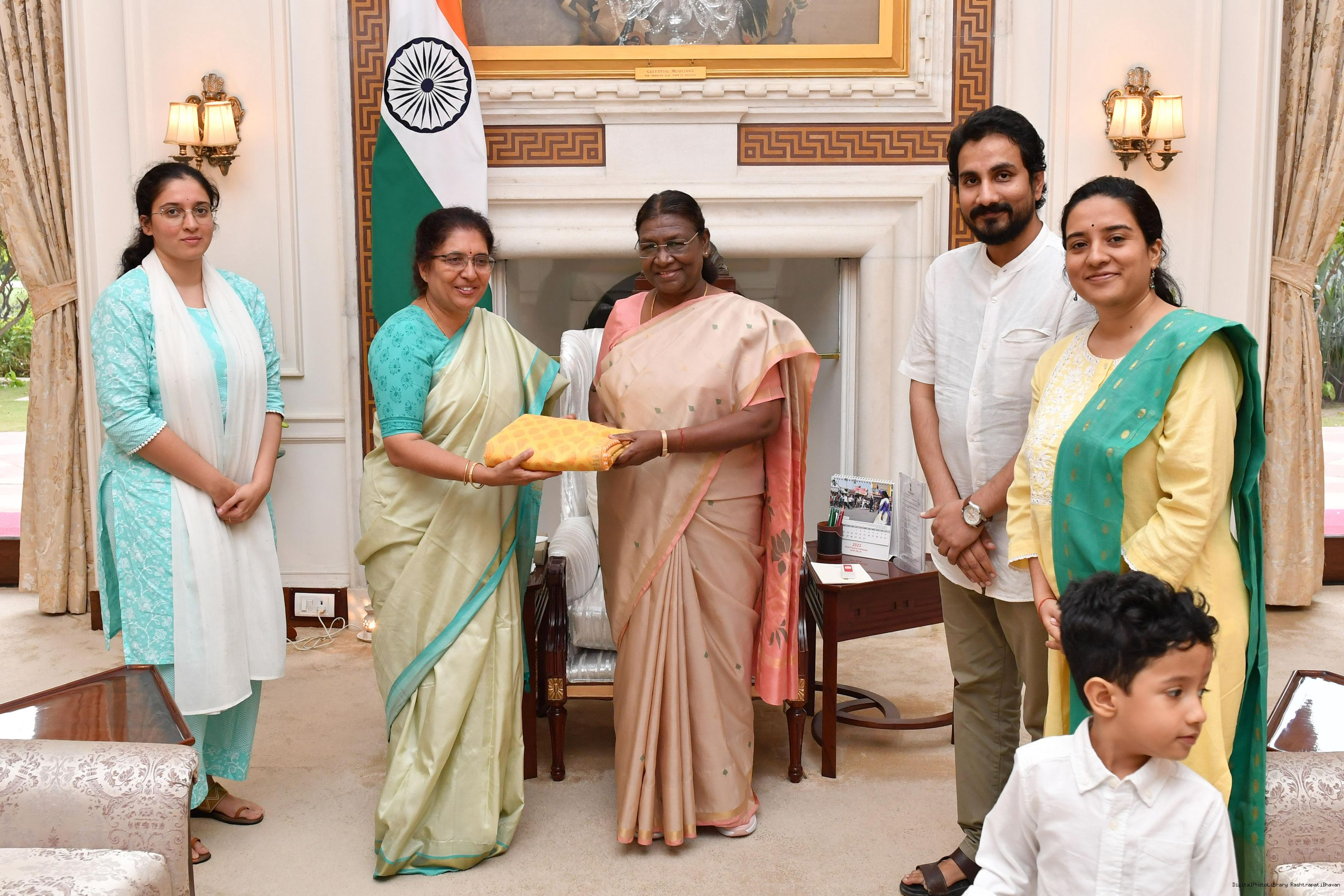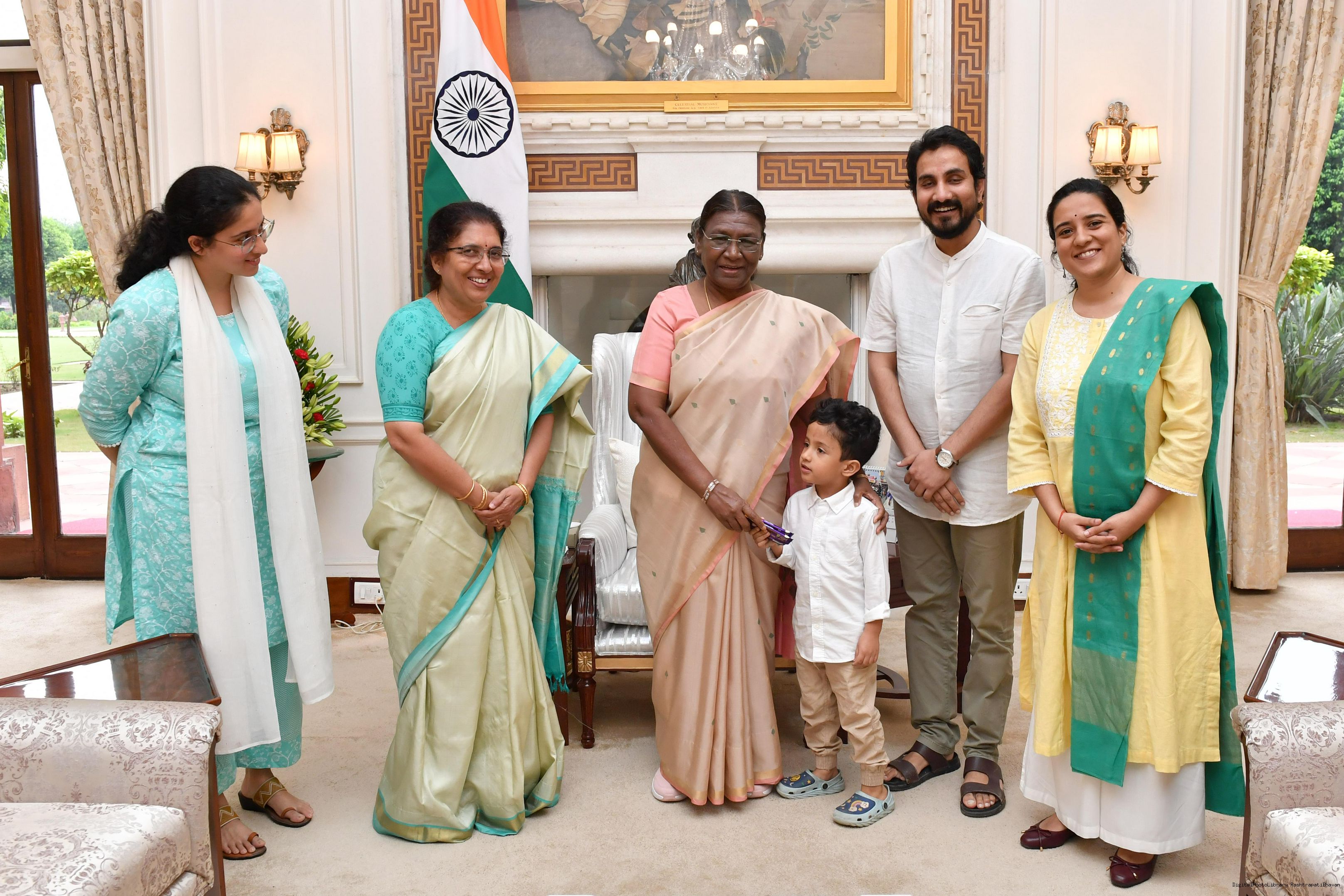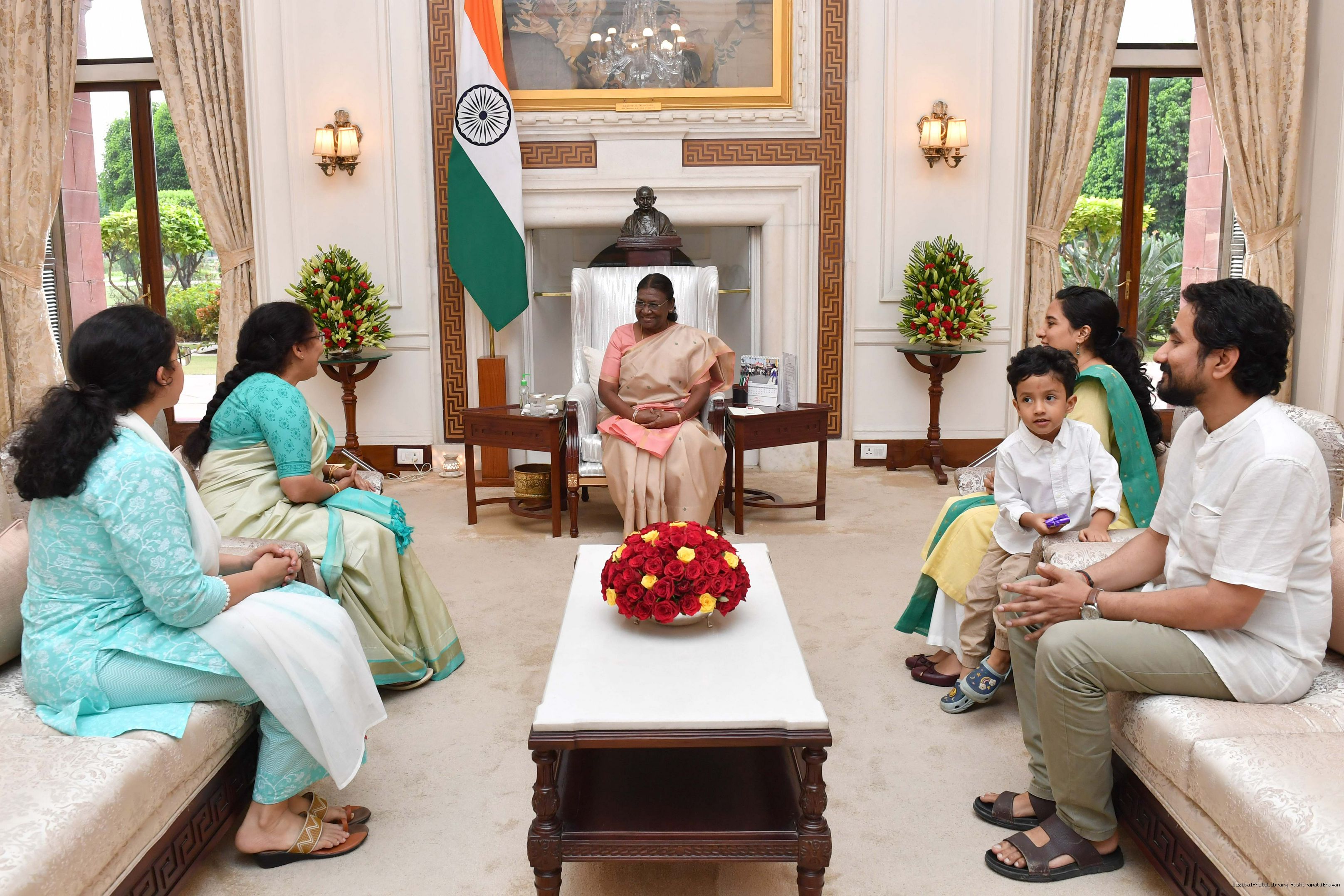 | Caption: | Dr. Tejaswini Ananthkumar, wife of late Shri Ananthakumar along with others meeting with the President of India, Smt. Droupadi Murmu at Rashtrapati Bhavan on July 21, 2023. |