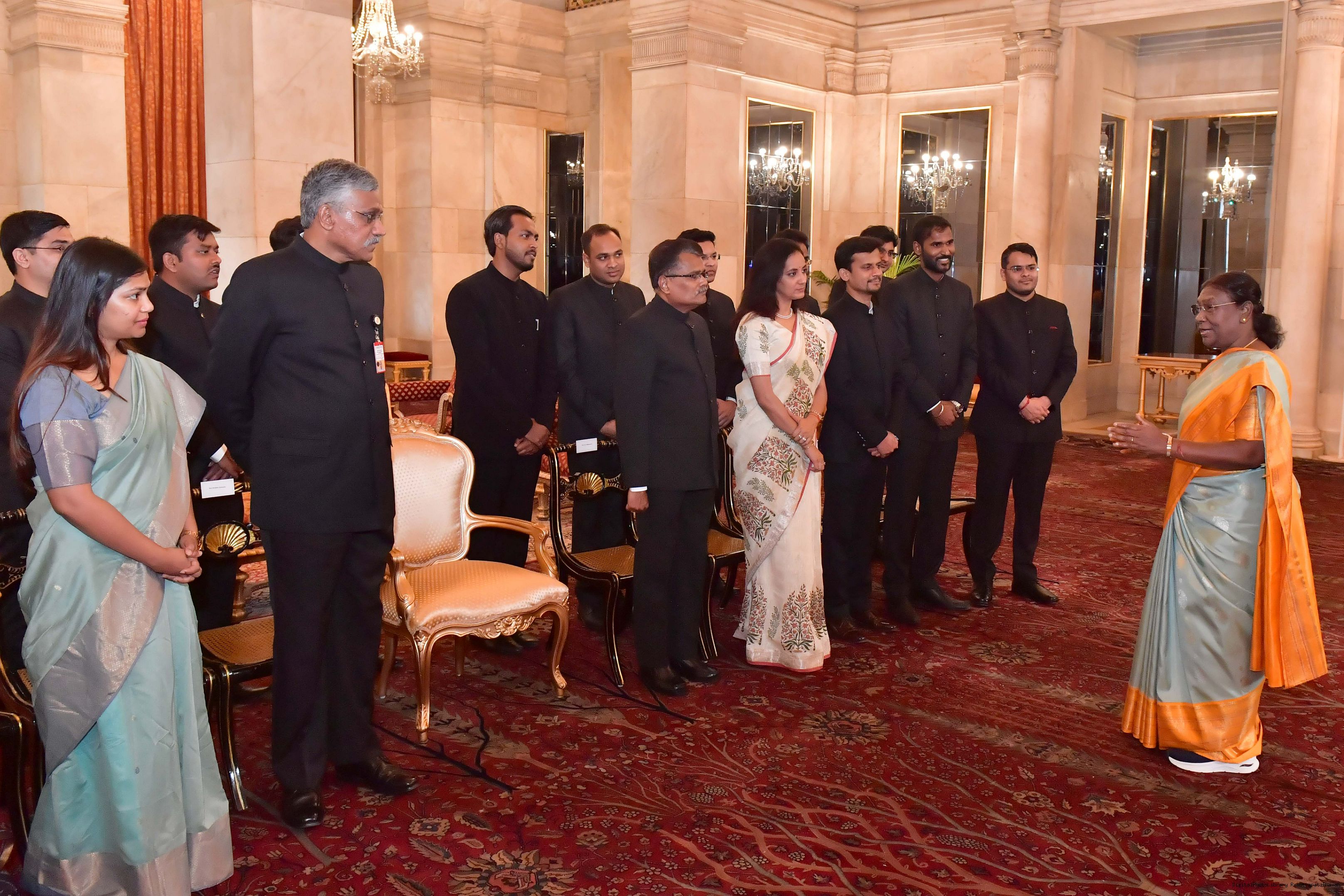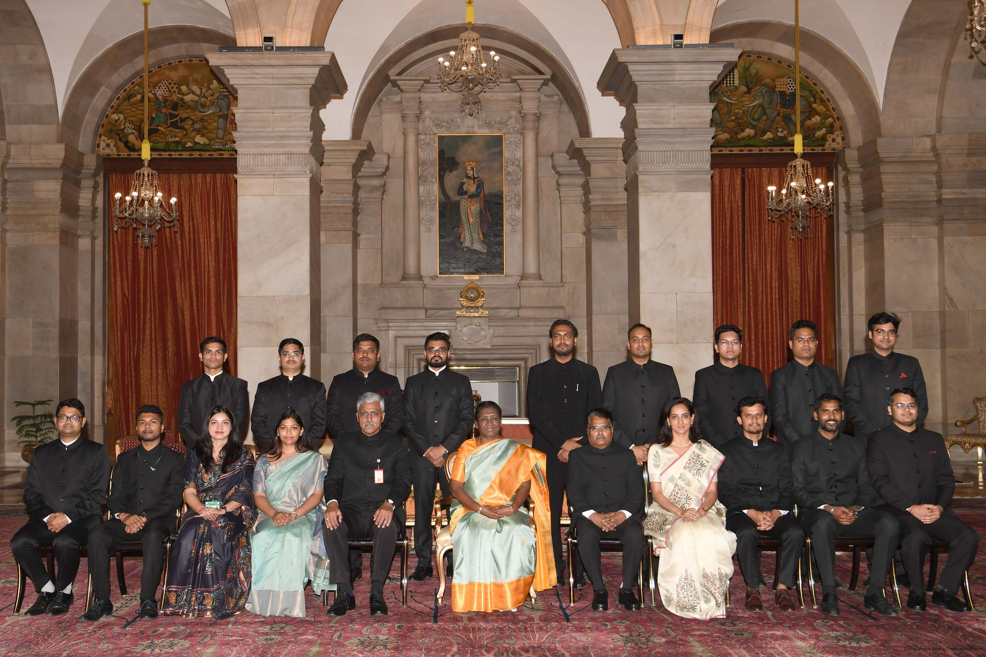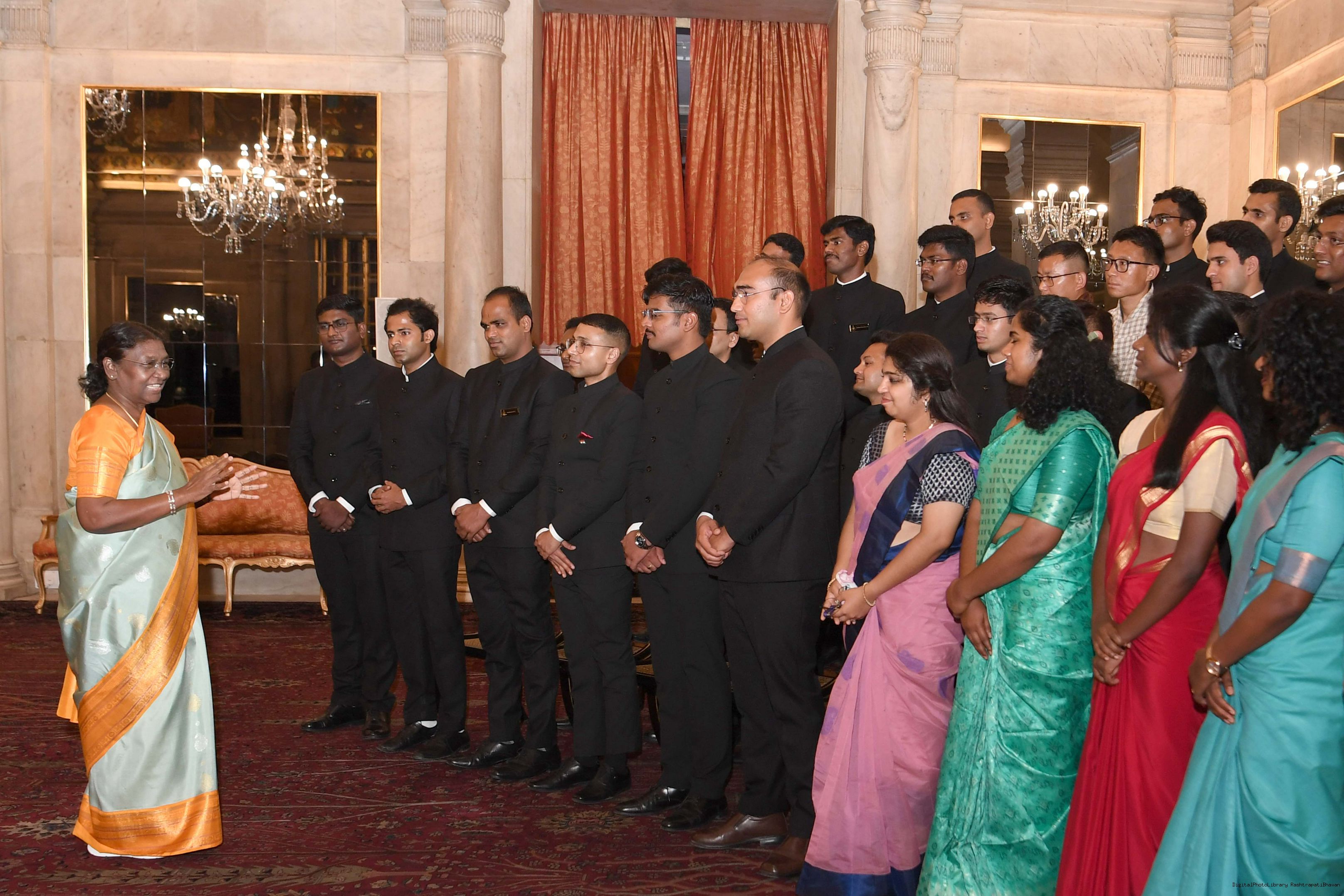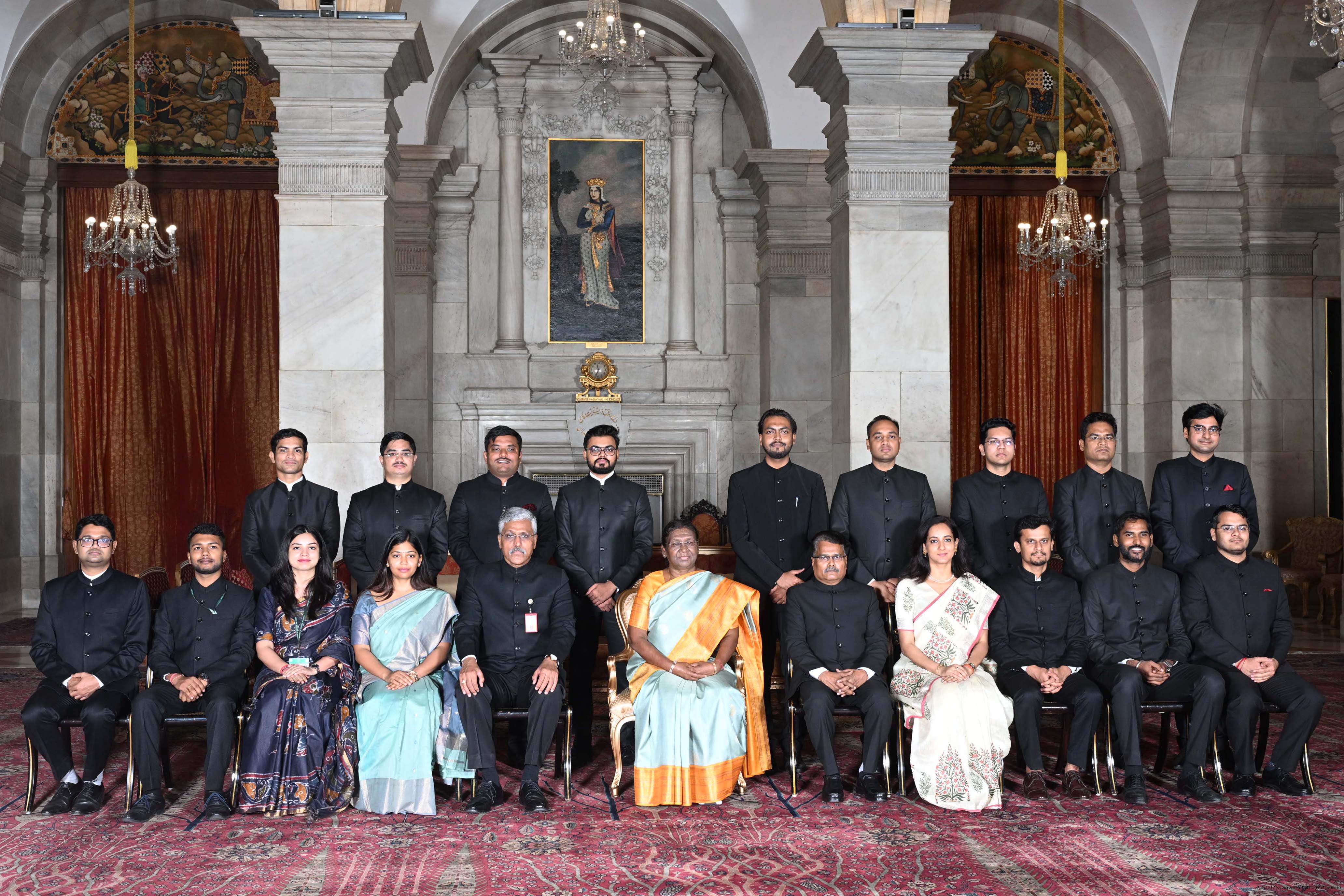 | Caption: | The Probationers of Indian Forest Service (2022 batch) and Officers/Officer Trainees of Indian Defence Estates Service (2018 and 2022 batch) called on the President of India, Smt Droupadi Murmu at Rashtrapati Bhavan on July 24, 2023. |