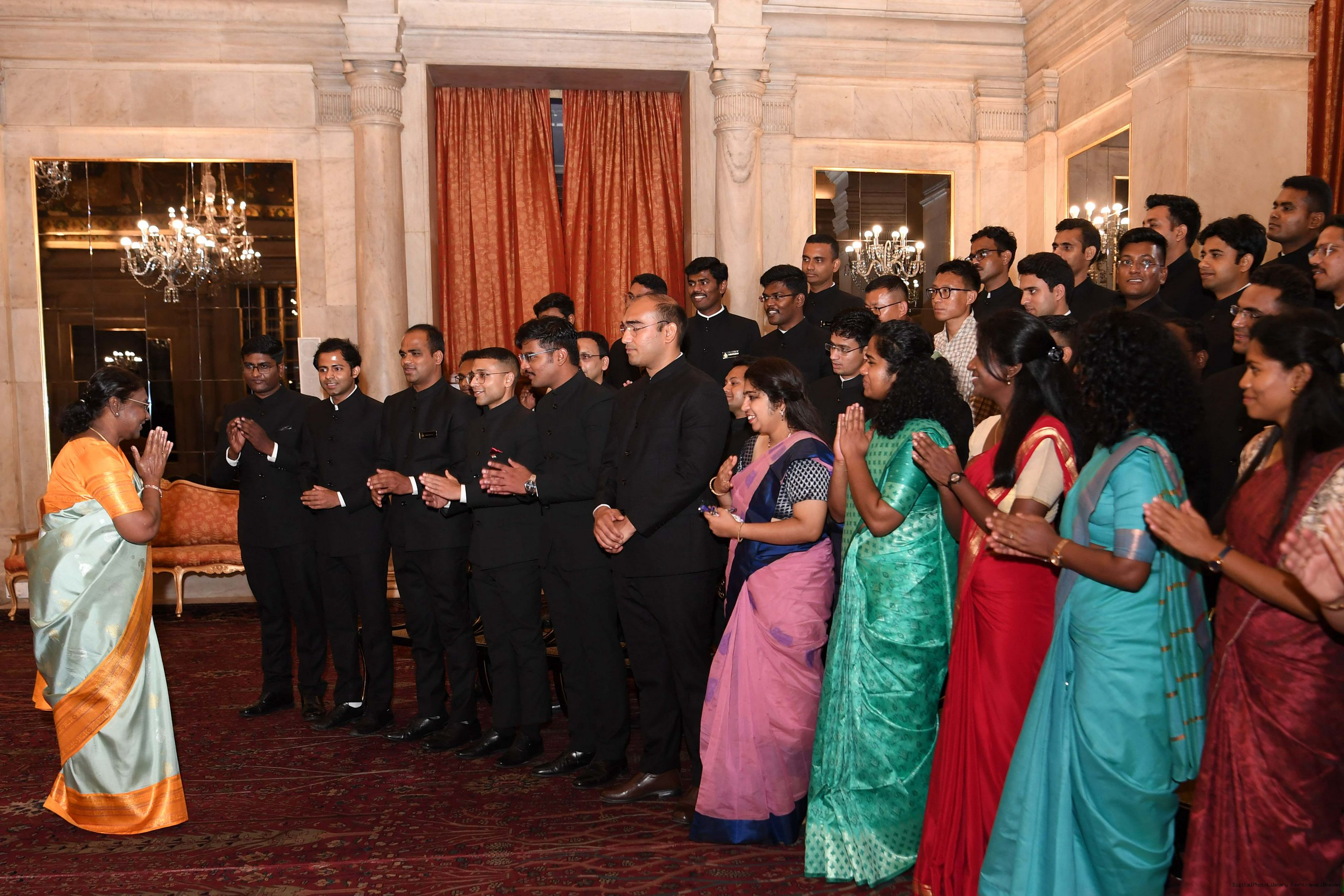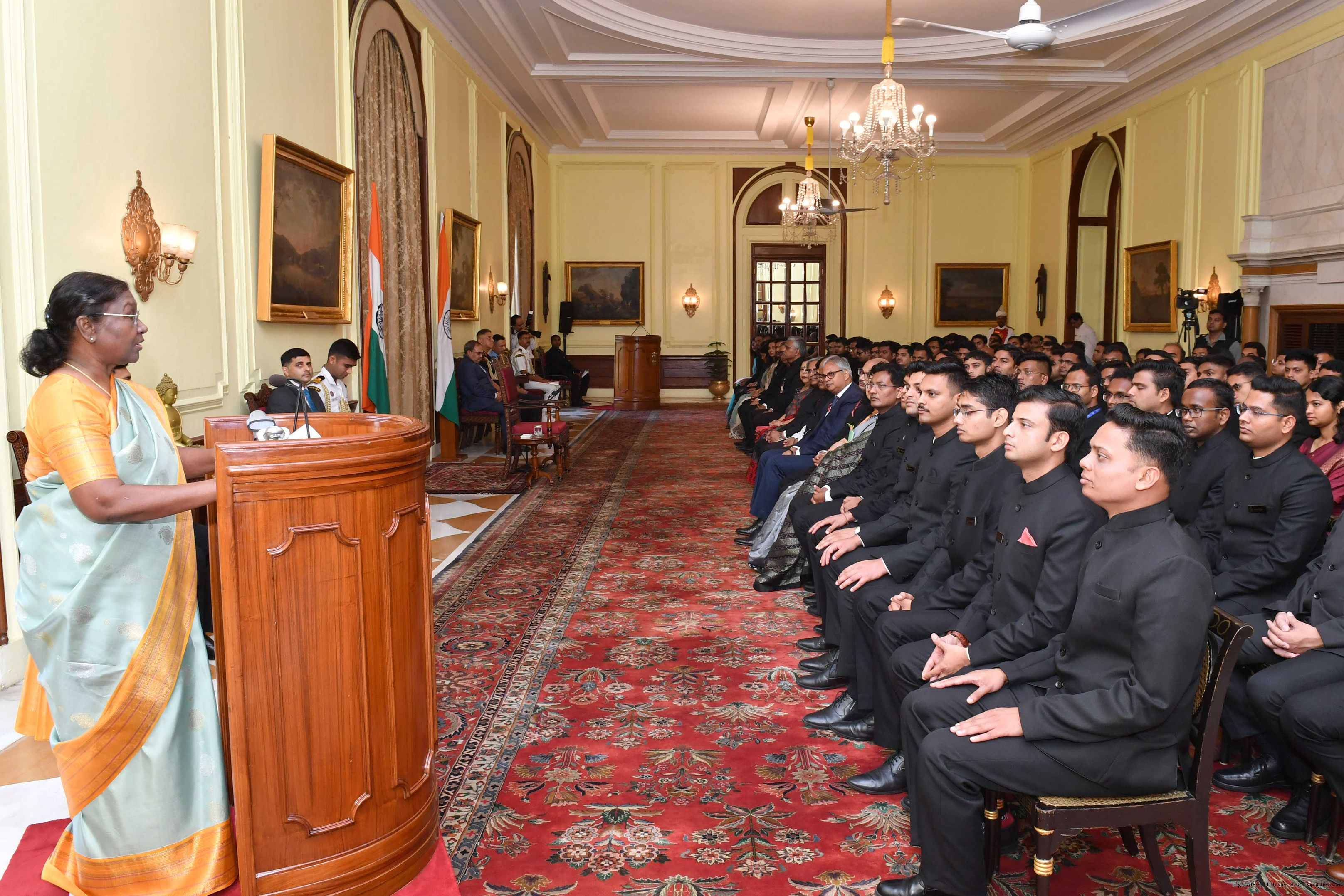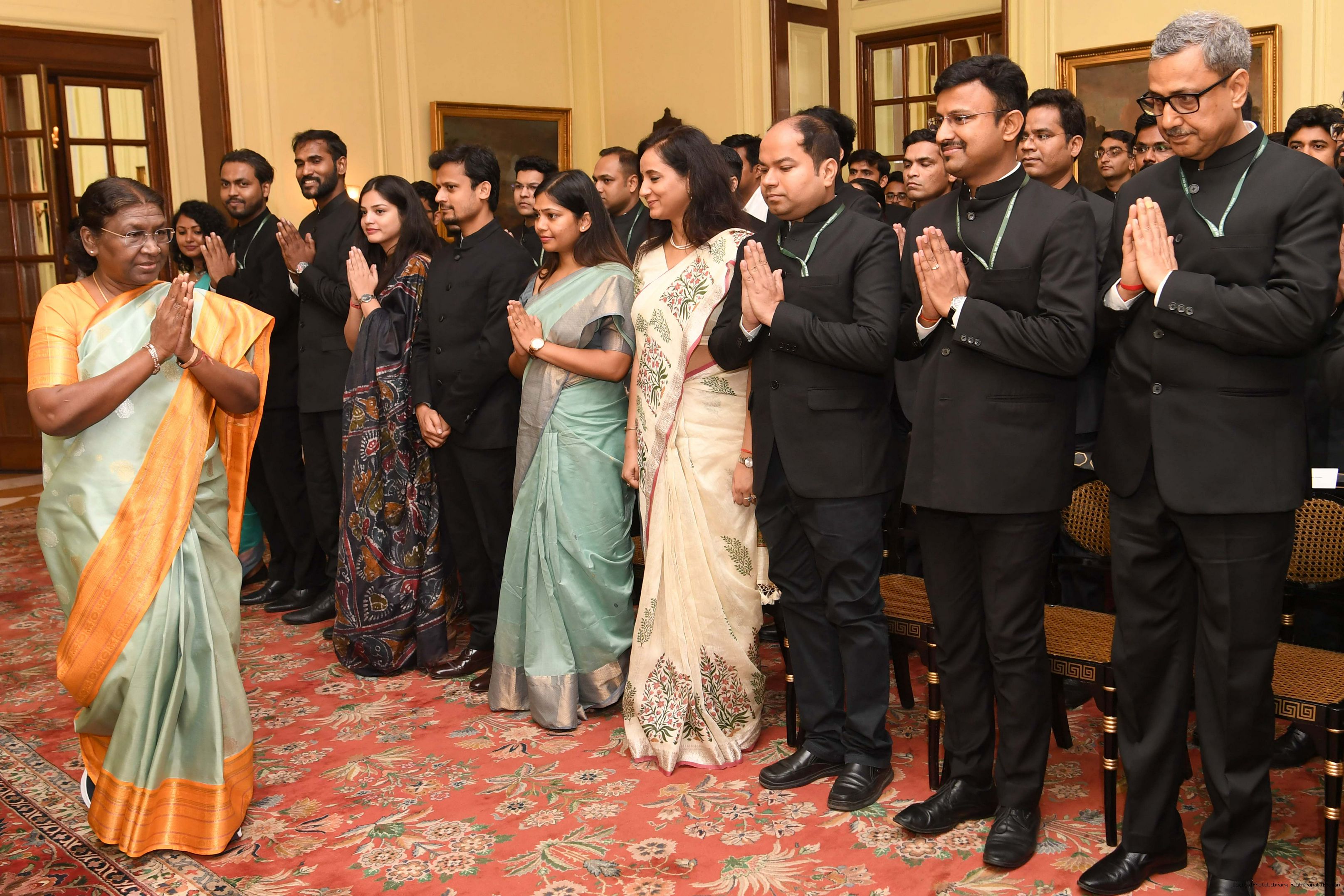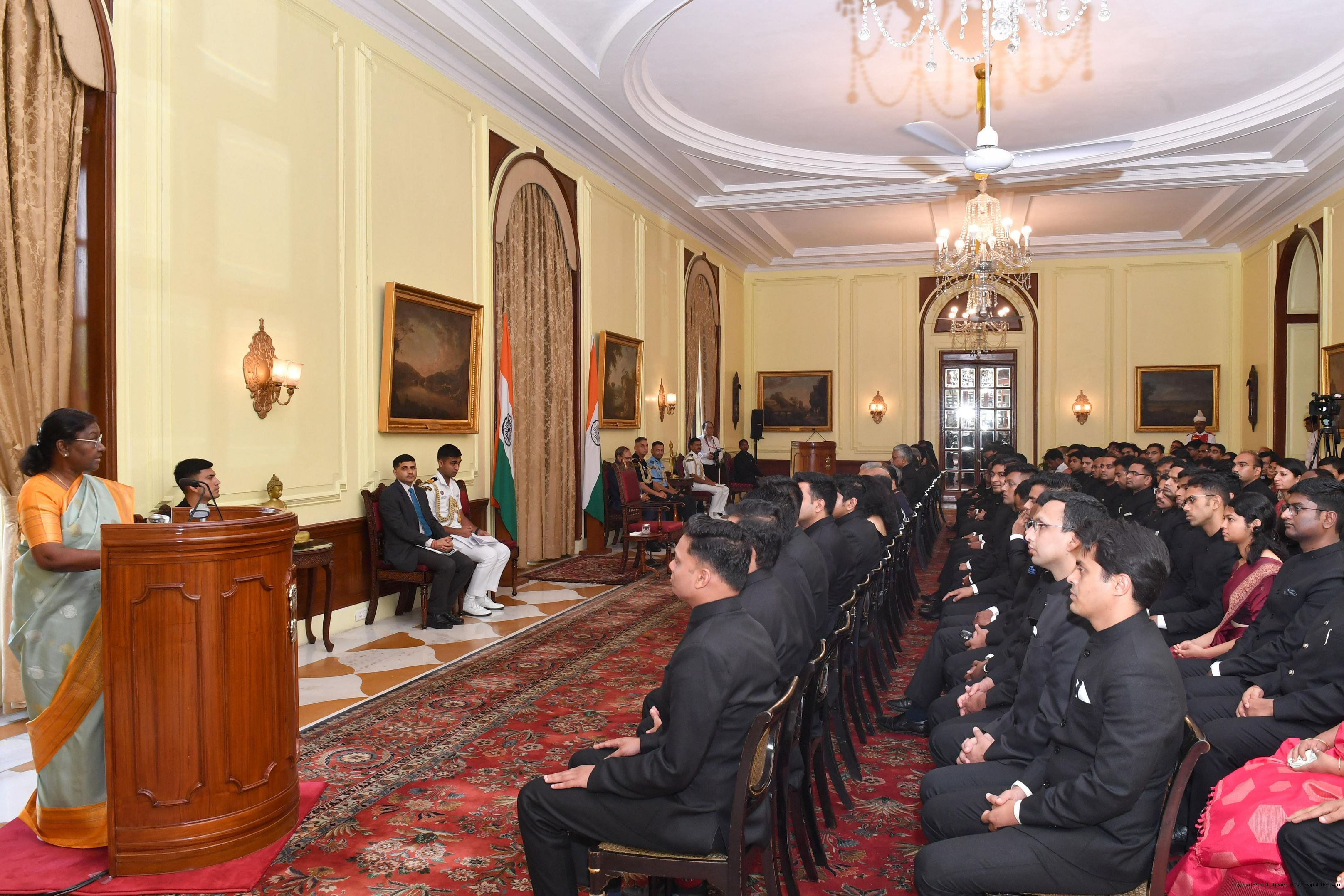 | Caption: | The Probationers of Indian Forest Service (2022 batch) and Officers/Officer Trainees of Indian Defence Estates Service (2018 and 2022 batch) called on the President of India, Smt Droupadi Murmu at Rashtrapati Bhavan on July 24, 2023. |