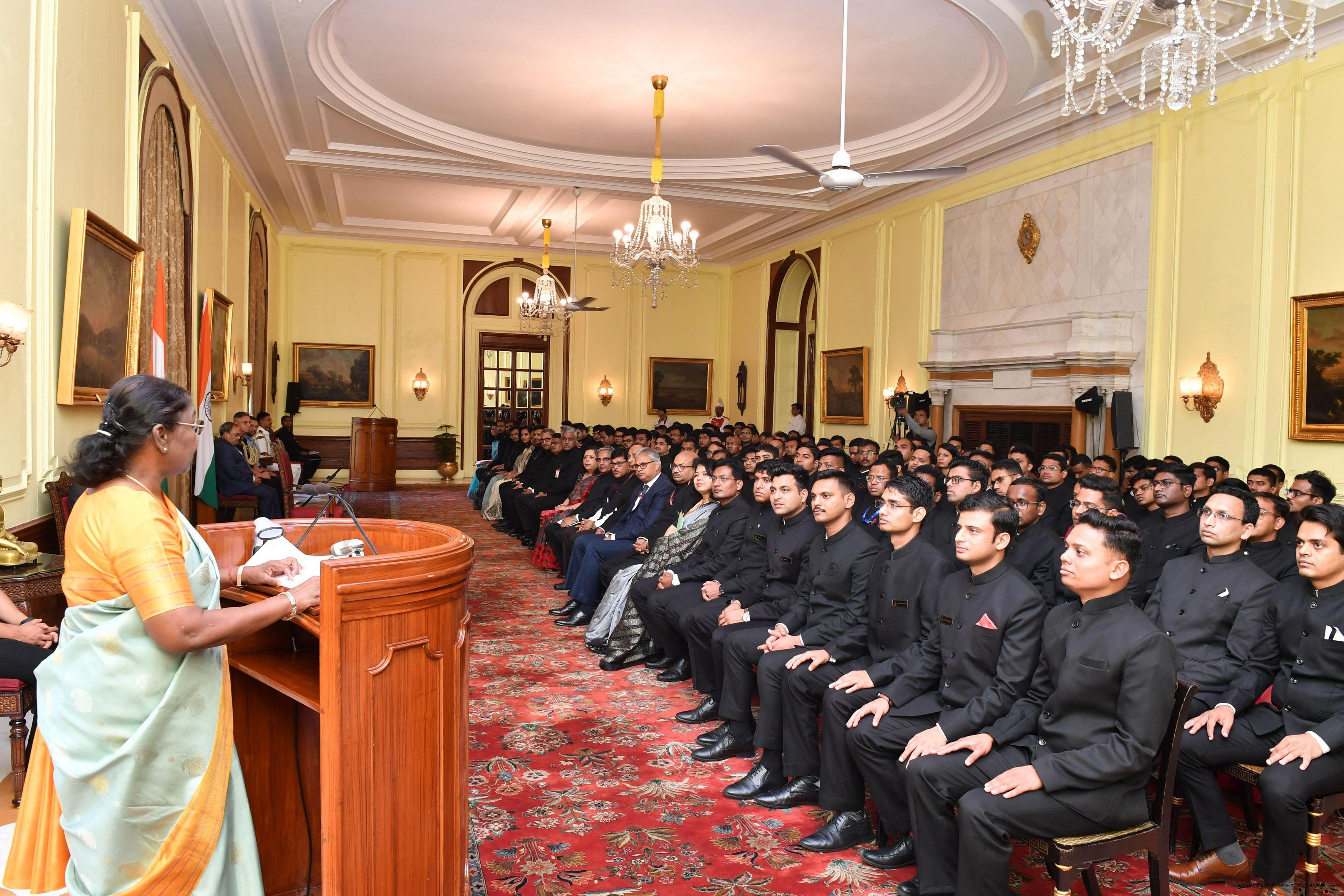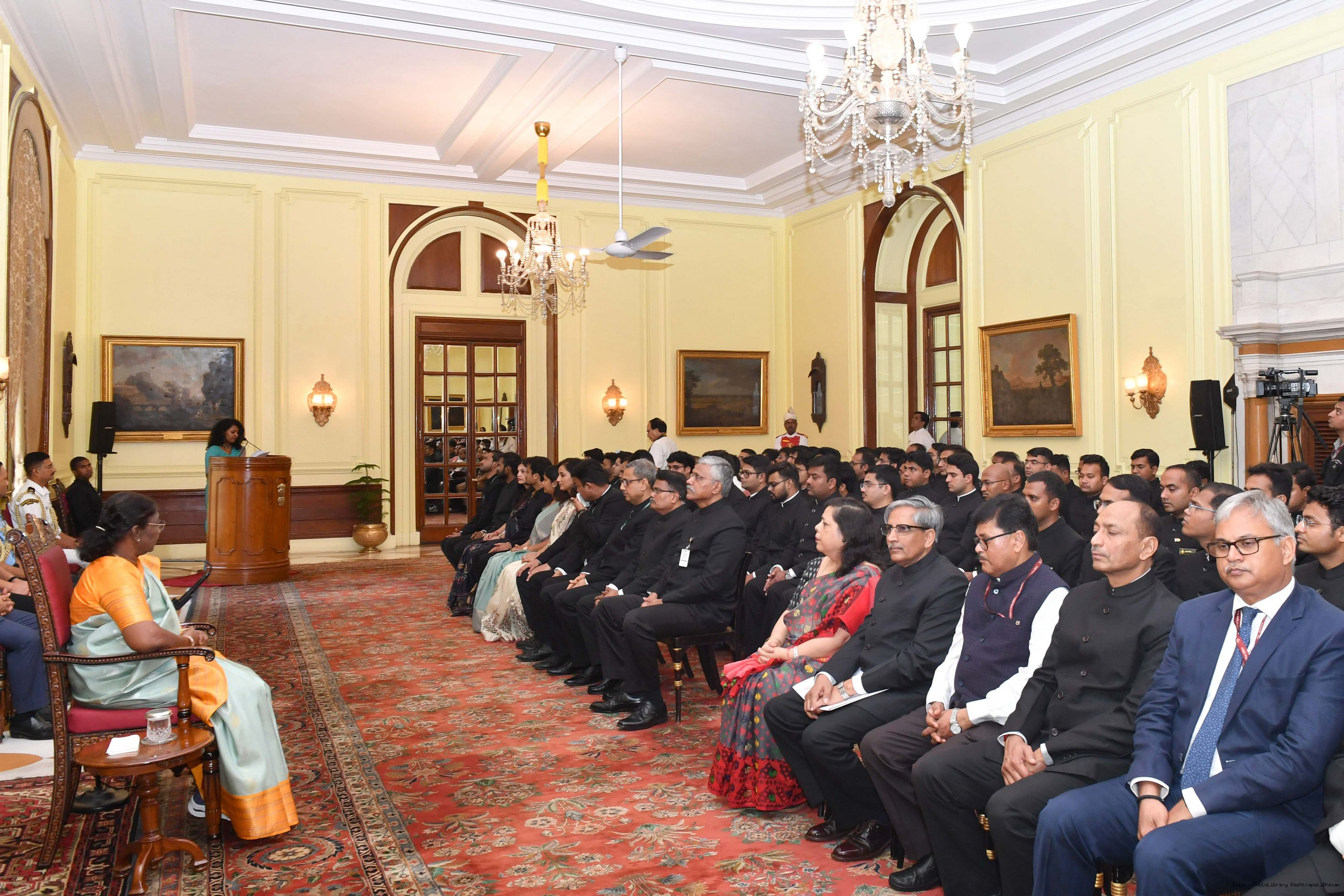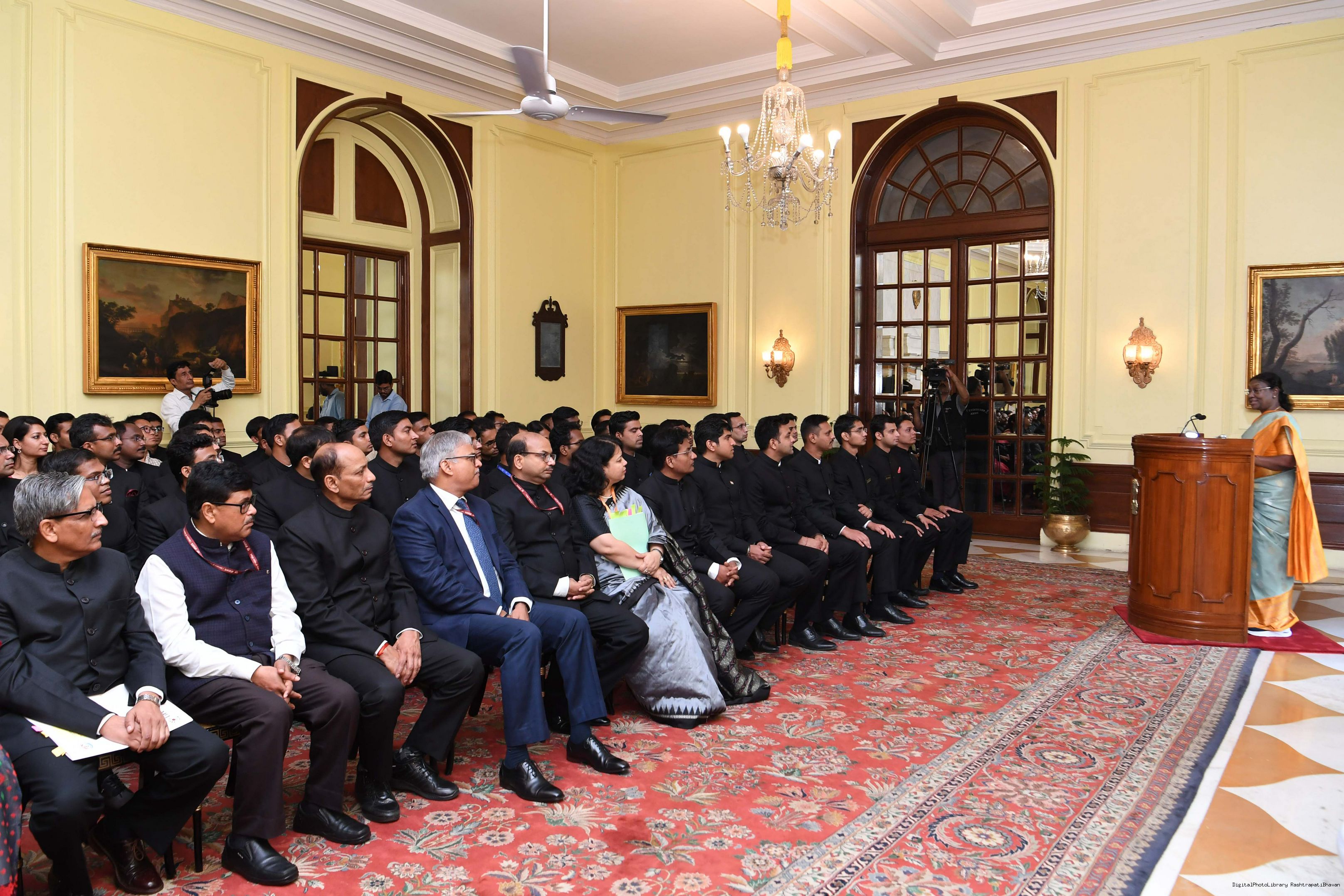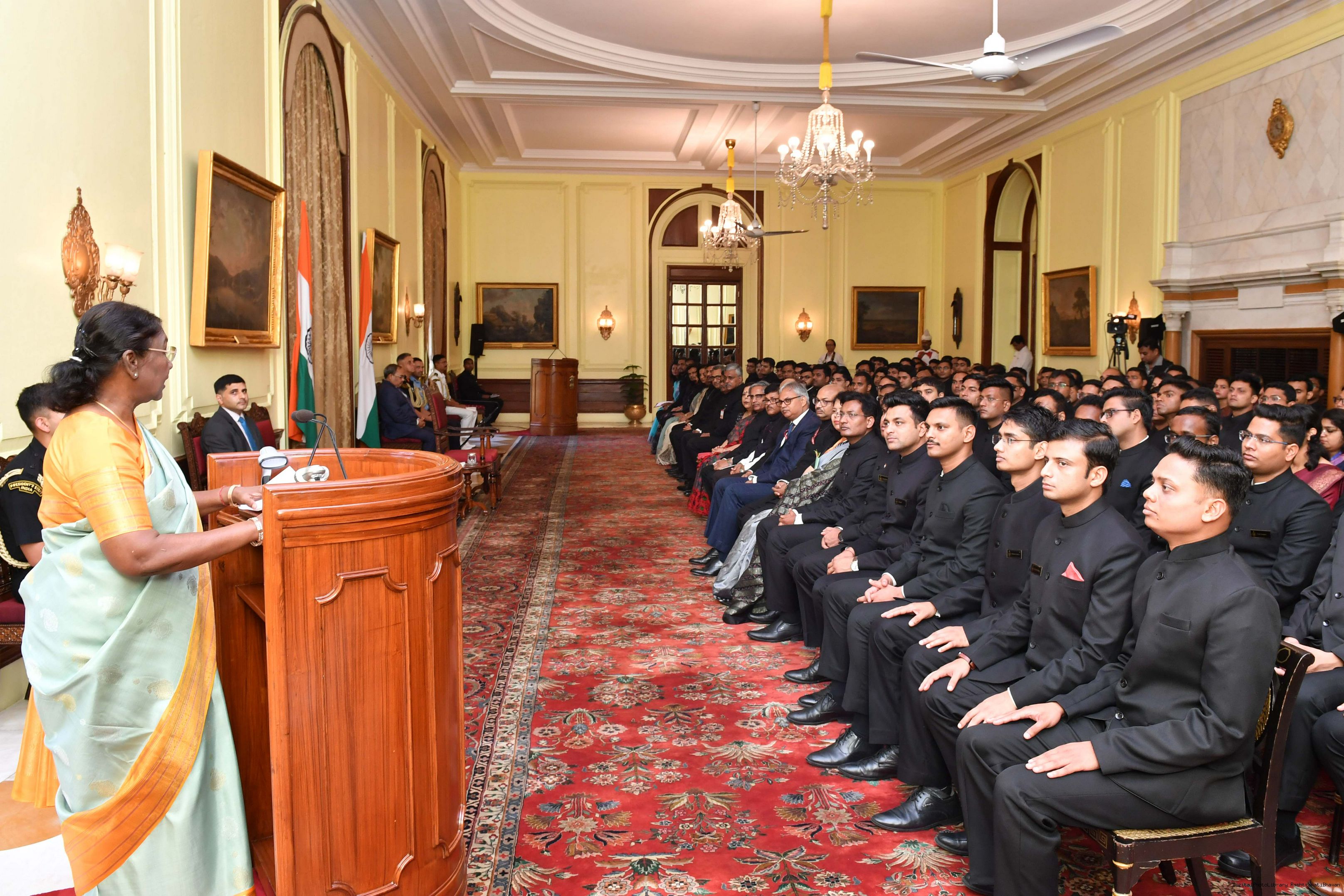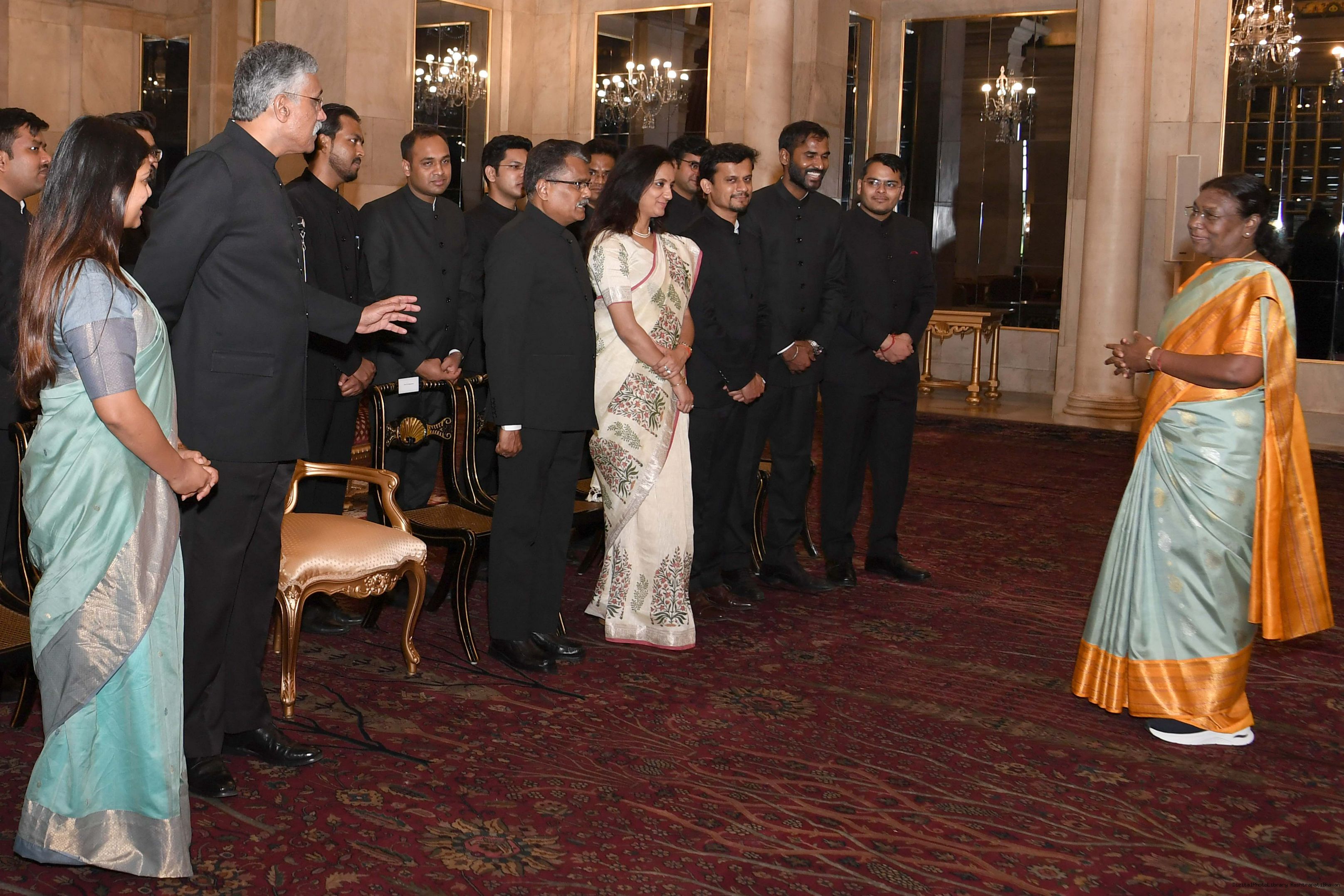 | Caption: | The Probationers of Indian Forest Service (2022 batch) and Officers/Officer Trainees of Indian Defence Estates Service (2018 and 2022 batch) called on the President of India, Smt Droupadi Murmu at Rashtrapati Bhavan on July 24, 2023. |