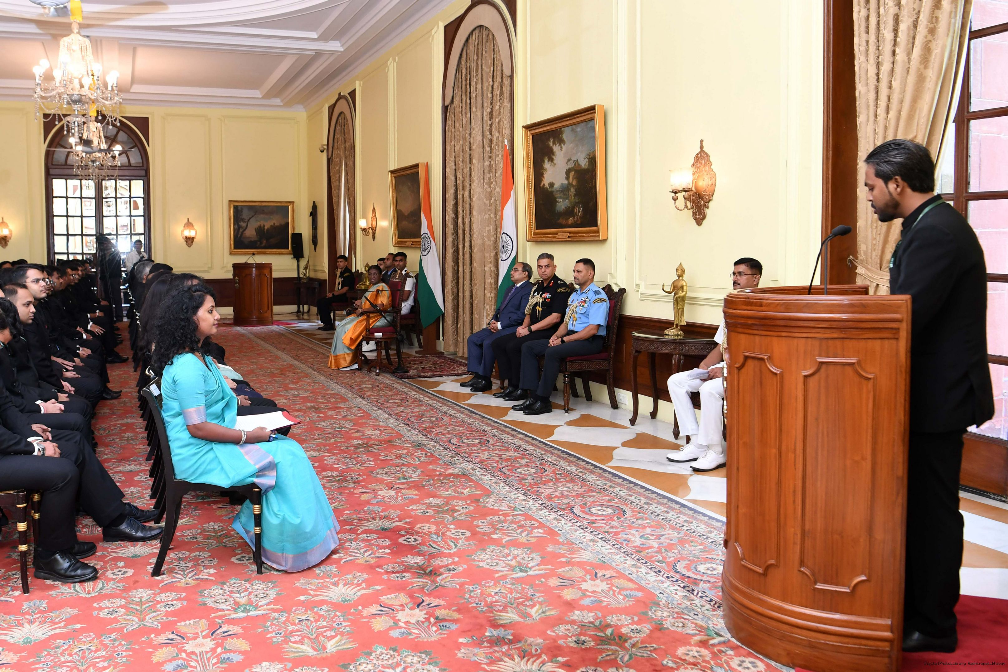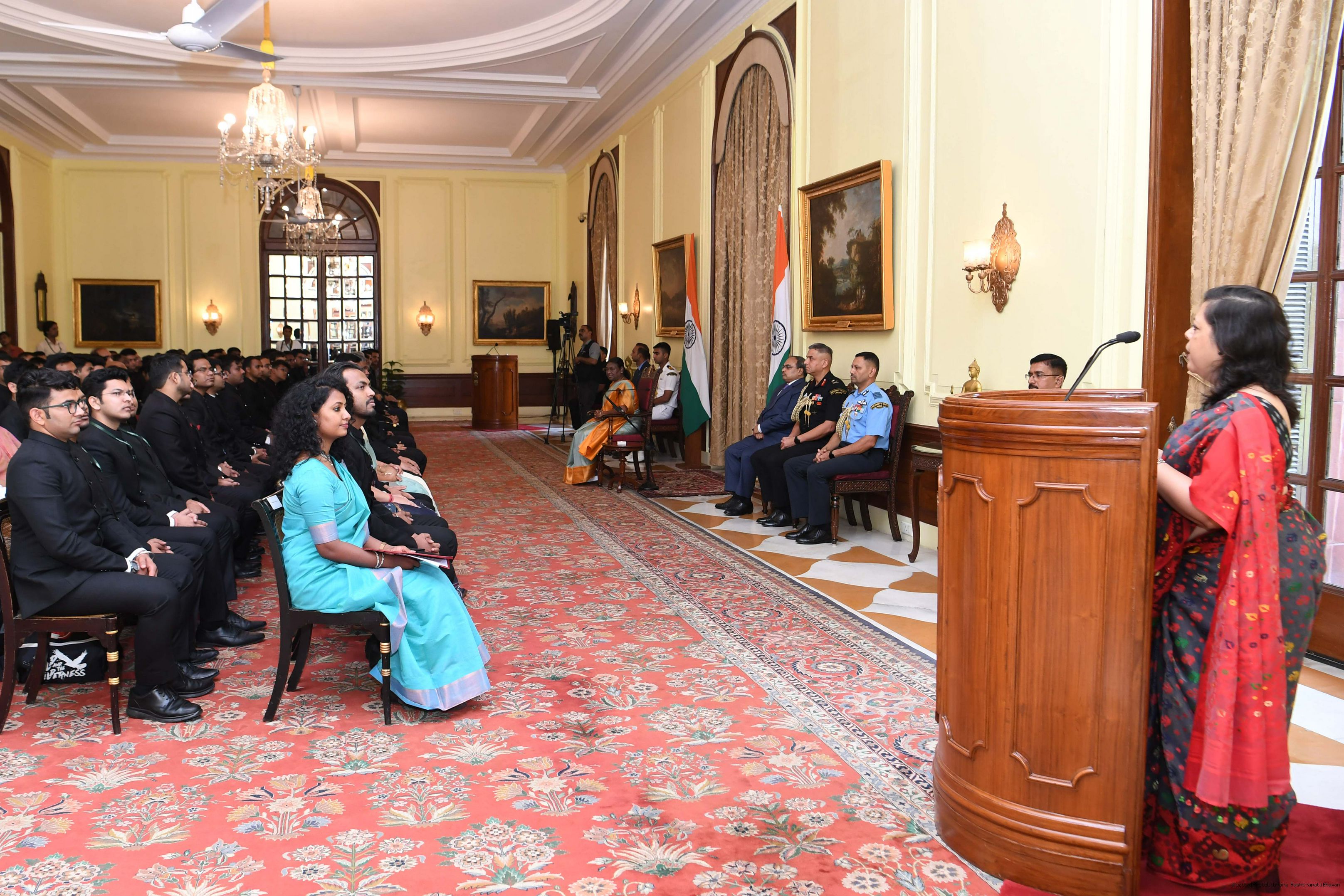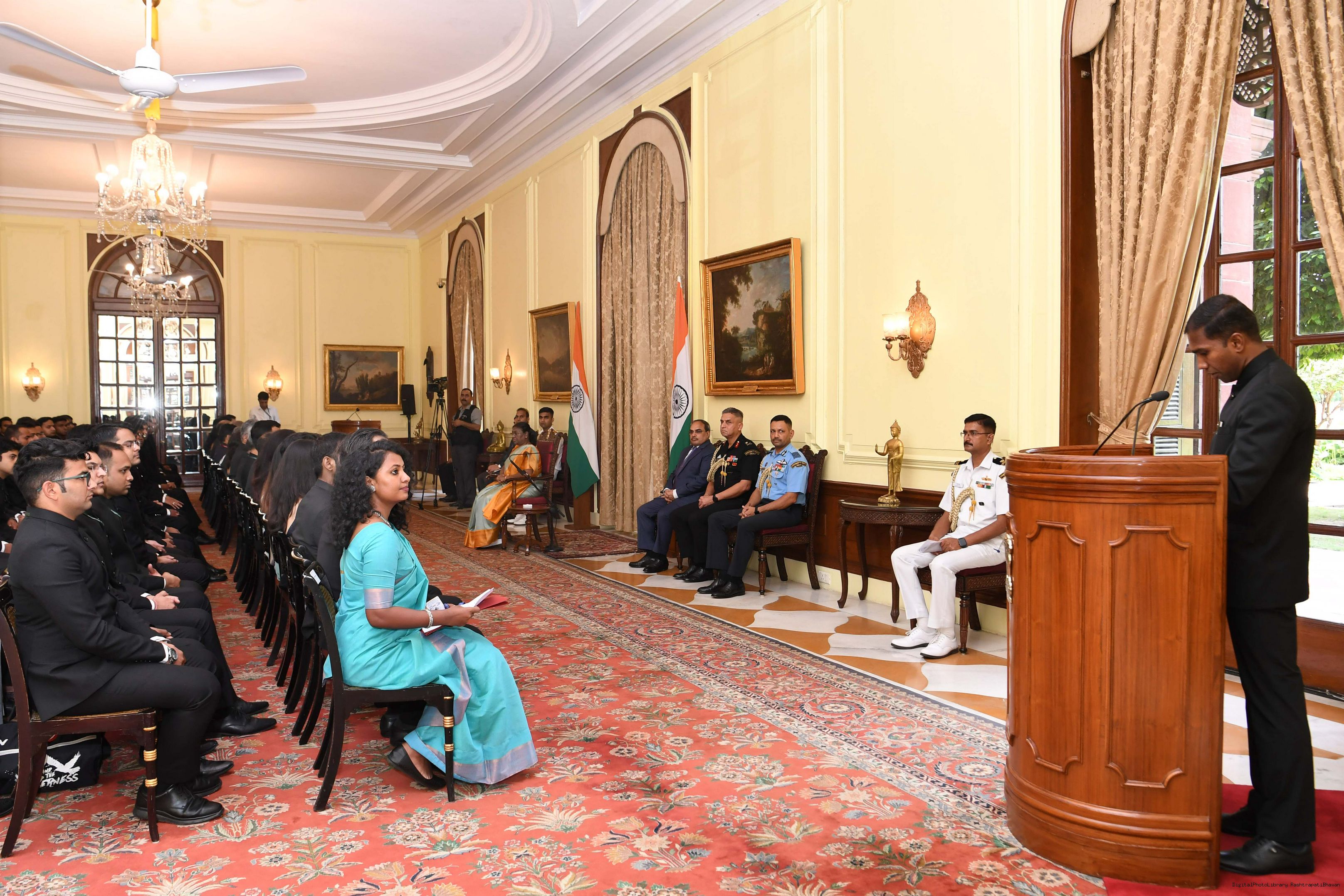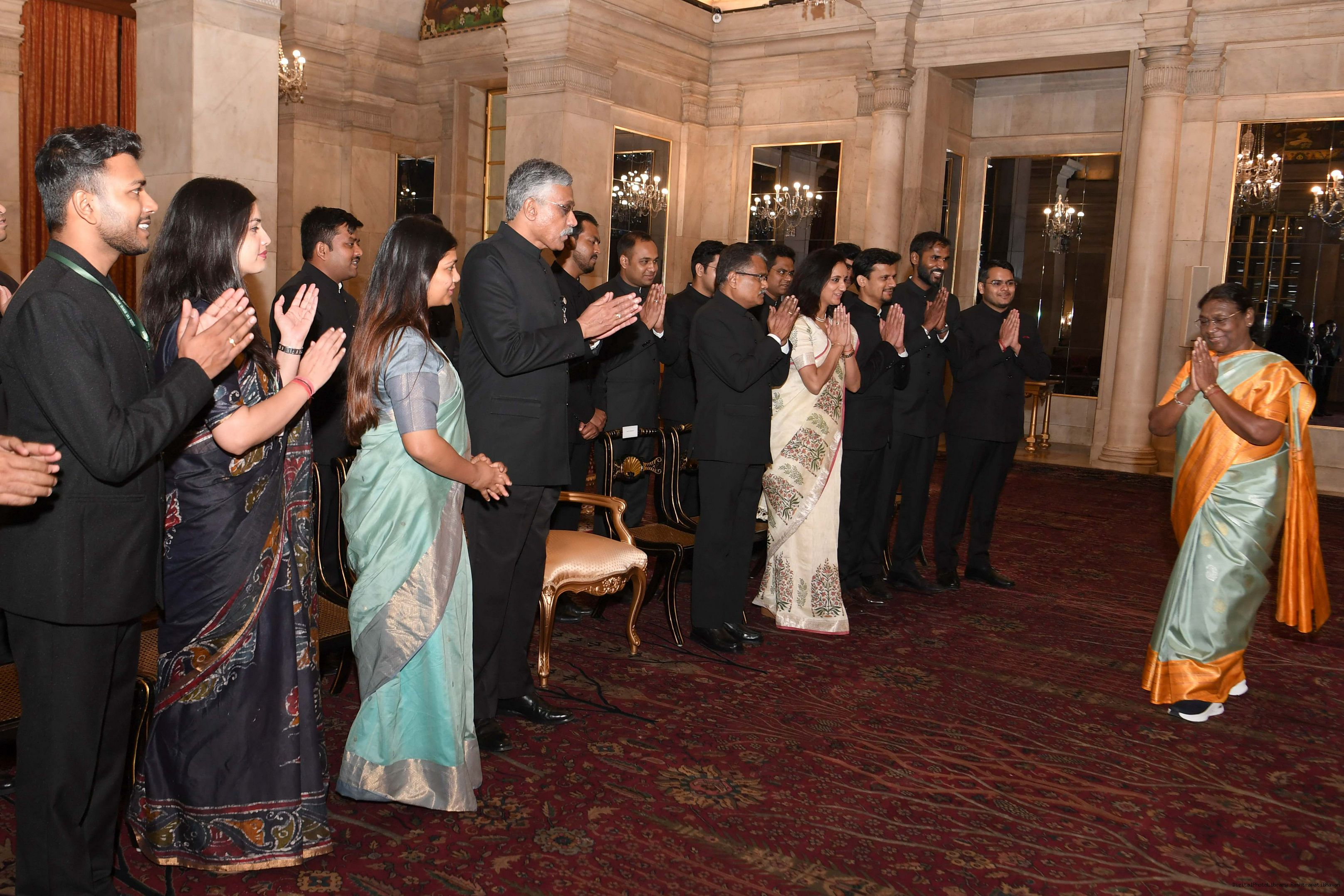 | Caption: | The Probationers of Indian Forest Service (2022 batch) and Officers/Officer Trainees of Indian Defence Estates Service (2018 and 2022 batch) called on the President of India, Smt Droupadi Murmu at Rashtrapati Bhavan on July 24, 2023. |