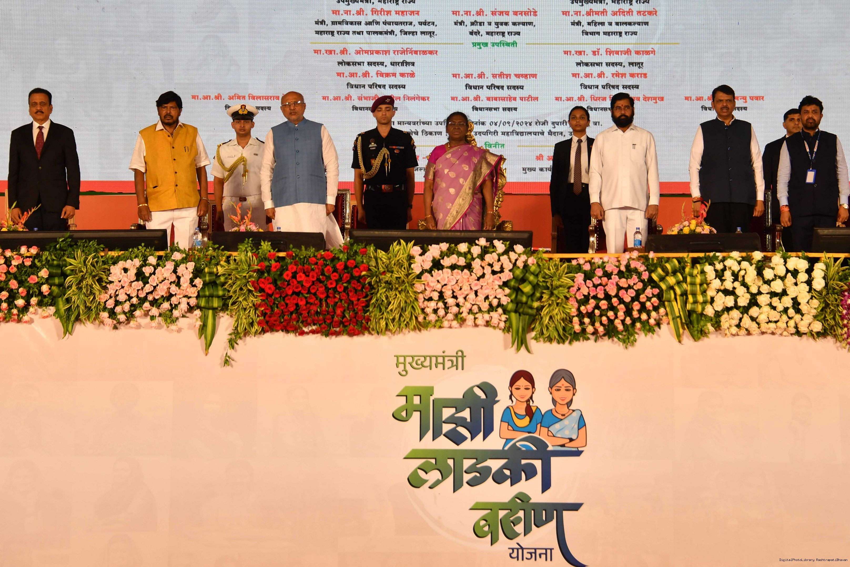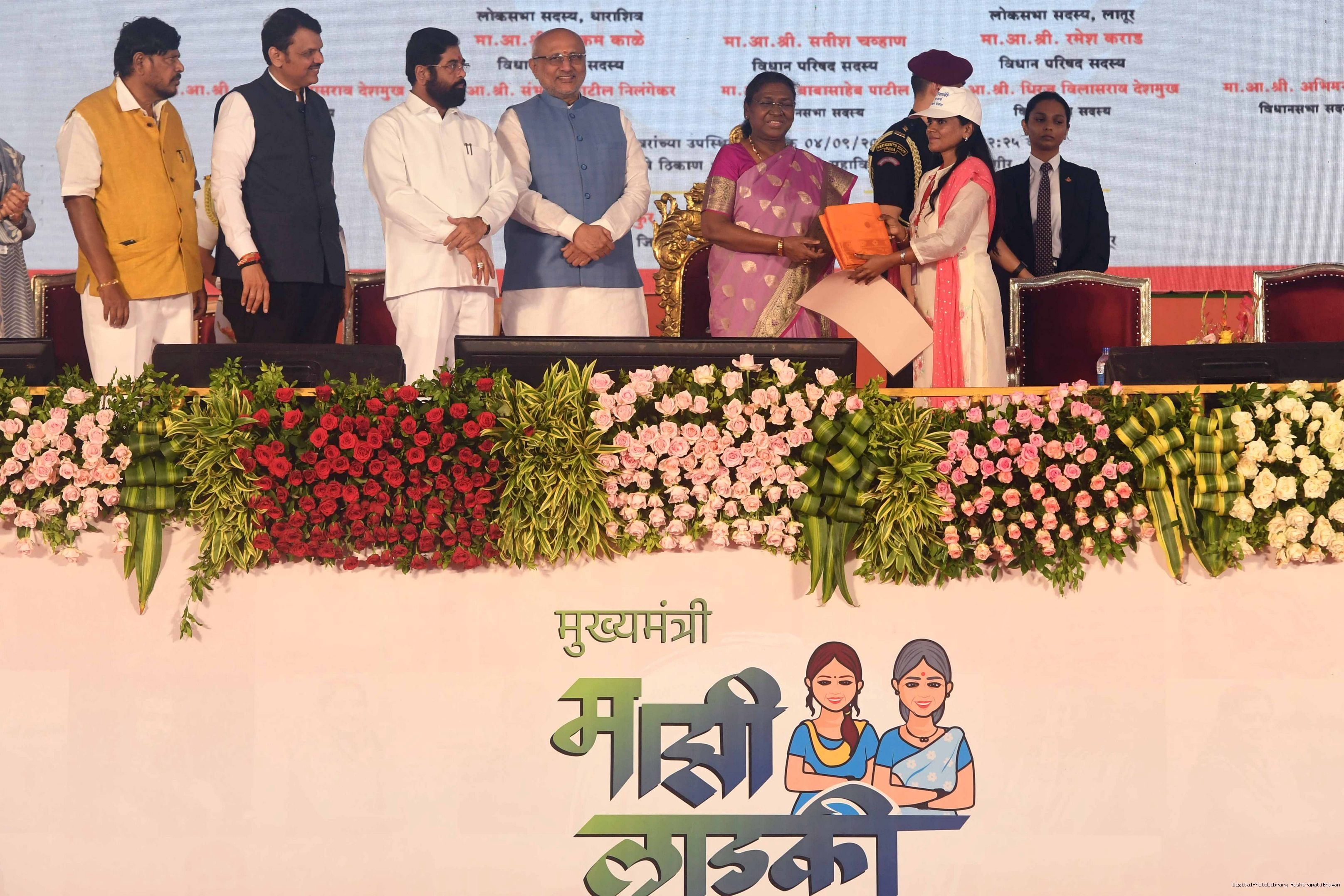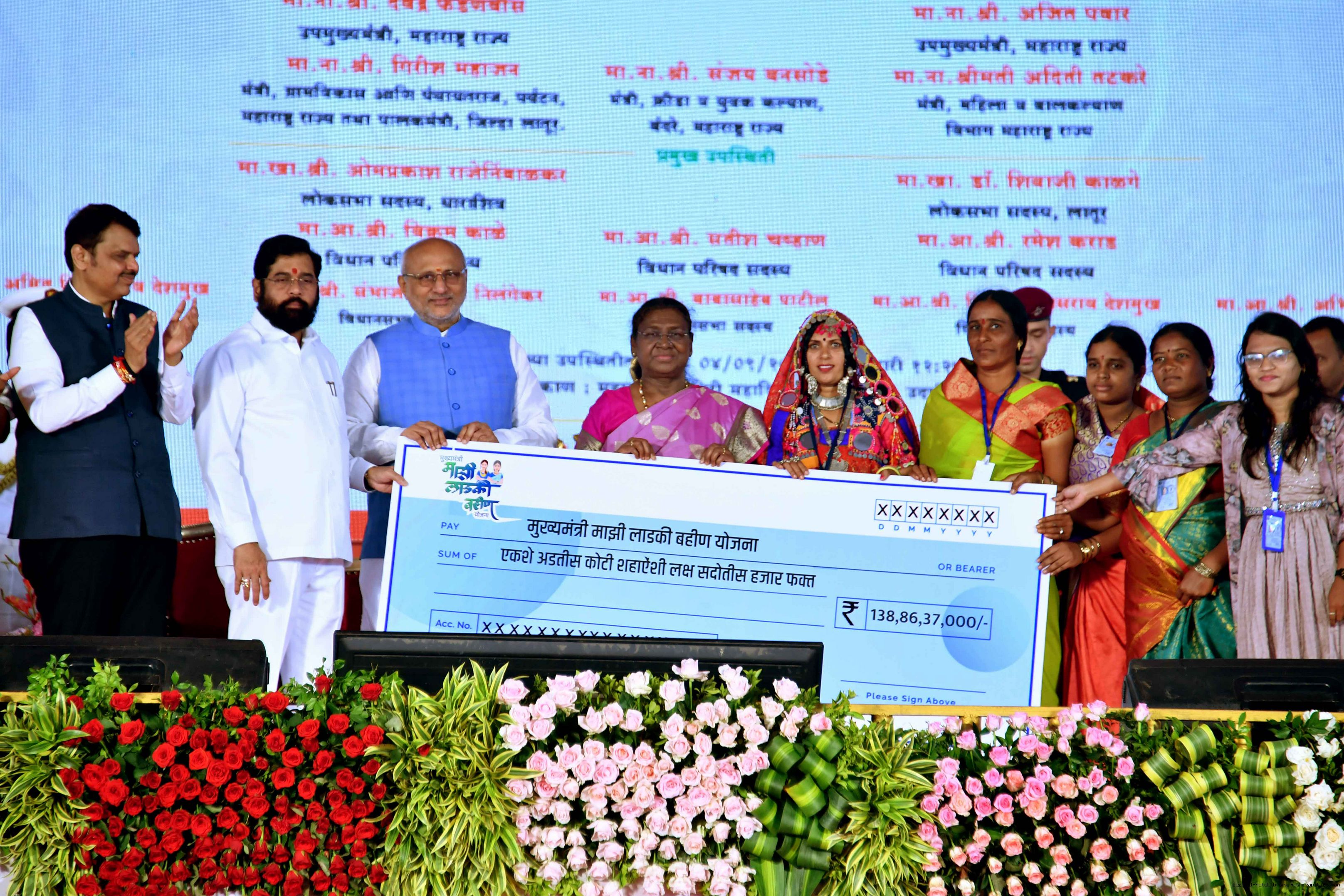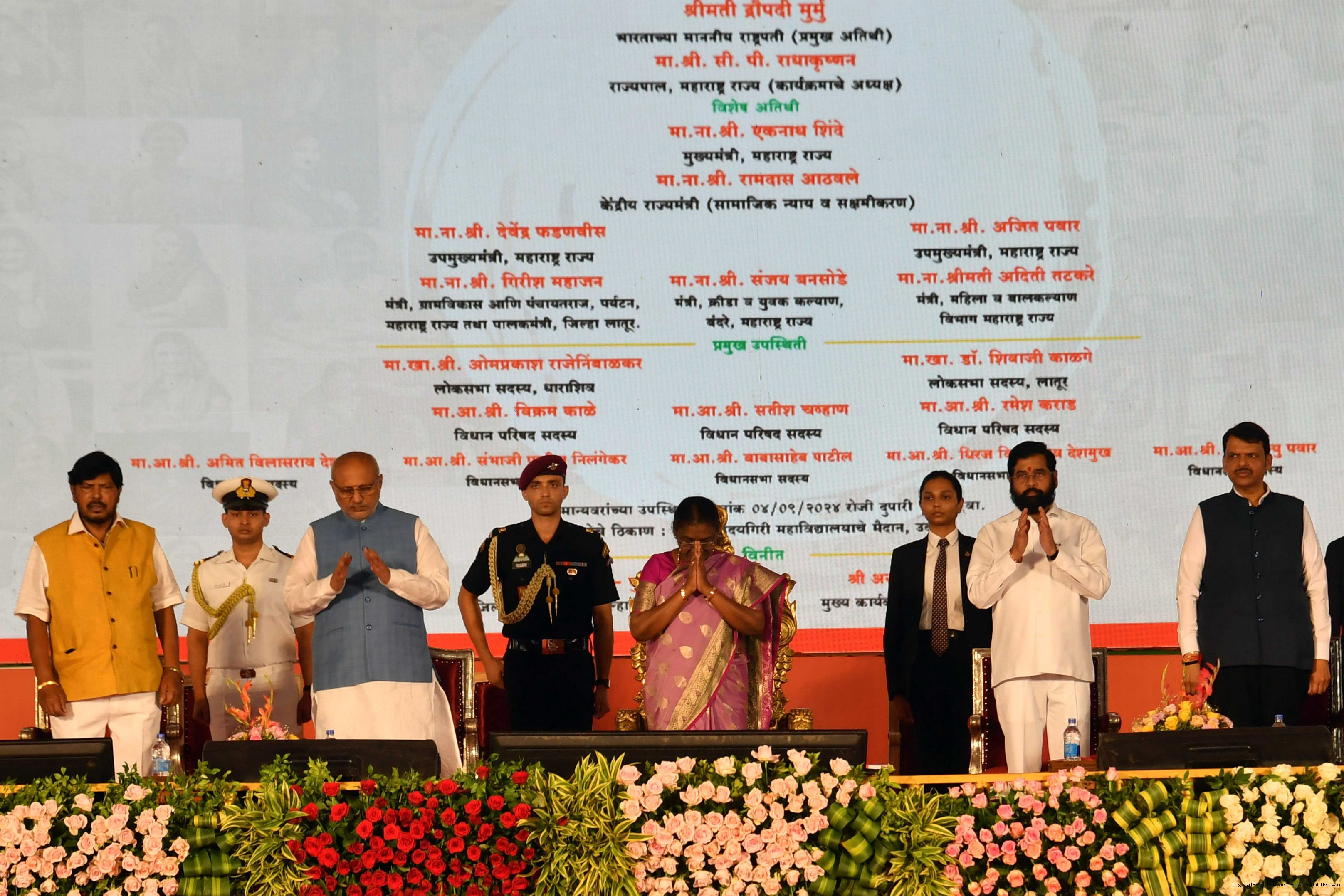 | Caption: | The President of India, Smt. Droupadi Murmu addressed a gathering of beneficiaries of ‘Shasan Aplya Dari’ and ‘Mukhyamantri Majhi Ladki Bahin Yojna’ of the Government of Maharashtra at Udgir on September 4, 2024. |