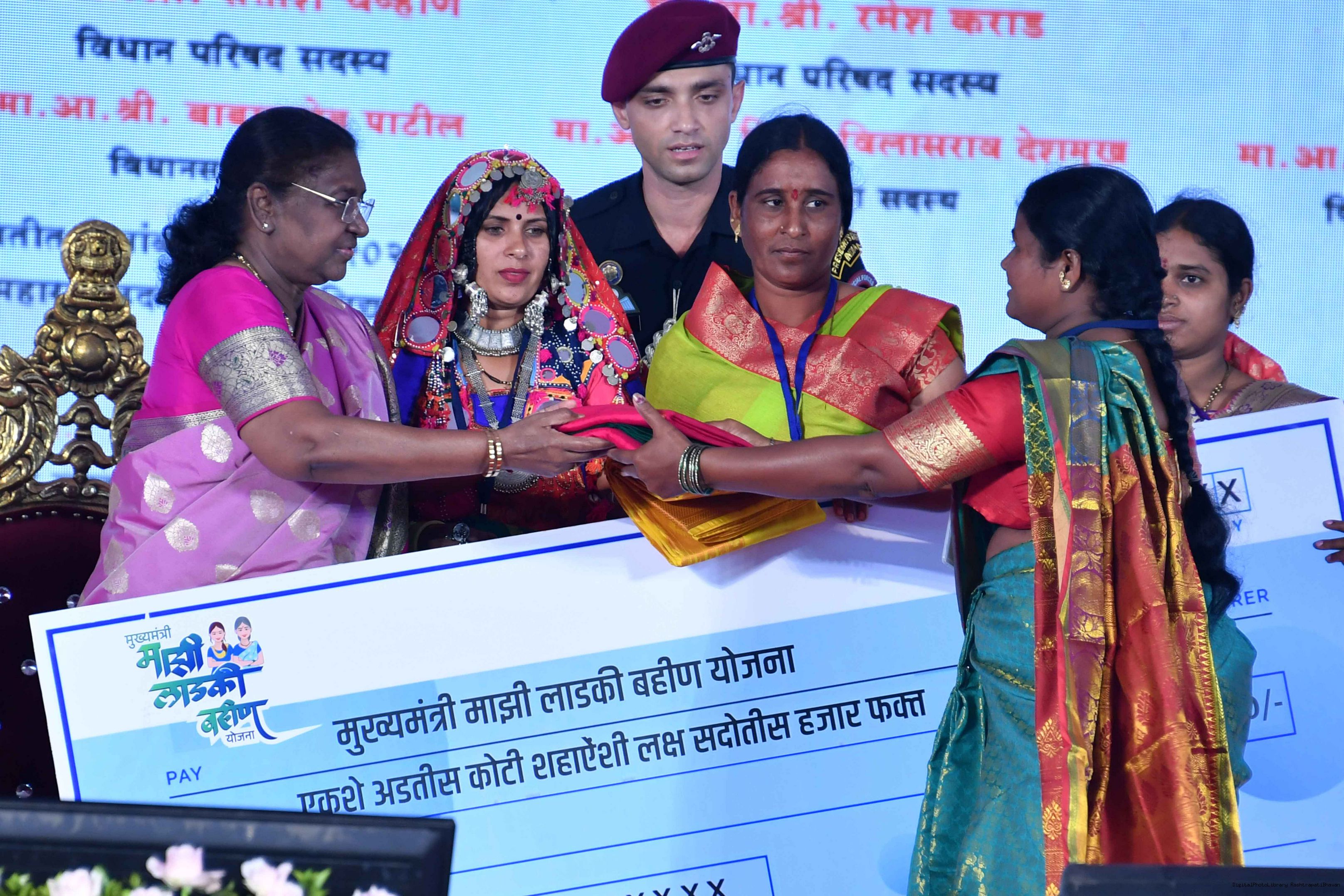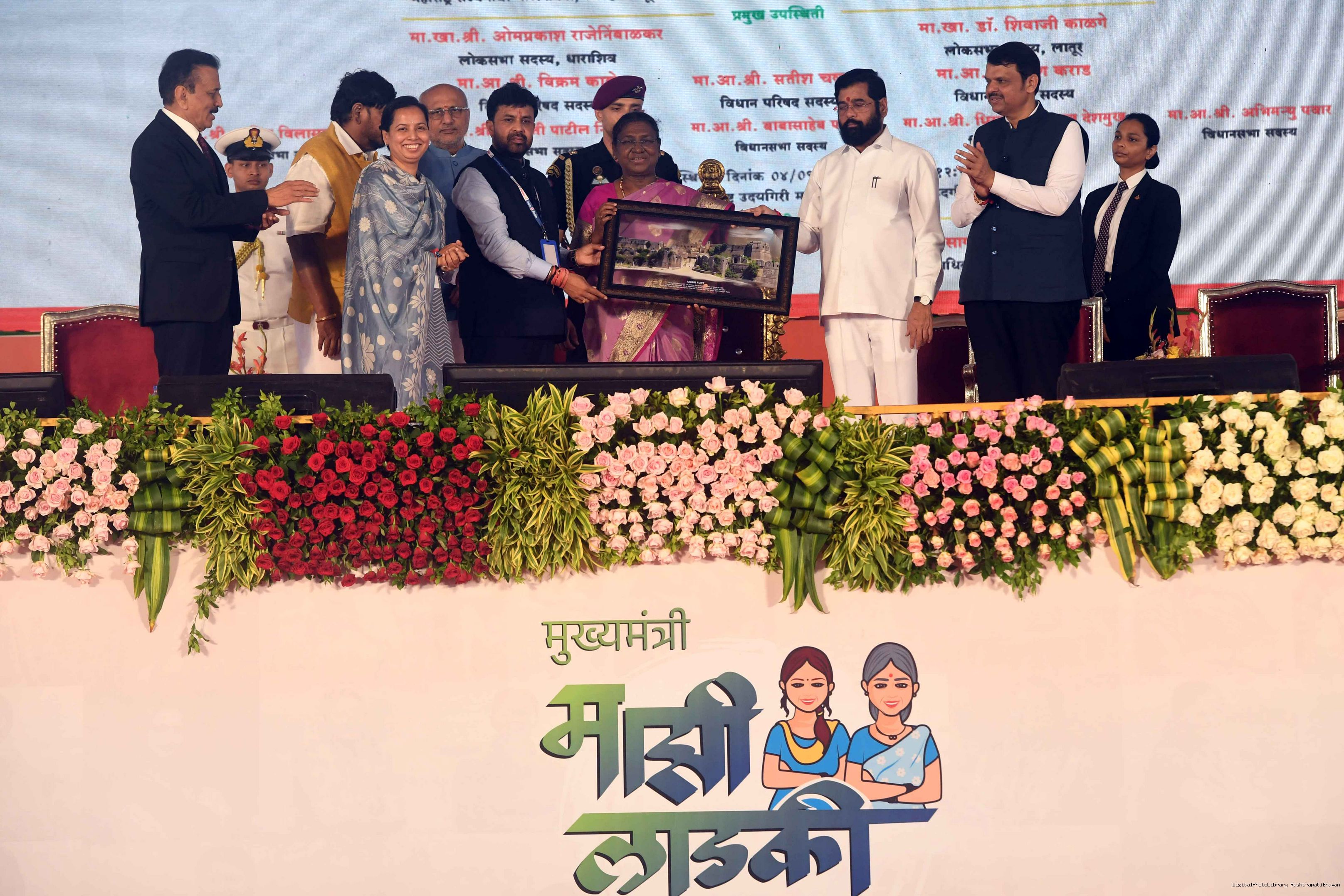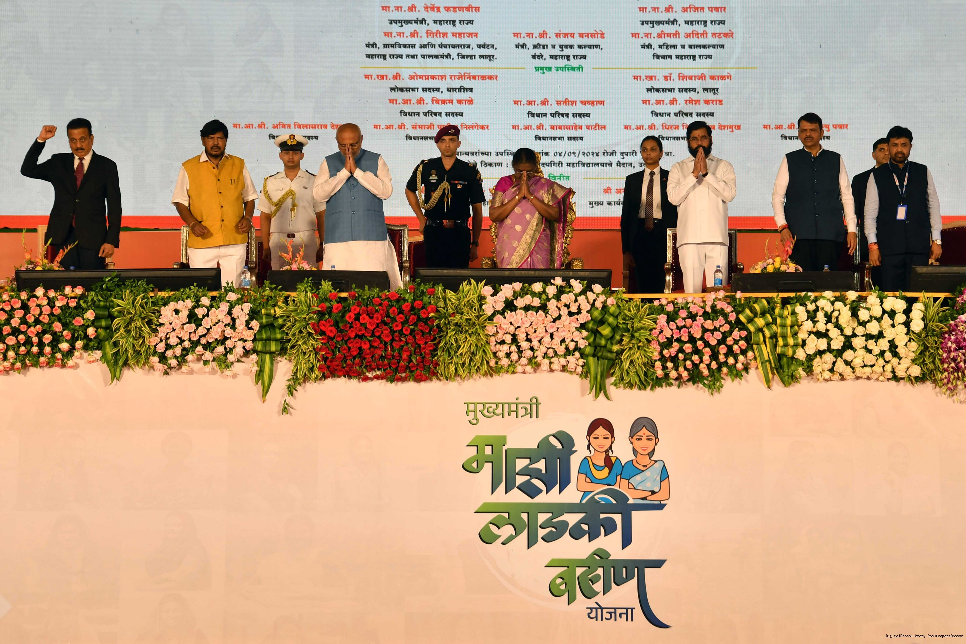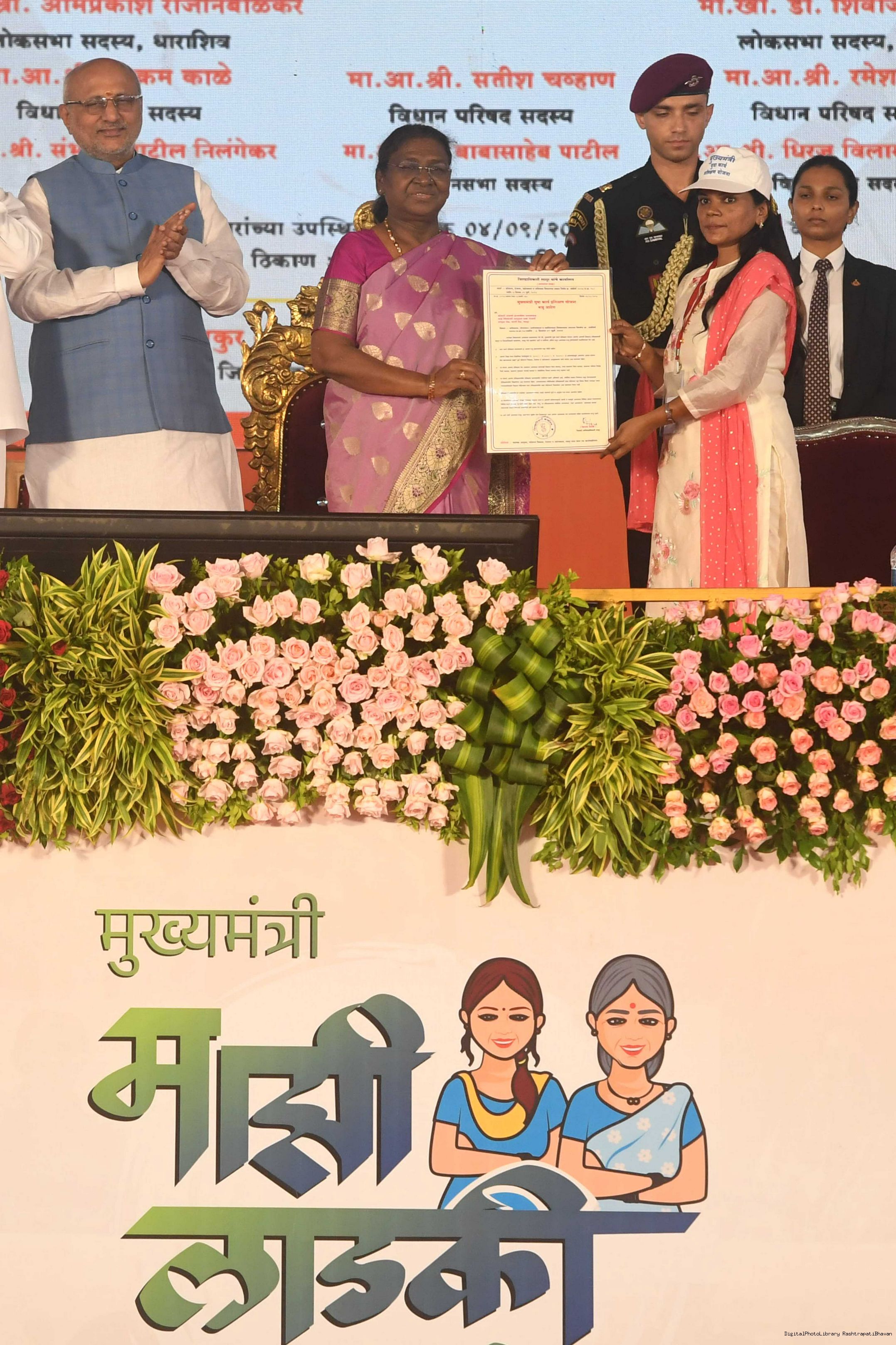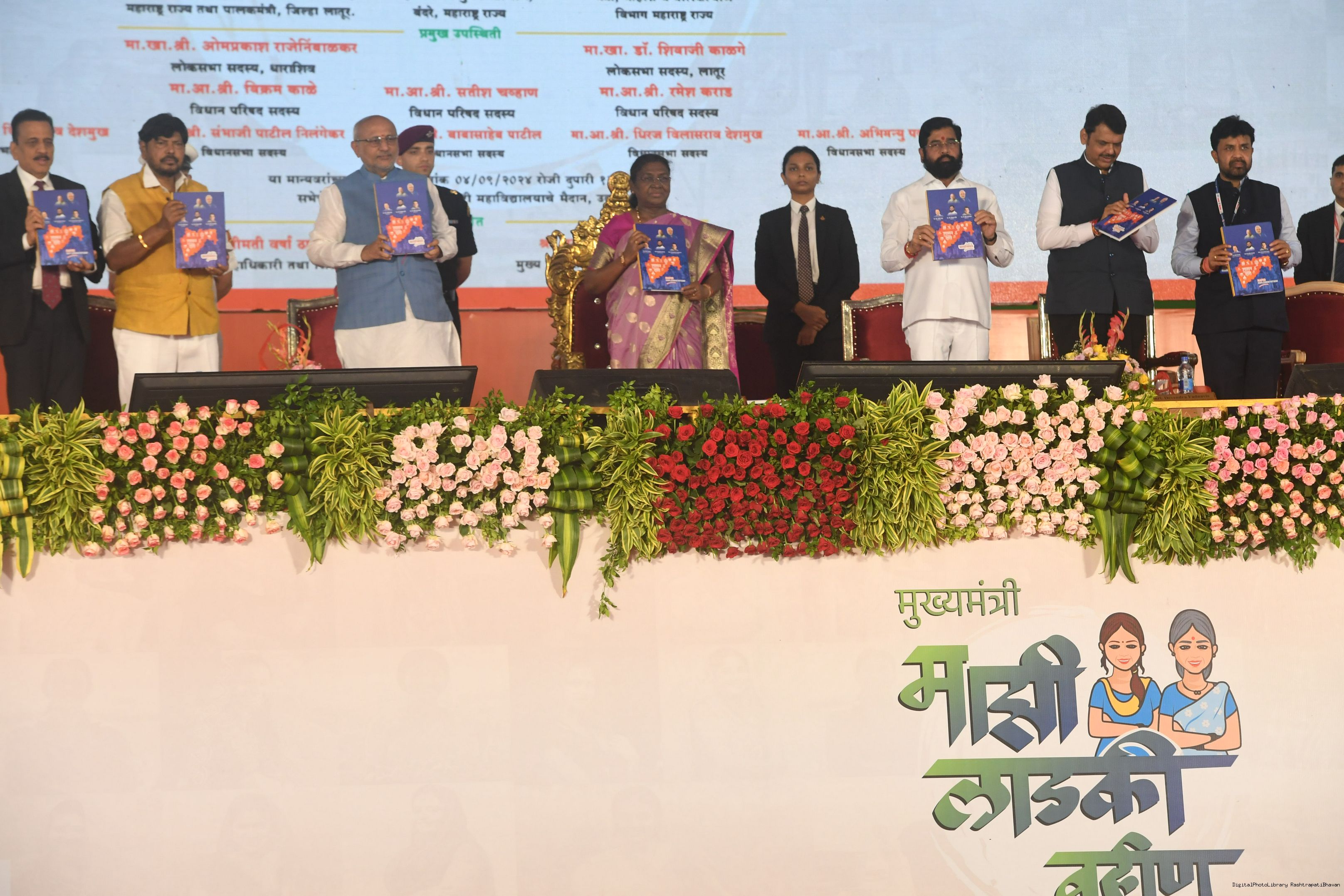 | Caption: | The President of India, Smt. Droupadi Murmu addressed a gathering of beneficiaries of ‘Shasan Aplya Dari’ and ‘Mukhyamantri Majhi Ladki Bahin Yojna’ of the Government of Maharashtra at Udgir on September 4, 2024. |