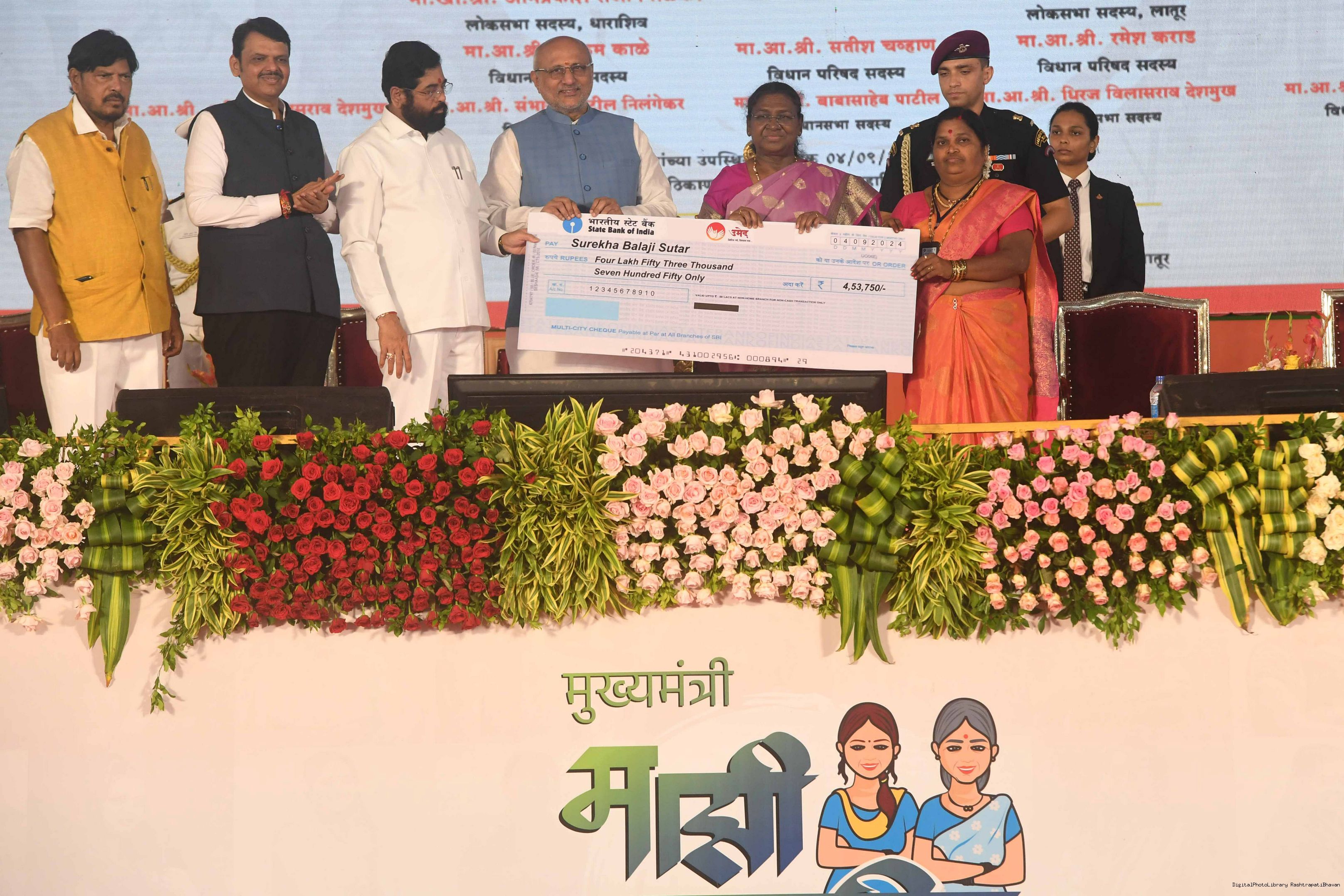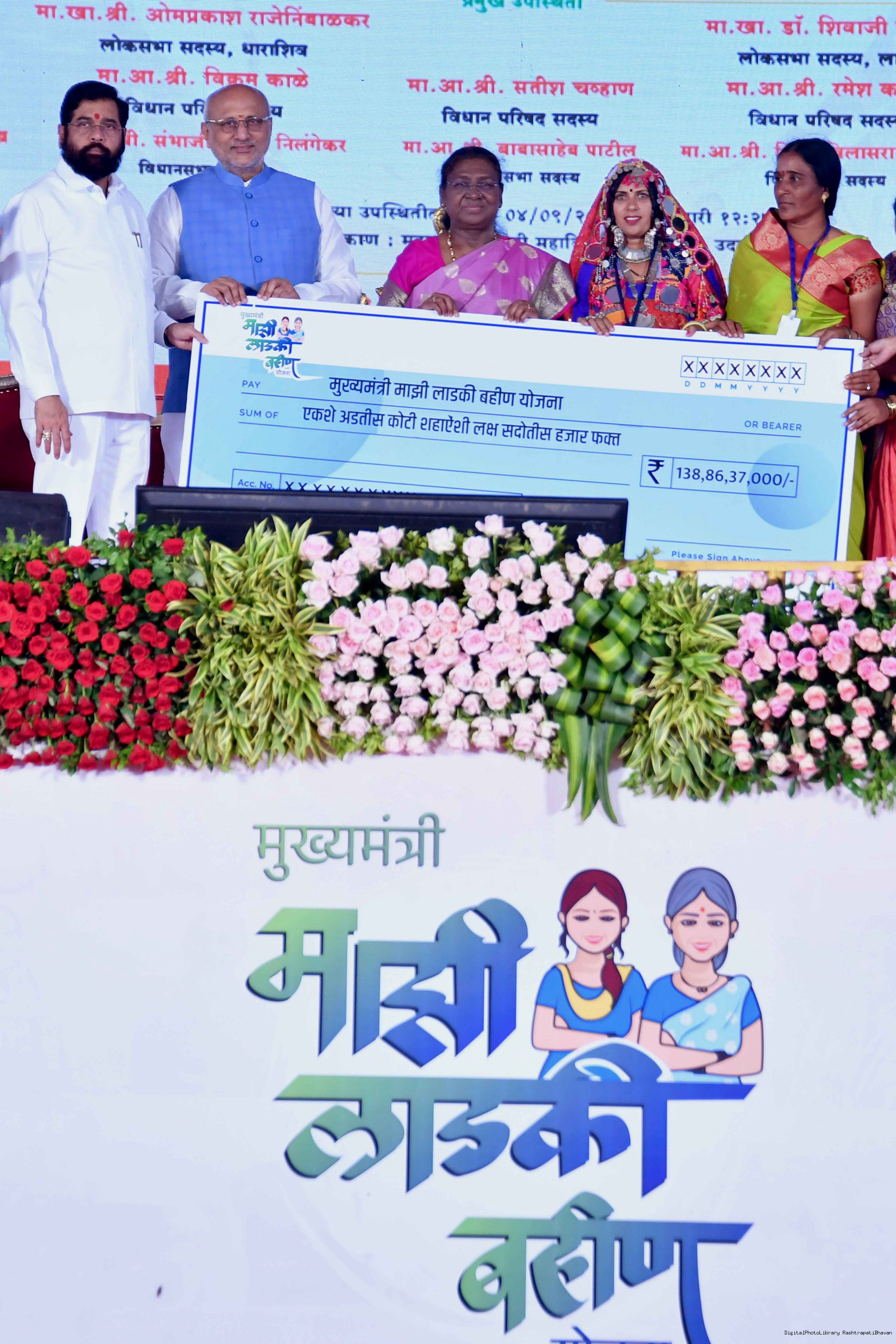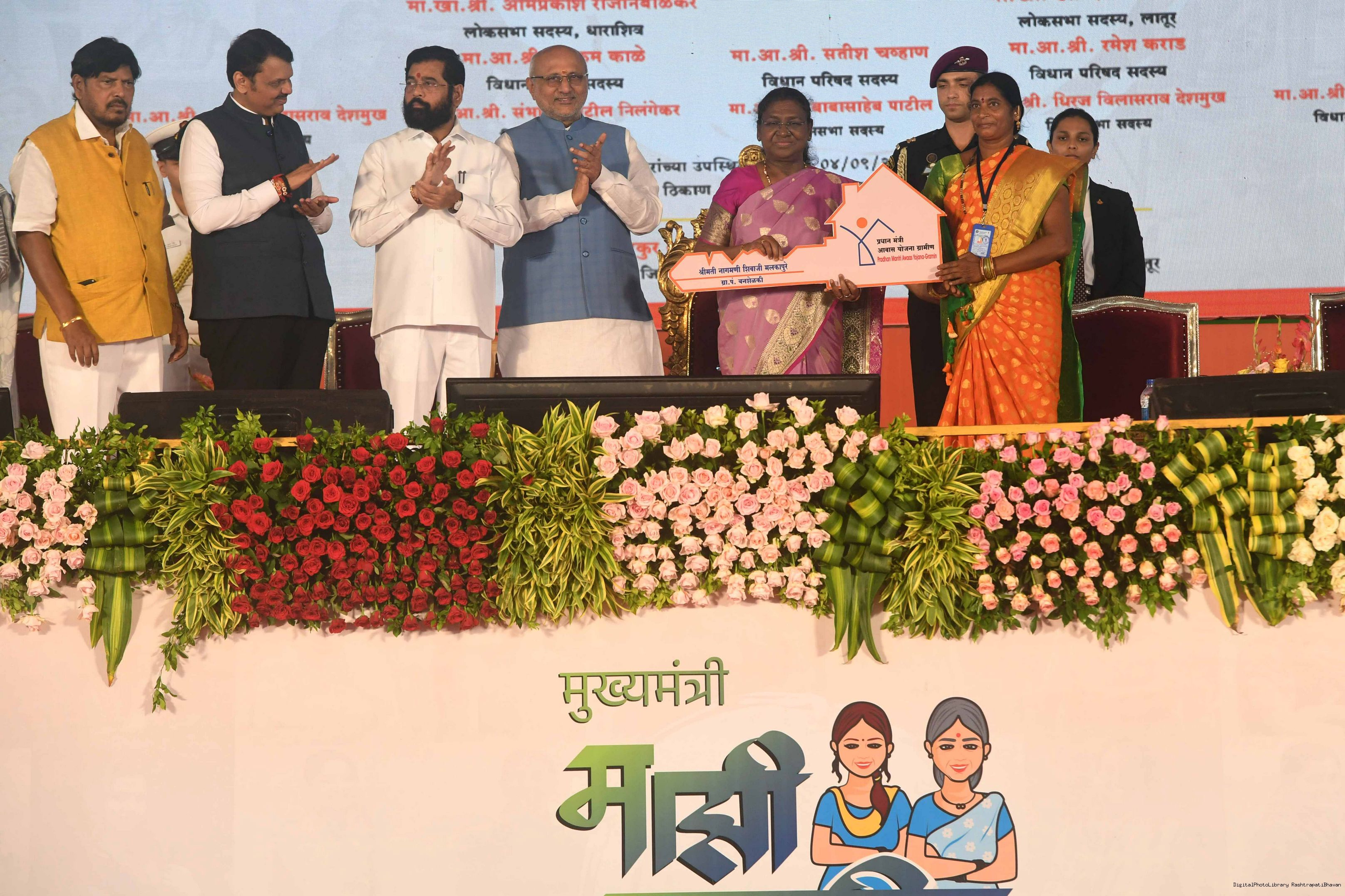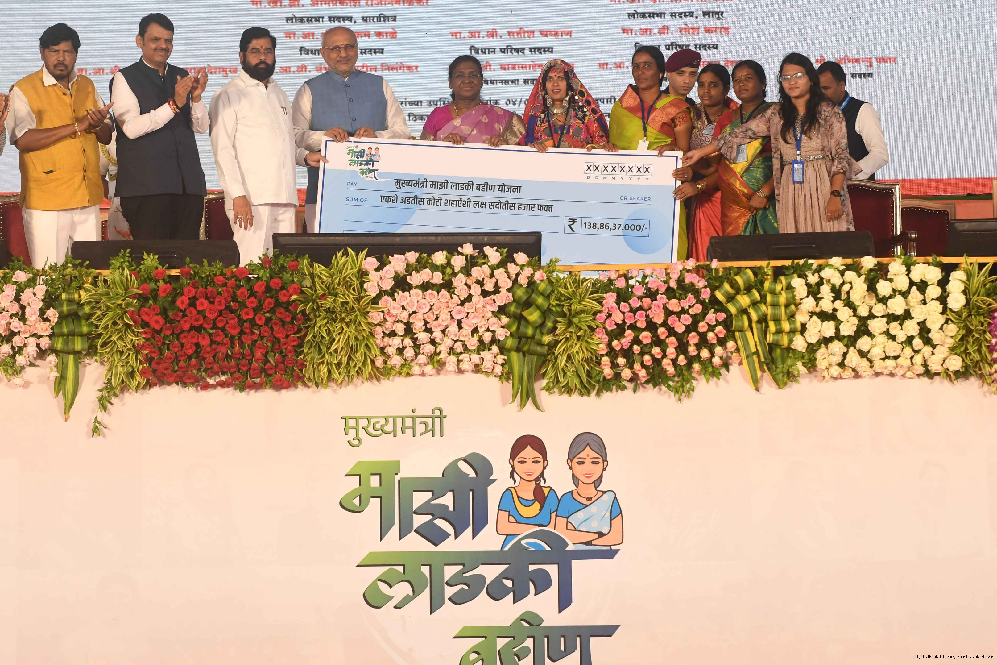 | Caption: | The President of India, Smt. Droupadi Murmu addressed a gathering of beneficiaries of ‘Shasan Aplya Dari’ and ‘Mukhyamantri Majhi Ladki Bahin Yojna’ of the Government of Maharashtra at Udgir on September 4, 2024. |