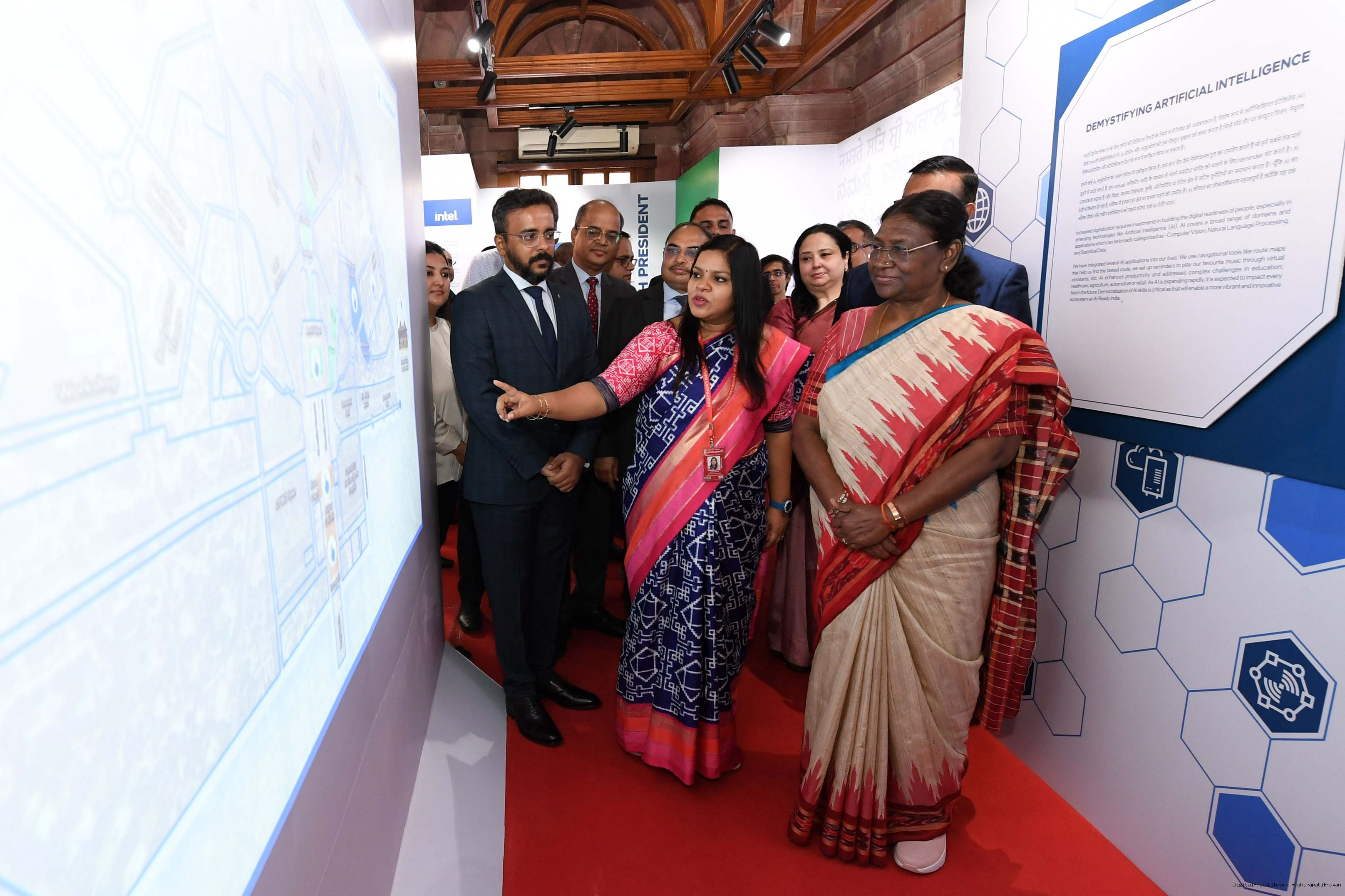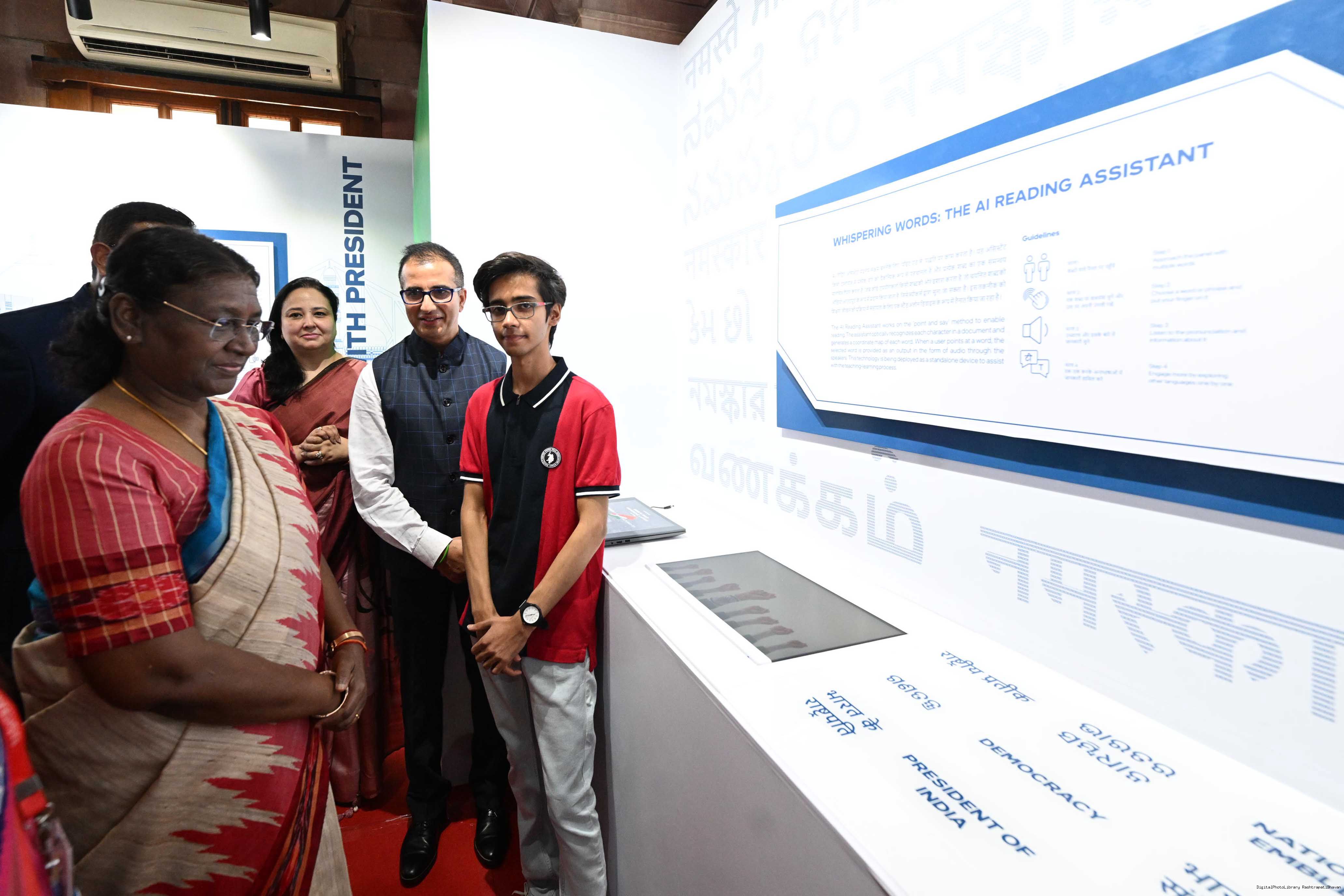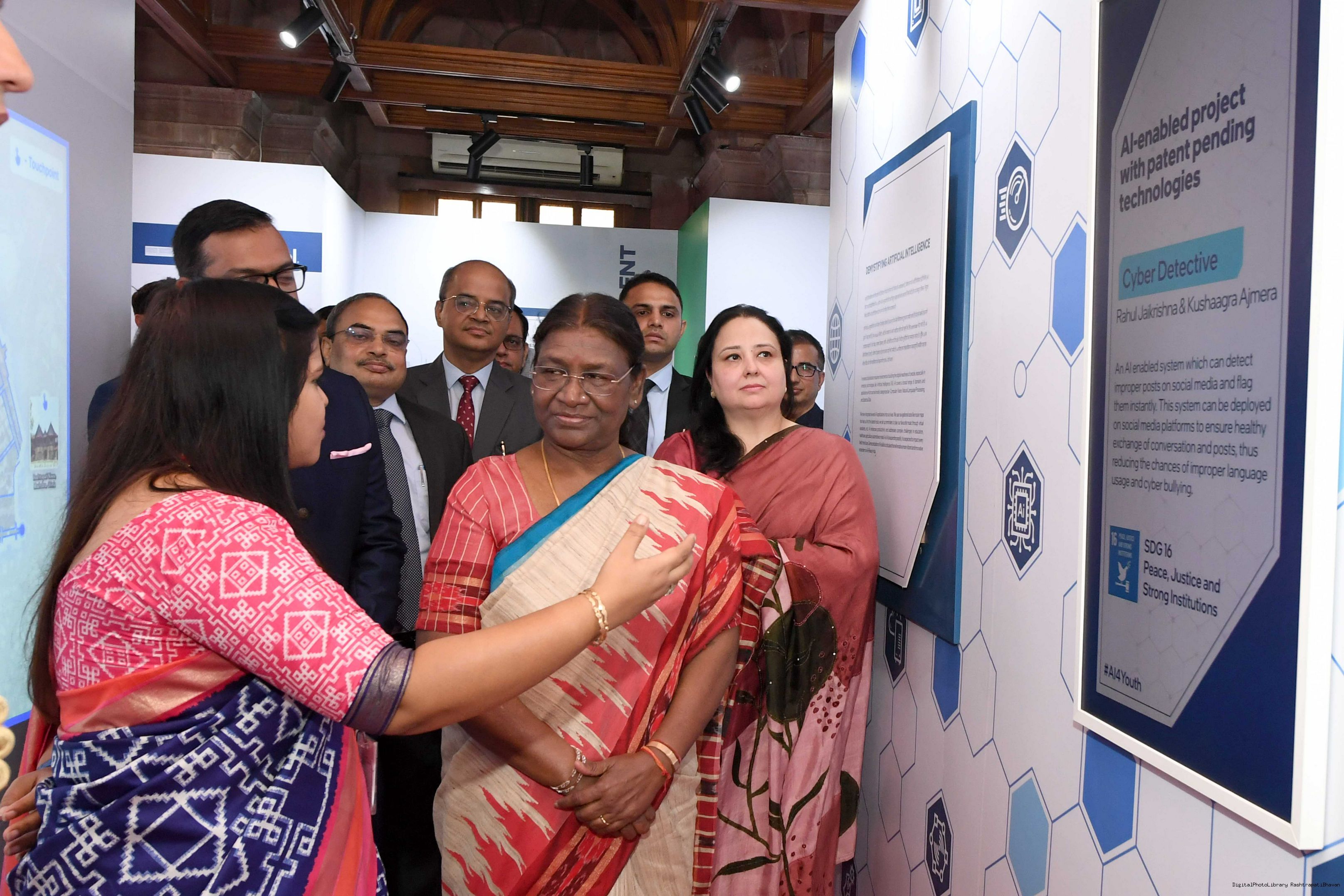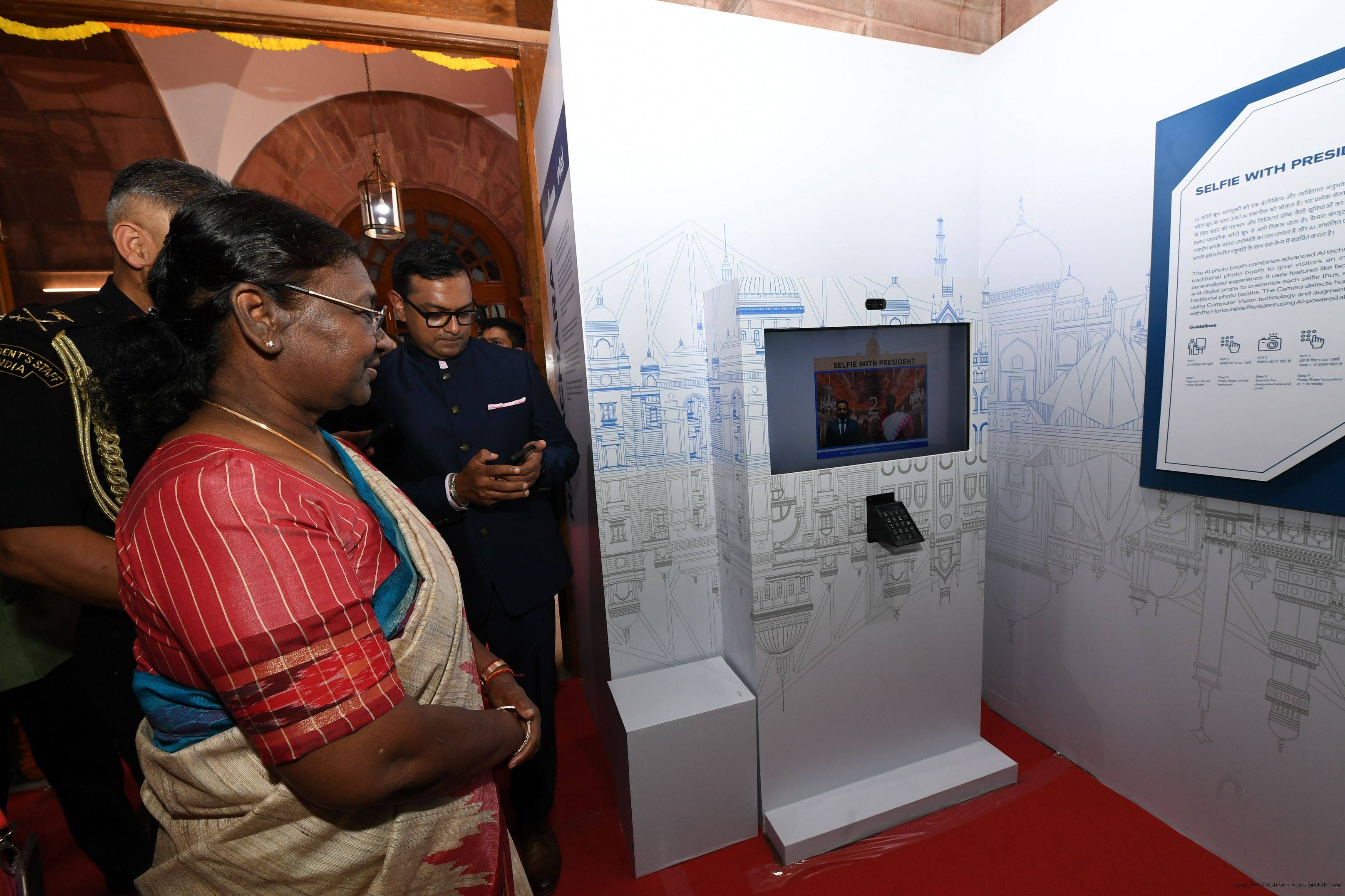 | Caption: | The President of India, Smt. Droupadi Murmu Visited Navachar AI Gallery at Rashtrapati Bhavan on July 25, 2023. |