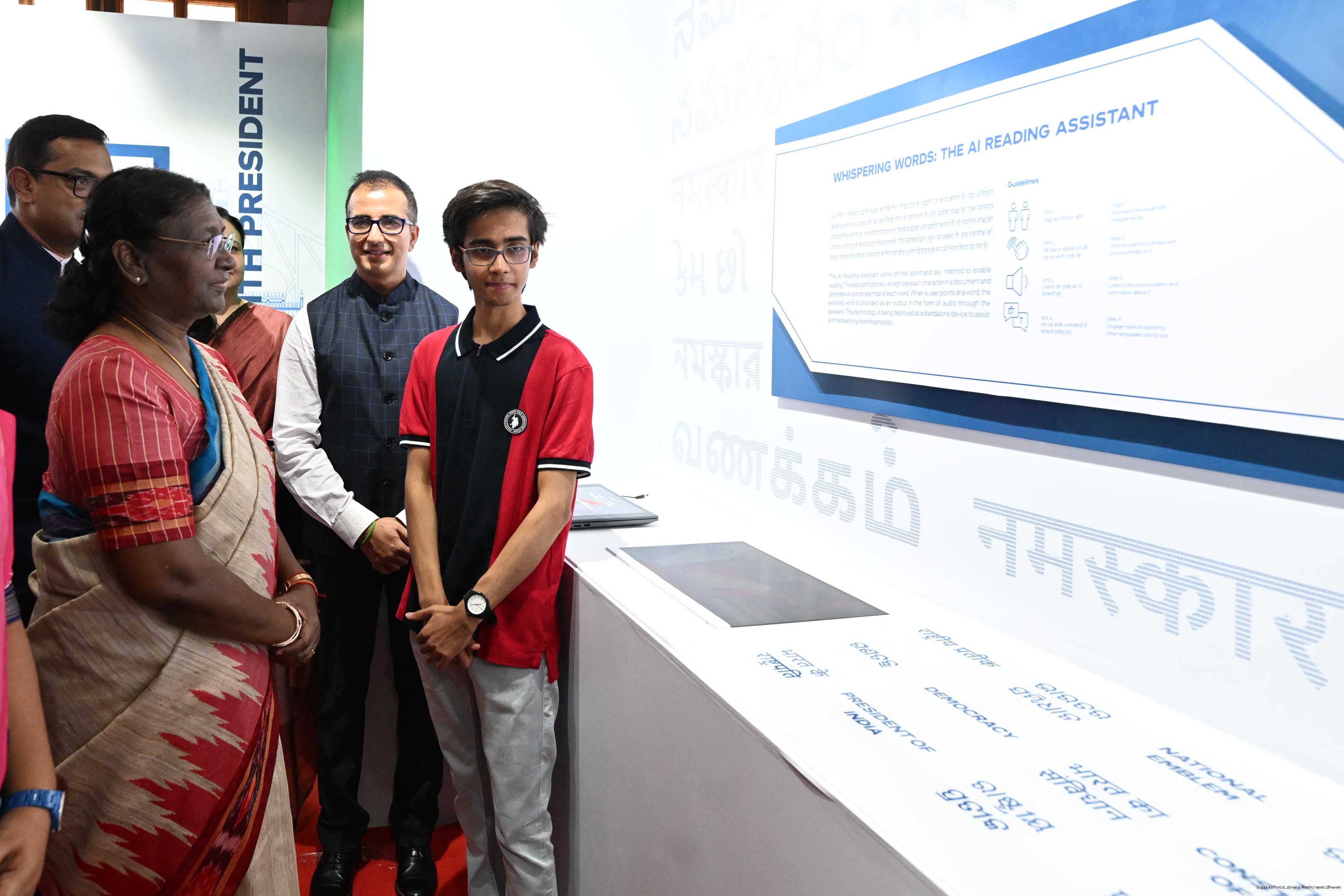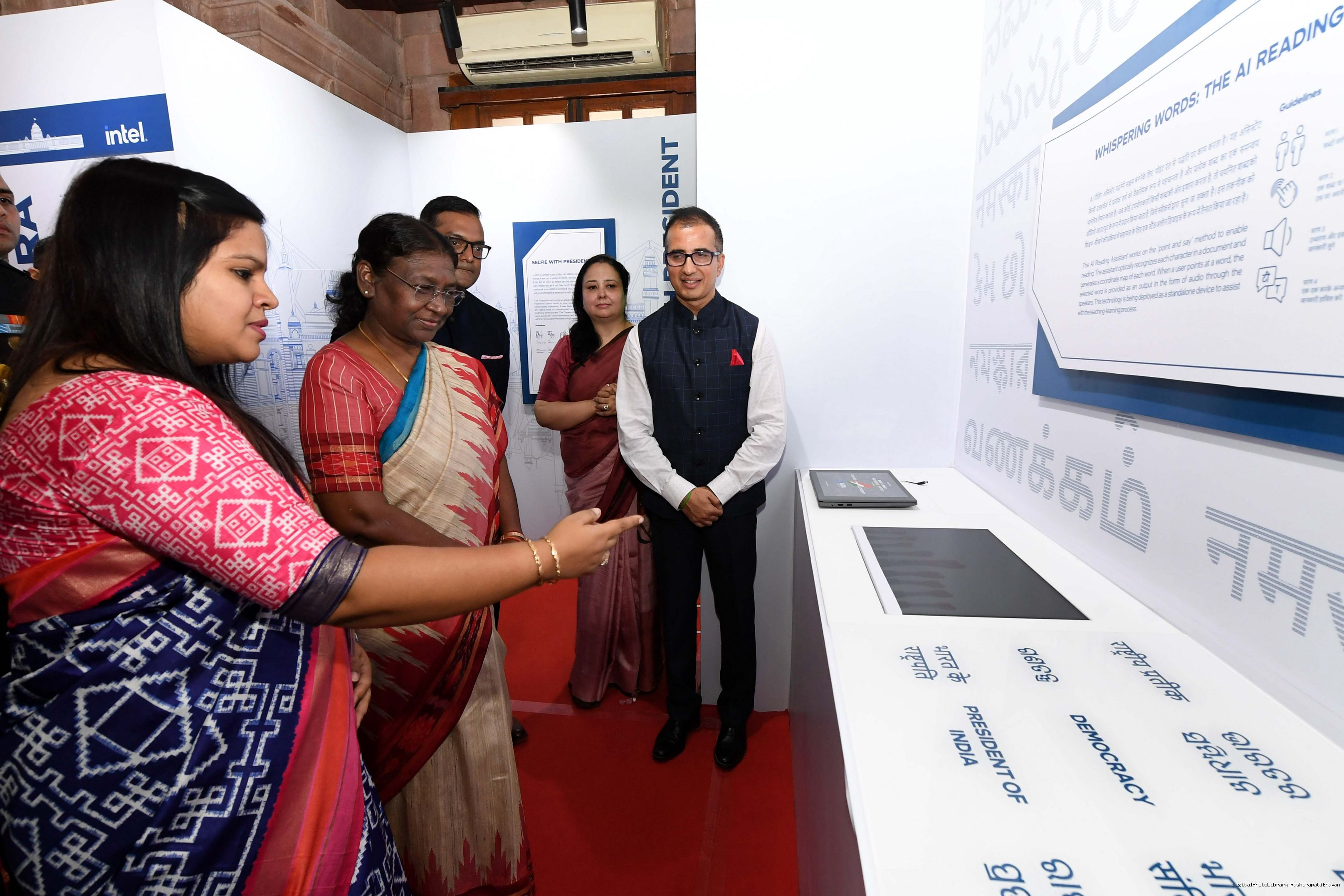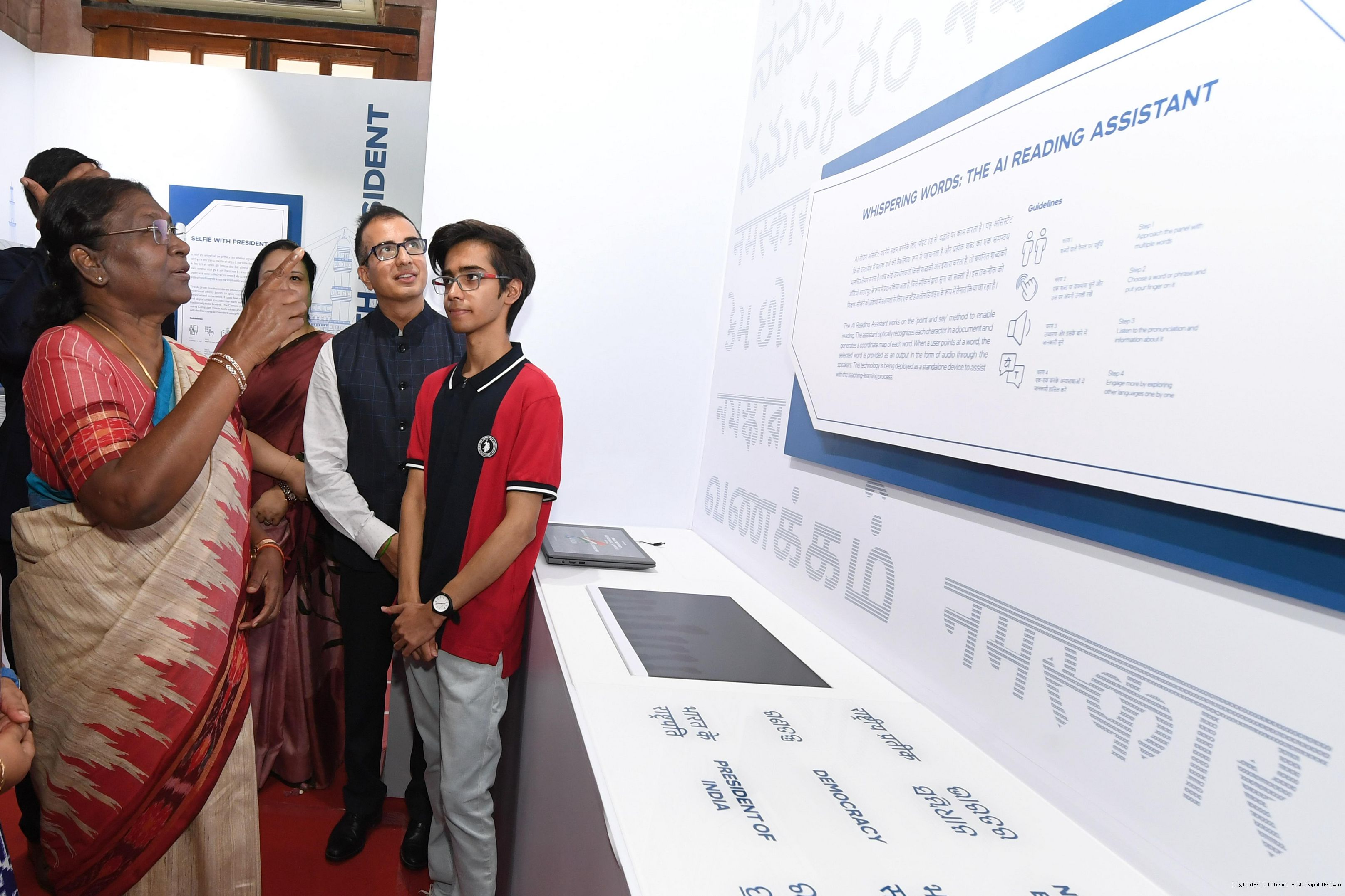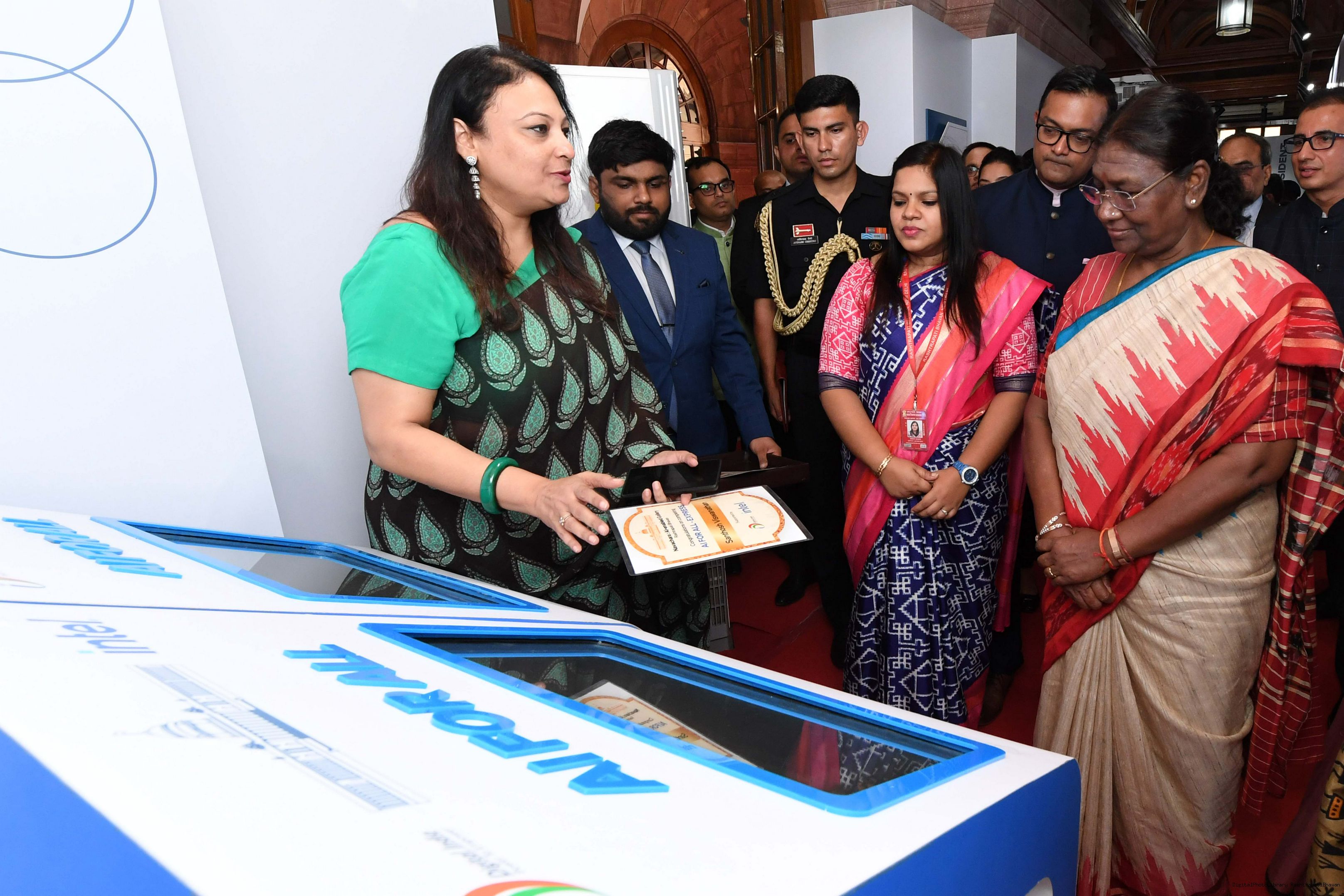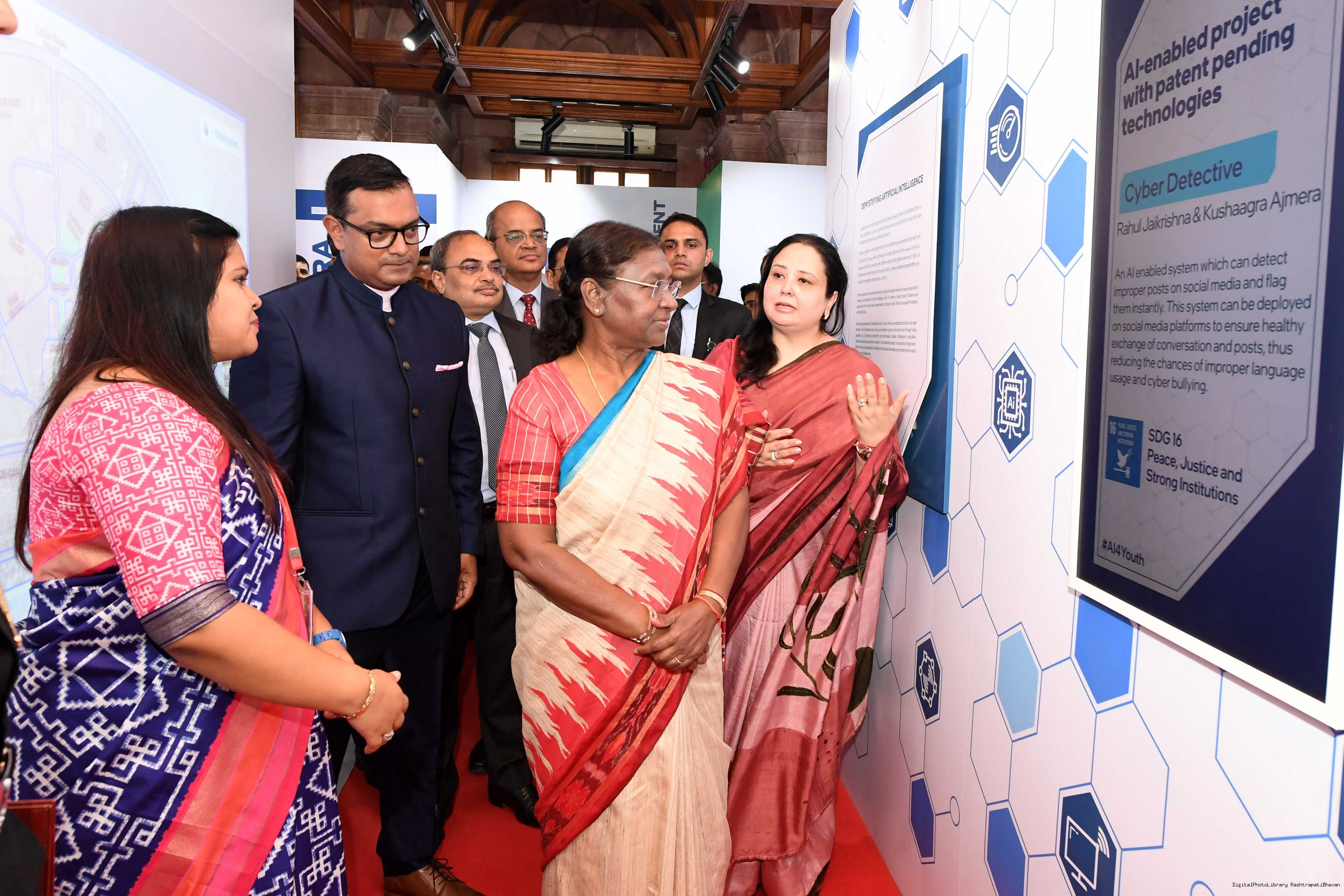 | Caption: | The President of India, Smt. Droupadi Murmu Visited Navachar AI Gallery at Rashtrapati Bhavan on July 25, 2023. |