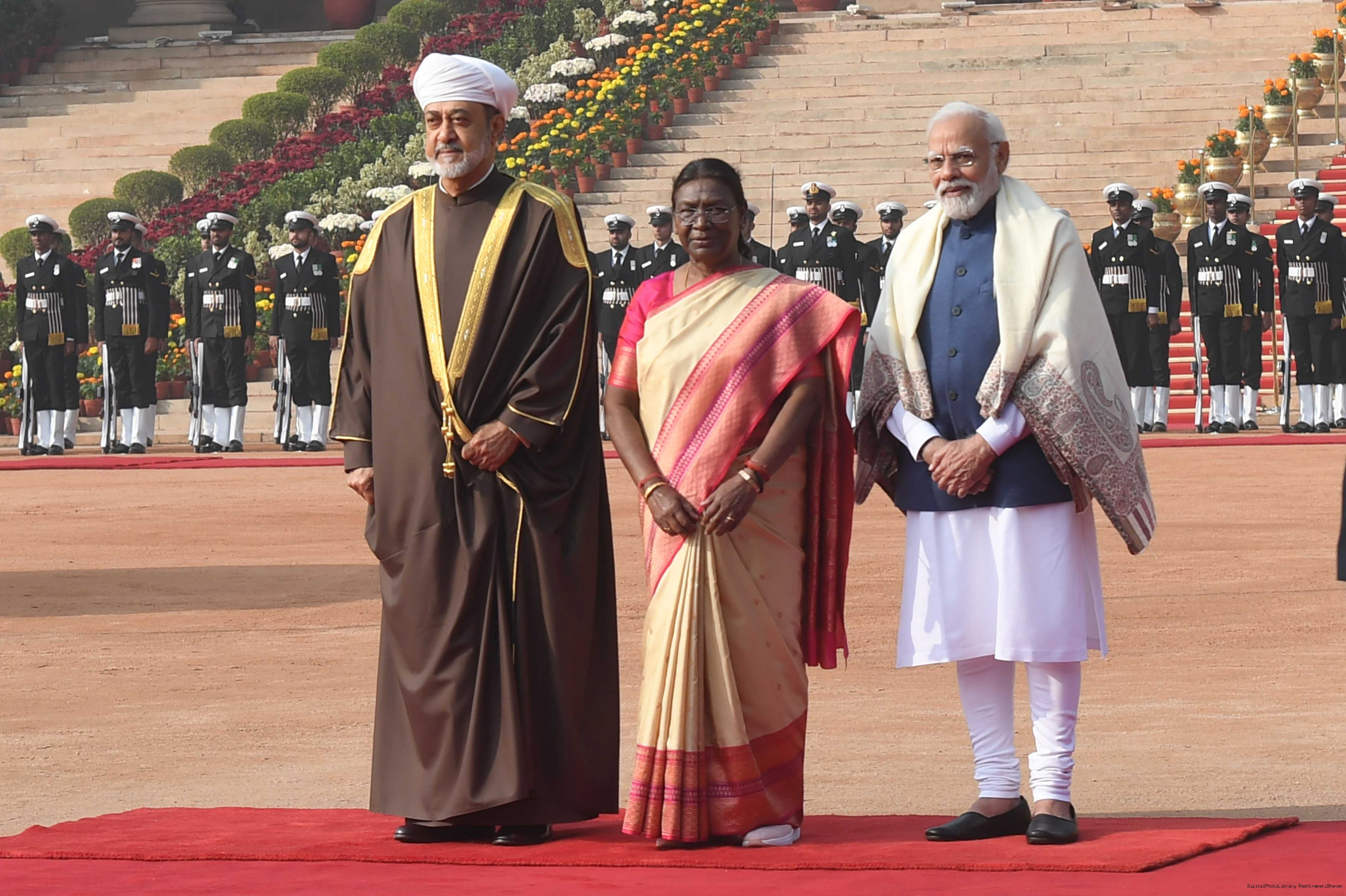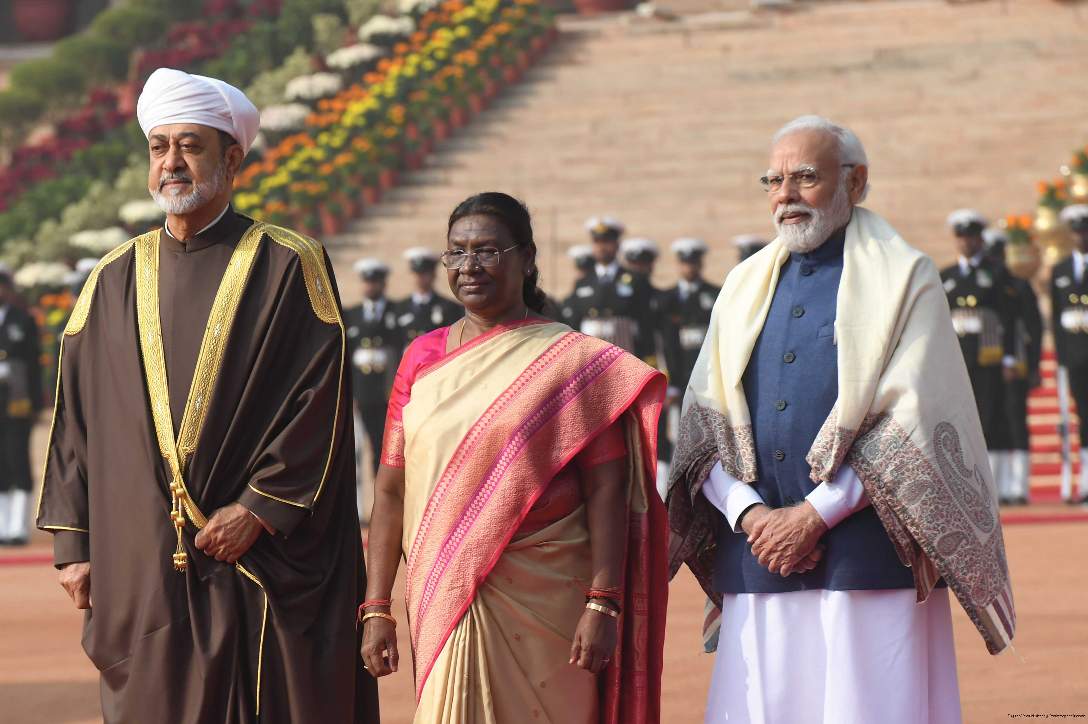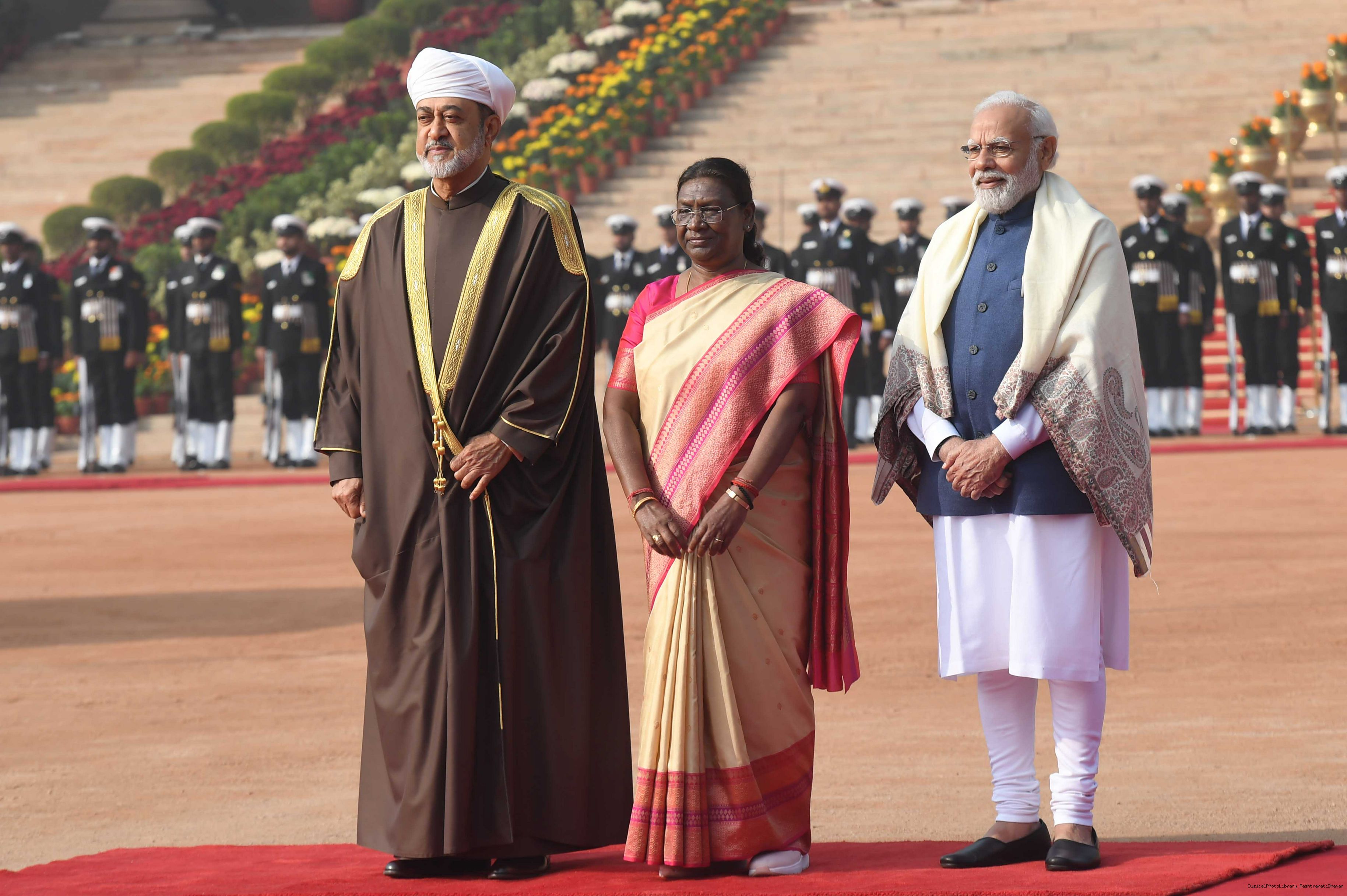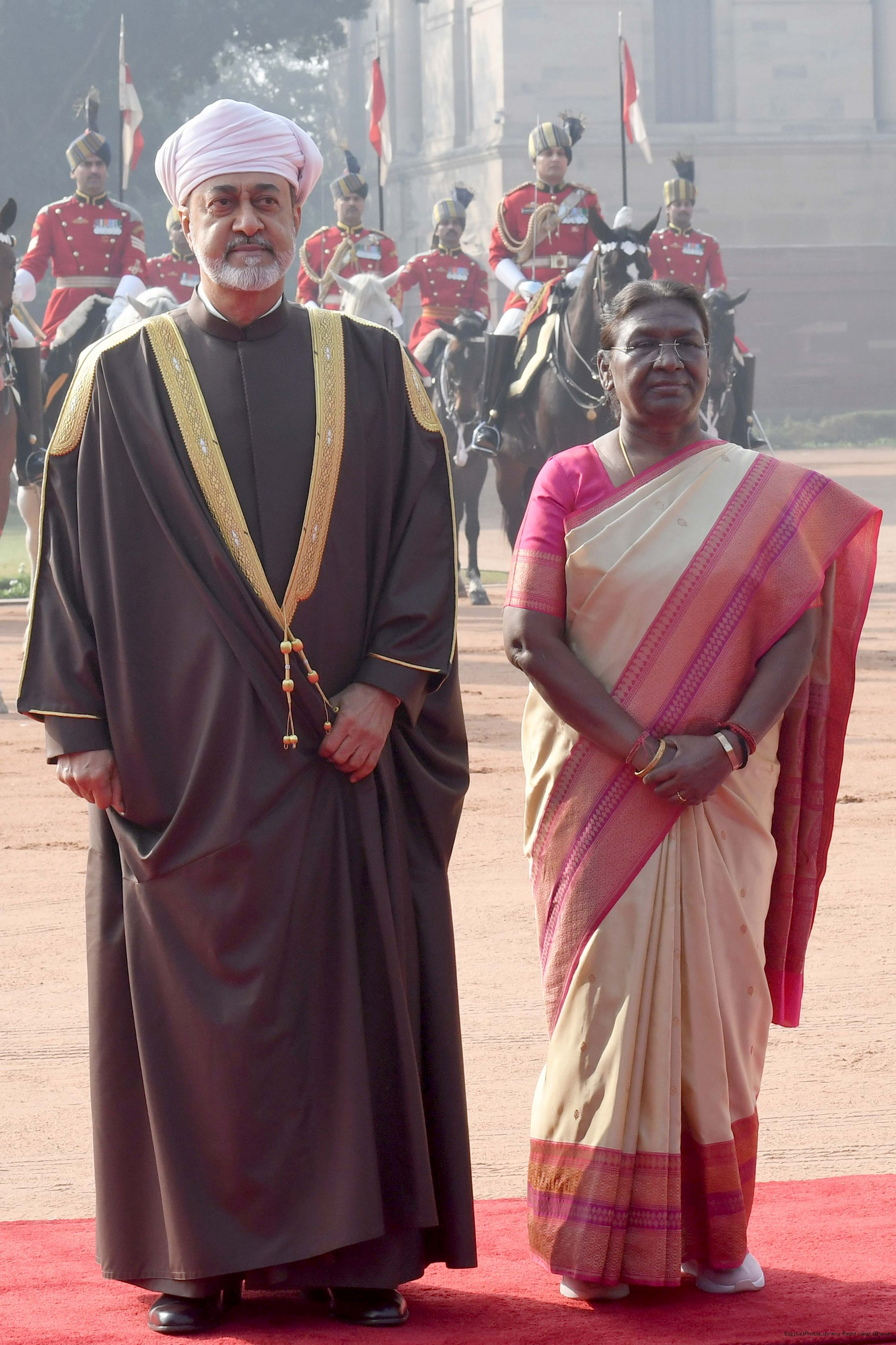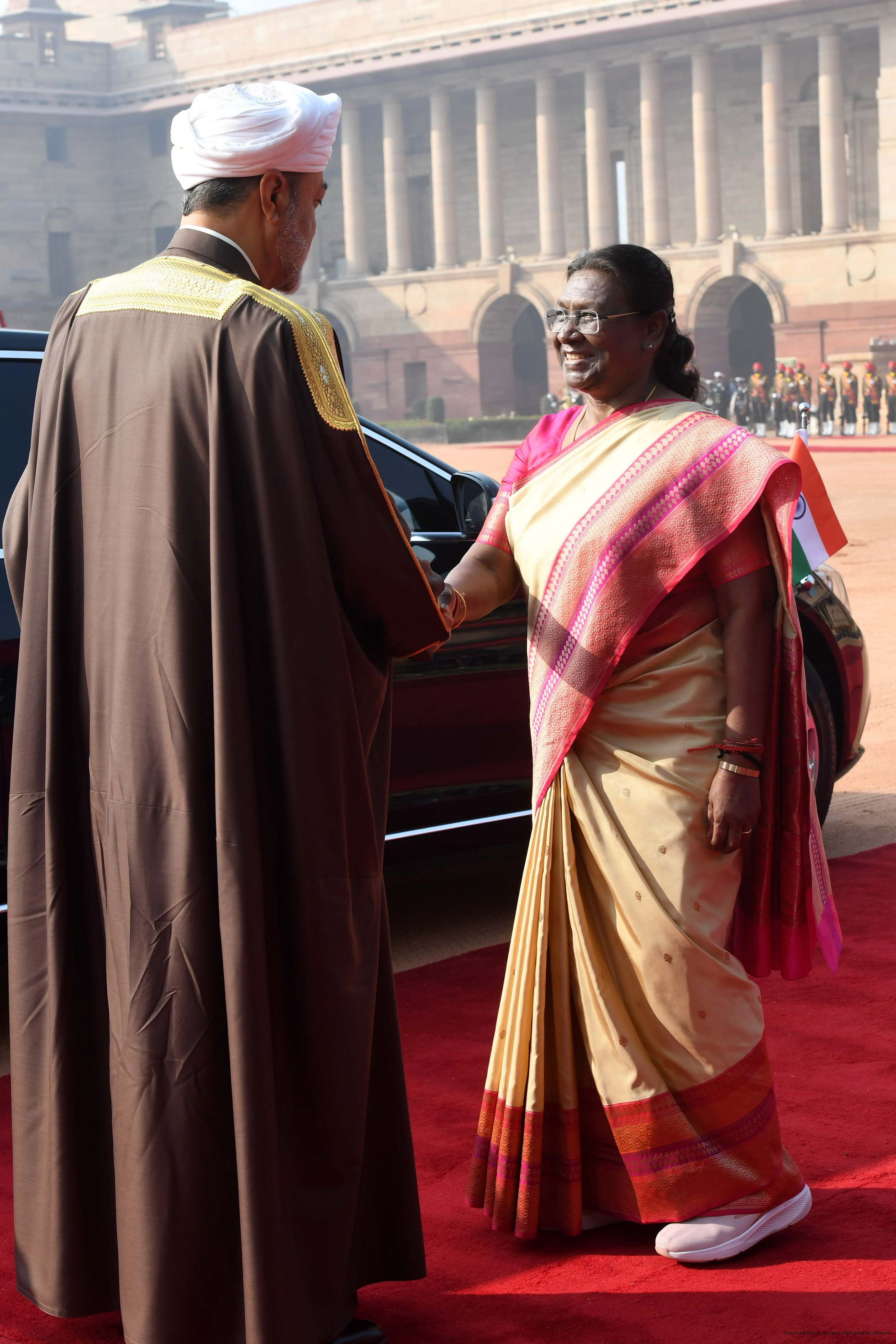 | Caption: | The President of India, Smt Droupadi Murmu Ceremonial Reception of His Majesty Sultan Haitham Bin Tarik, The Sultan of Oman at Rashtrapati Bhavan on December 16, 2023. |