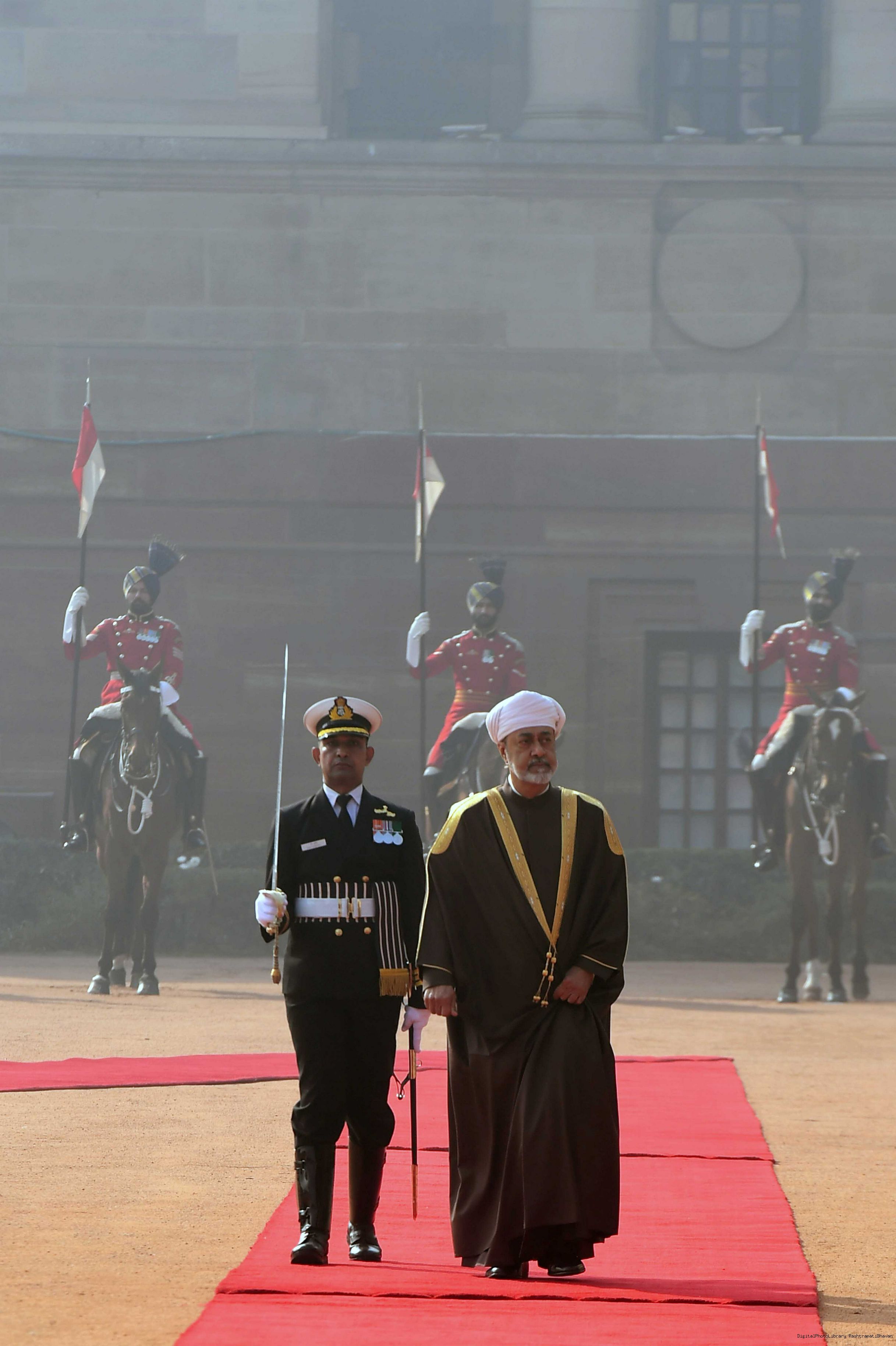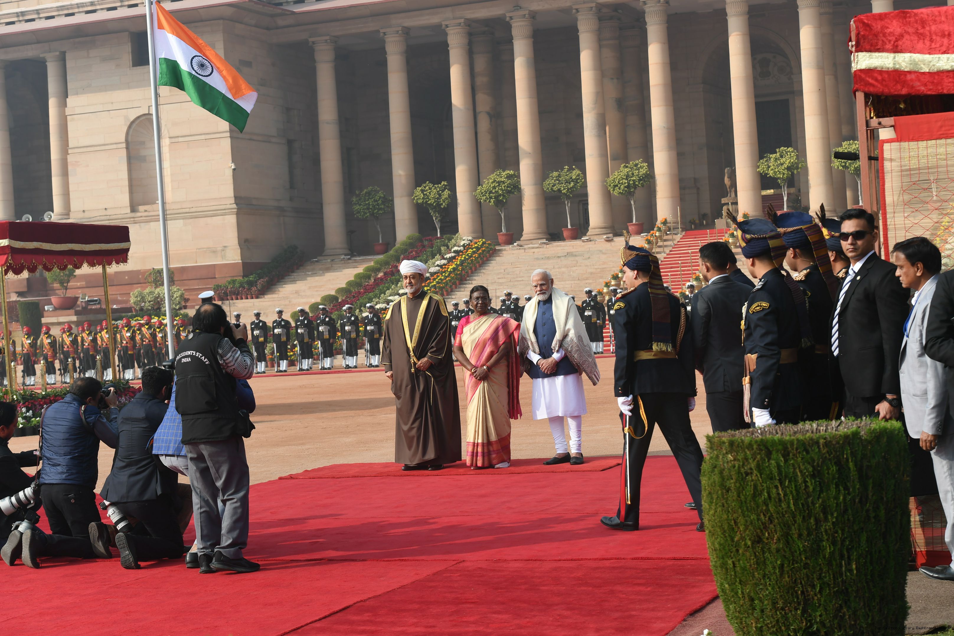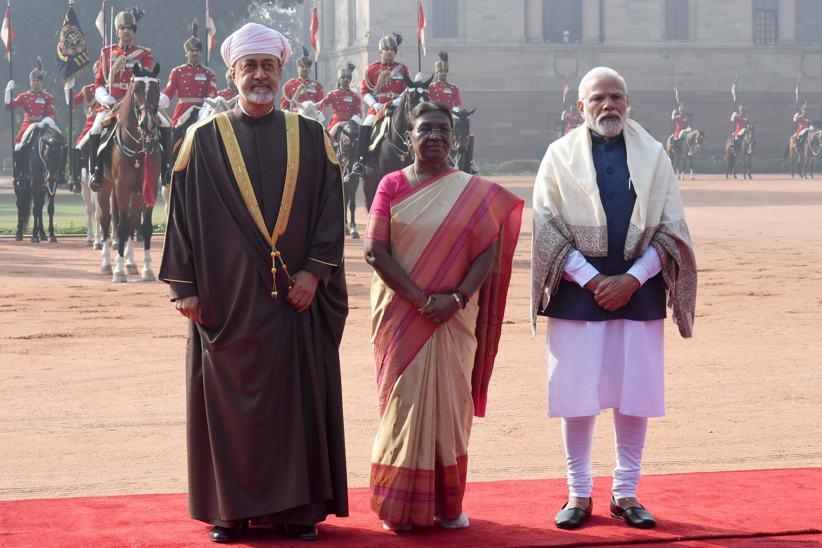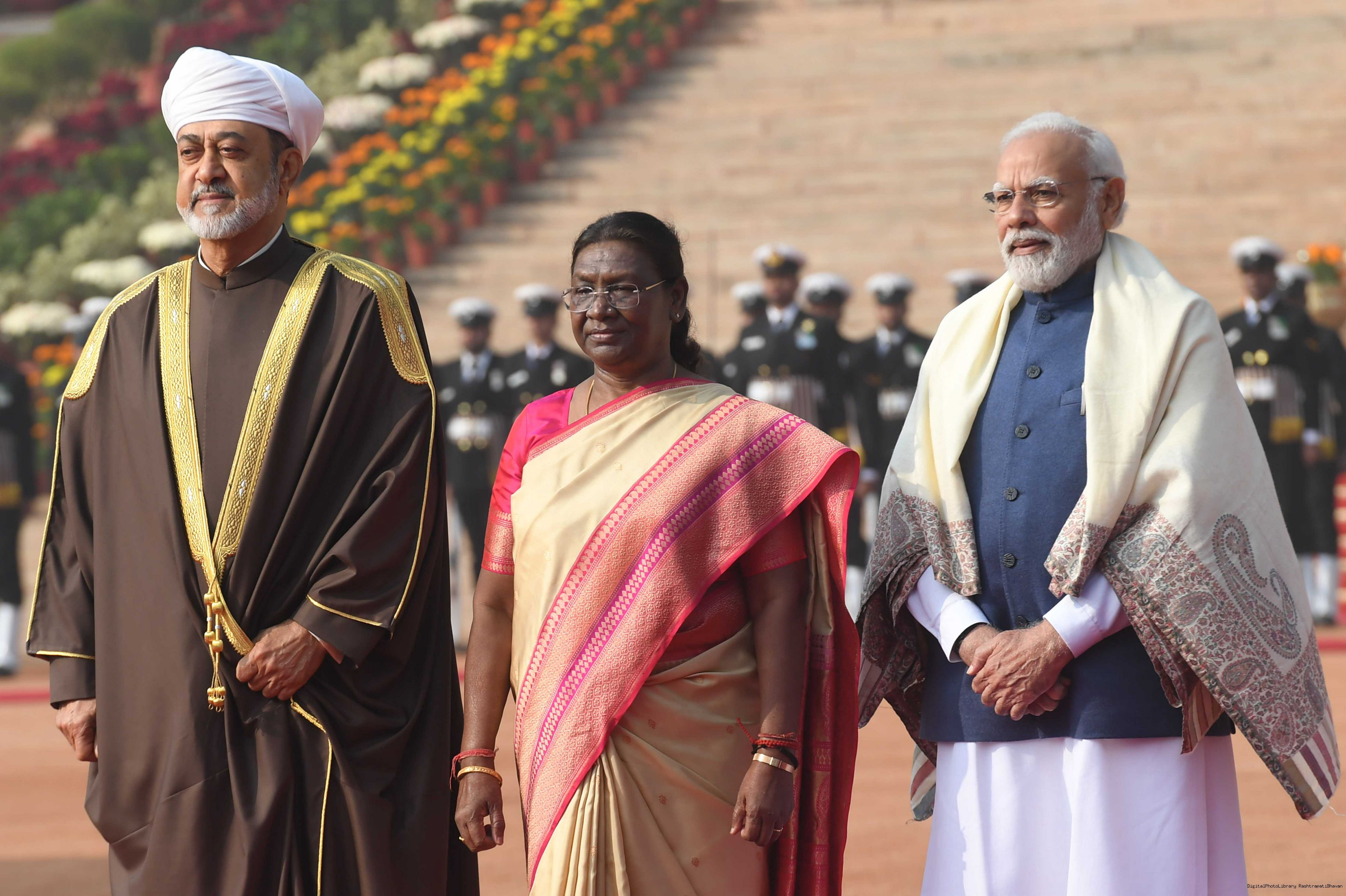 | Caption: | The President of India, Smt Droupadi Murmu Ceremonial Reception of His Majesty Sultan Haitham Bin Tarik, The Sultan of Oman at Rashtrapati Bhavan on December 16, 2023. |