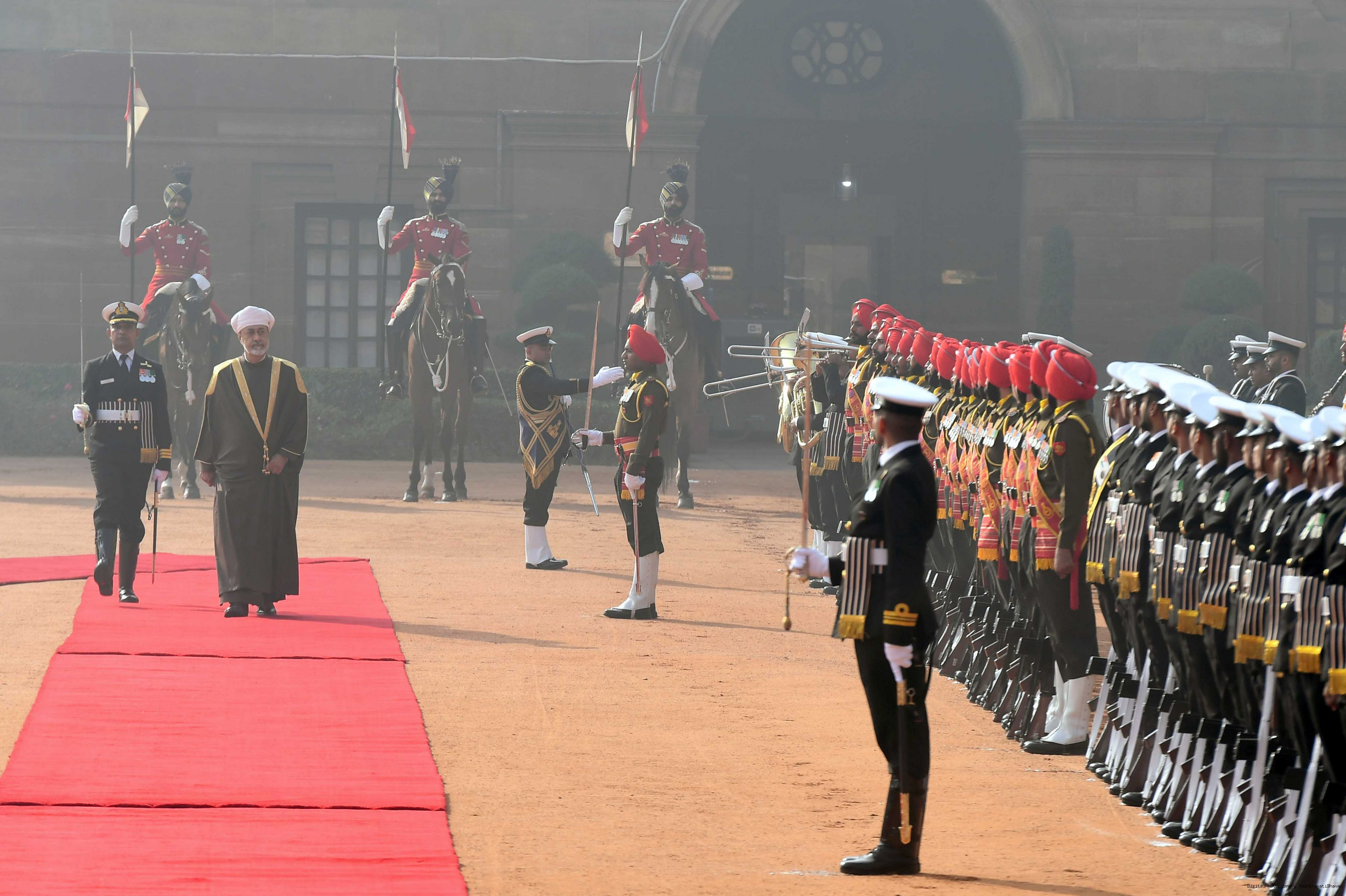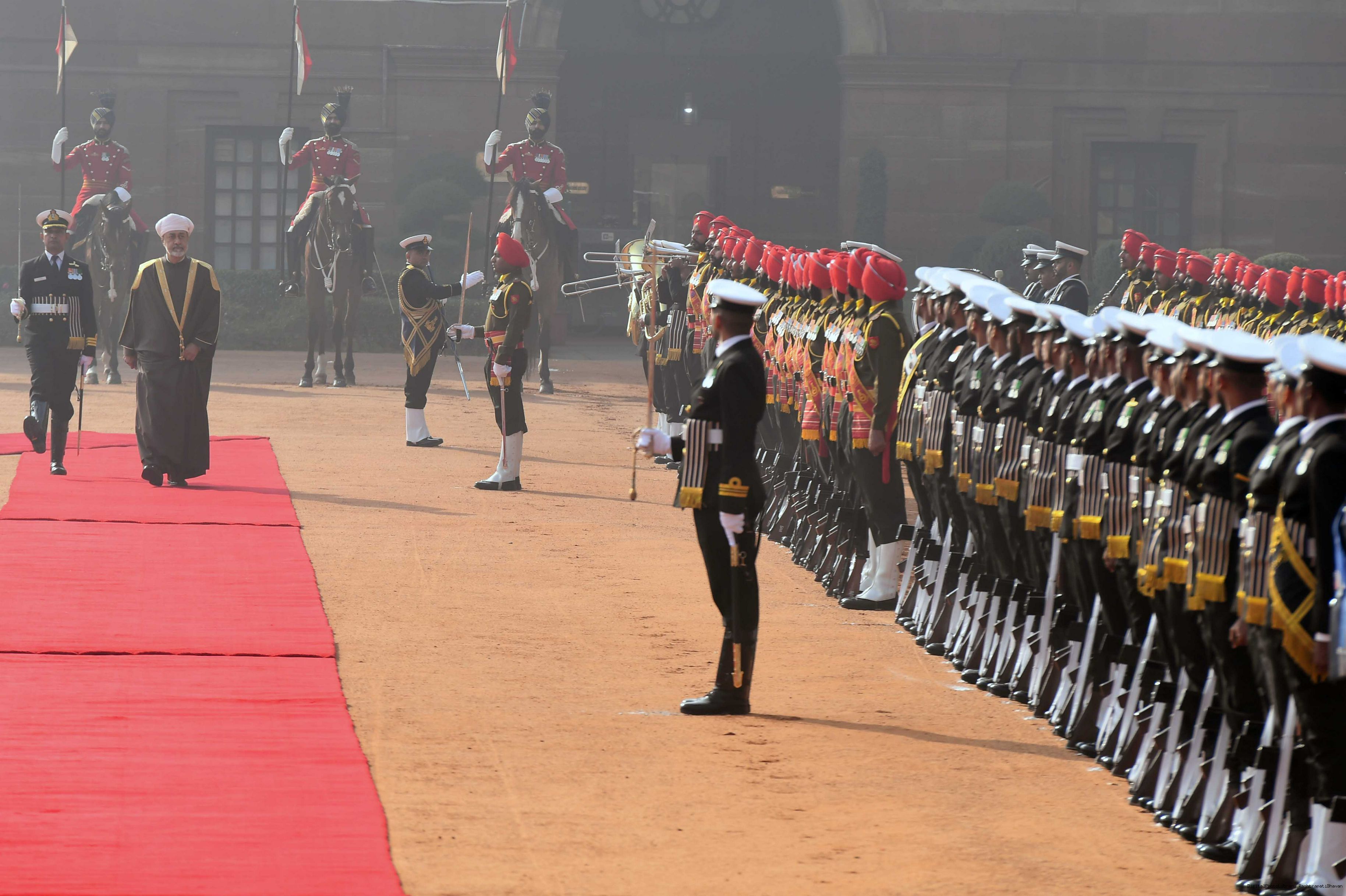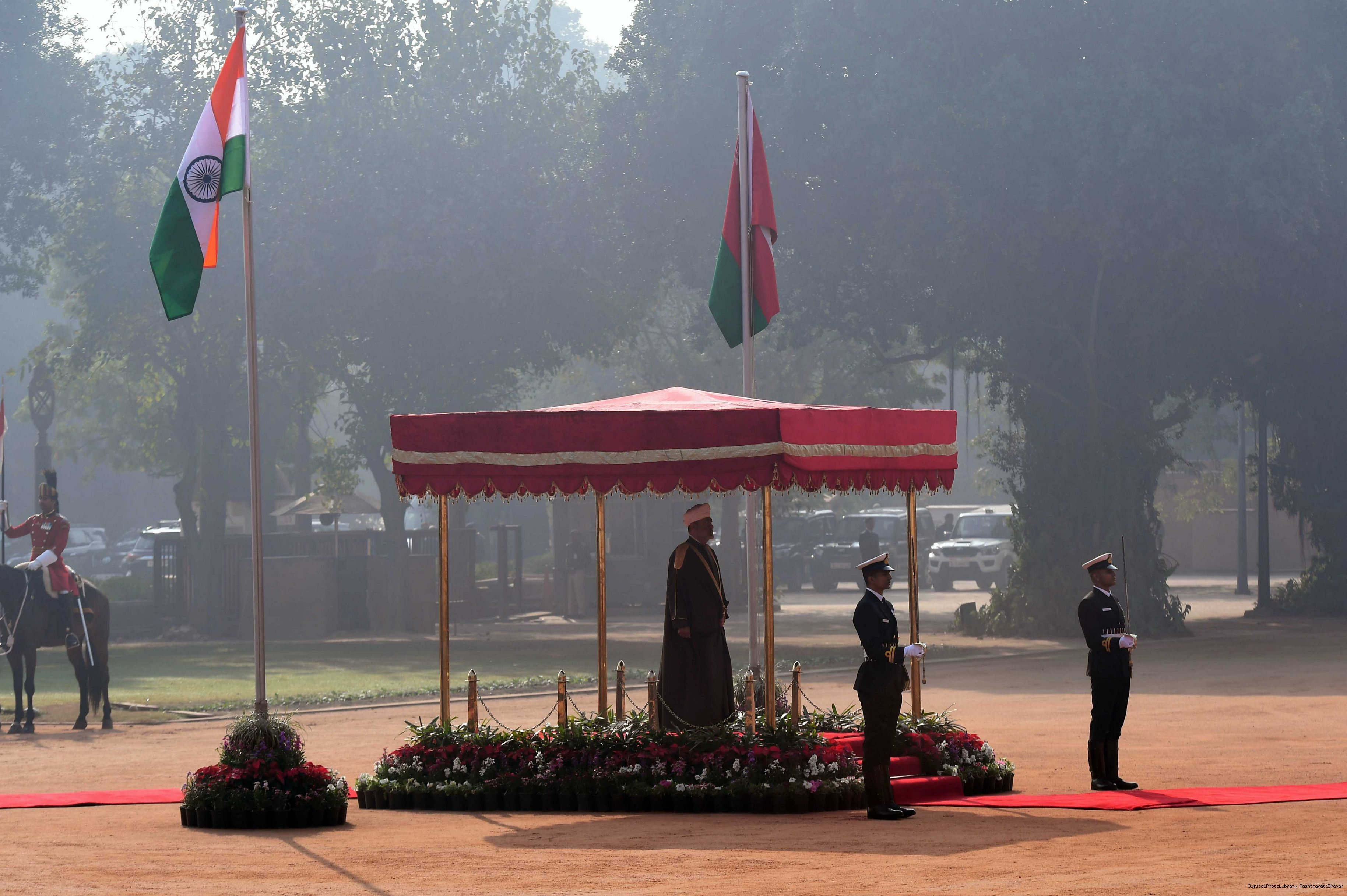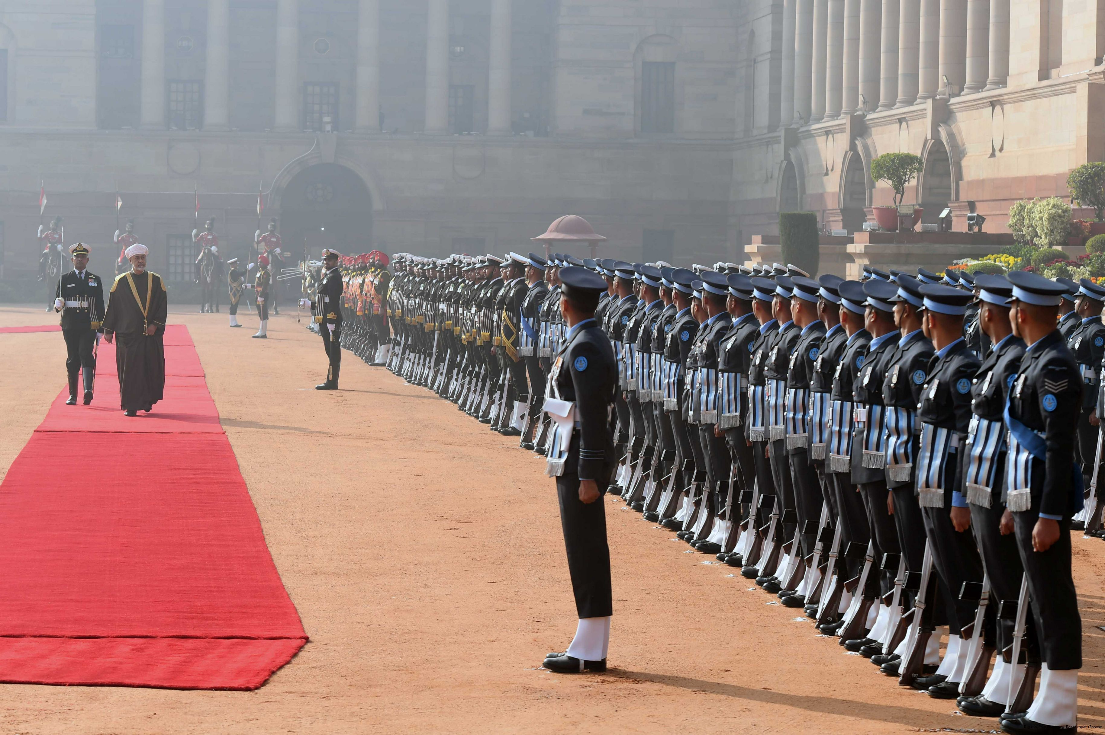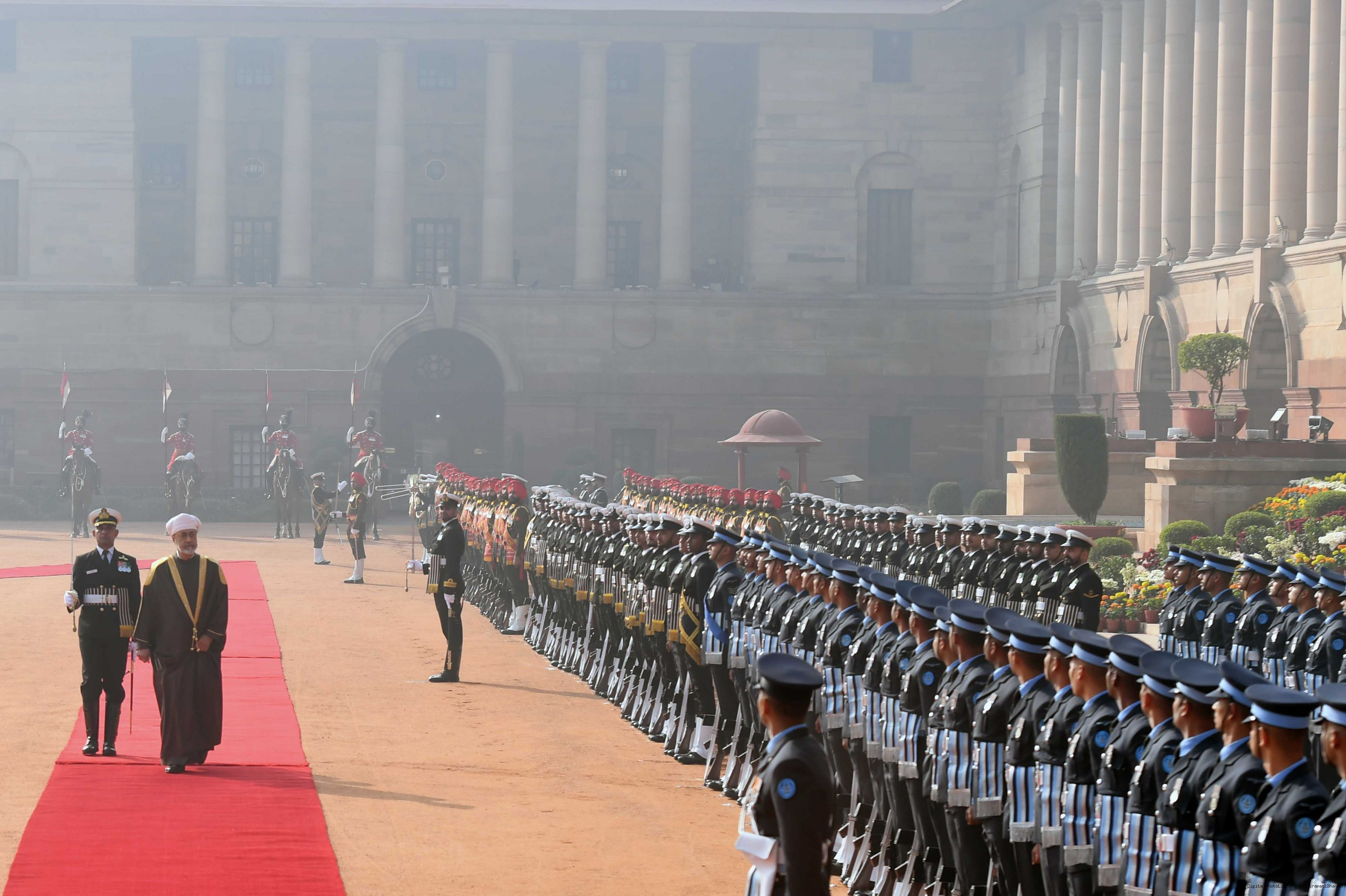 | Caption: | The President of India, Smt Droupadi Murmu Ceremonial Reception of His Majesty Sultan Haitham Bin Tarik, The Sultan of Oman at Rashtrapati Bhavan on December 16, 2023. |