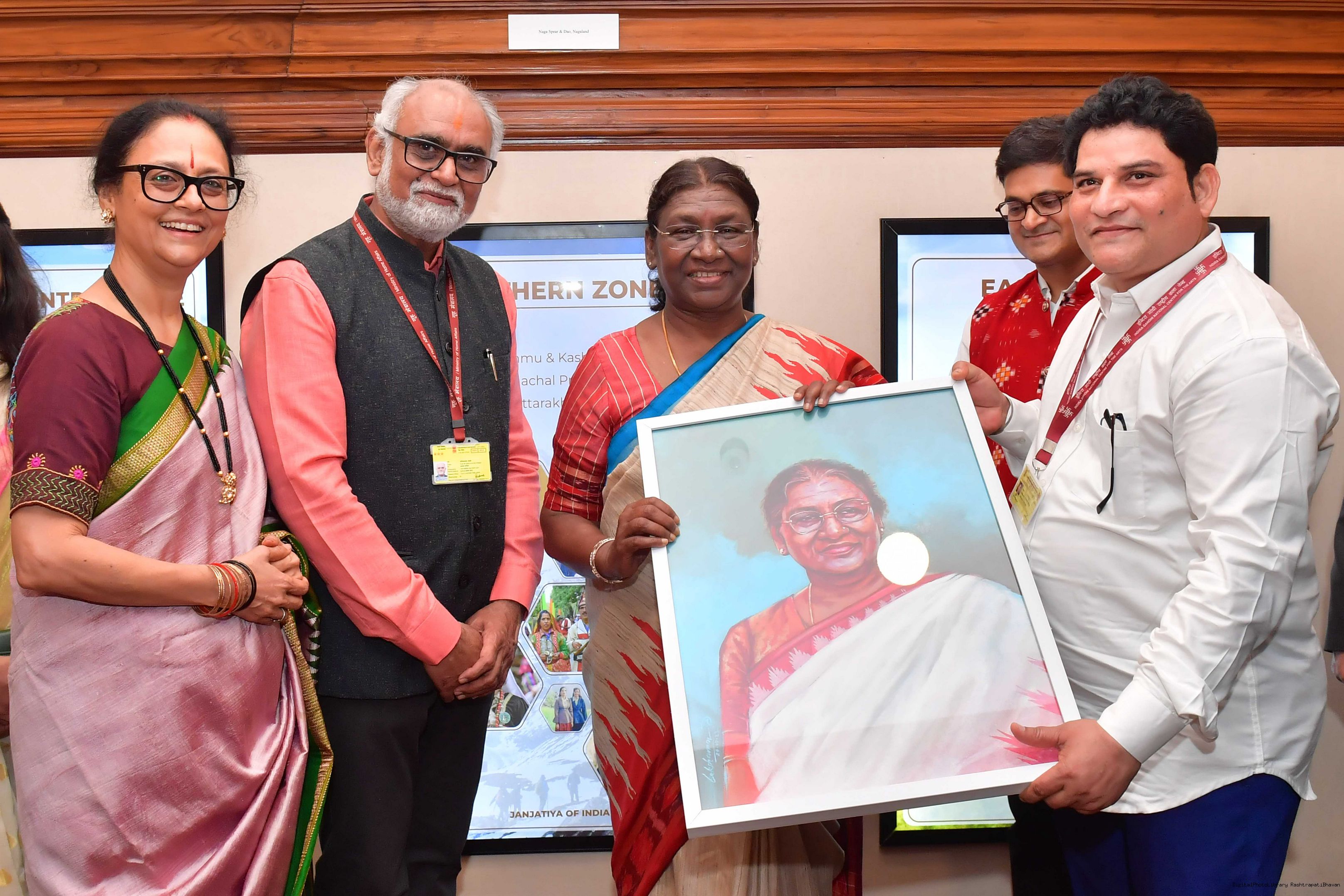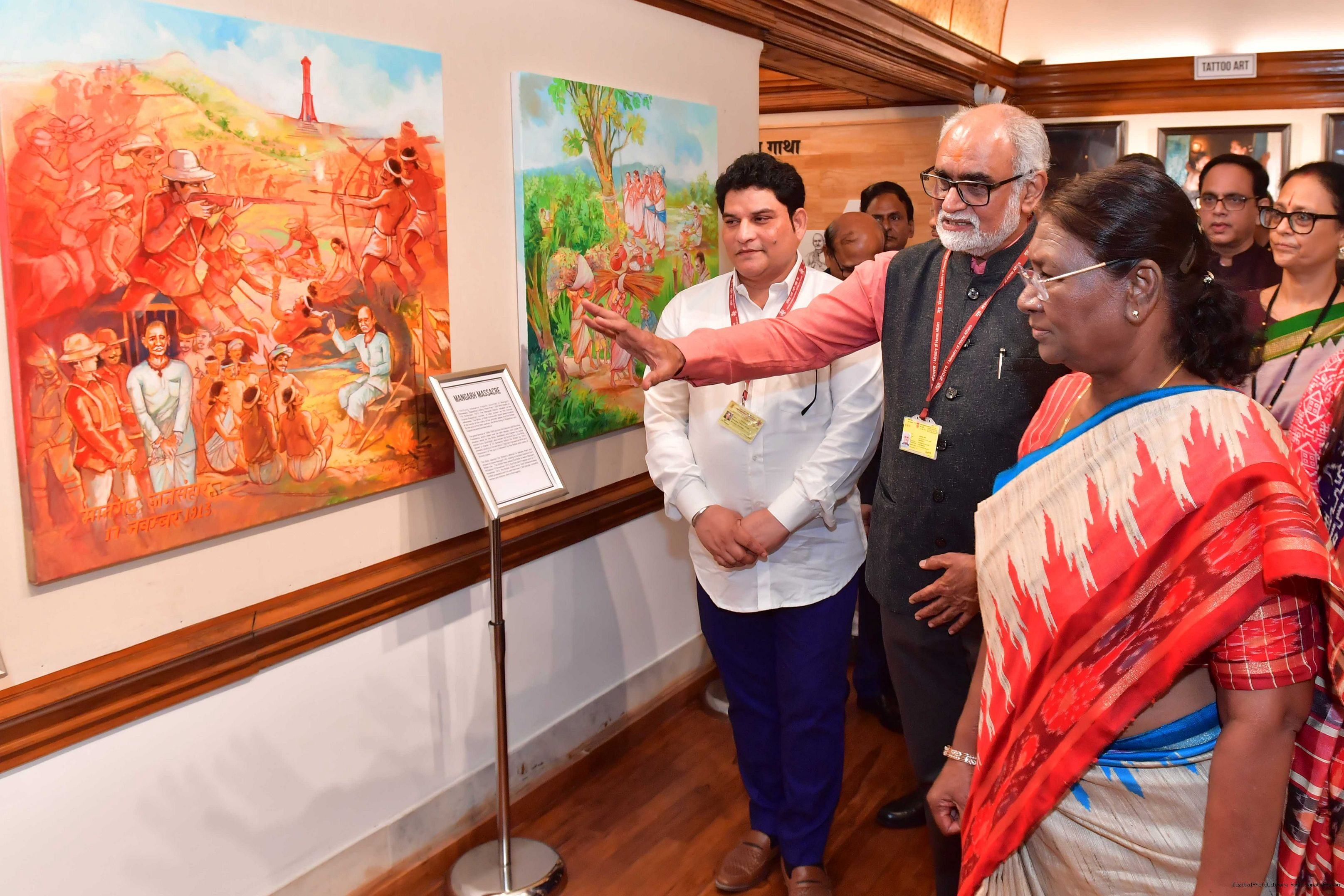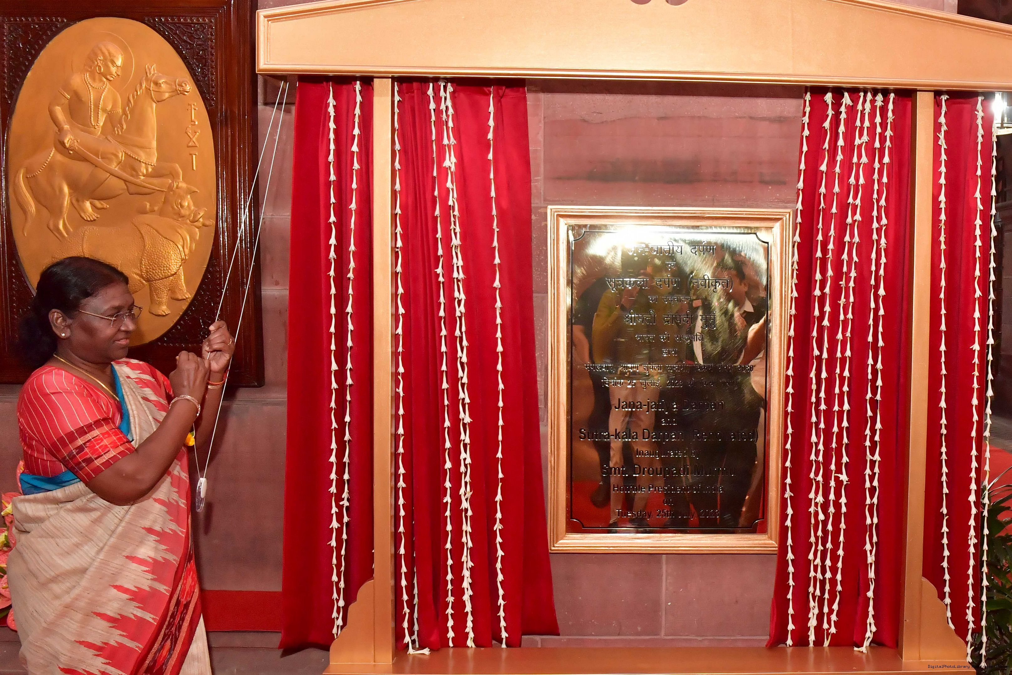 | Caption: | The President of India, Smt. Droupadi Murmu Inaugurated of Sutra-Kala Darpan and Janjatiya Darpan by unveiling of Plaque on July 25, 2023. |