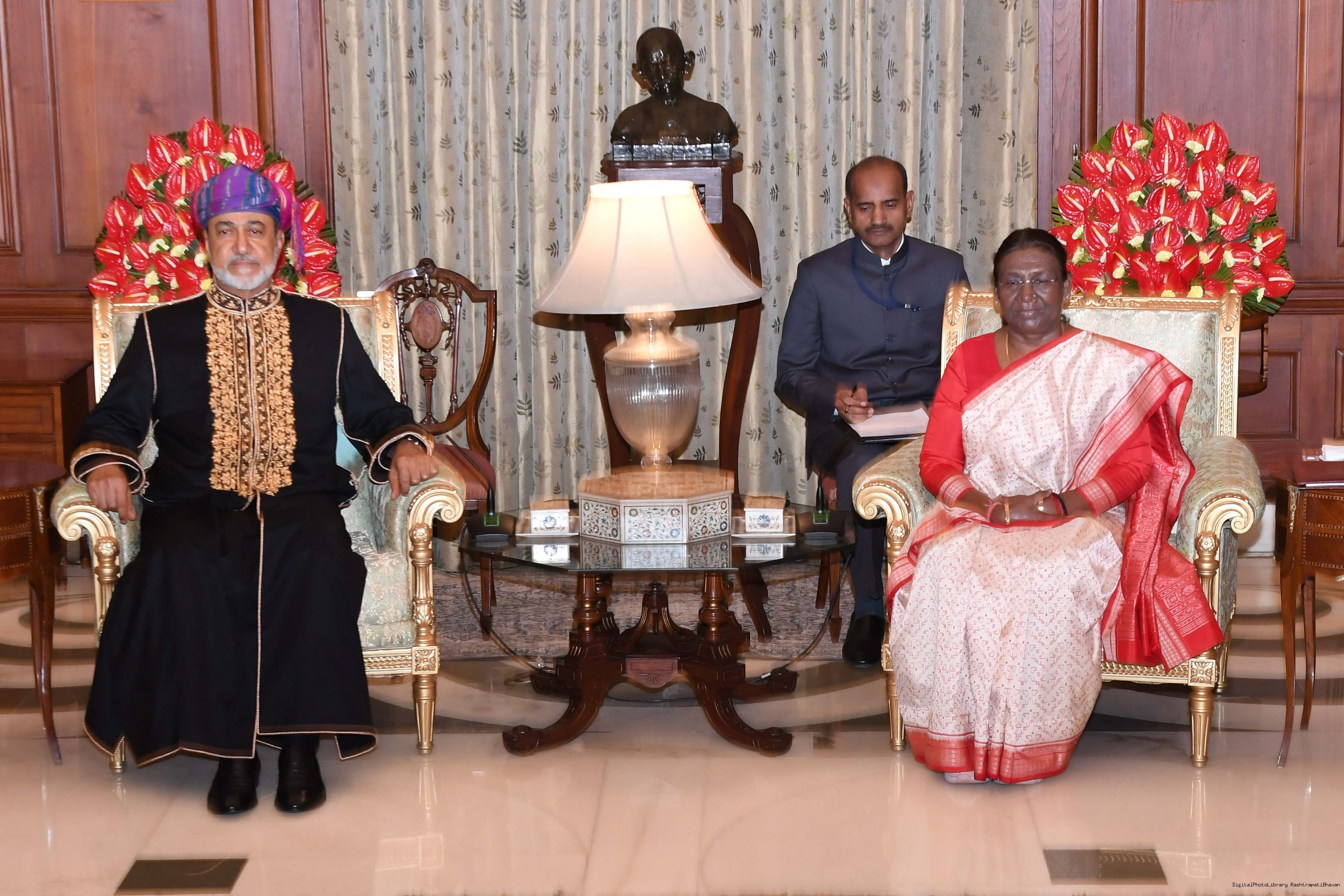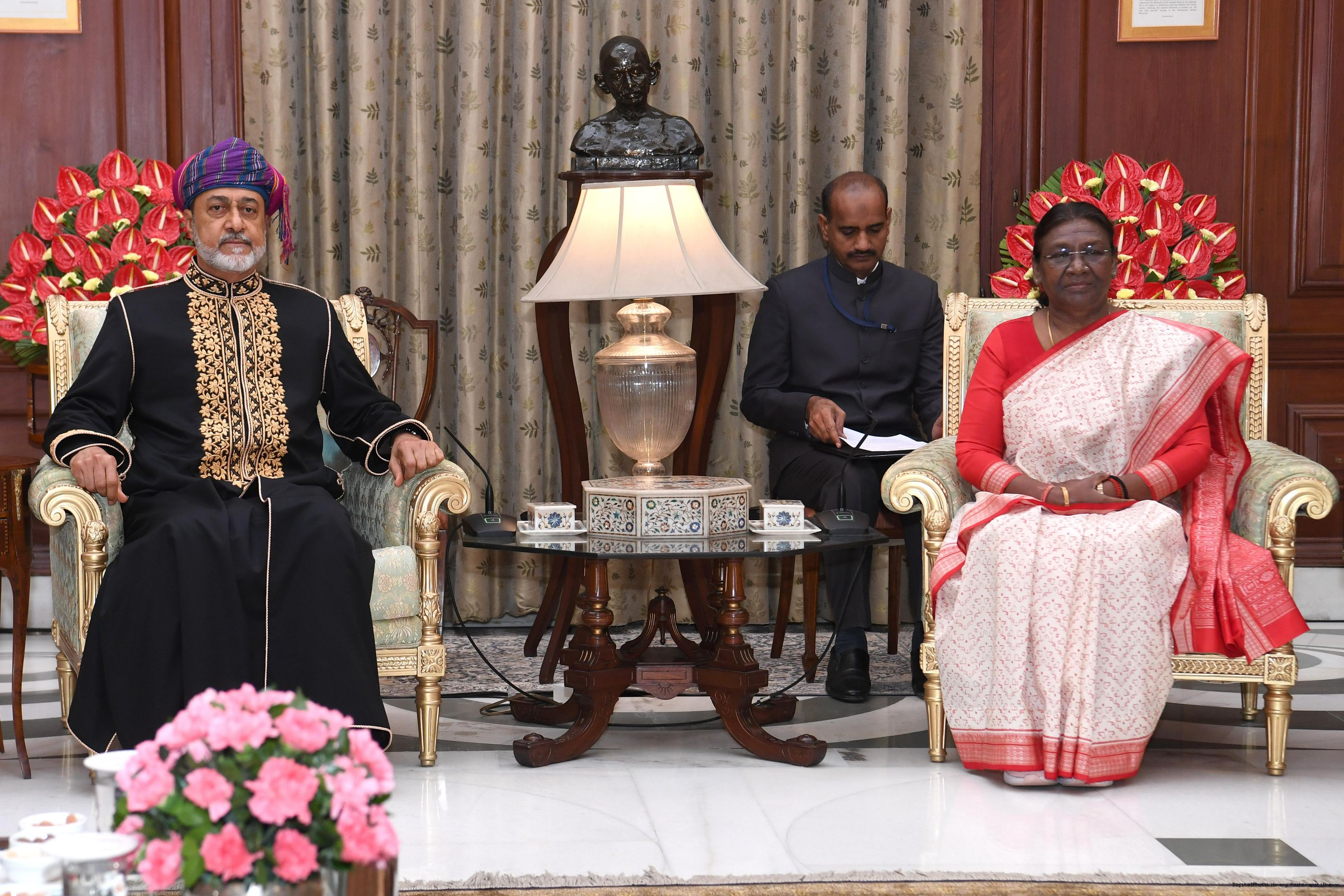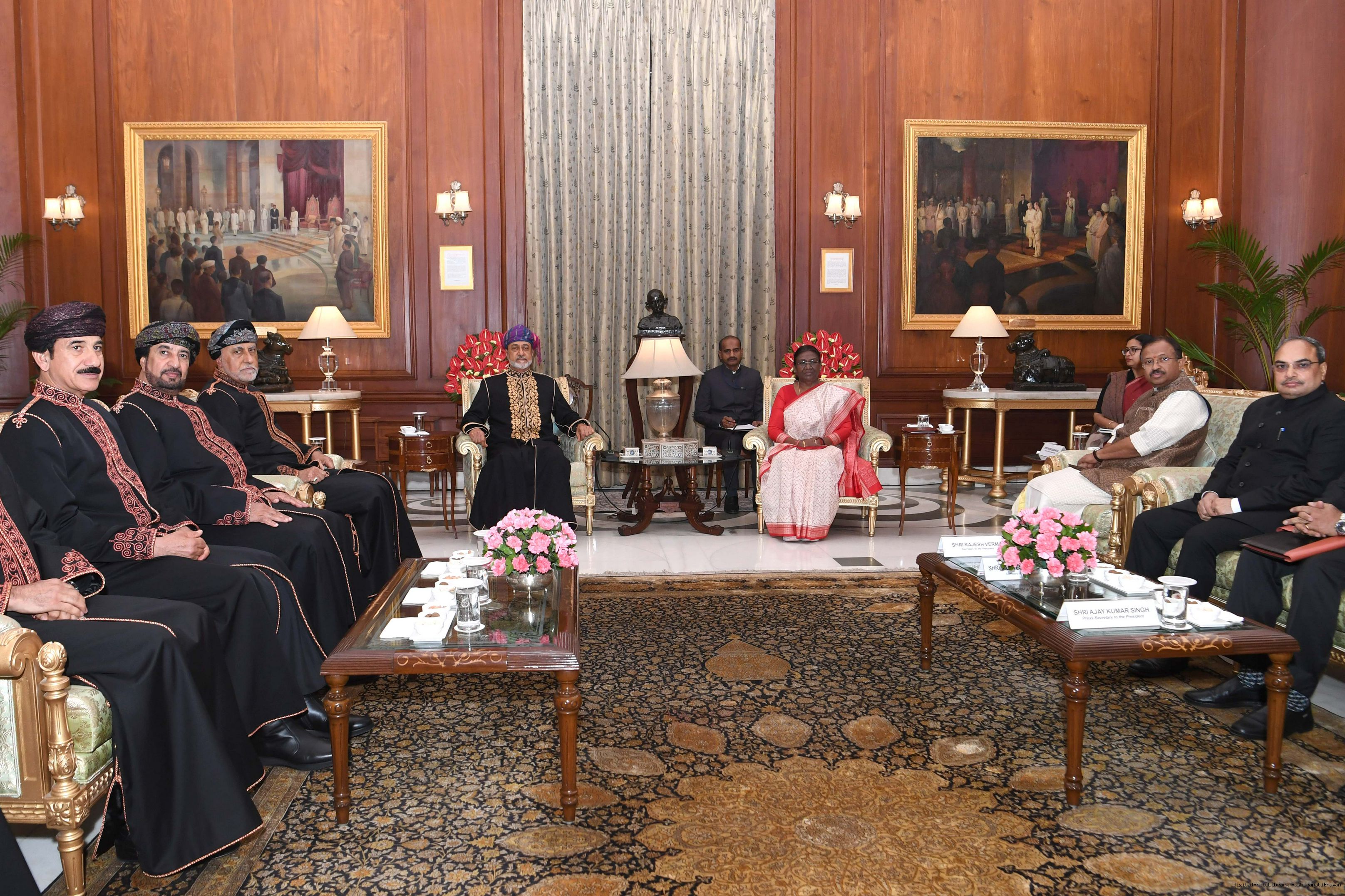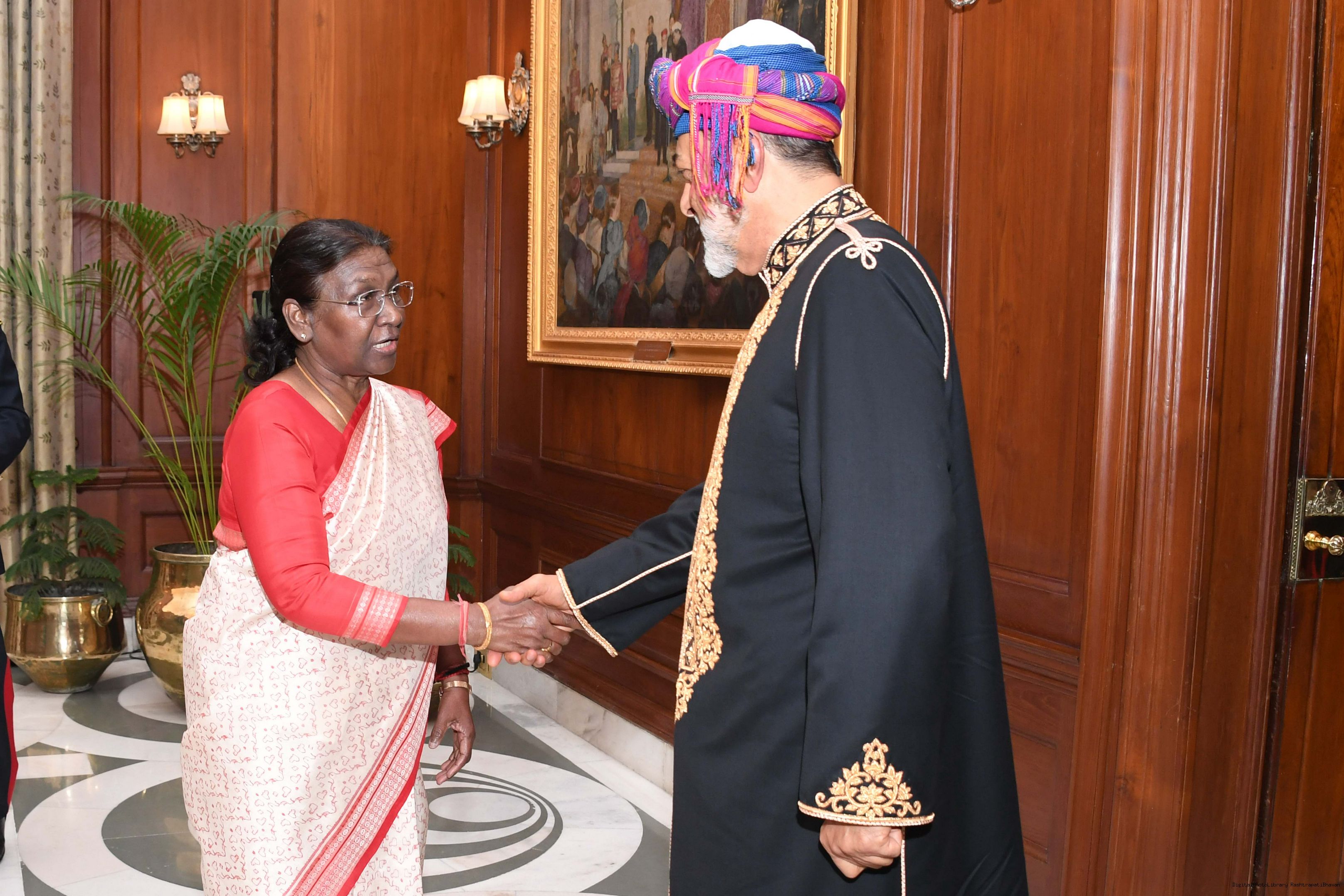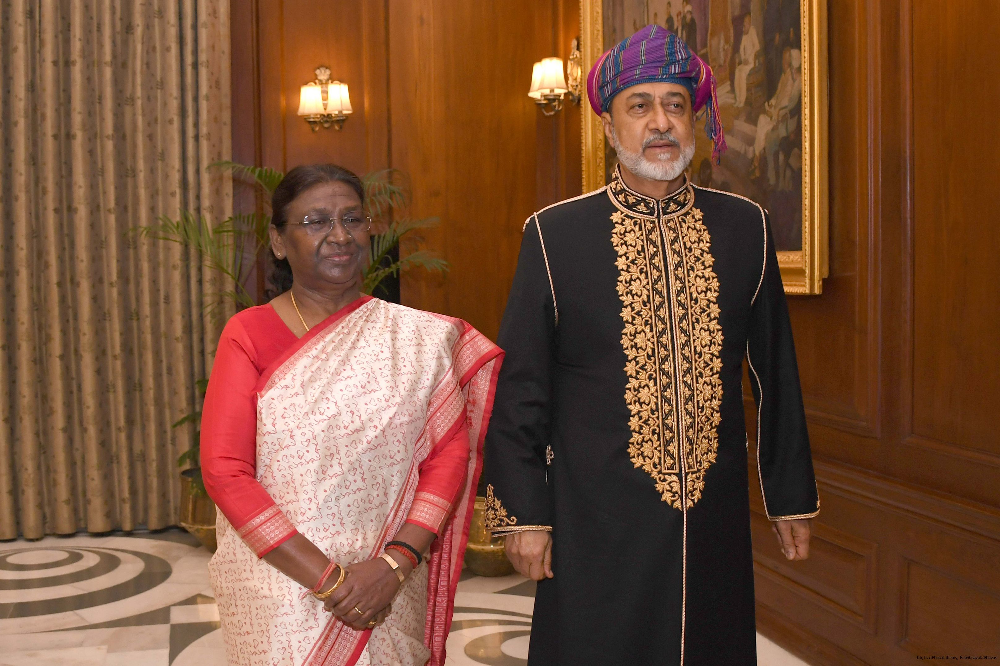 | Caption: | The President of india Smt. Droupadi Murmu Call on by His Majesty Sultan Haitham Bin Tarik, The Sultan of Oman at Rashtrapati Bhawan on December 16, 2023 |