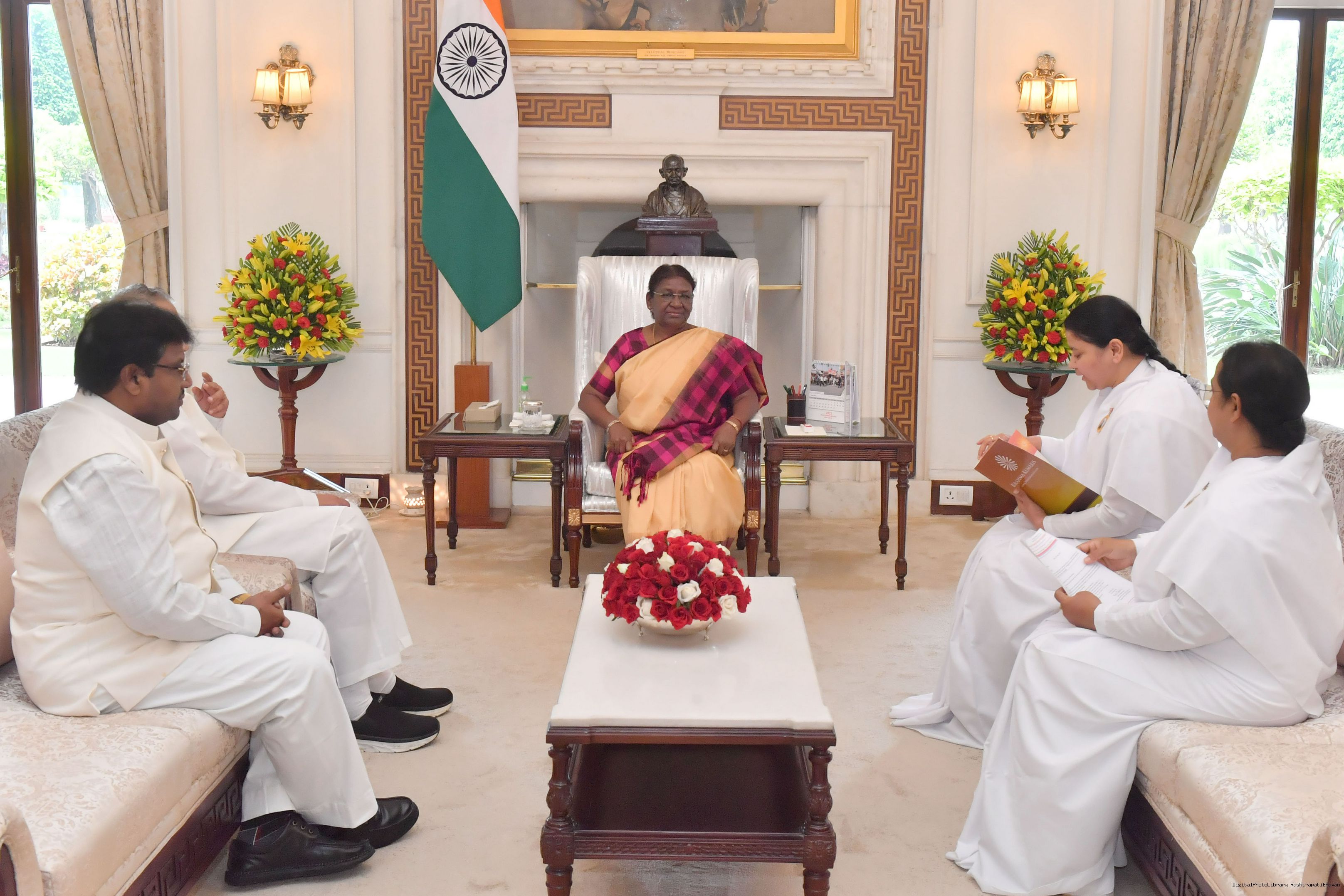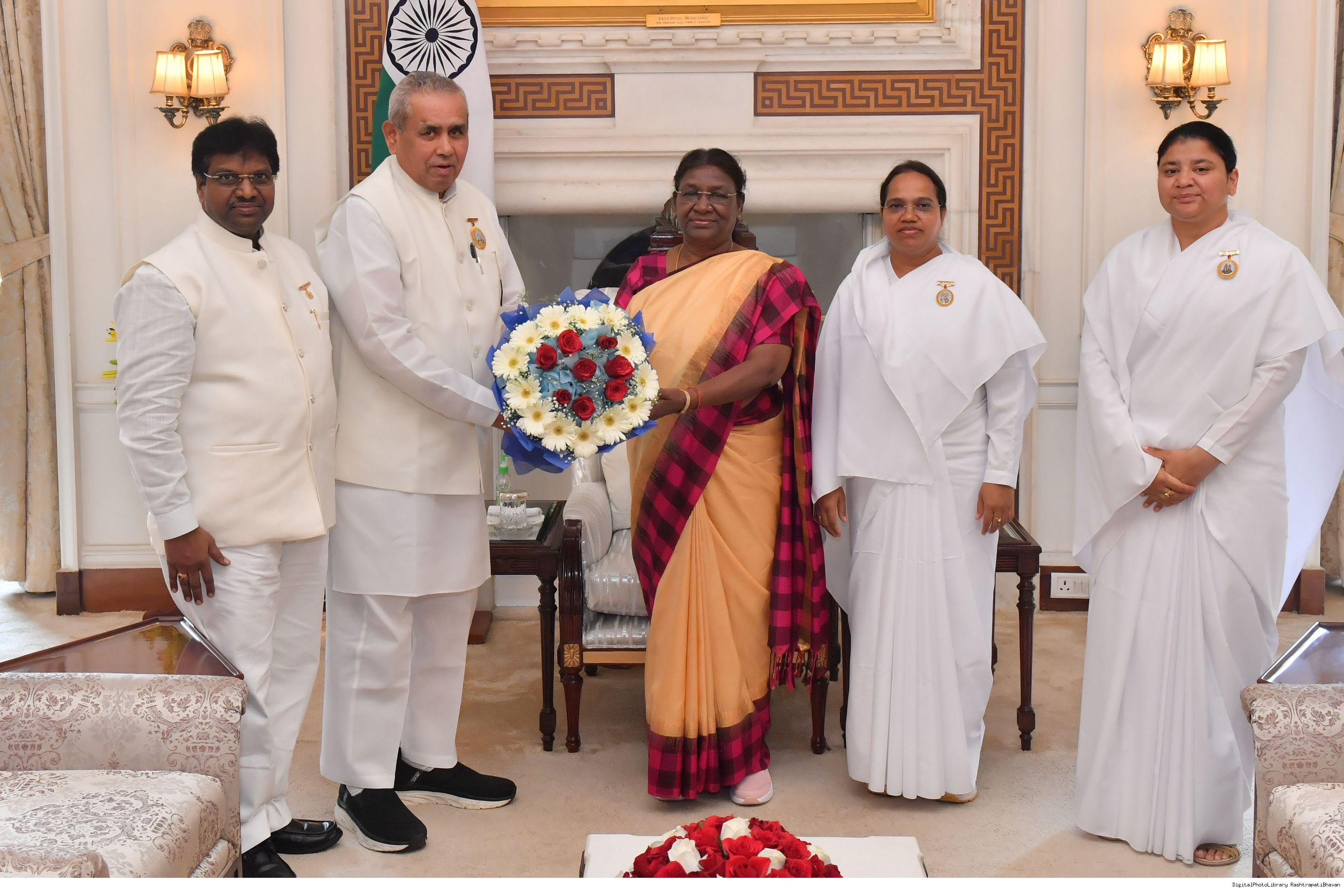 | Caption: | Dr. BK Mruthyunjaya, Executive Secretary, Brahma Kumaris along with others. meeting with the President of India, Smt. Droupadi Murmu at Rashtrapati Bhavan on July 31, 2023. |