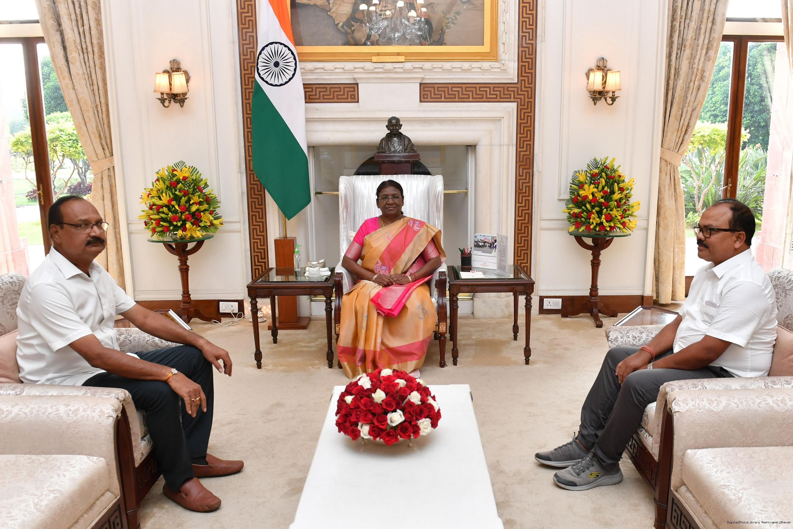 | Caption: | Shri Gyanedra Kumar Choudhury (Manu Bhai) along with other meeting with the President of India, Smt. Droupadi Murmu at Rashtrapati Bhavan on July 31, 2023. |