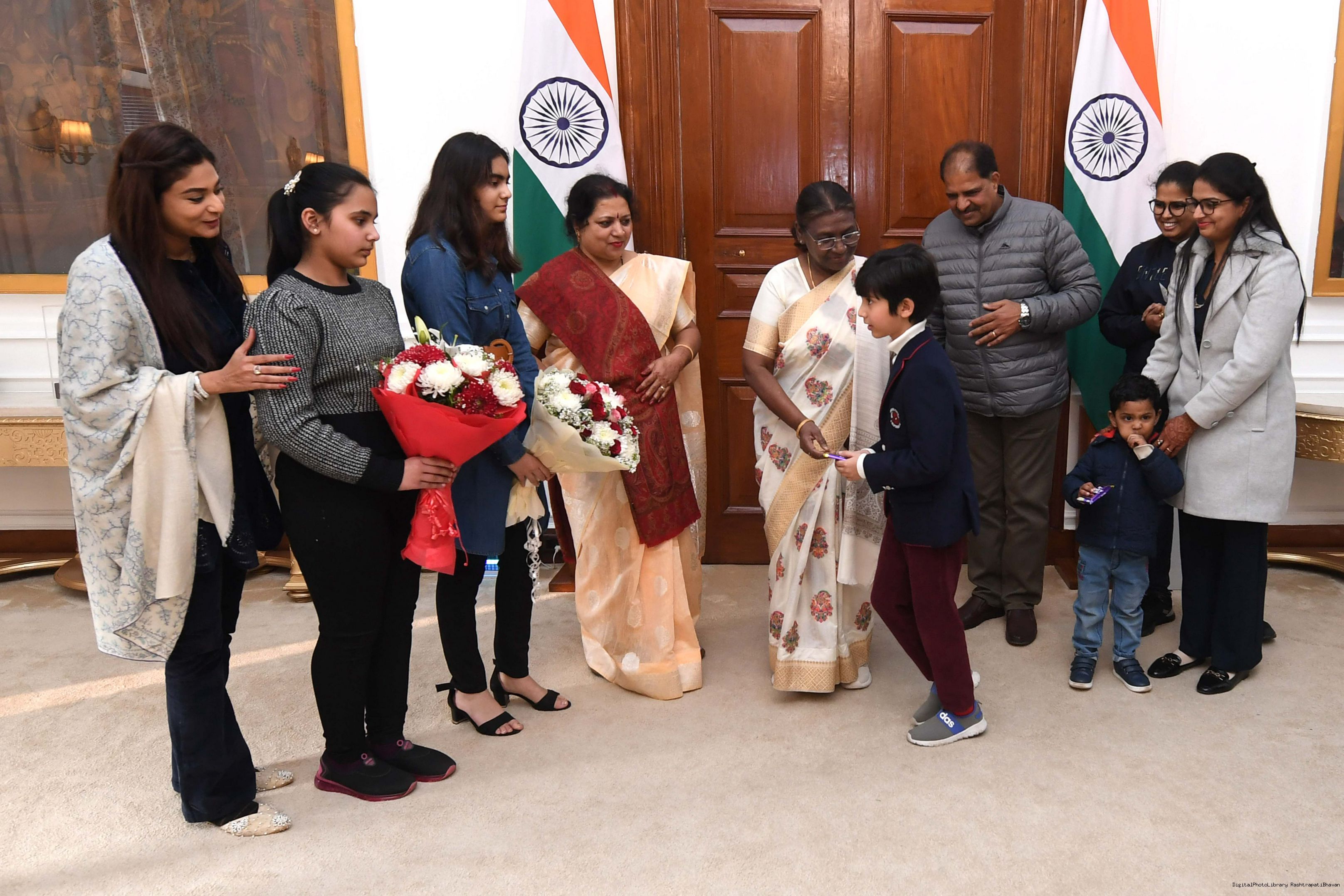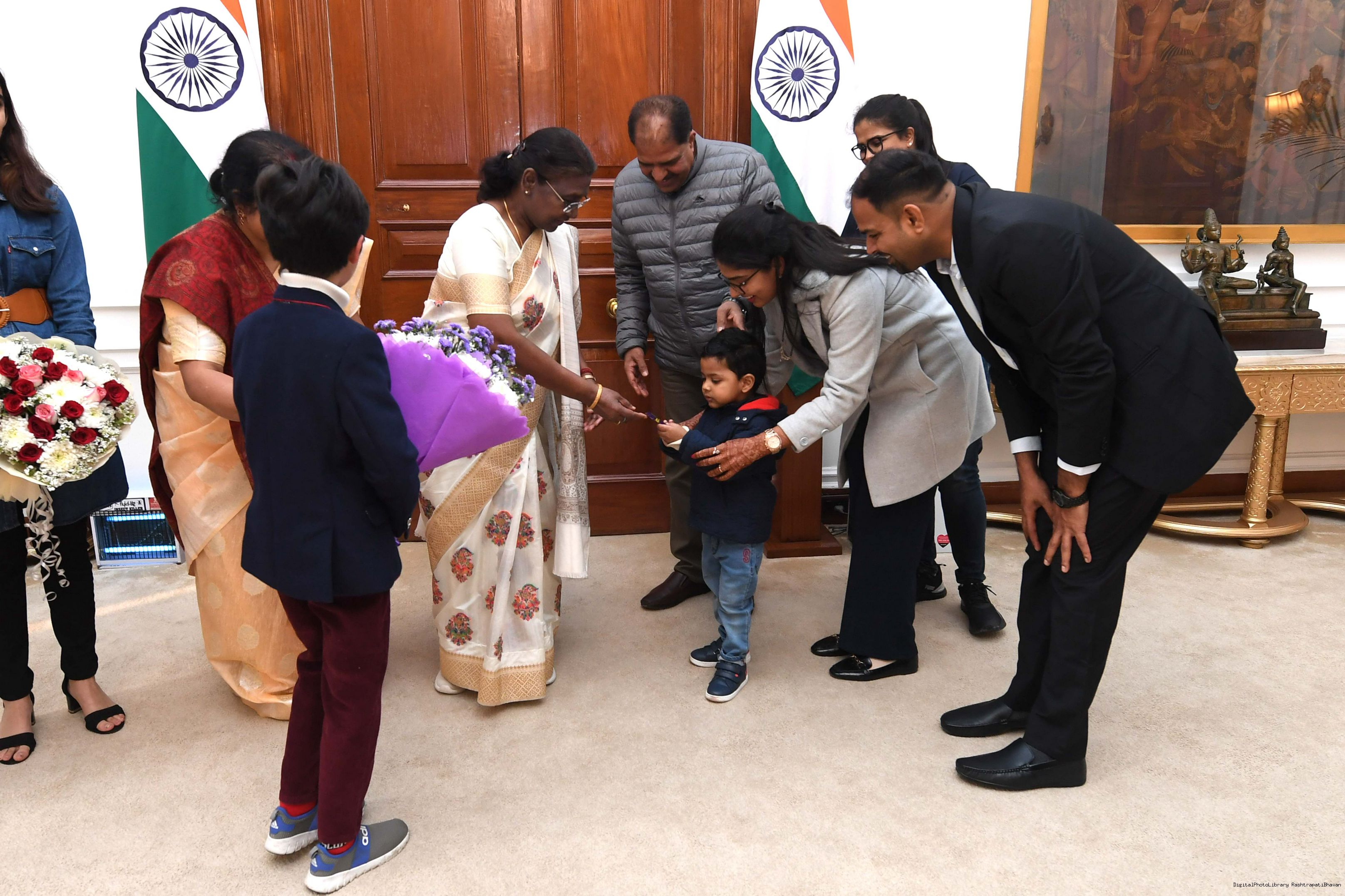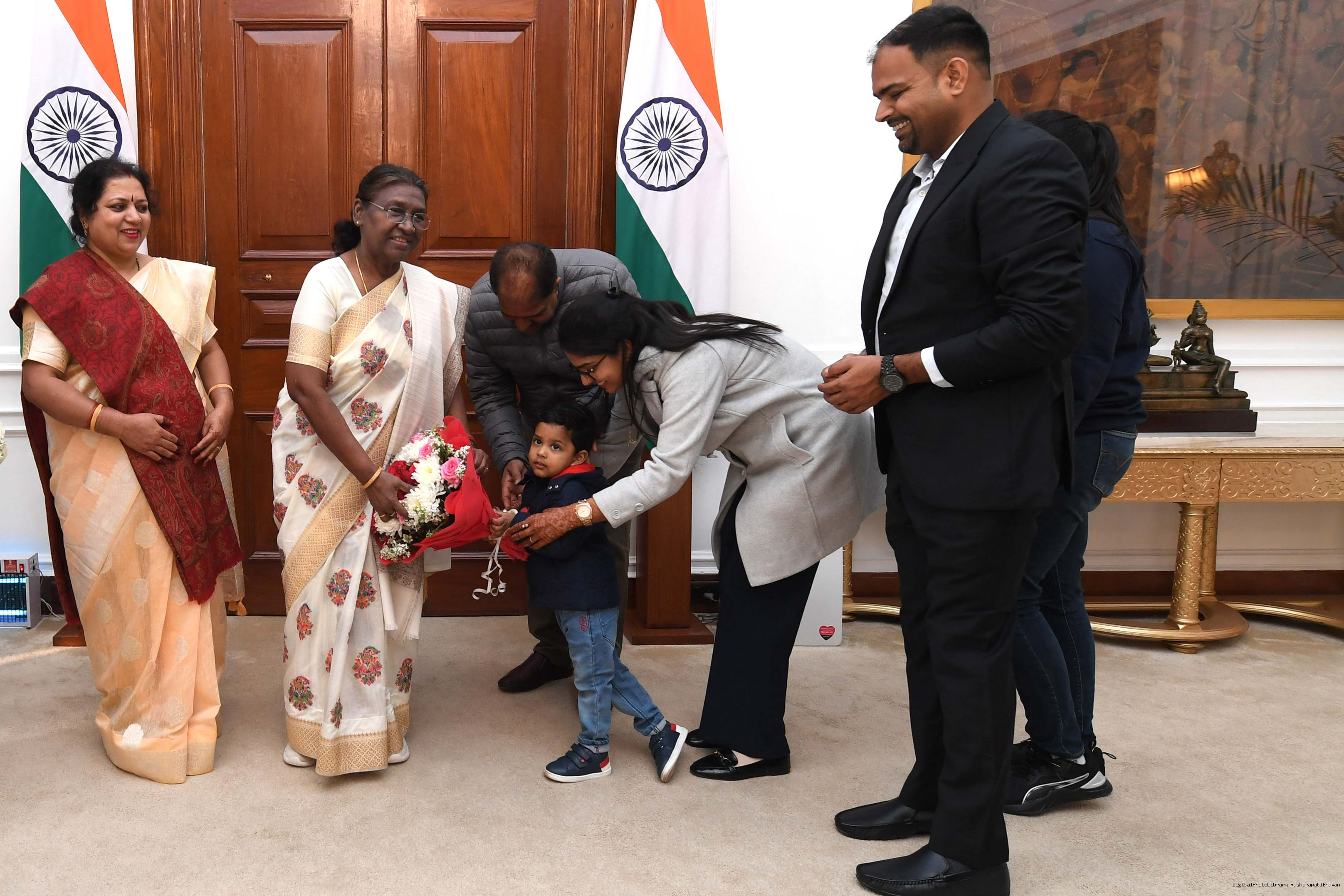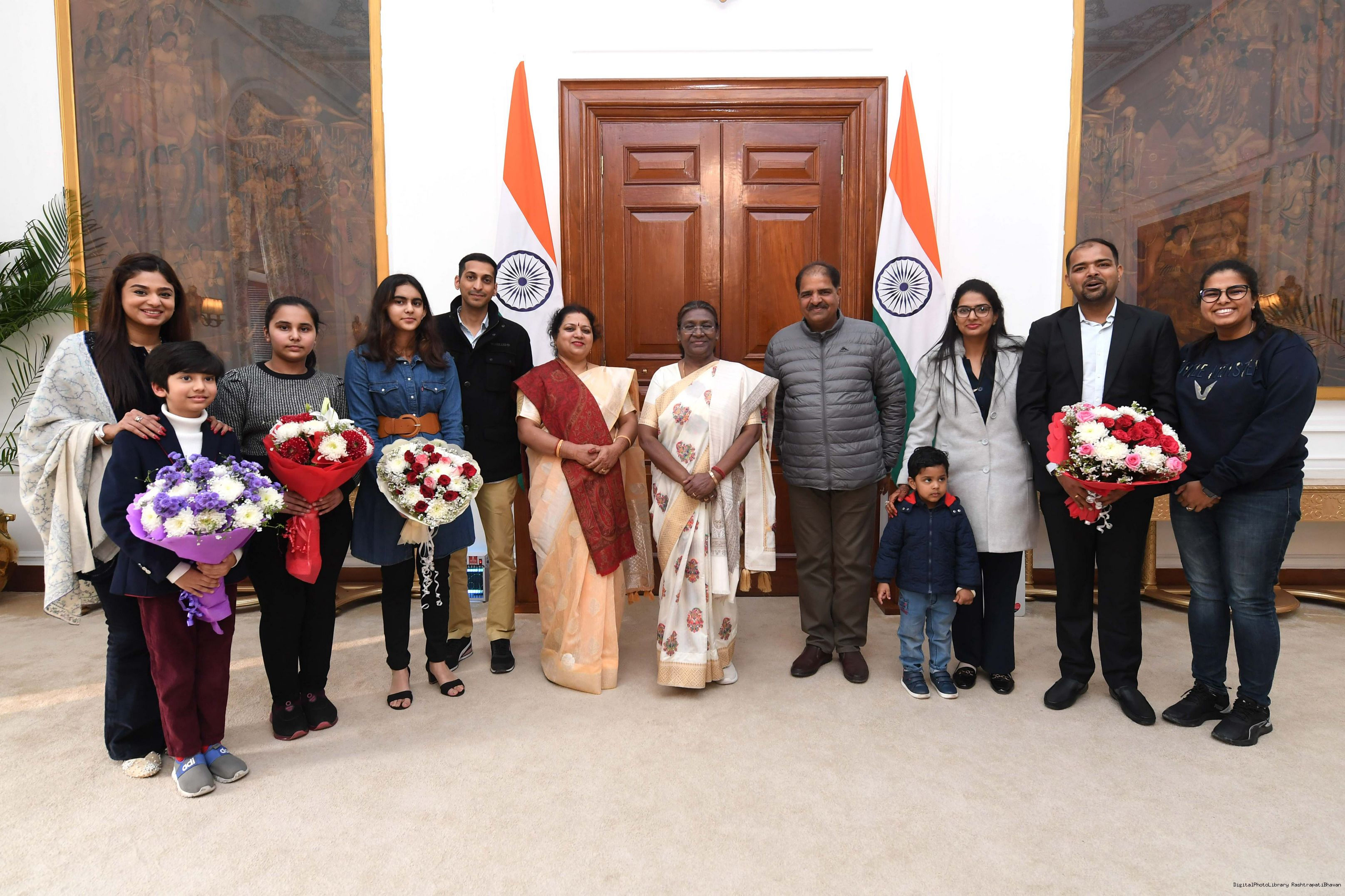 | Caption: | Shri Surendra Kumar Choubey from Rairangpur along with others meeting with the President of India Smt Droupadi Murmu at Rashtrapati Bhavan on February 01, 2024. |