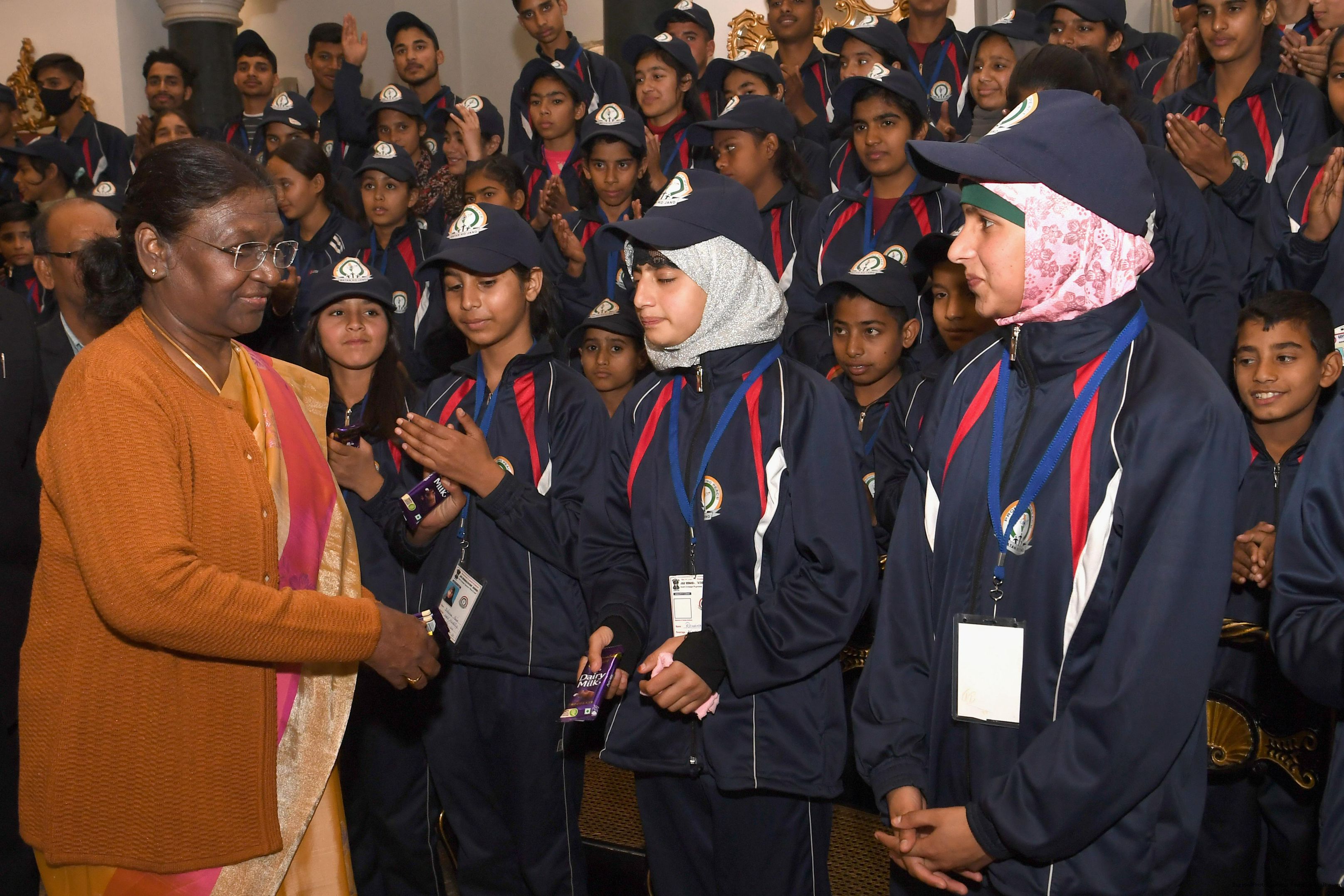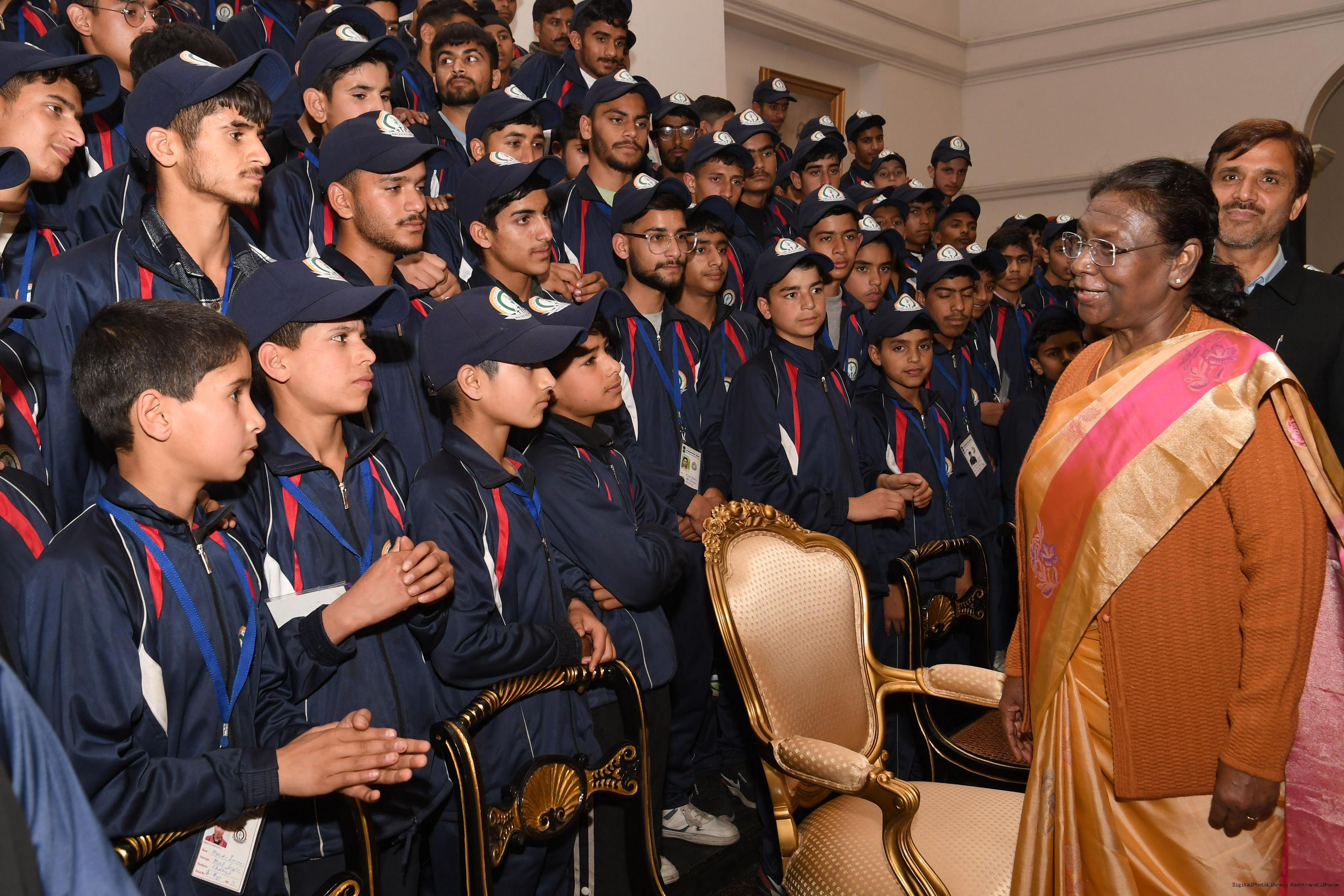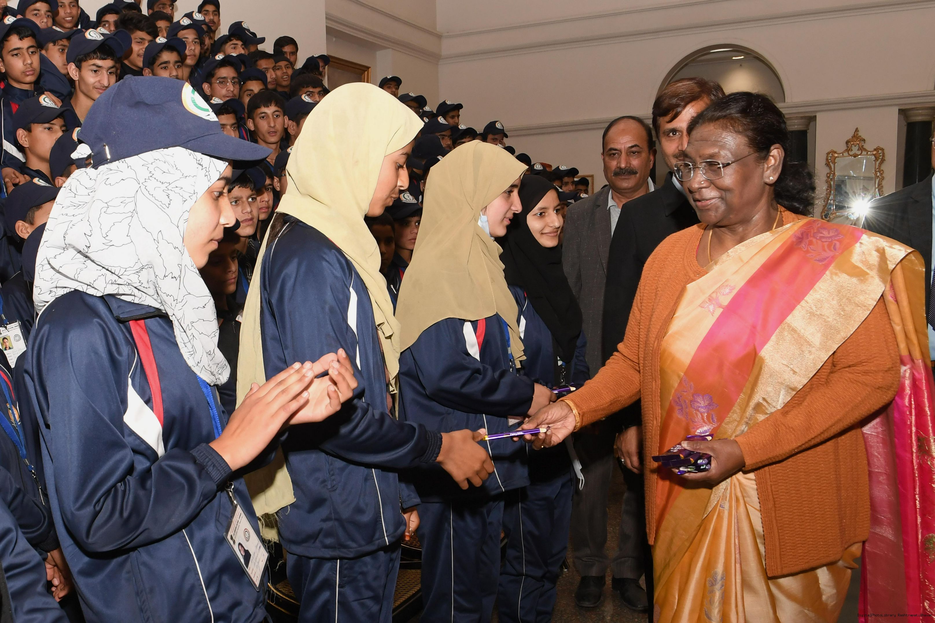 | Caption: | A youth delegation from Jammu and Kashmir attending the programme ‘Watan ko Jano’ called on the President of India, Smt Droupadi Murmu at Rashtrapati Bhavan on December 25, 2023 |