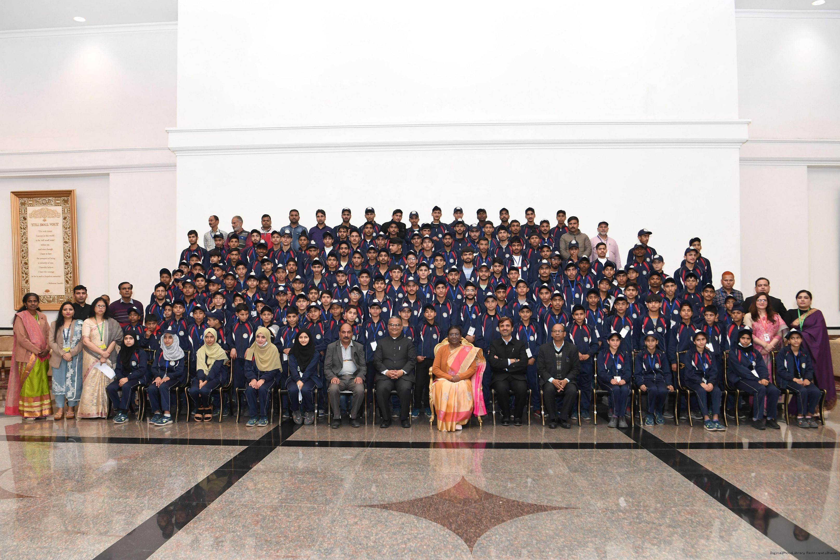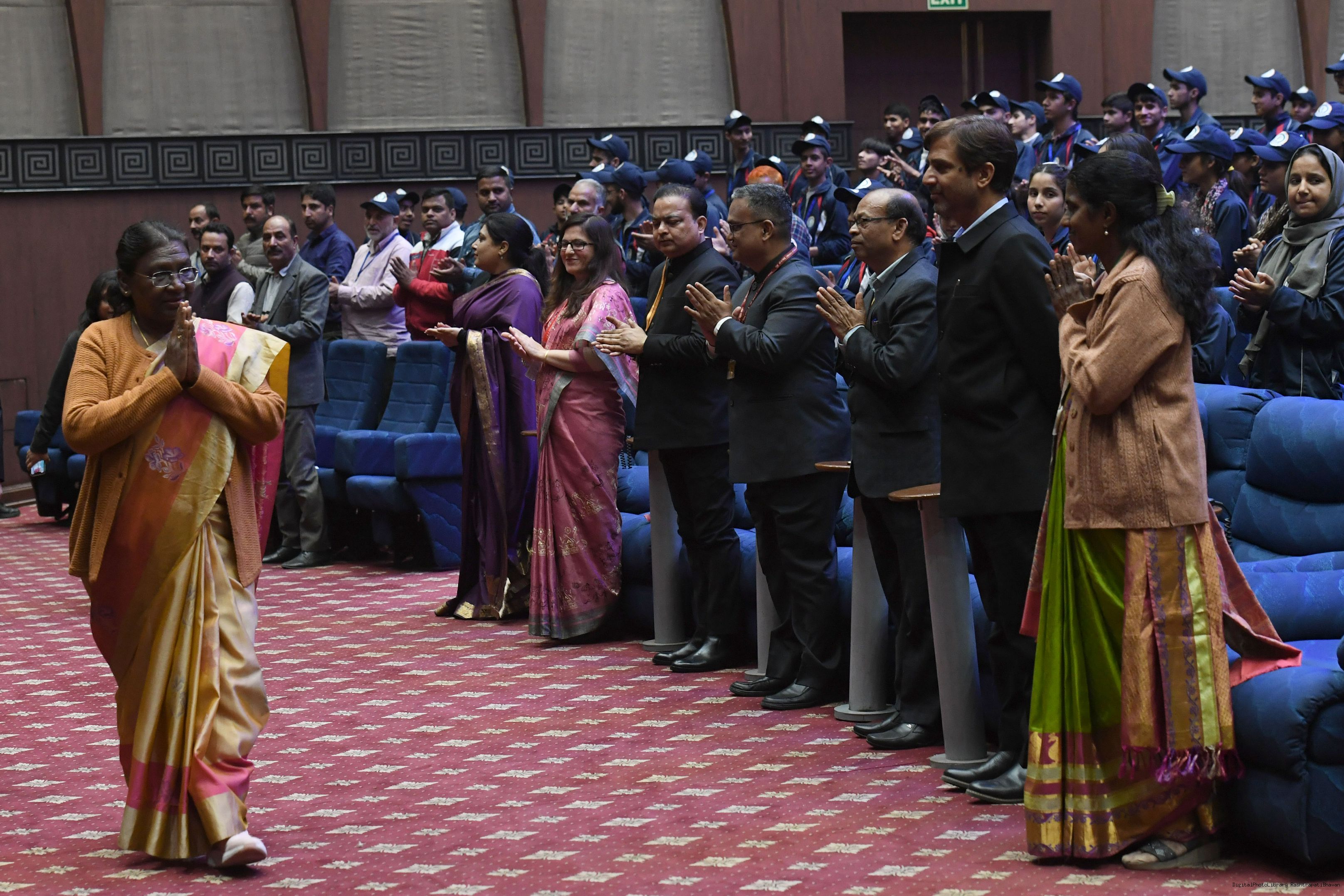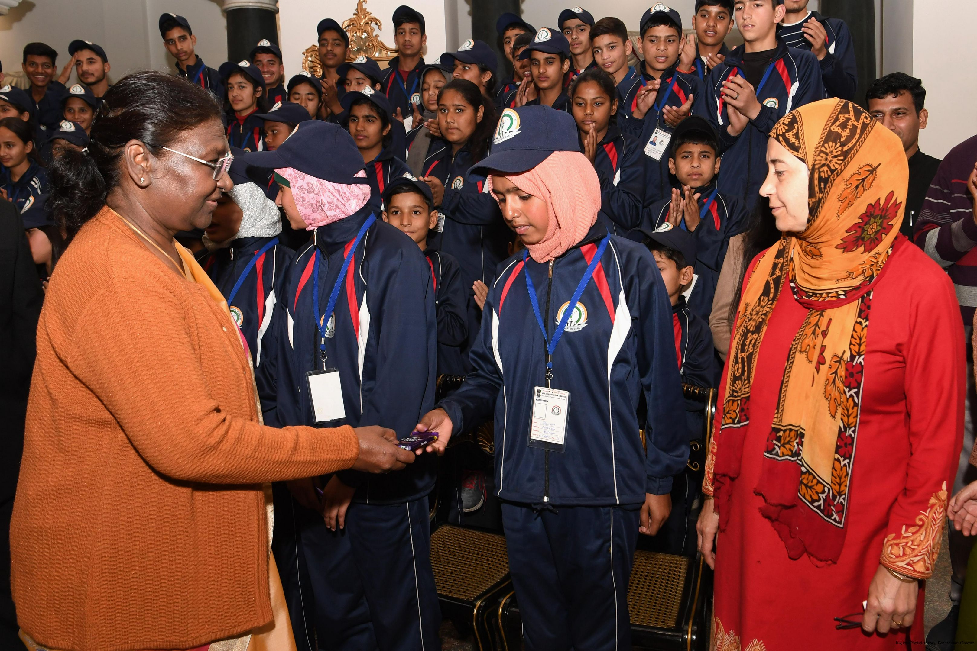 | Caption: | A youth delegation from Jammu and Kashmir attending the programme ‘Watan ko Jano’ called on the President of India, Smt Droupadi Murmu at Rashtrapati Bhavan on December 25, 2023 |