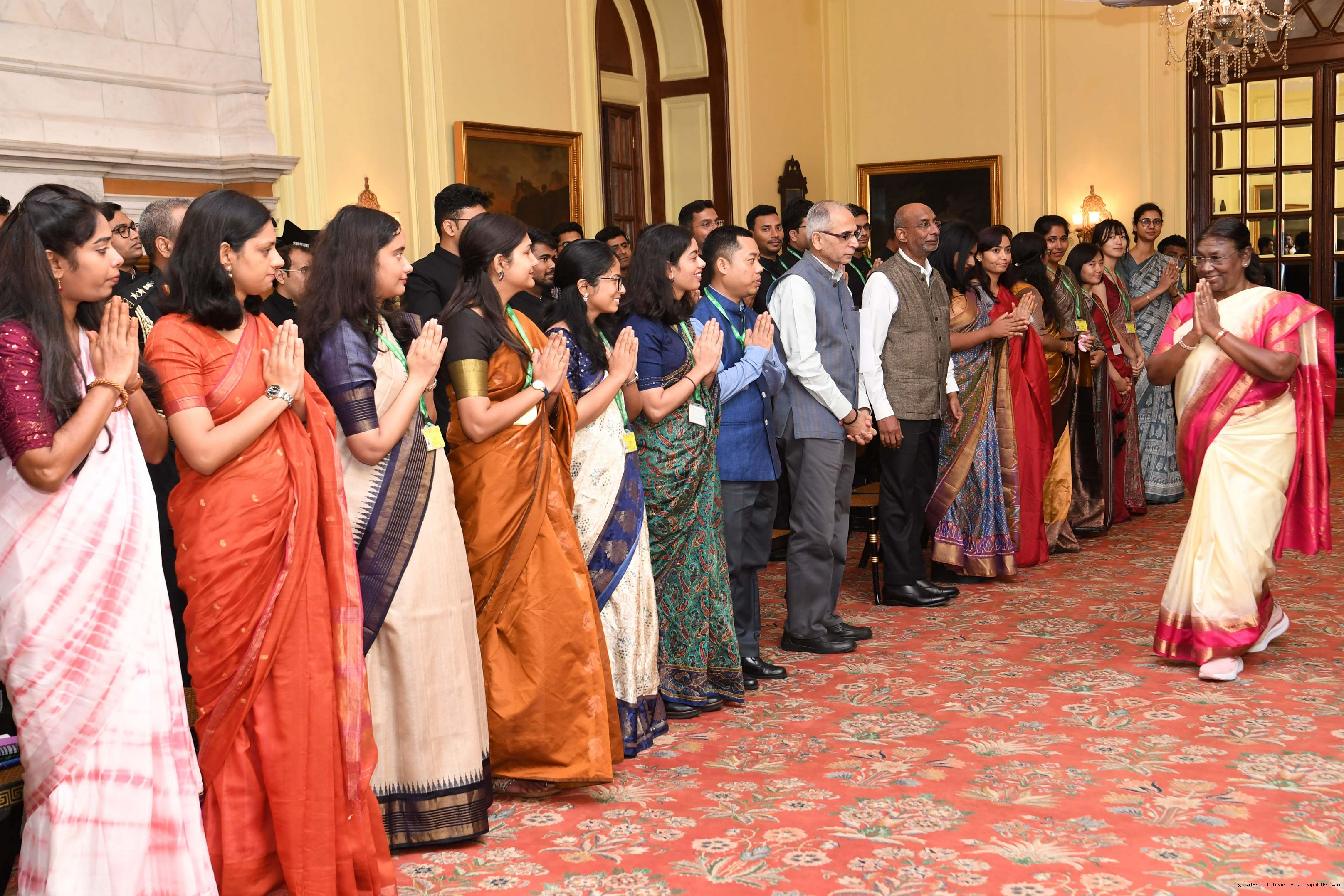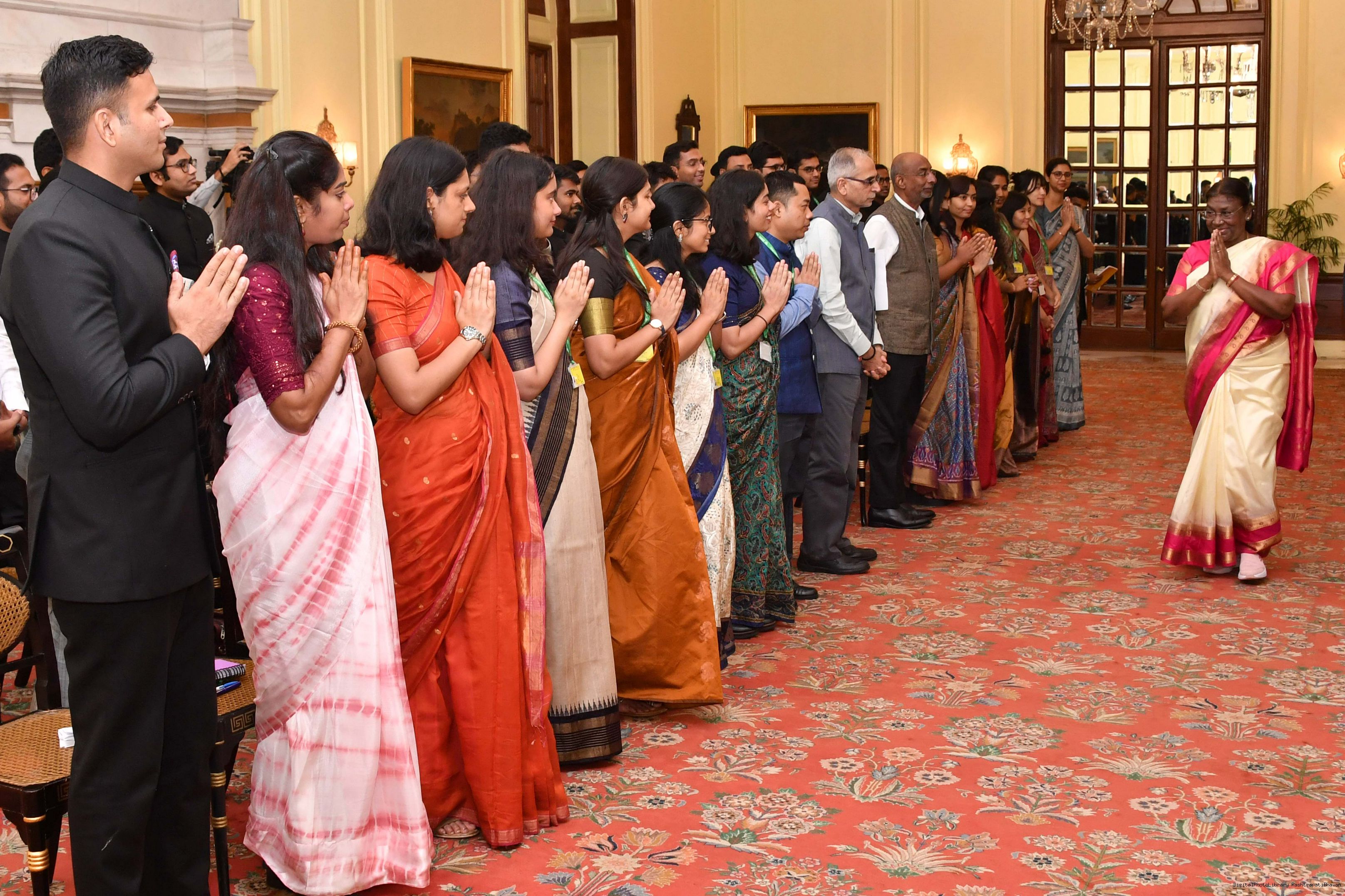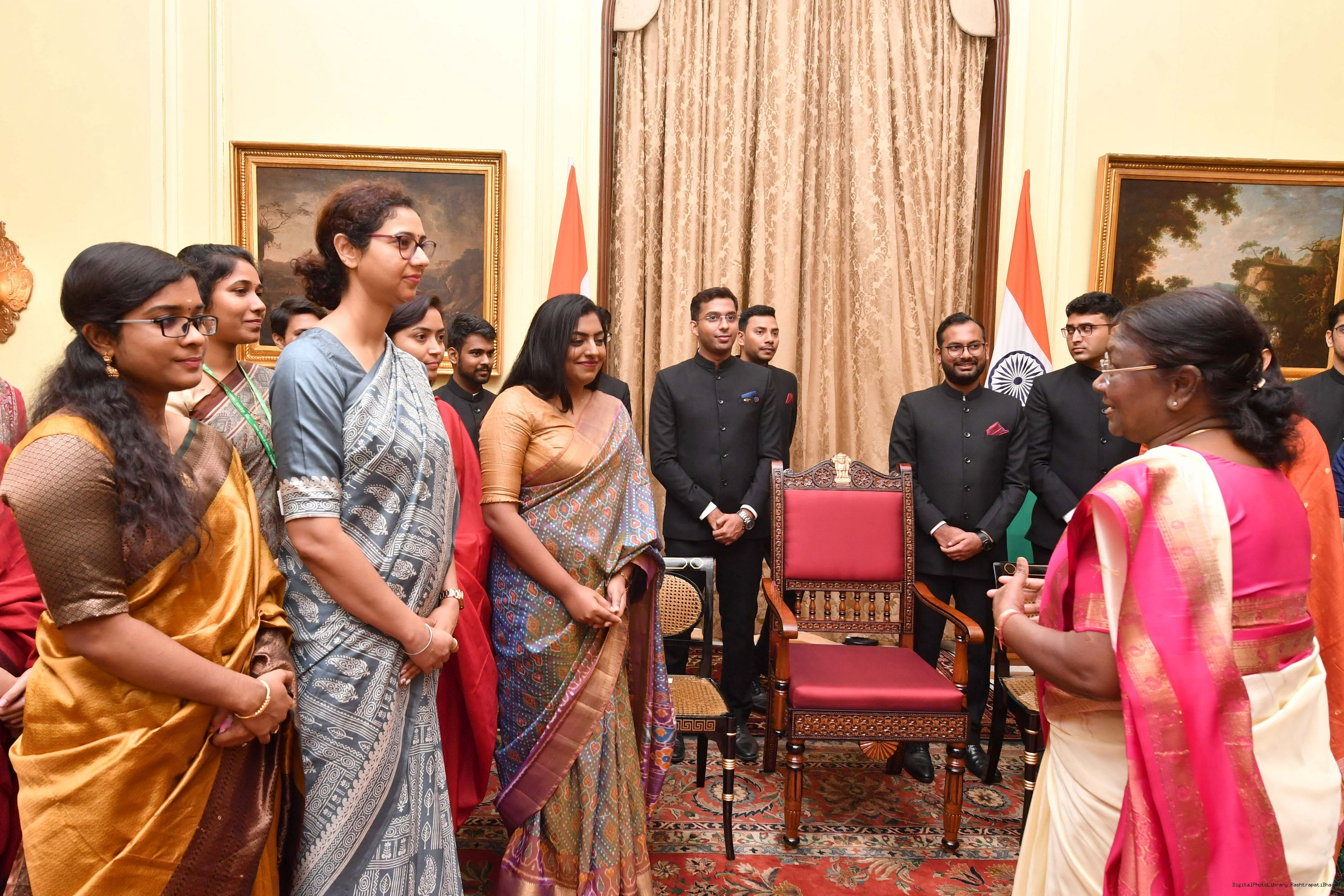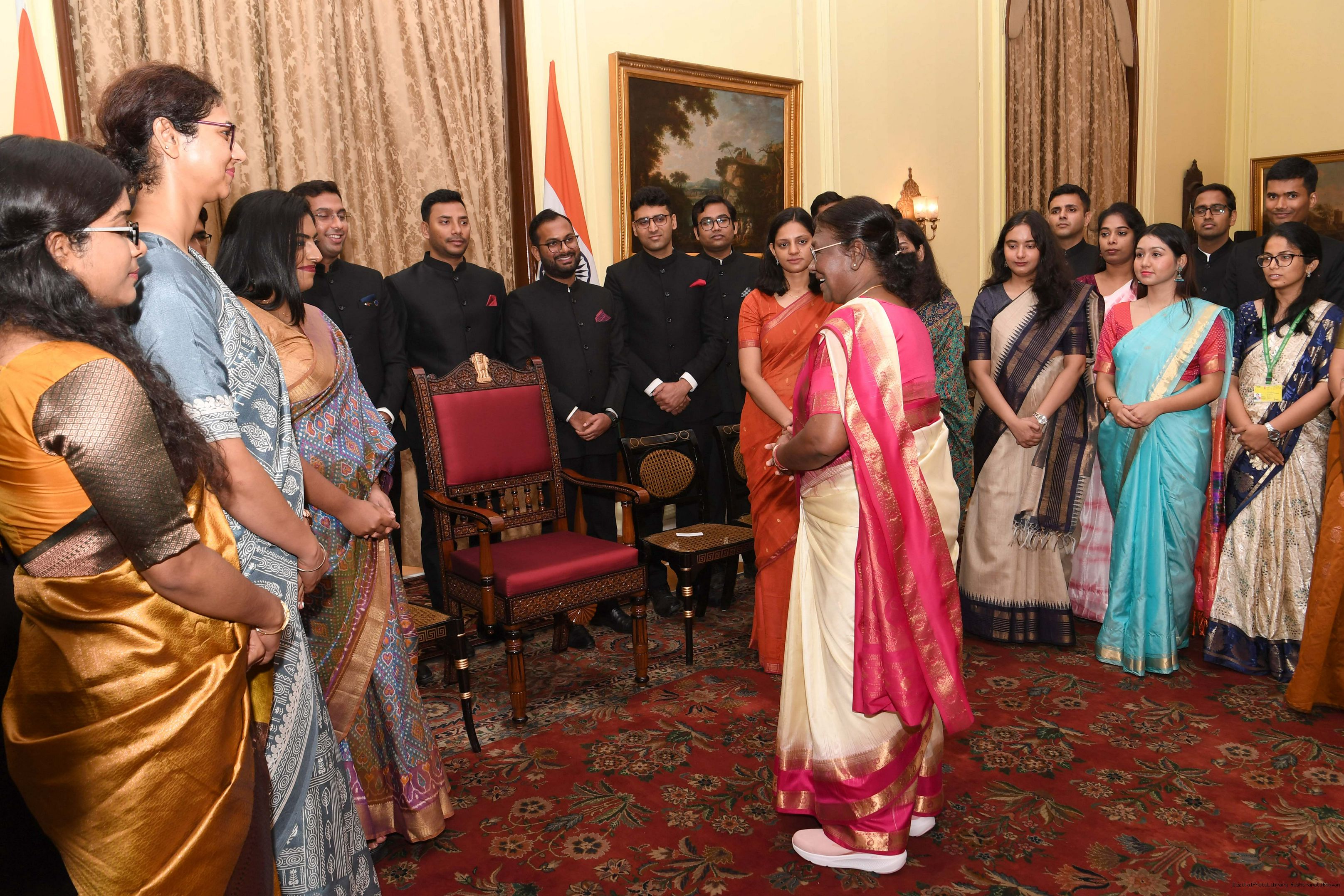 | Caption: | The Probationers of Indian Foreign Service (2022 Batch) from Sushma Swaraj Institute of Foreign Service (SSIFS) called on the President of India, Smt Droupadi Murmu at Rashtrapati Bhavan on August 1, 2023. |