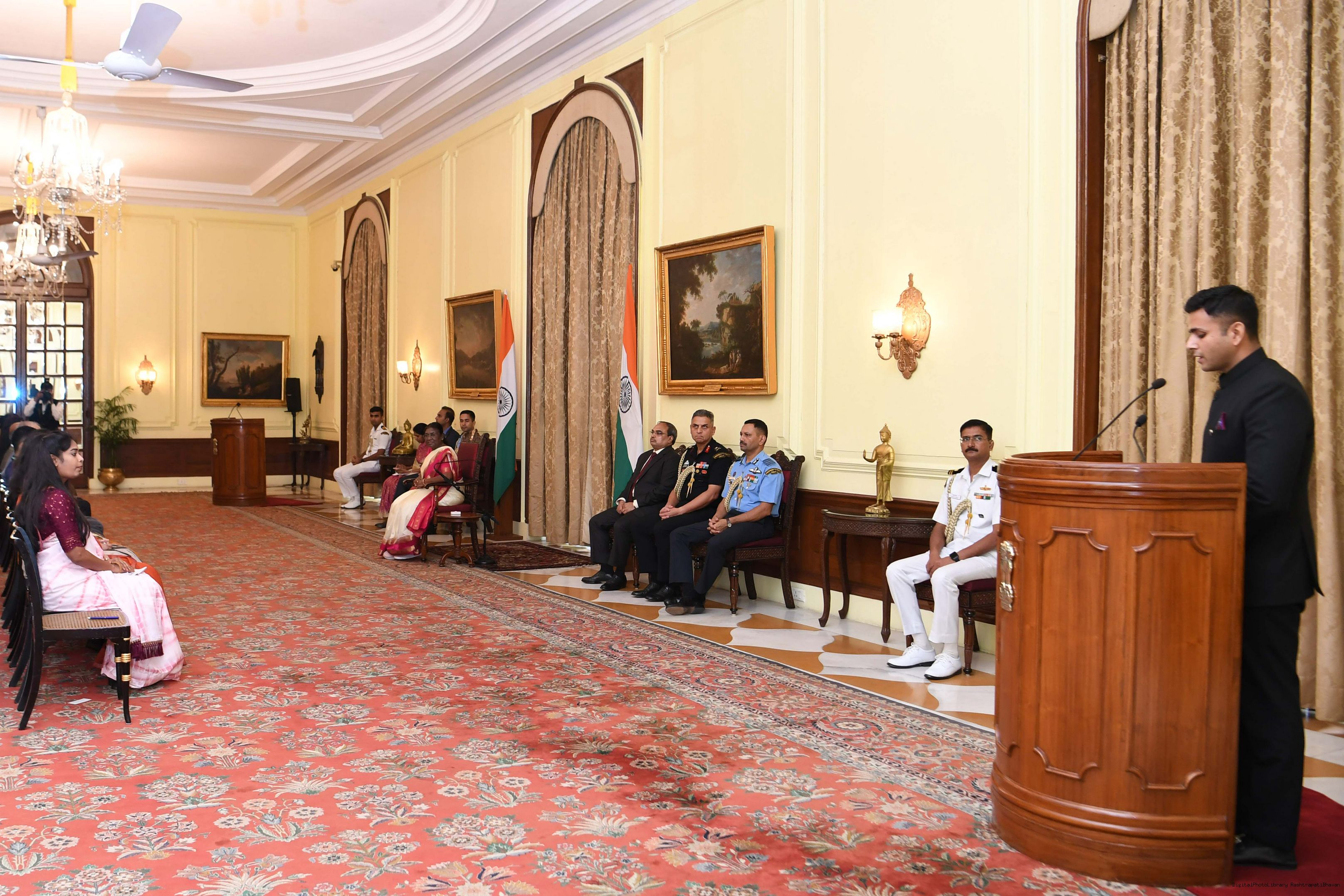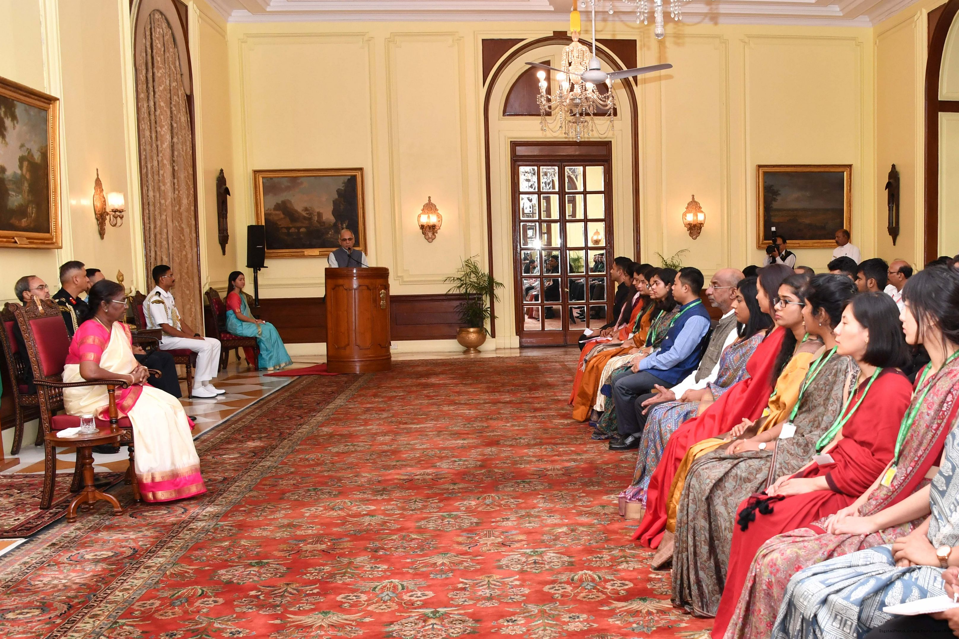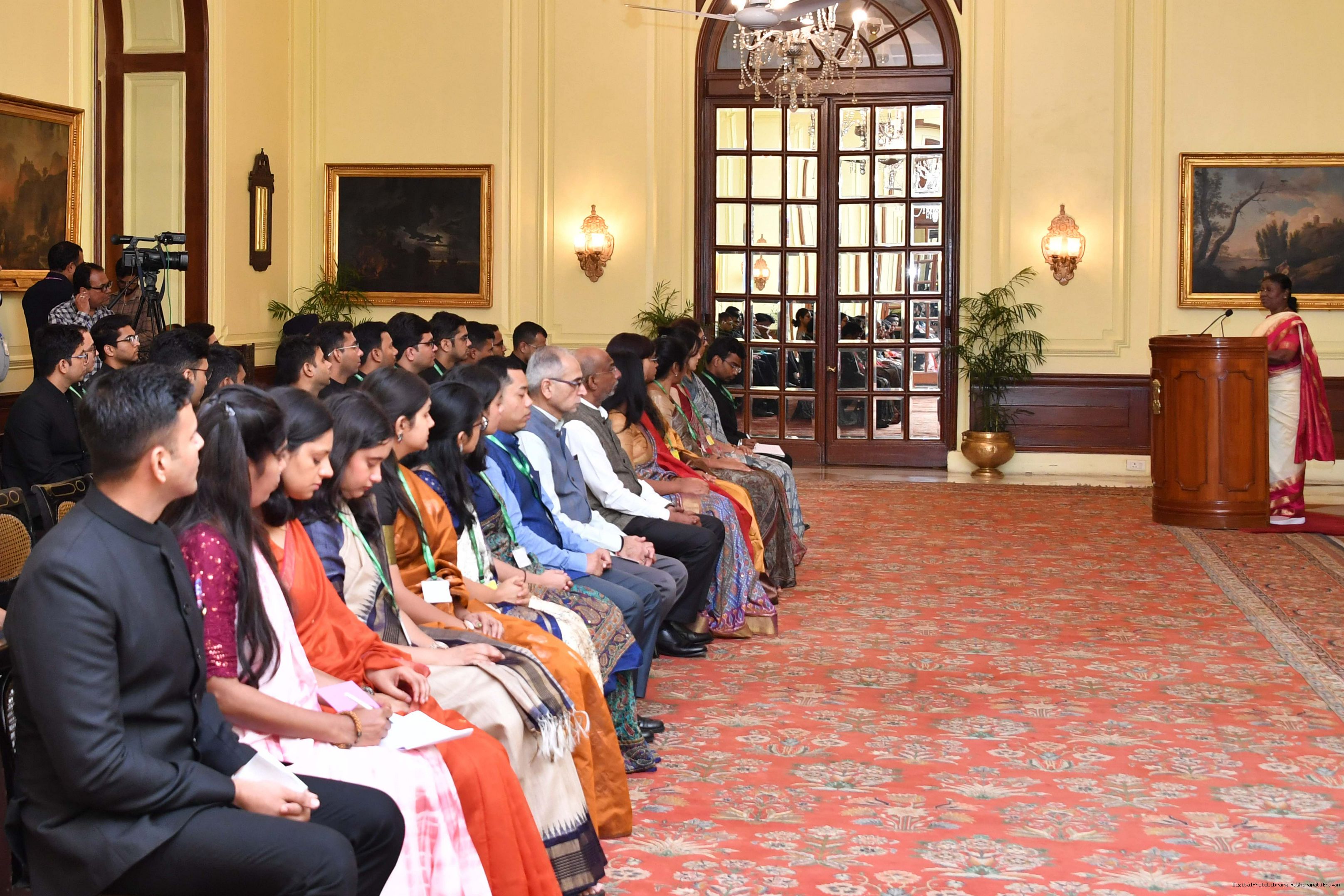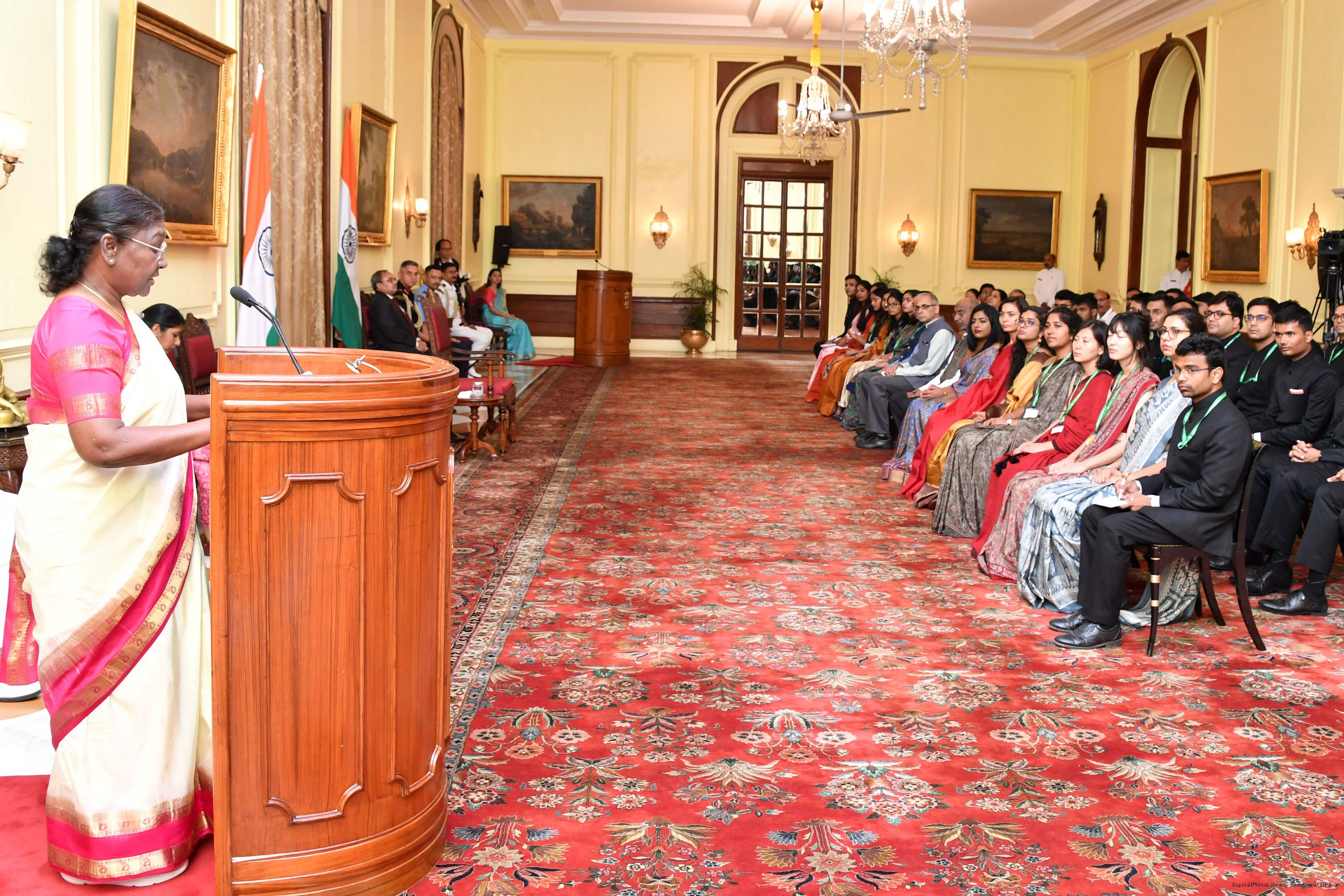 | Caption: | The Probationers of Indian Foreign Service (2022 Batch) from Sushma Swaraj Institute of Foreign Service (SSIFS) called on the President of India, Smt Droupadi Murmu at Rashtrapati Bhavan on August 1, 2023. |