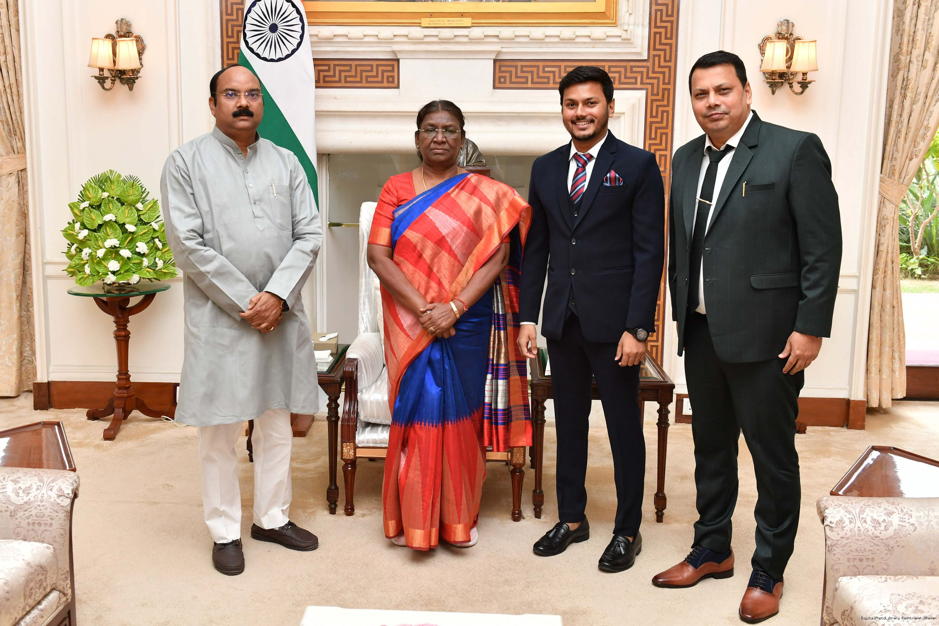 | Caption: | Shri Arun Kumar Sagar, MP (Lok Sabha) along with others meeting with the President of India, Smt. Droupadi Murmu at Rashtrapati Bhavan on August 2, 2023. |