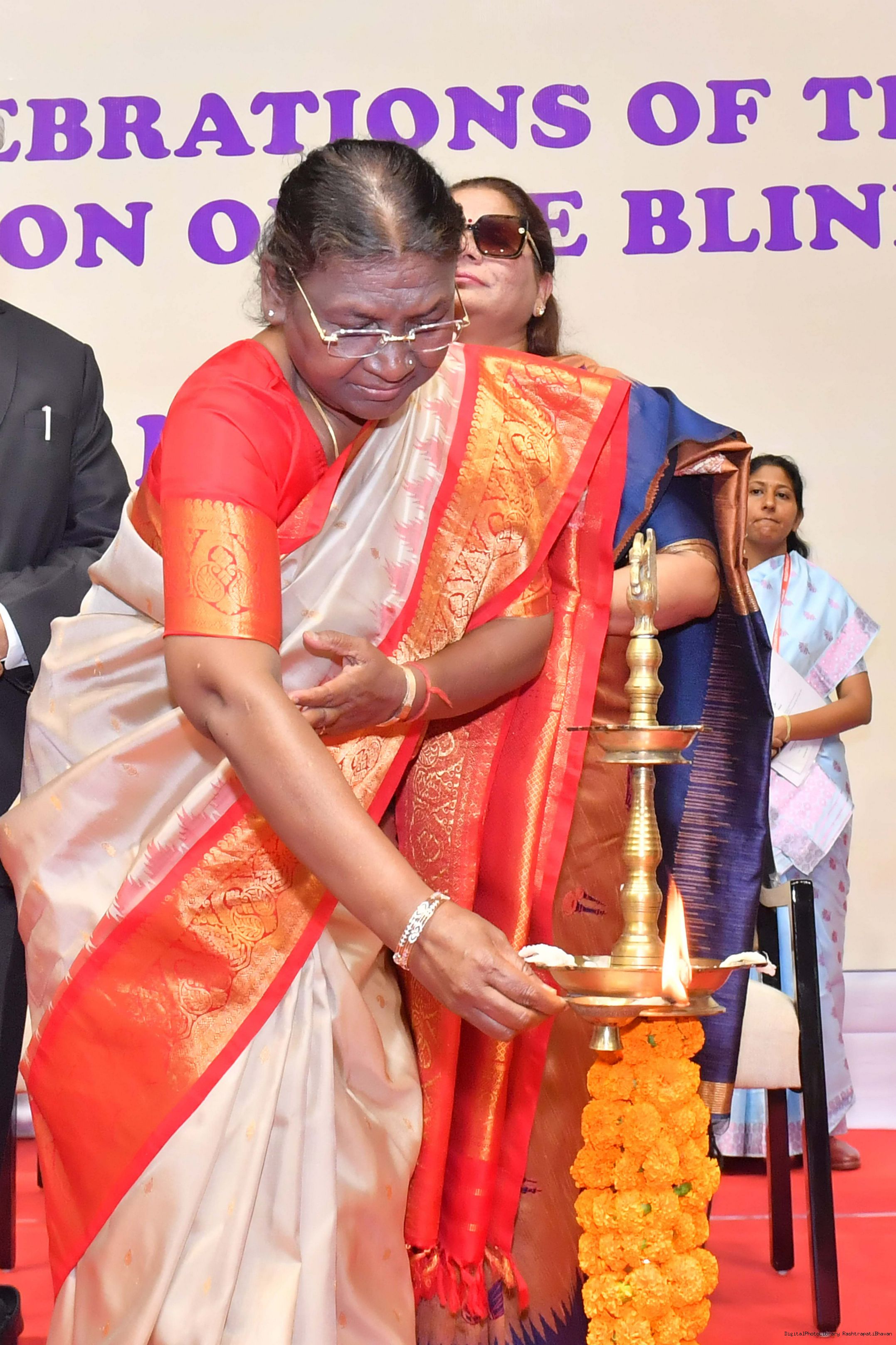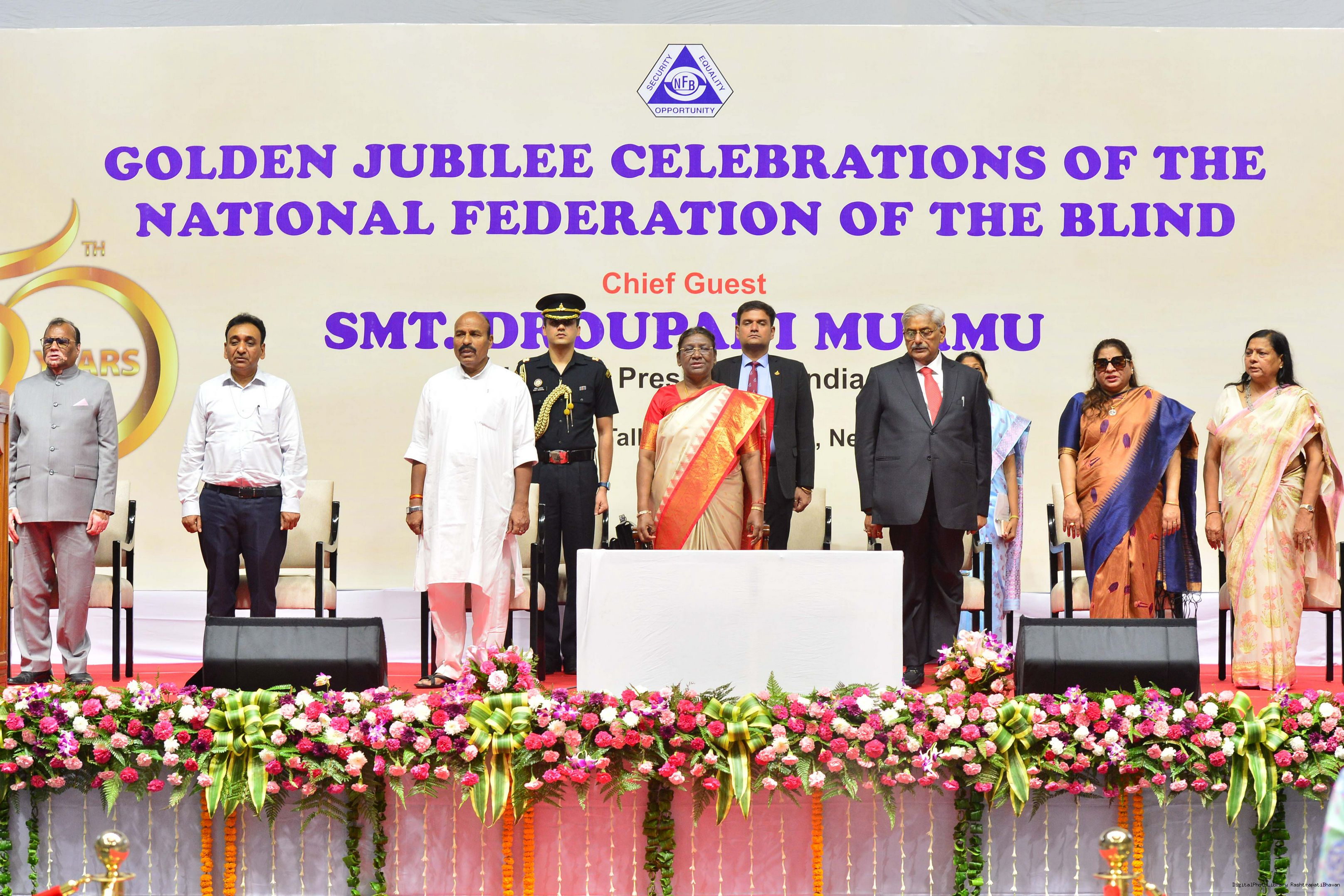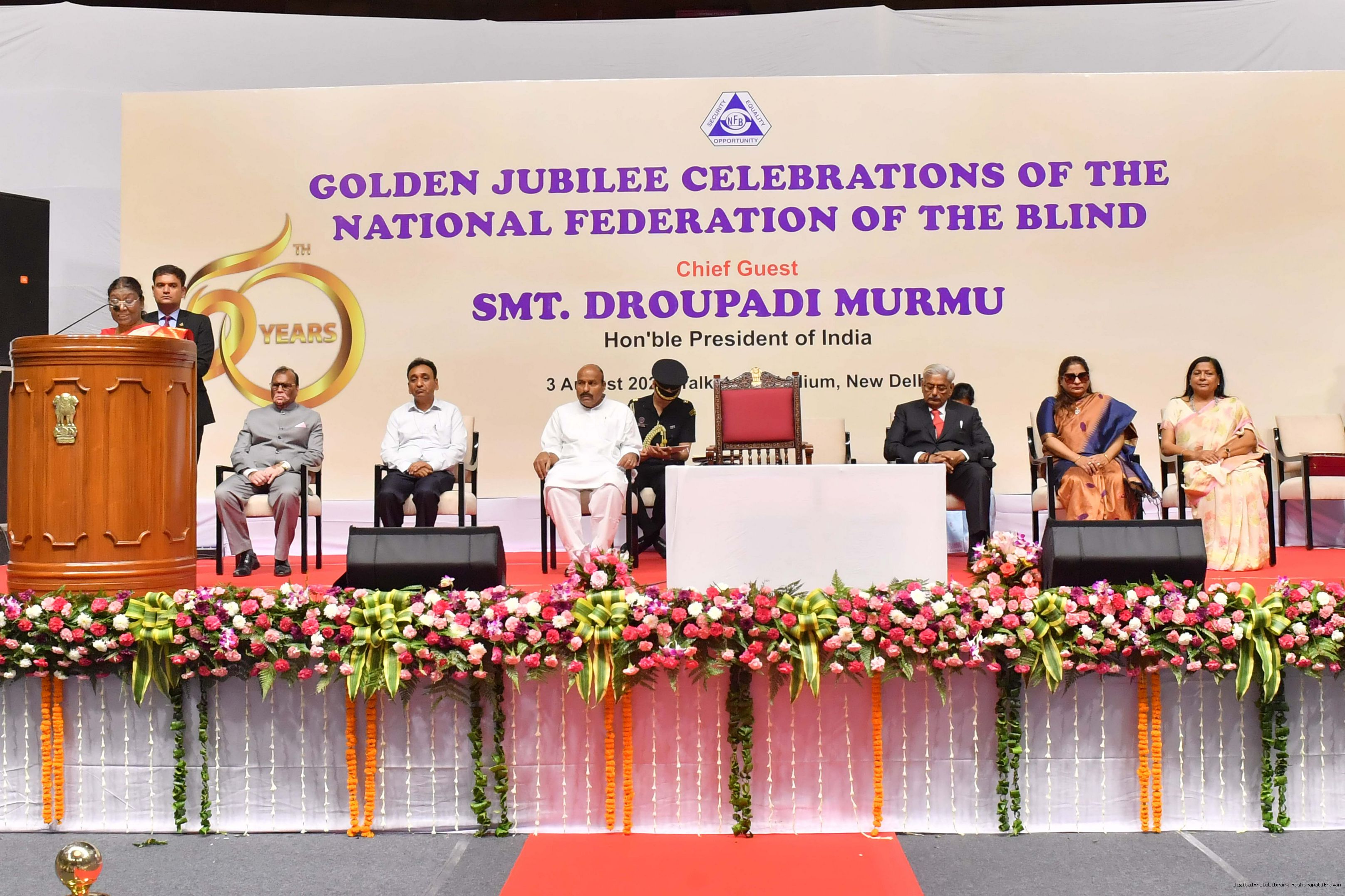 | Caption: | The President of India Smt. Droupadi Murmu at Golden Jubliee celebrations of National Federation of the blind ( NFB ) at New Delhi on August 03, 2023 |