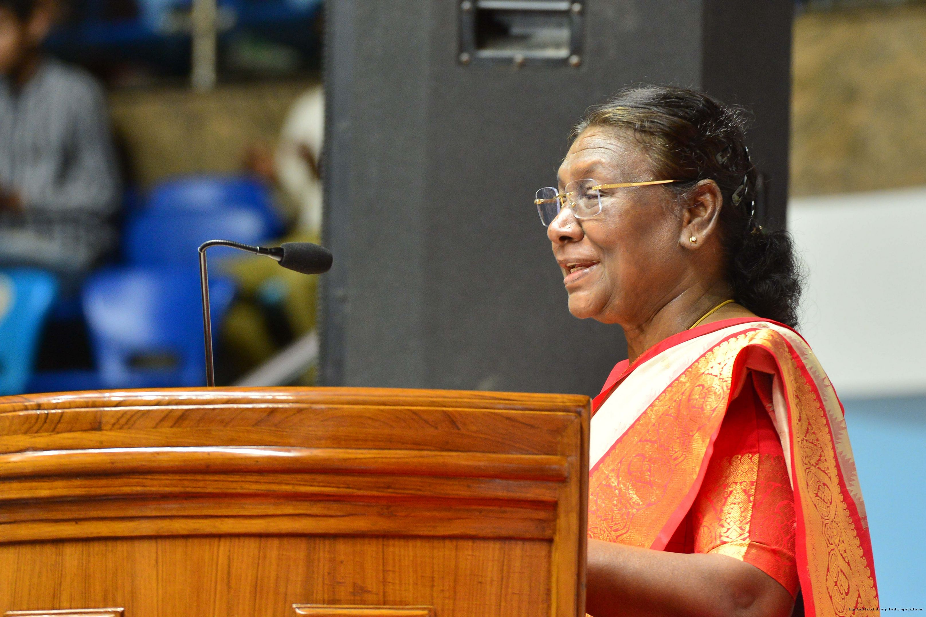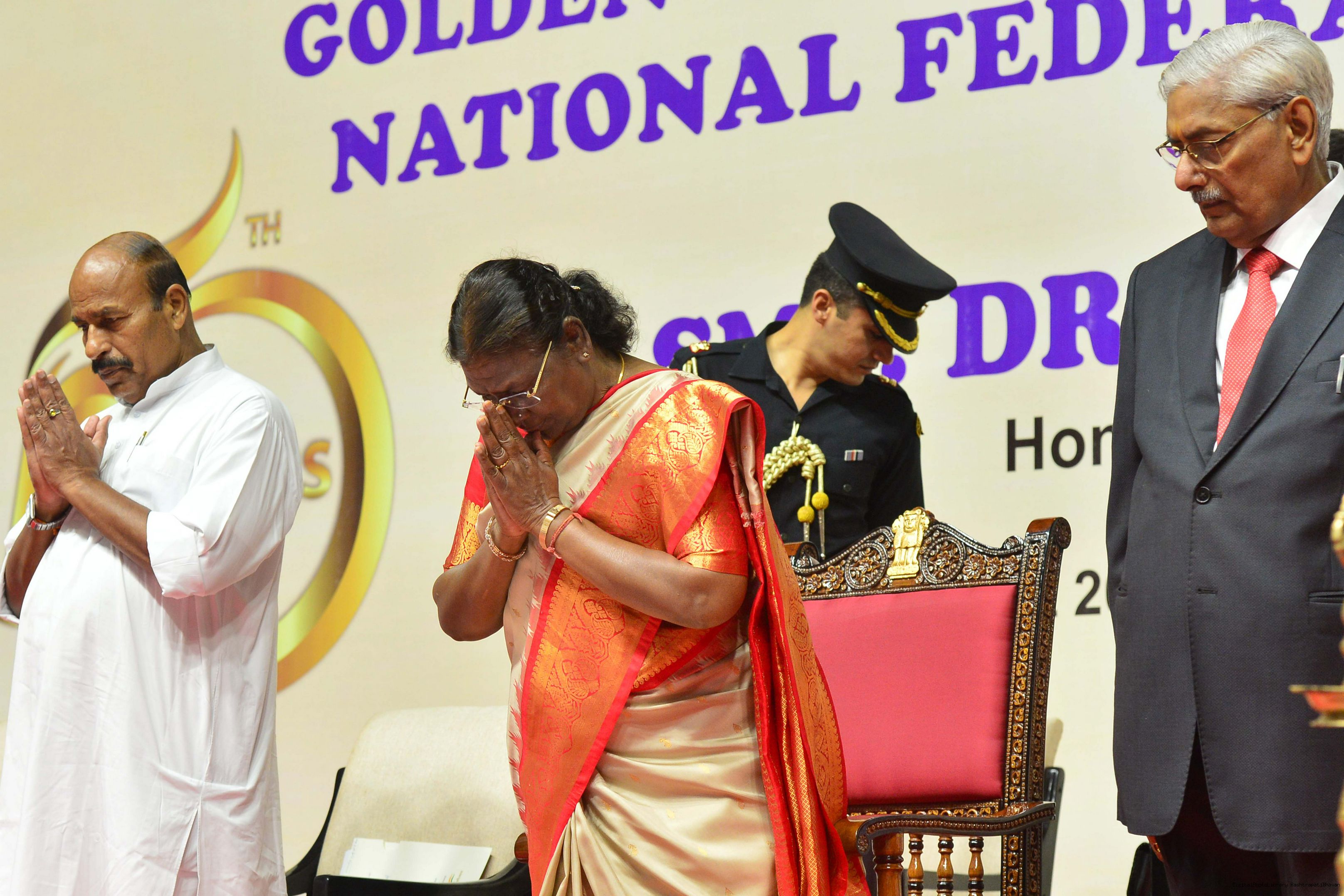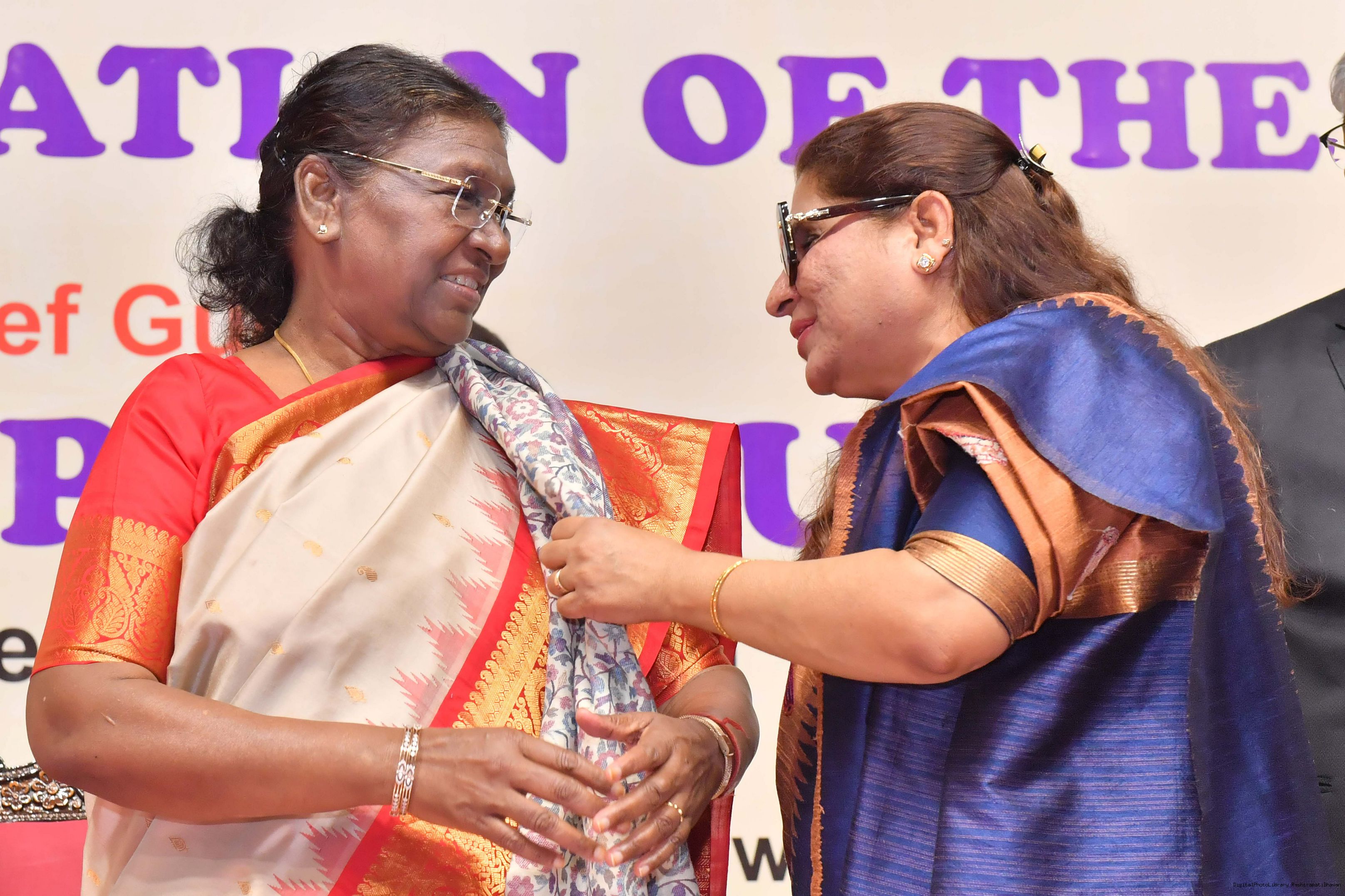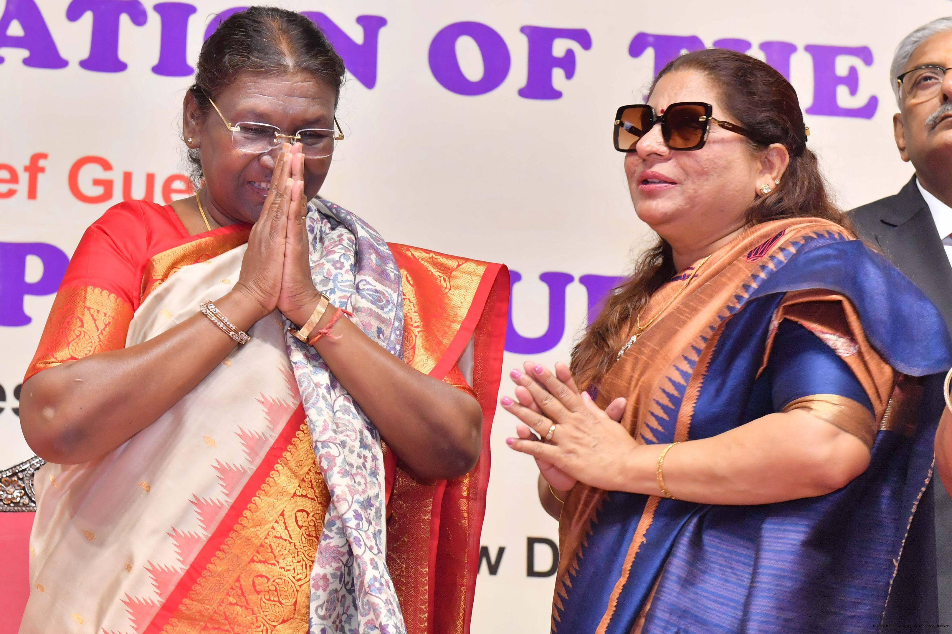 | Caption: | The President of India Smt. Droupadi Murmu at Golden Jubliee celebrations of National Federation of the blind ( NFB ) at New Delhi on August 03, 2023 |