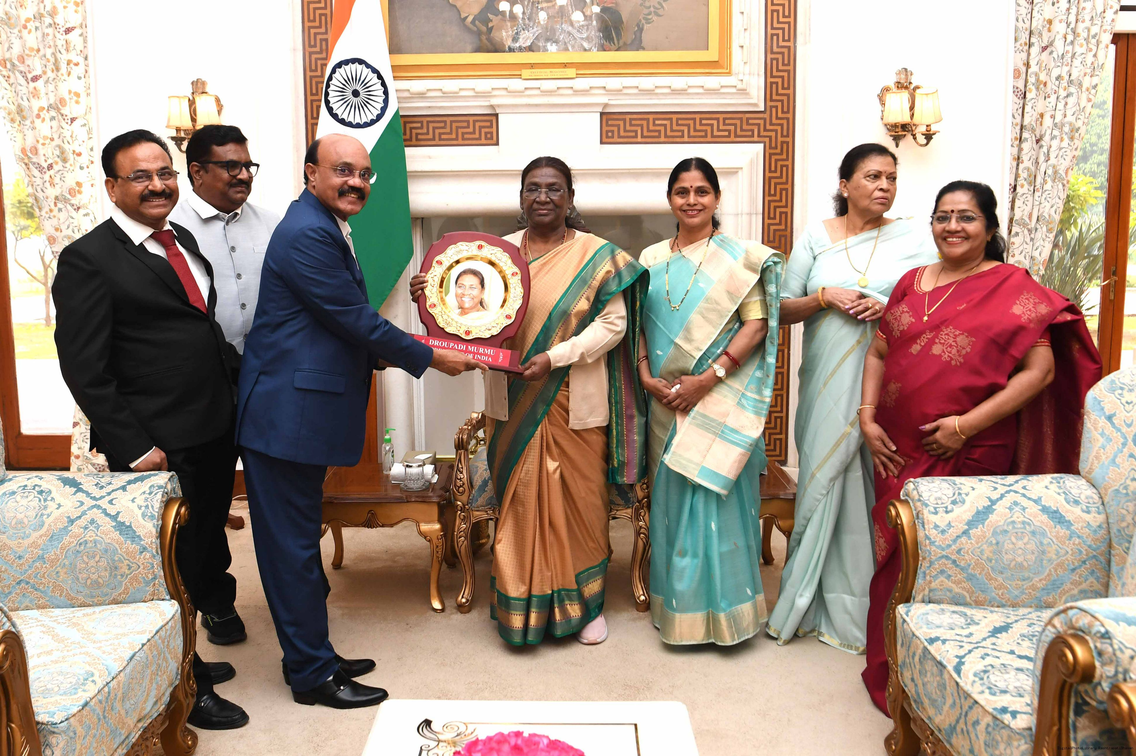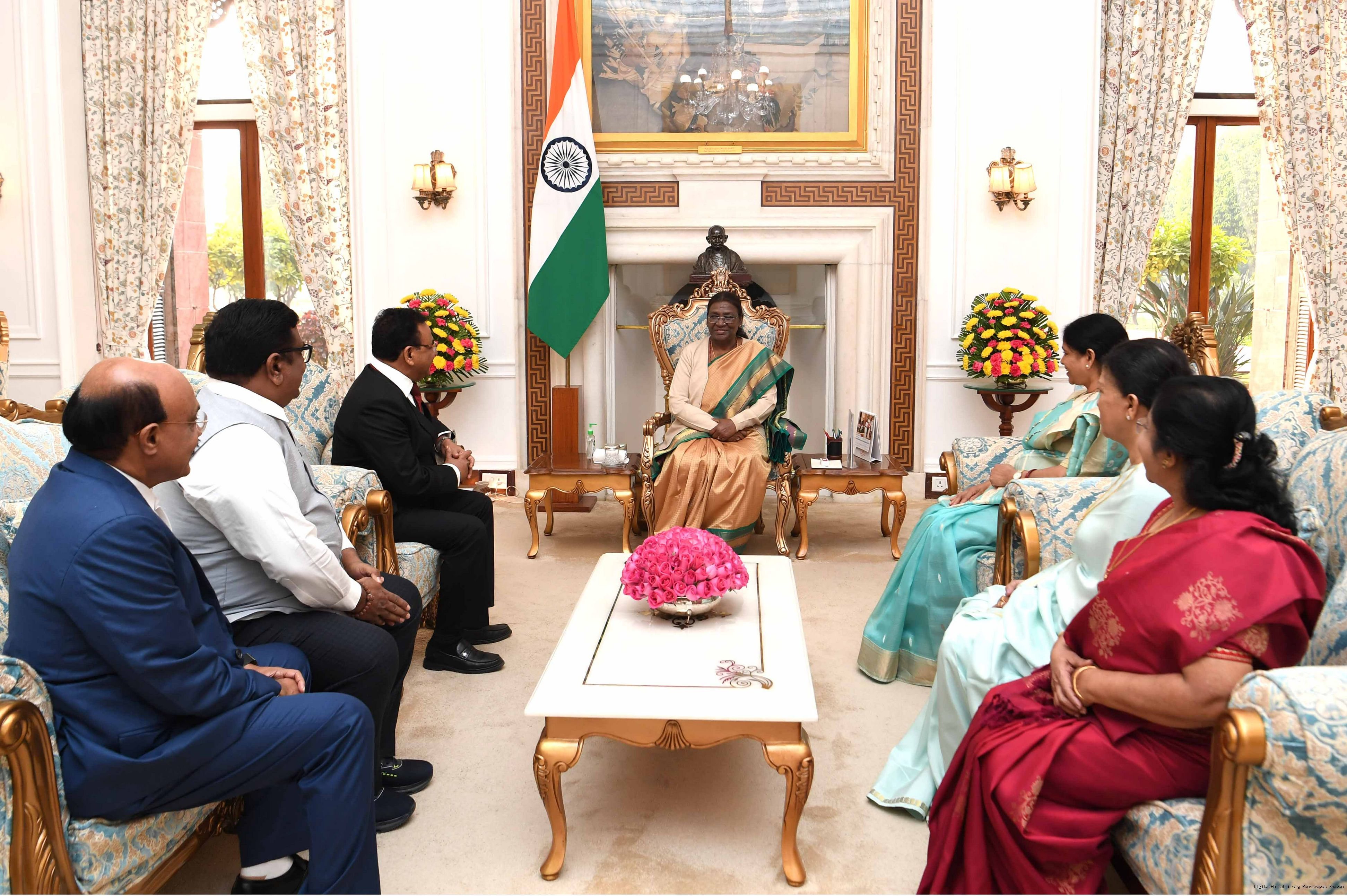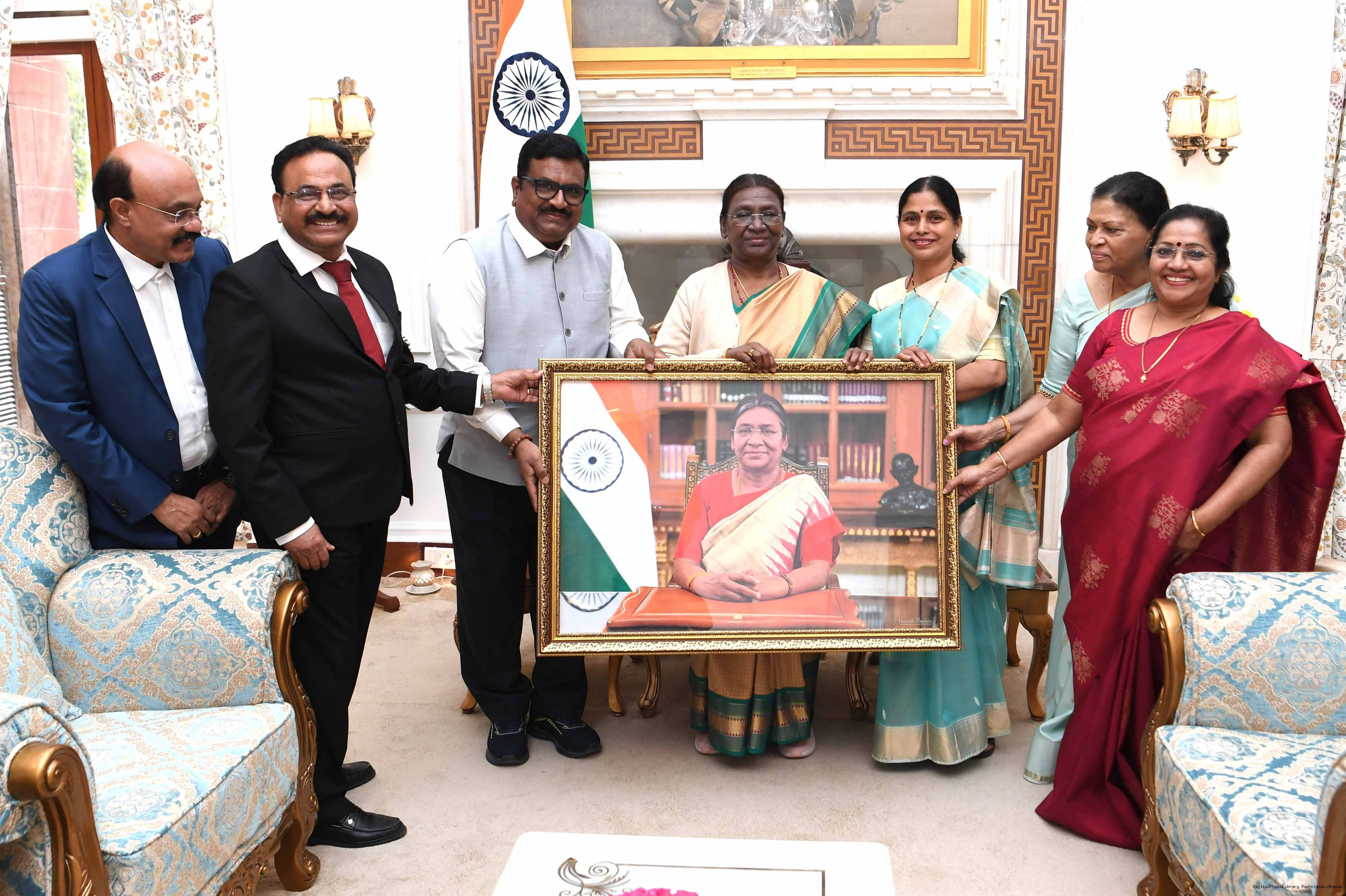 | Caption: | Shri Rajesh Rama Swamy along with Others meeting with the President of India, Smt Droupadi Murmu at Rashtrapati Bhavan on December 28, 2023. |