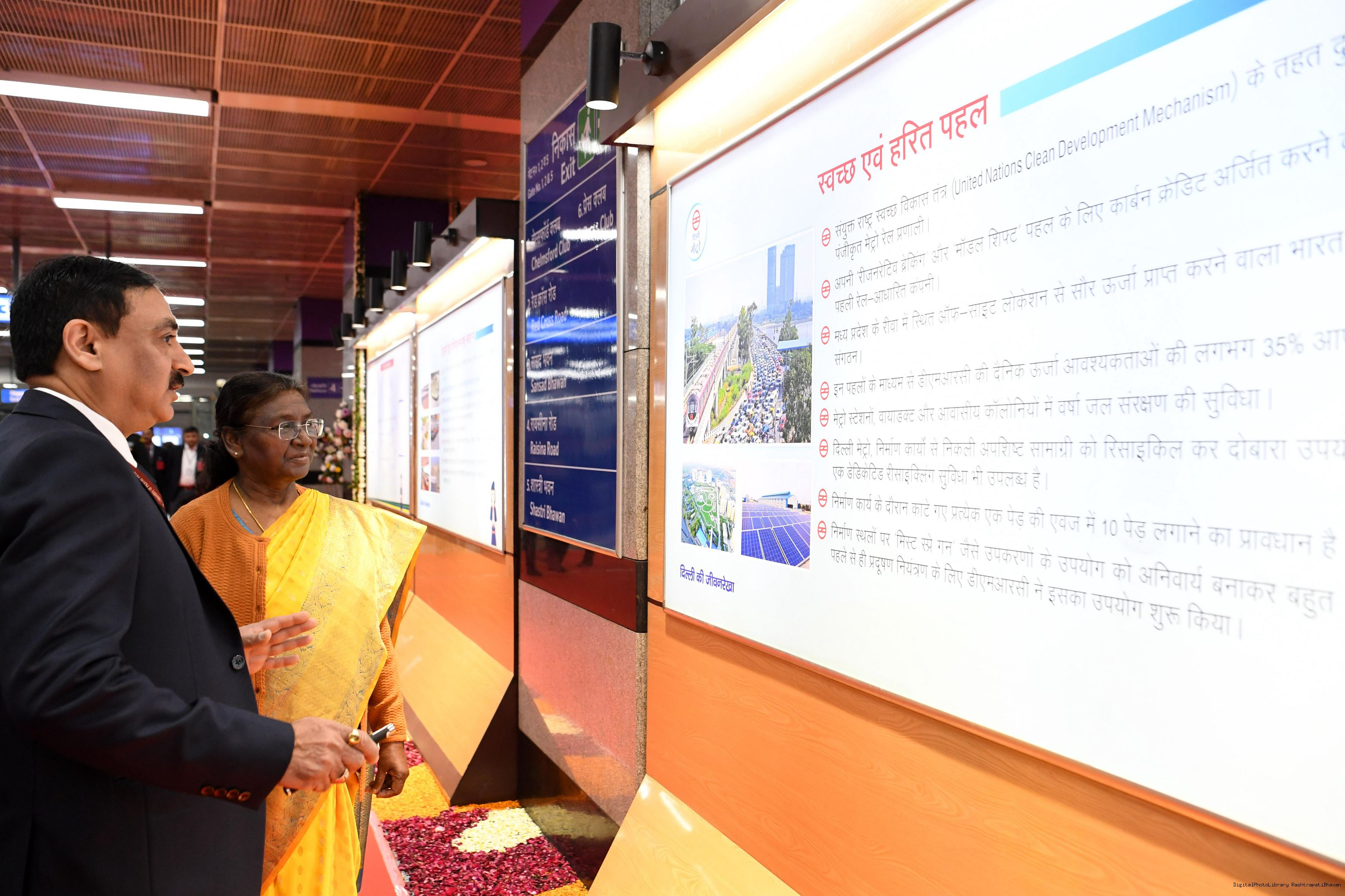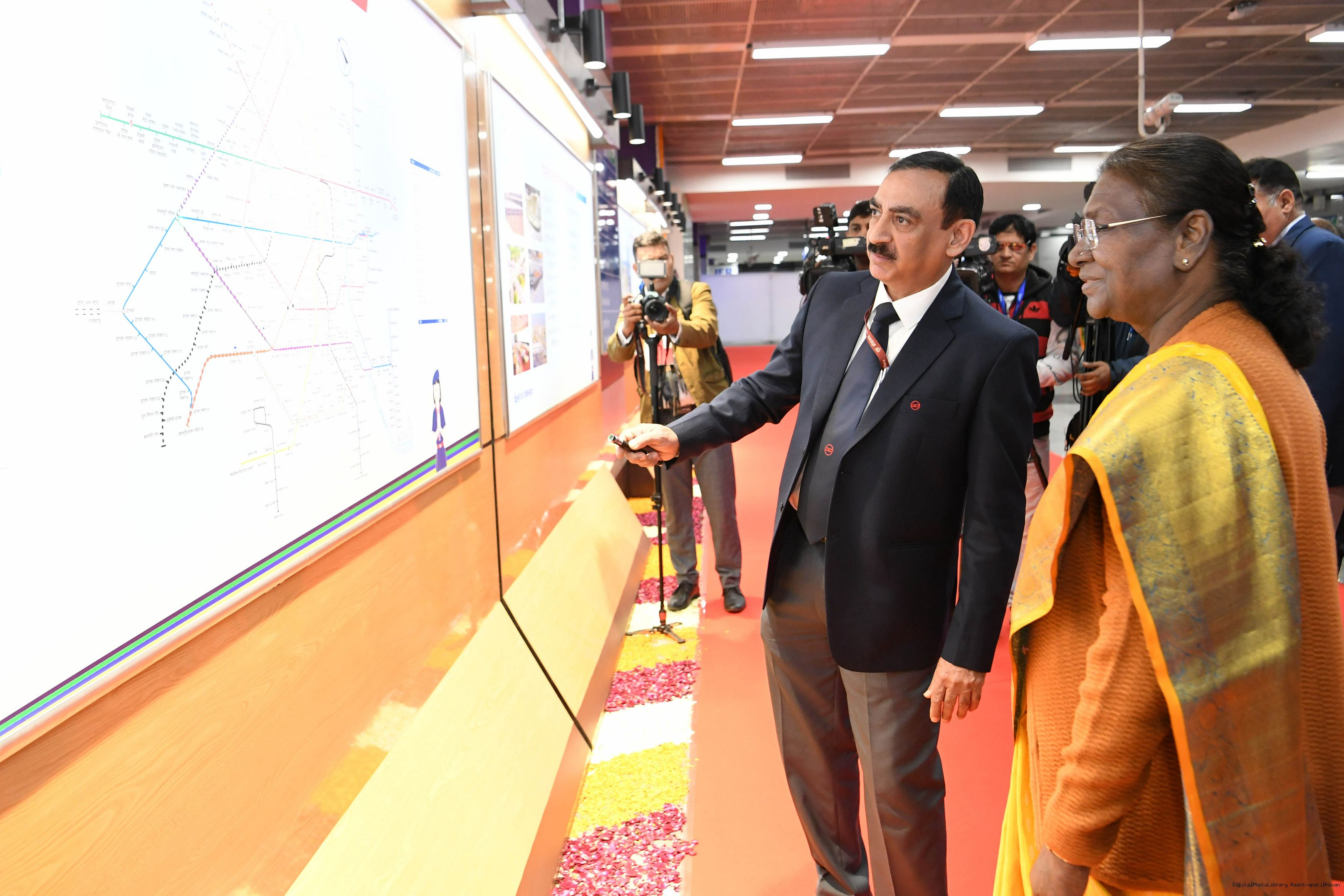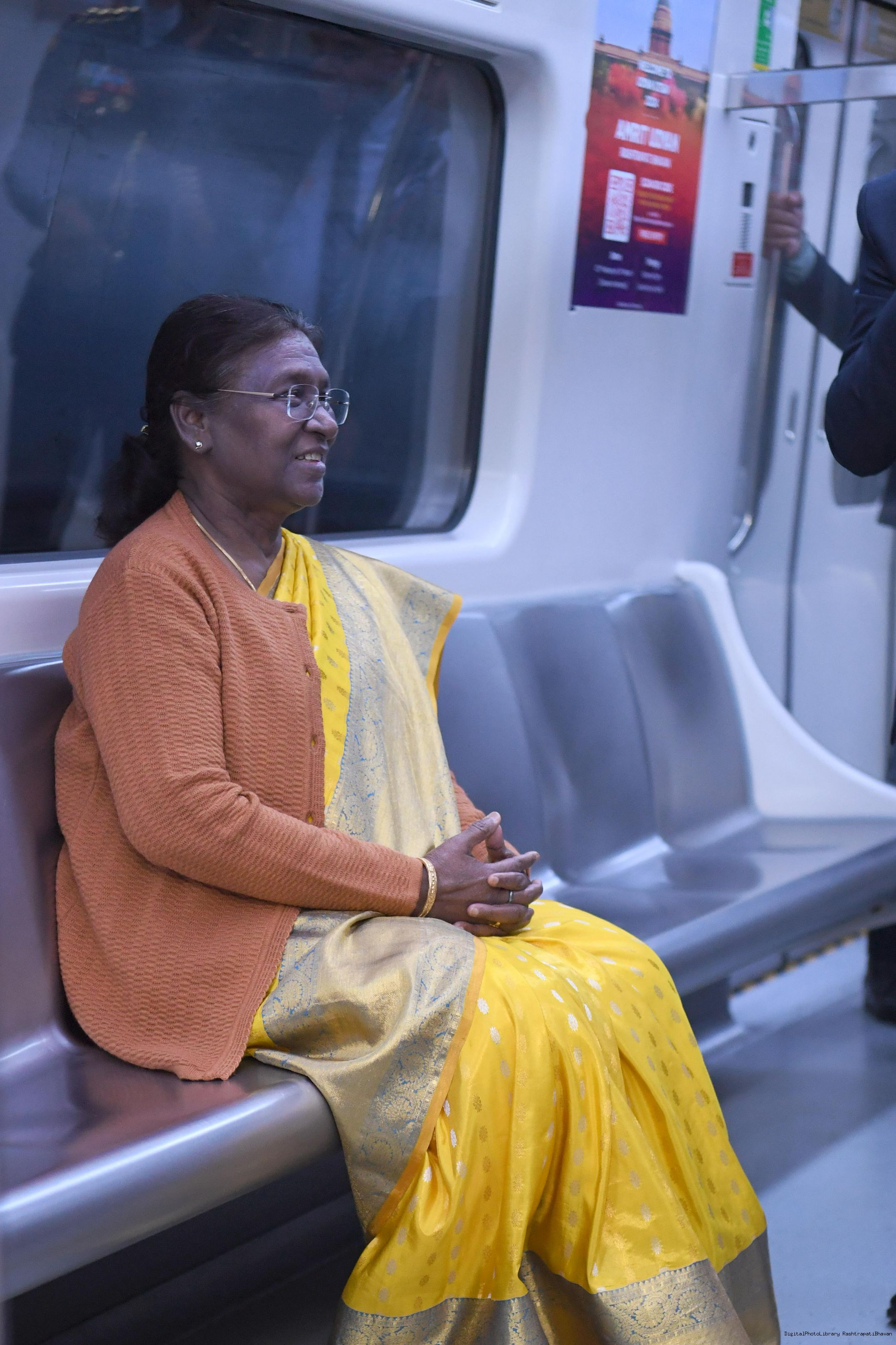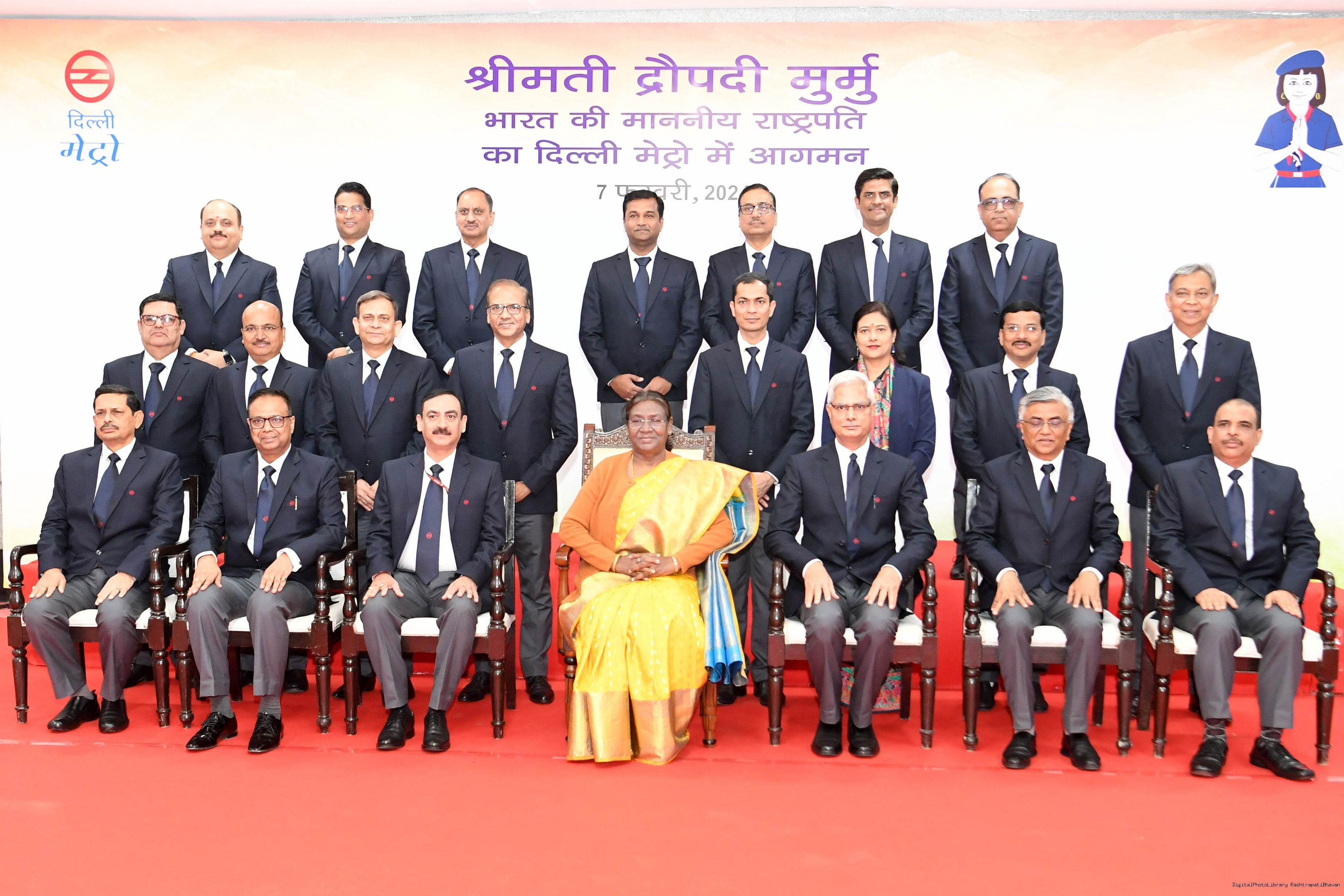 | Caption: | The President Smt. Droupadi Murmu travelled in Delhi Metro and interacted with school children during the ride flagged off shuttle bus service between Central Secretariat Metro Station and Amrit Udyan for visitors coming to Amrit Udyan at New Delhi on February 7, 2024. |