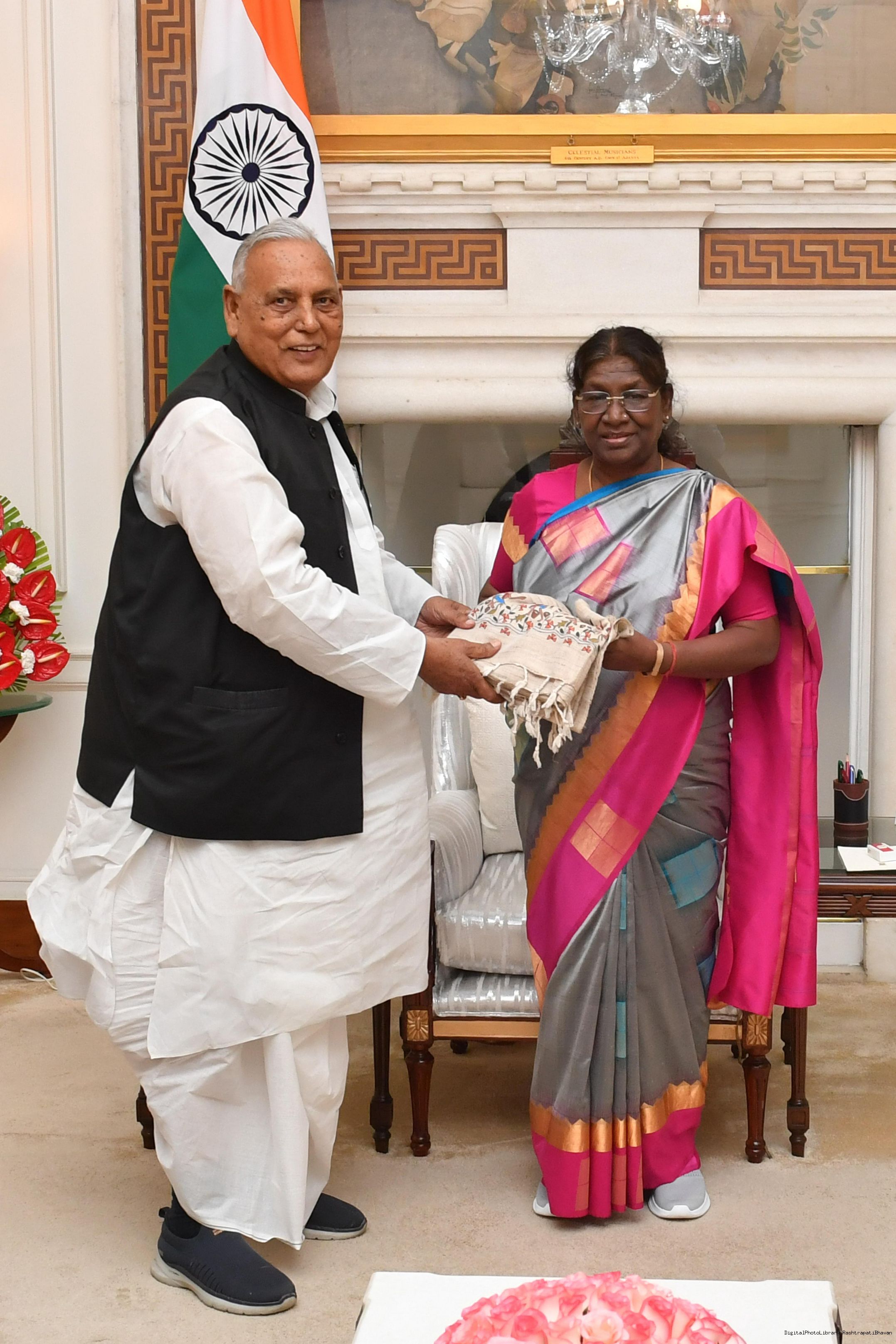 | Caption: | Shri Ramchandra Chandravansi, former Health Minister MLA, Jharkhand Vidhan Sabha meeting with the President of India, Smt. Droupadi Murmu at Rashtrapati Bhavan on August 09, 2023. |