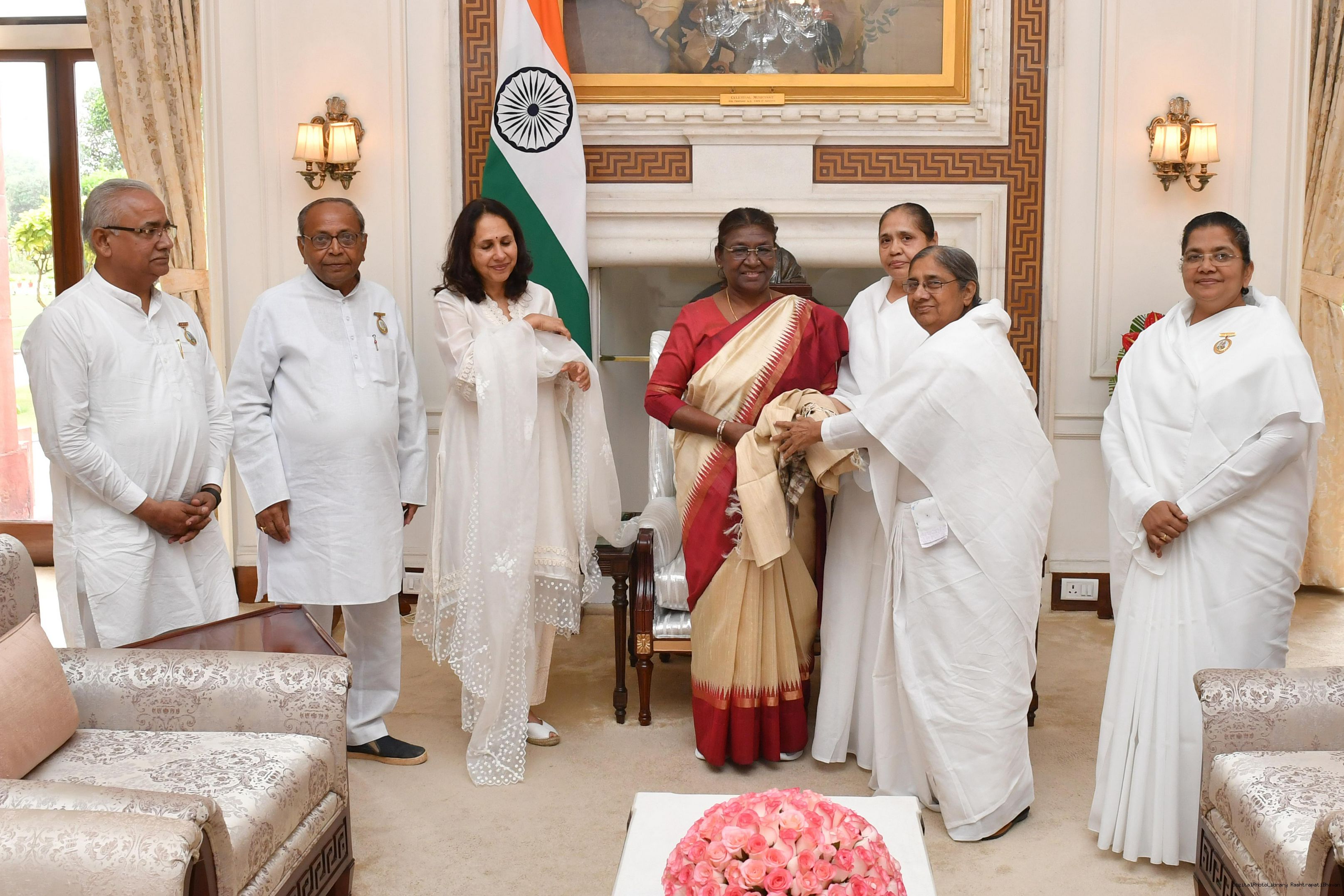 | Caption: | BK Hemlata Didi along with others meeting with the President of India, Smt. Droupadi Murmu at Rashtrapati Bhavan on August 09, 2023. |