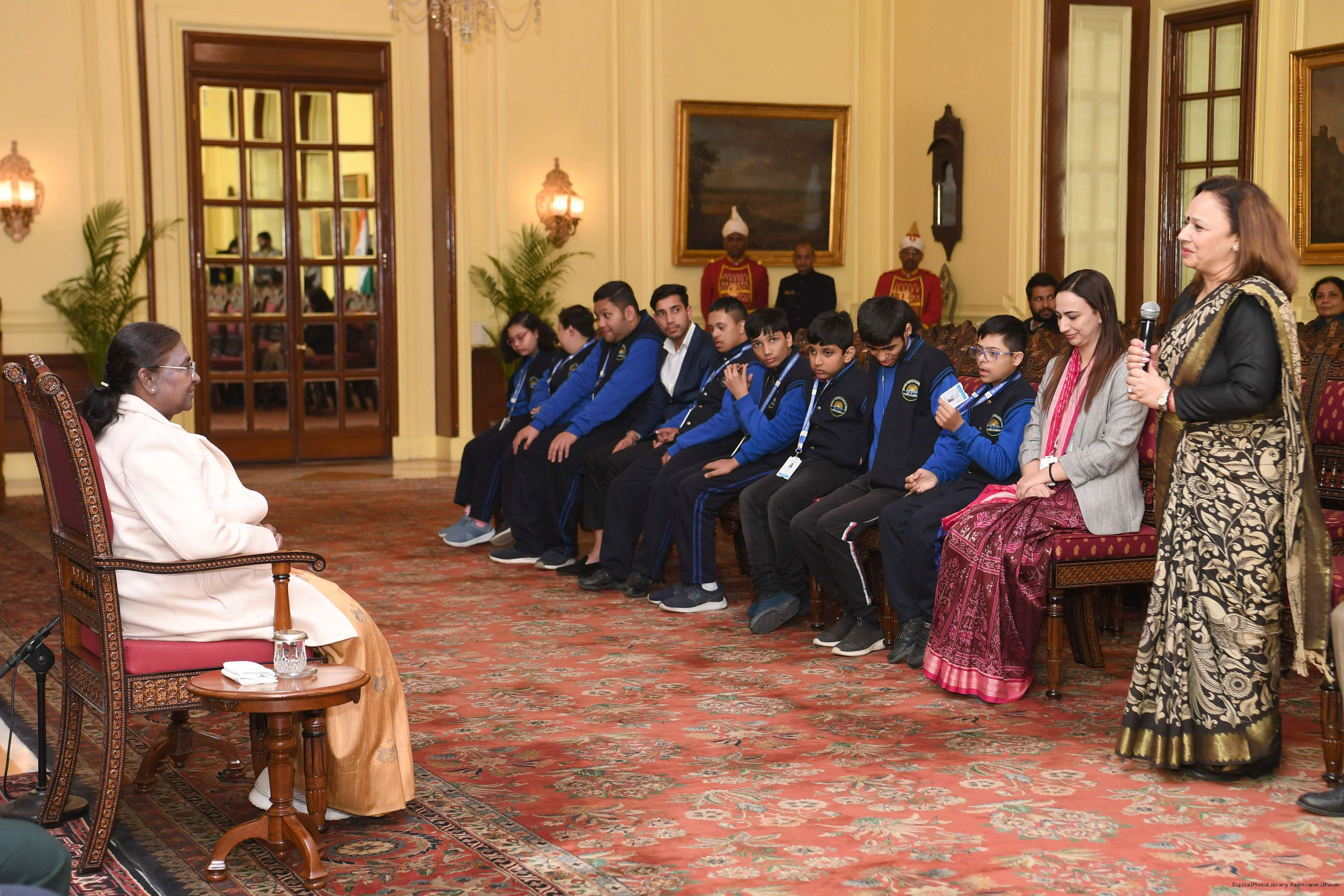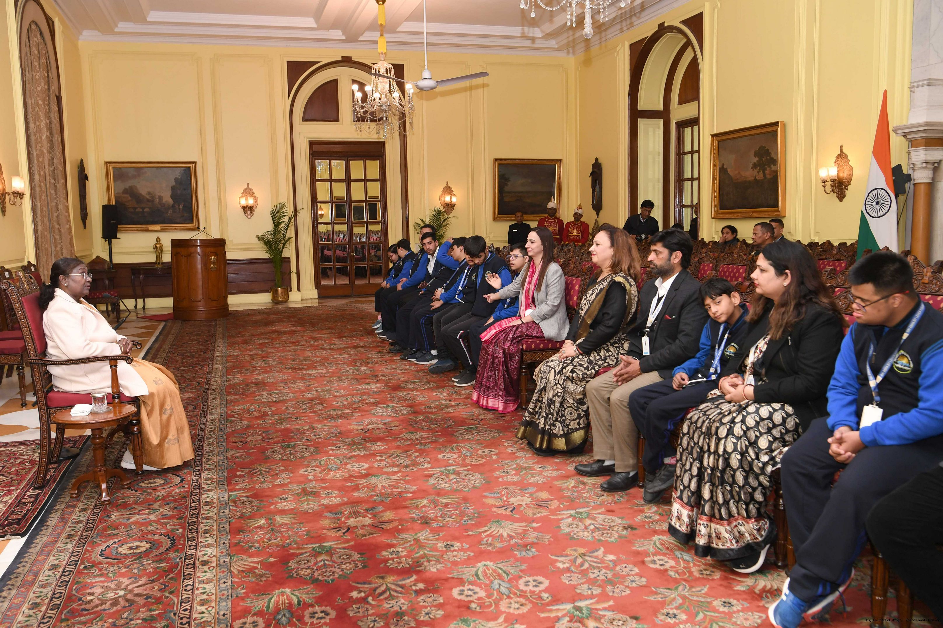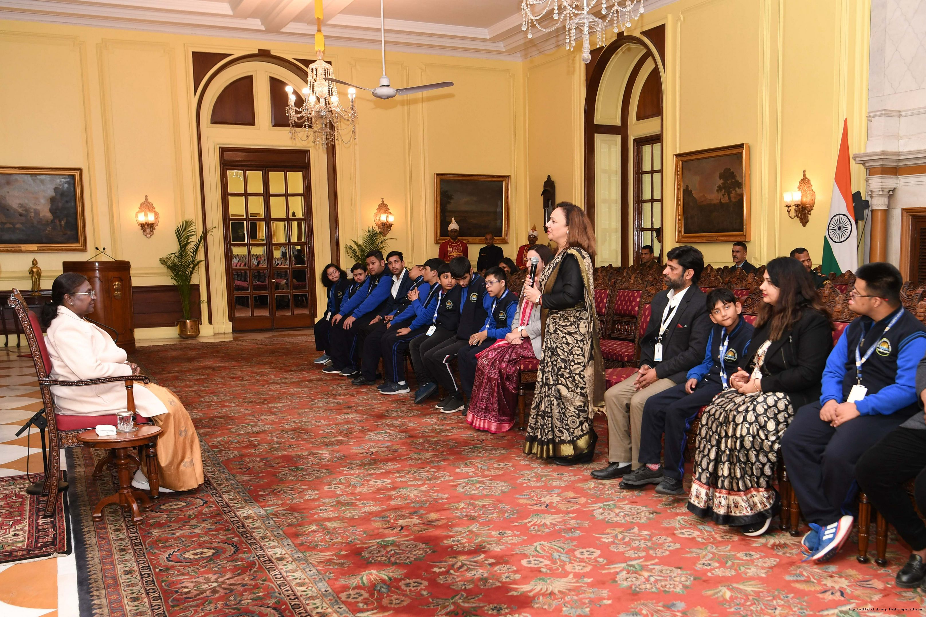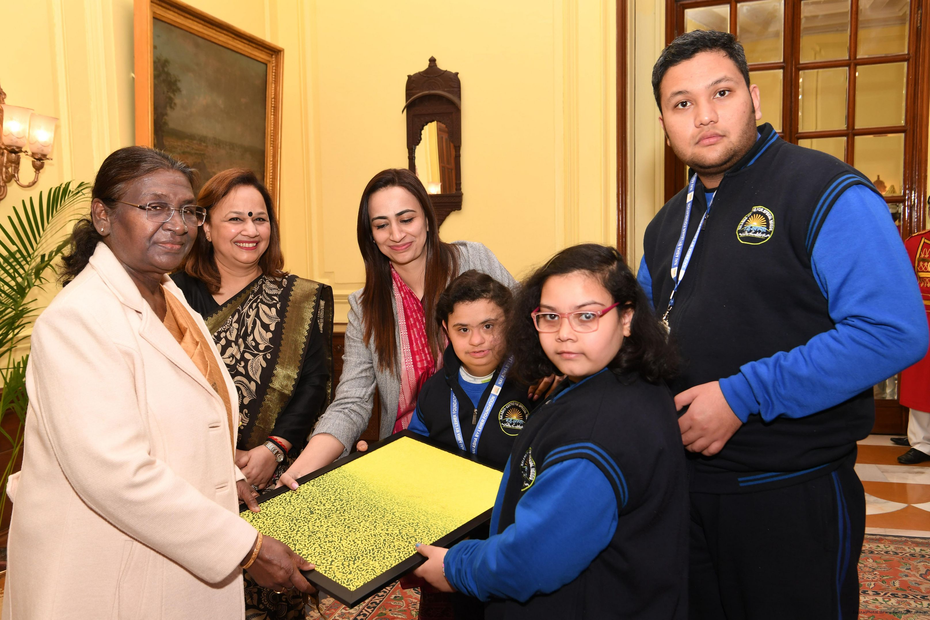 | Caption: | Dr. Shalini Singh, Founder-President, Leher Foundation Trust, Noida along with others meeting with the President of India, Smt Droupadi Murmu at Rashtrapati Bhavan on February 9, 2024. |