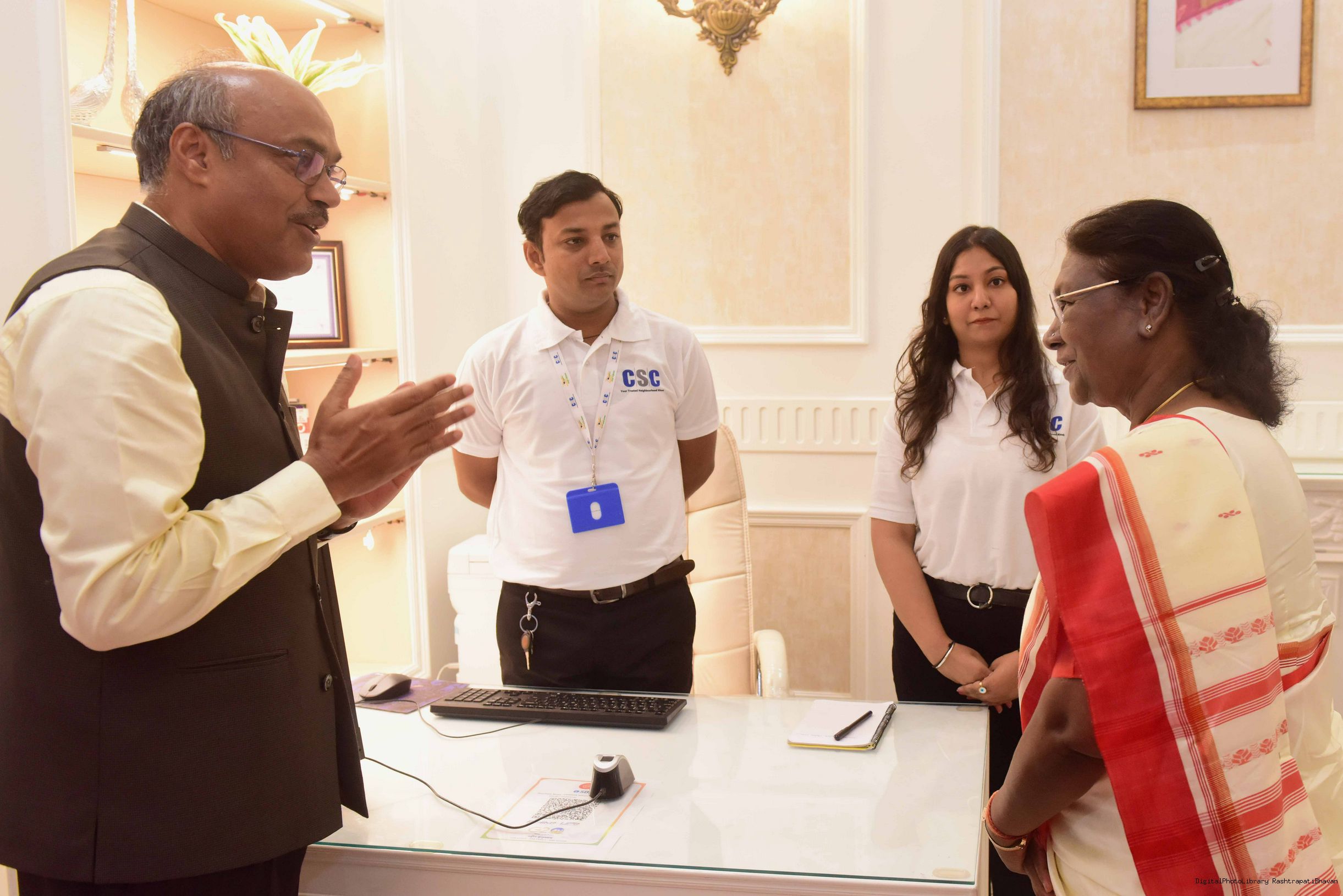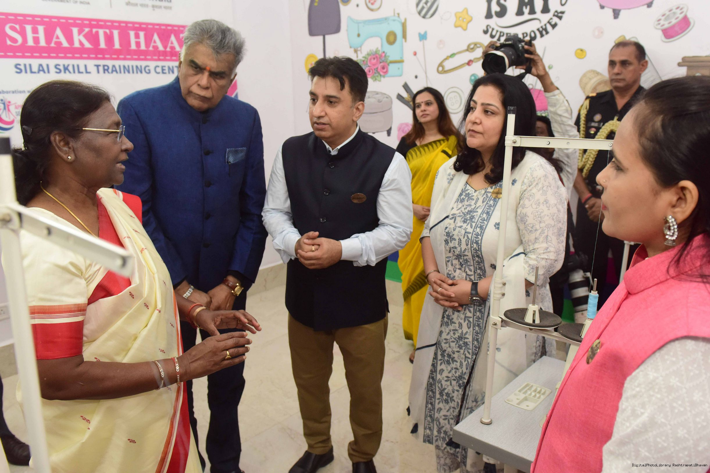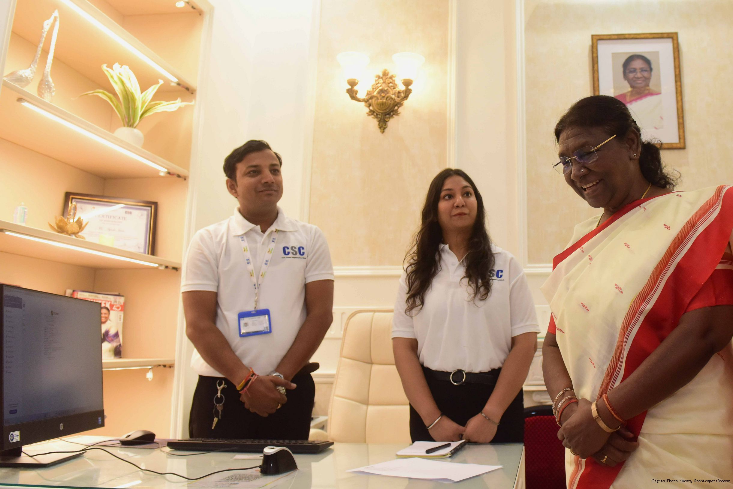 | Caption: | The President of india Smt. Droupadi Murmu, Inaugurating the common service centre( CSC ) and Shakti Haat at Rashtrapati Bhawan on October 02, 2023 |