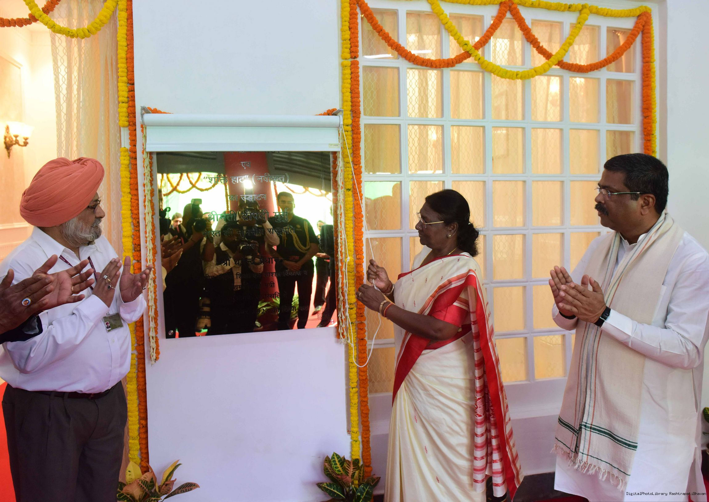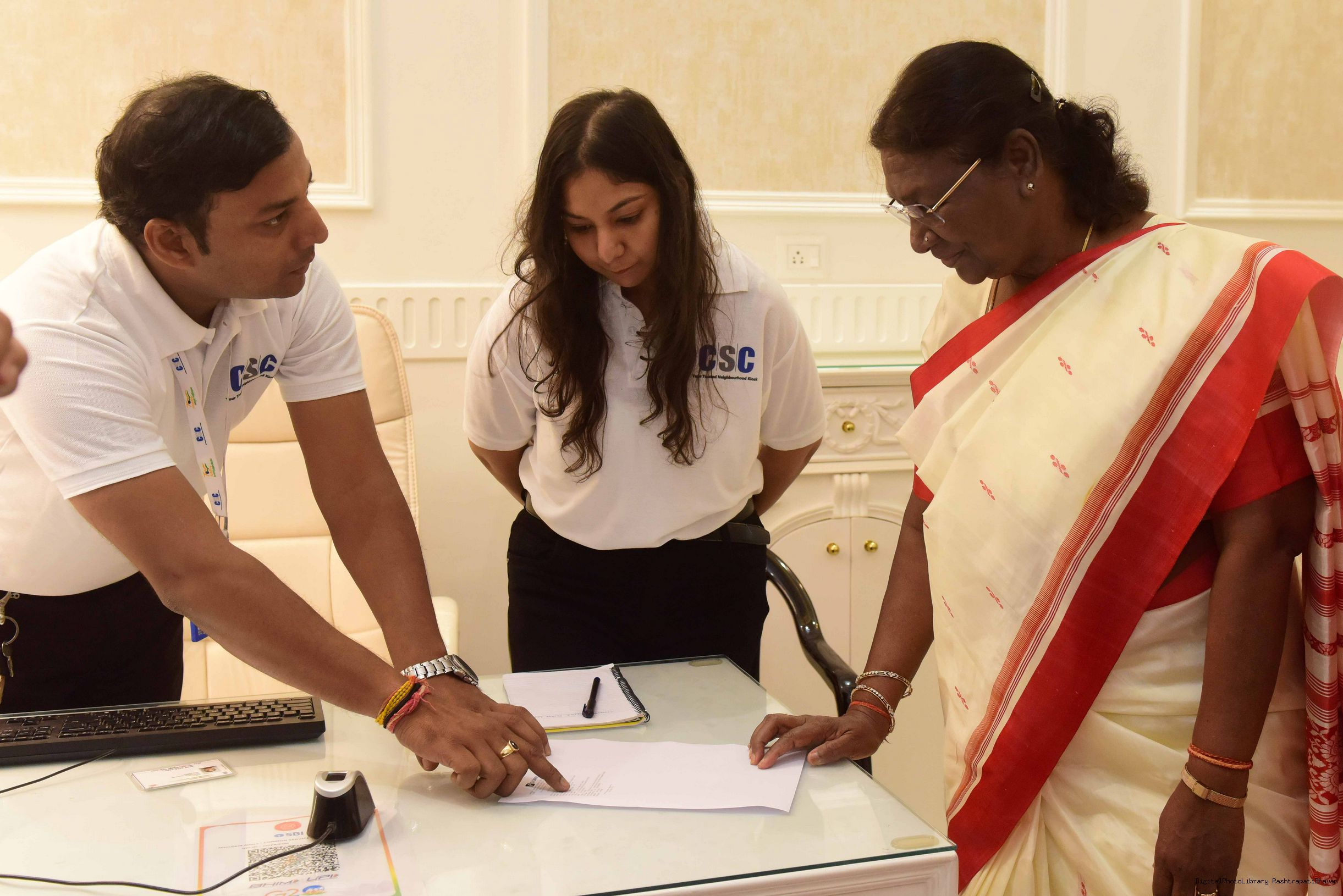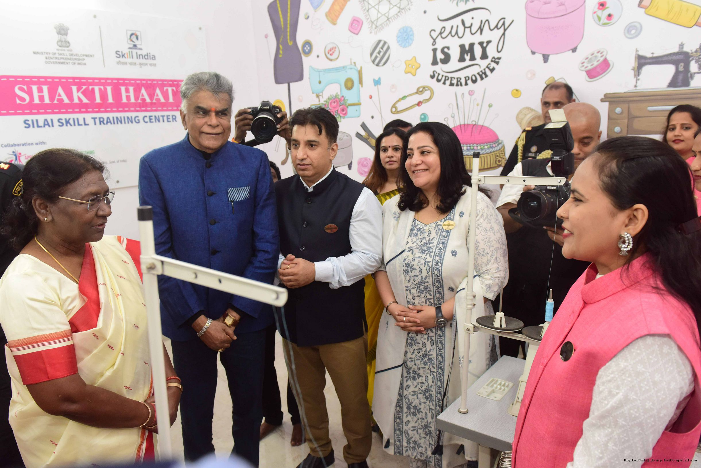 | Caption: | The President of india Smt. Droupadi Murmu, Inaugurating the common service centre( CSC ) and Shakti Haat at Rashtrapati Bhawan on October 02, 2023 |