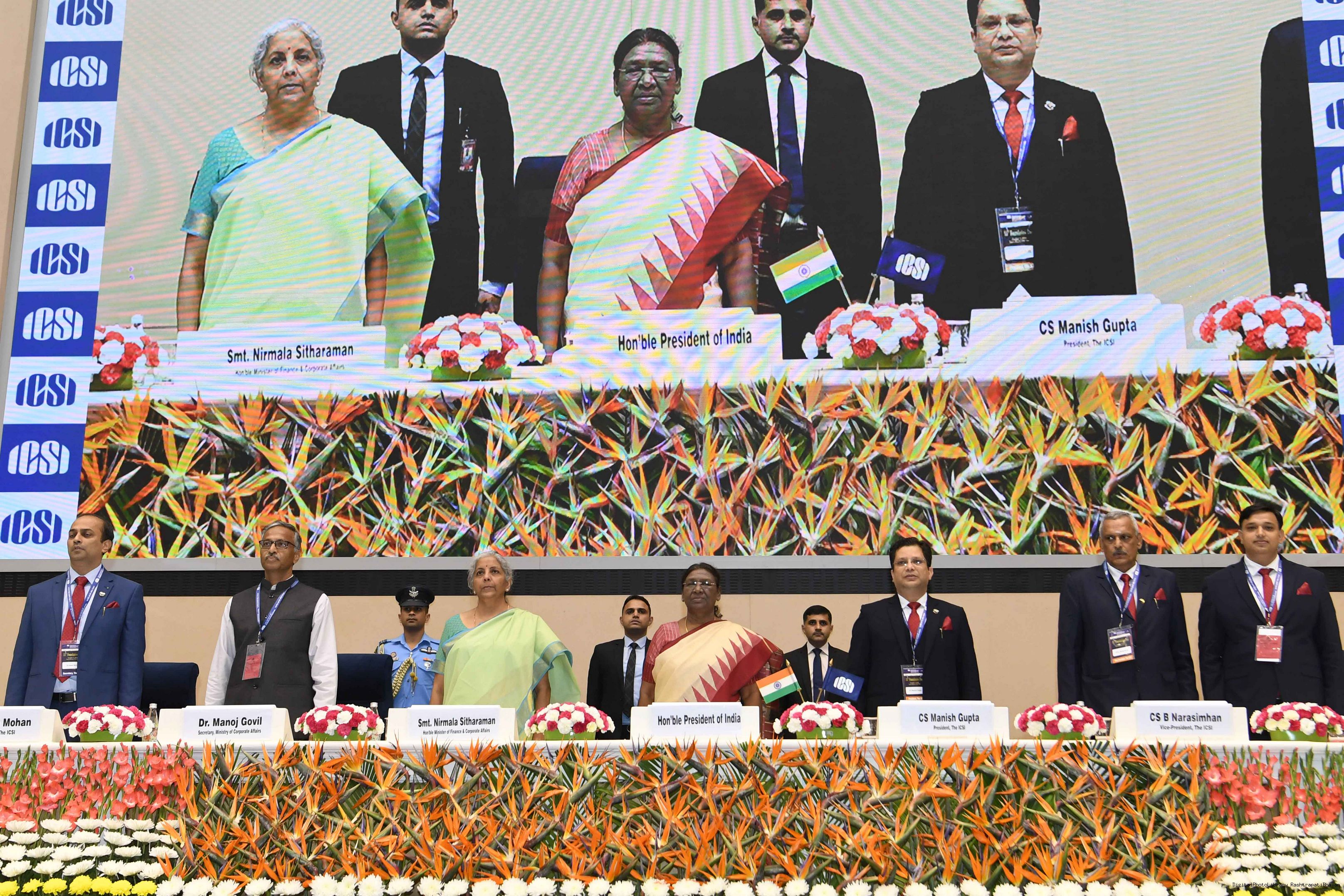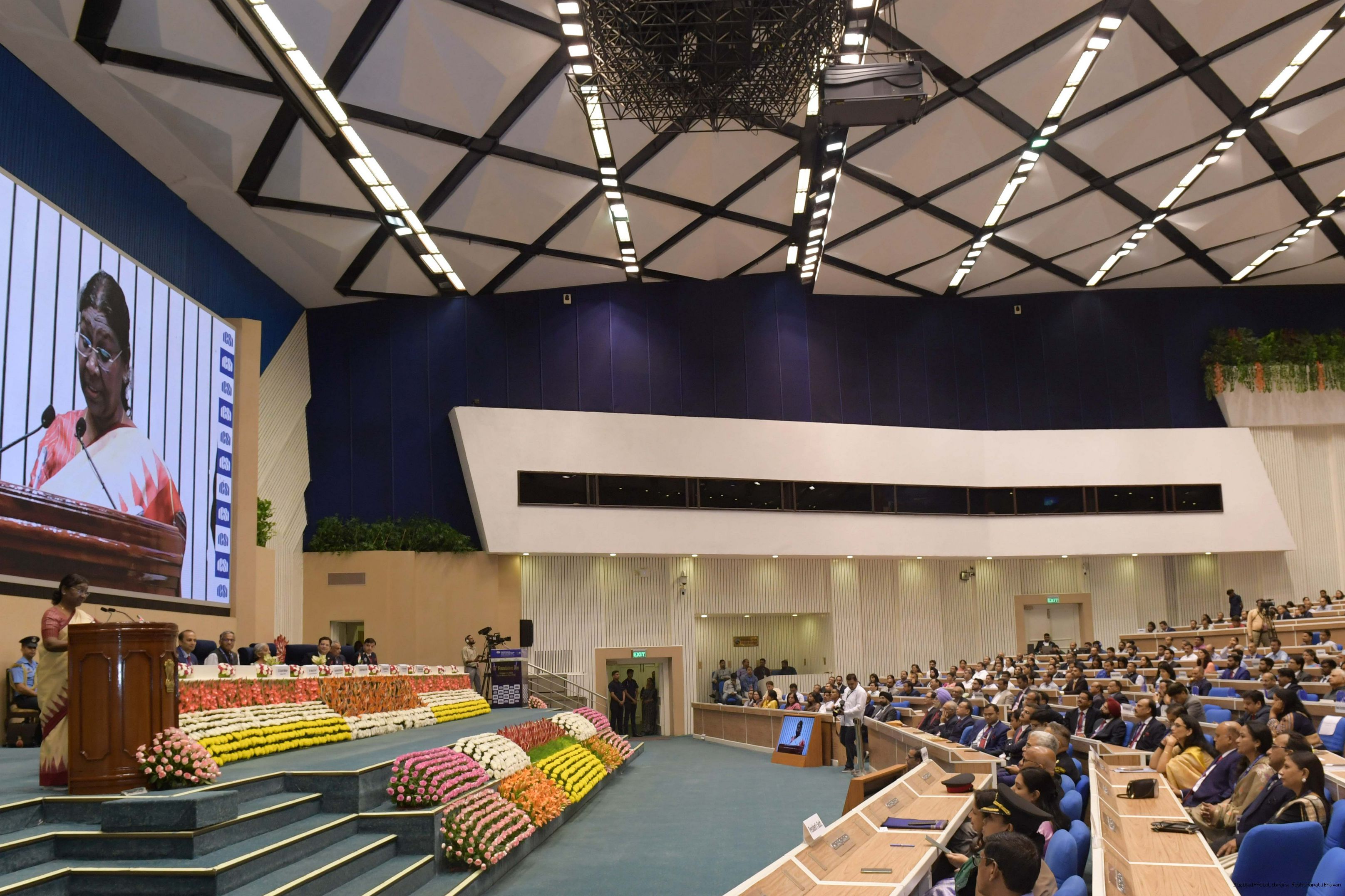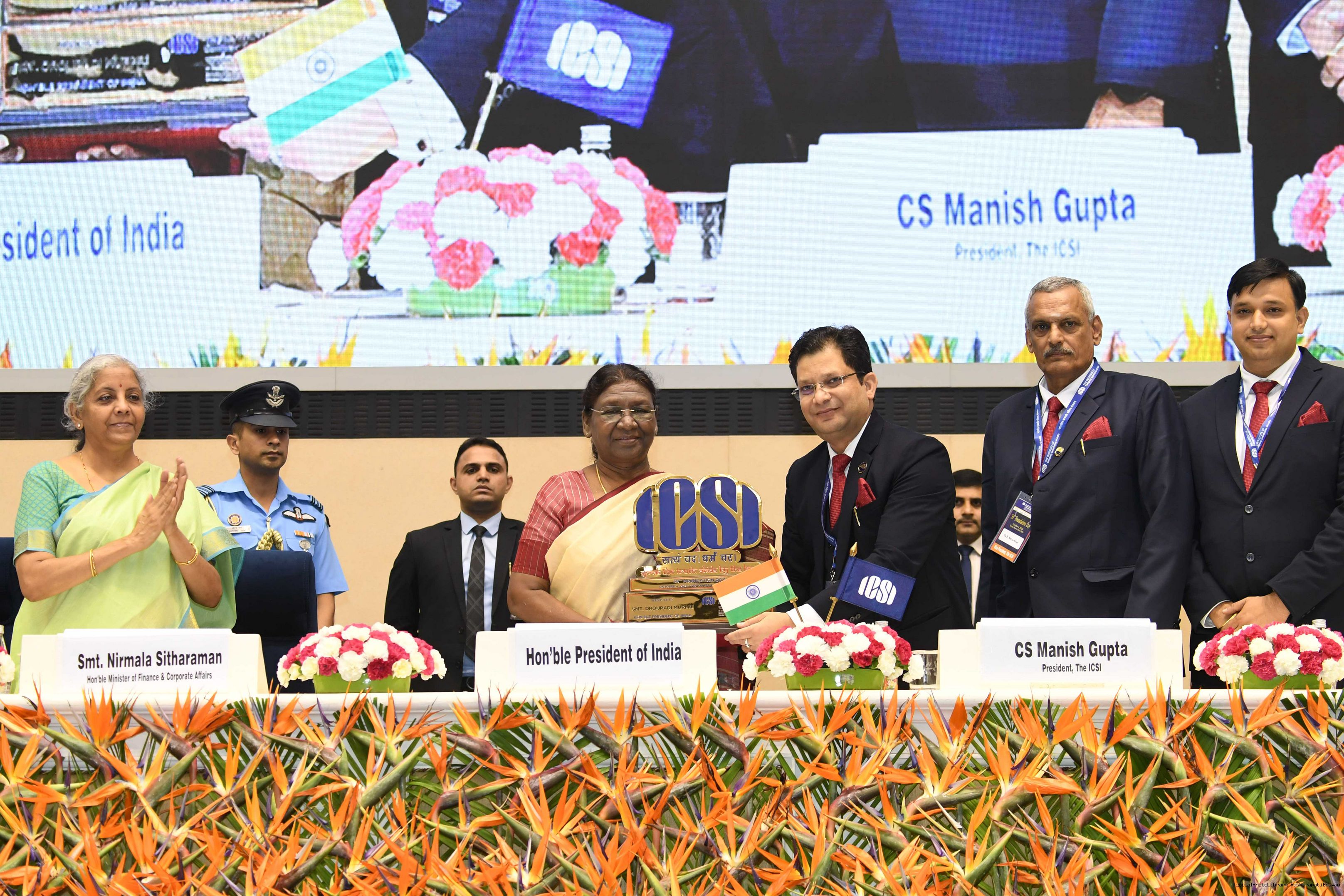 | Caption: | The President of India, Smt Droupadi Murmu graced the 55th foundation day celebrations of the Institute of Company Secretaries of India (ICSI) at Vigyan Bhavan in New Delhi on October 04, 2023. |
