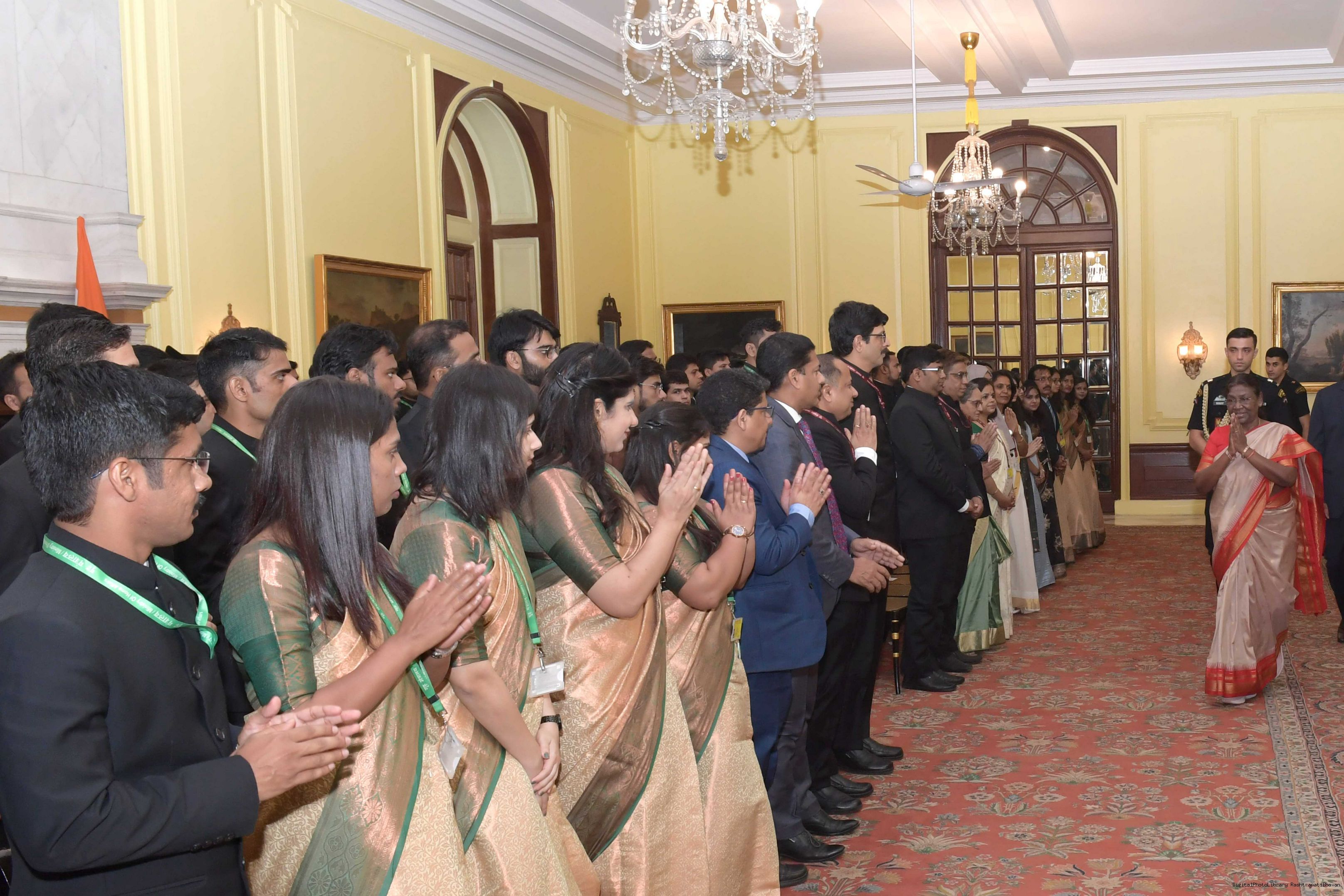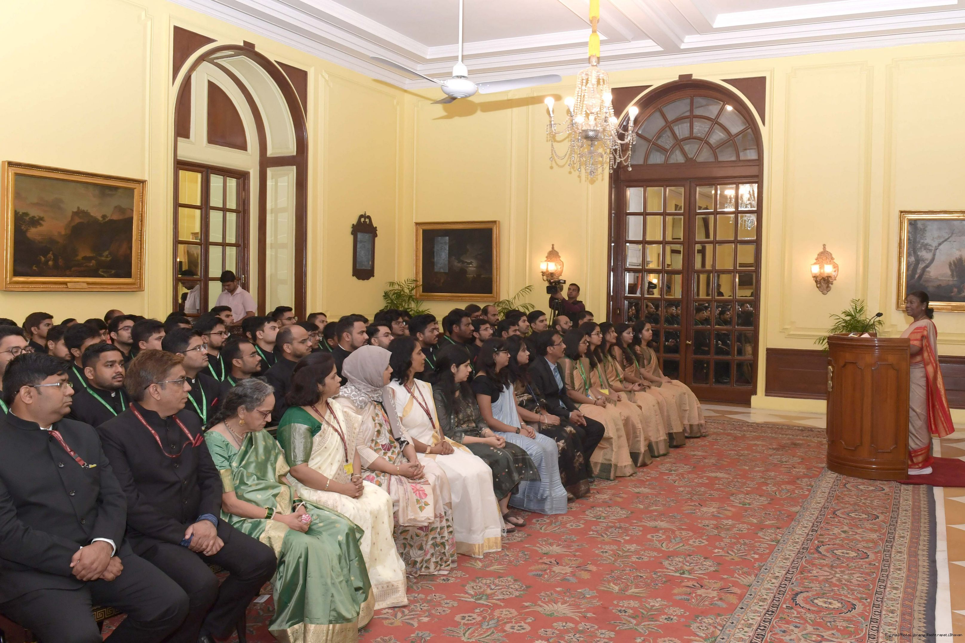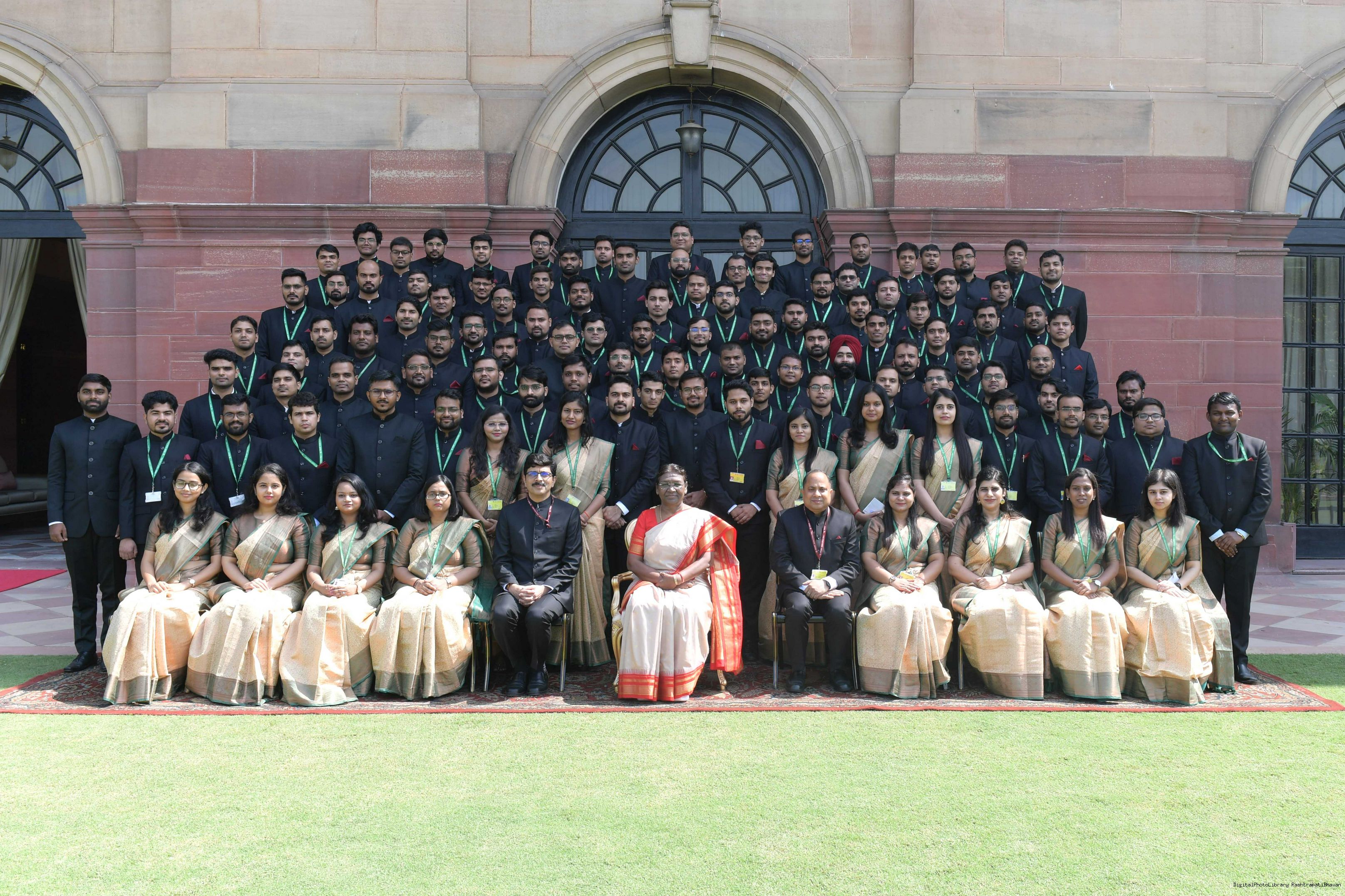 | Caption: | The Officers of Central Power Engineering Service (2018, 2020 and 2021 batches) called on the President of India, Smt Droupadi Murmu at Rashtrapati Bhavan on October 5, 2023. |